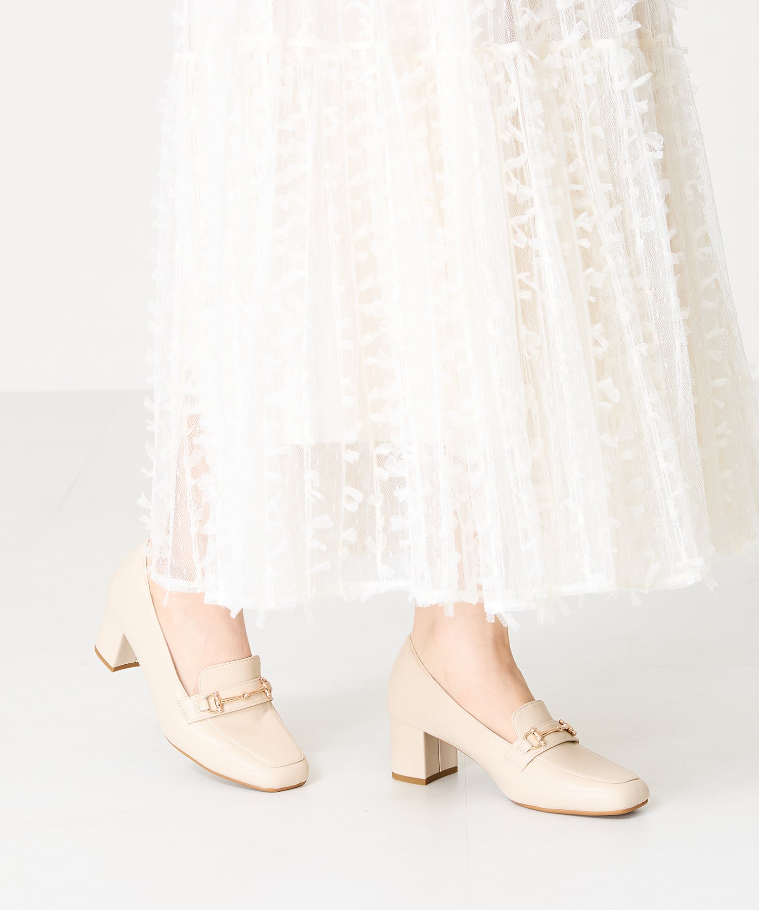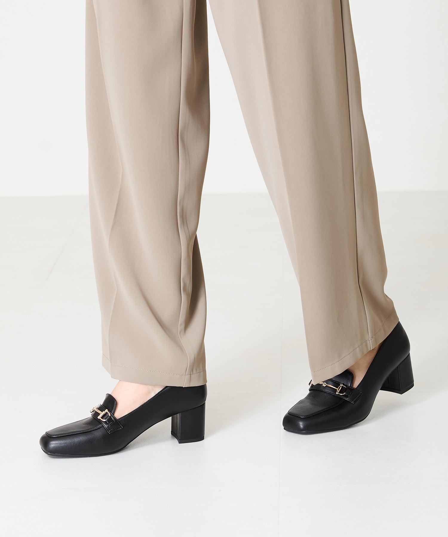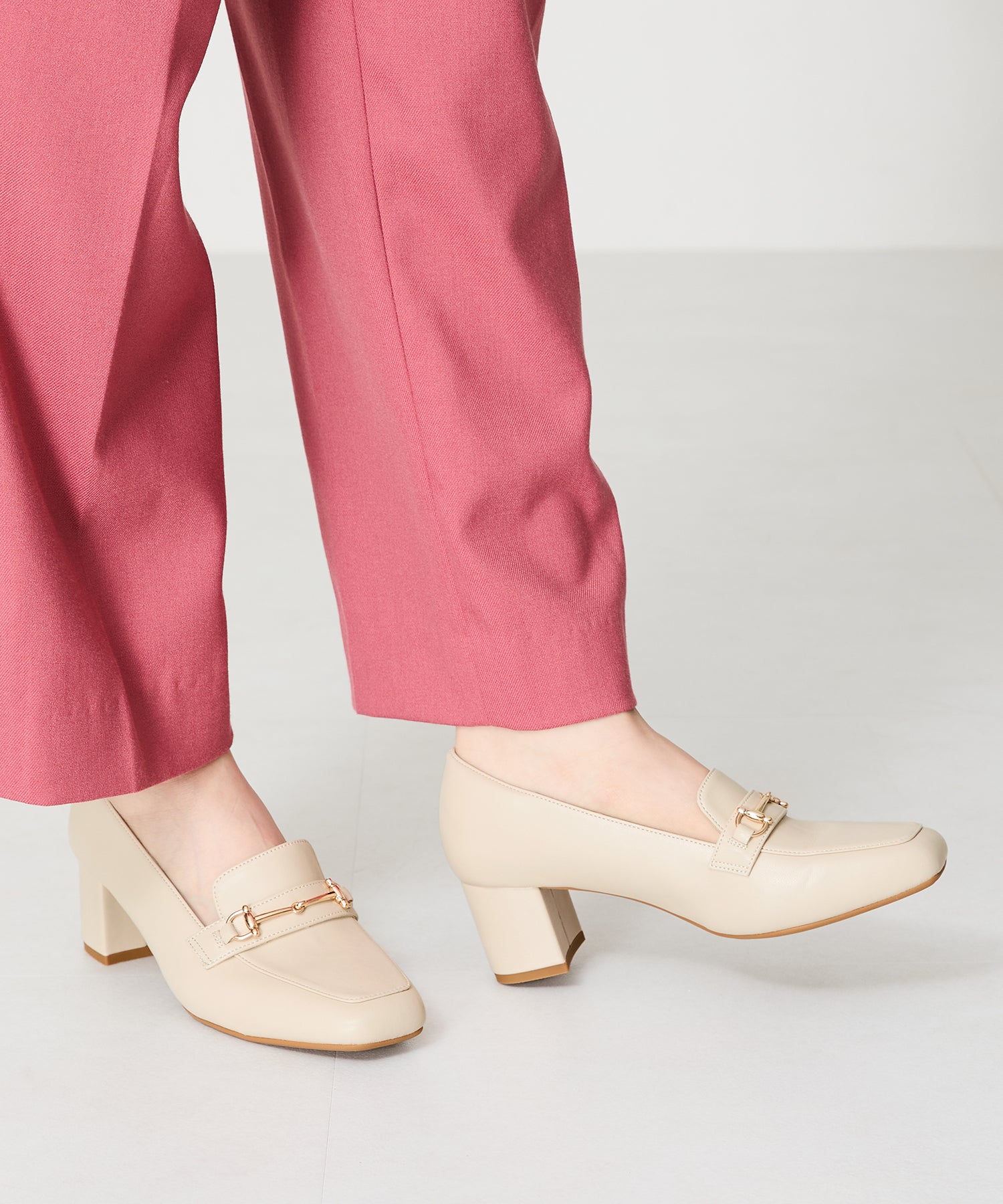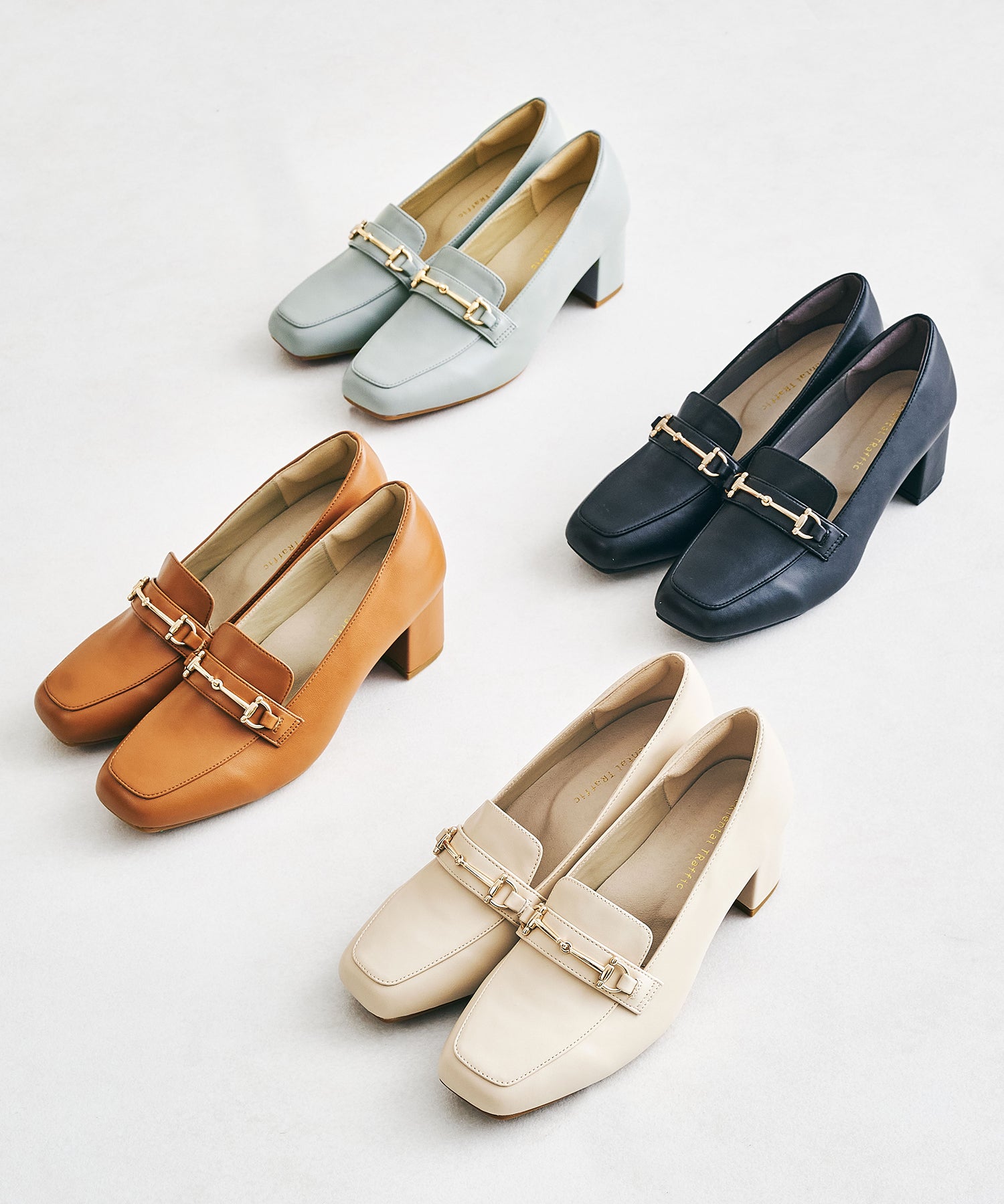 丸みのあるスクエアトゥが女性らしいヒールローファーは、履きやすさとシルエットにとことんこだわったアイテム。インソールに施された厚手のクッションが足の負担を軽減してくれるだけでなく、深めの履き口と踵クッションで脱げにくく、ヒール初心者でも挑戦しやすいのが嬉しいポイント。オンオフ問わず使えるデザインとカラバリで履き回し力も抜群。