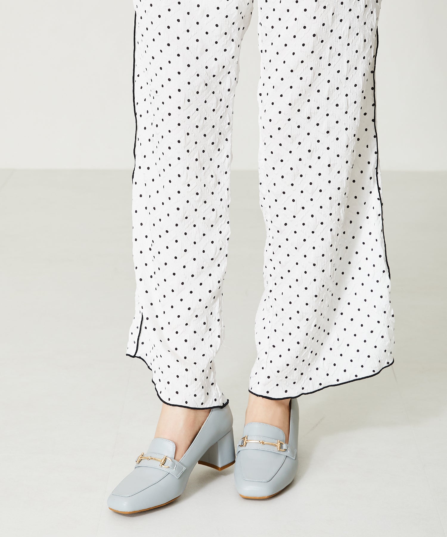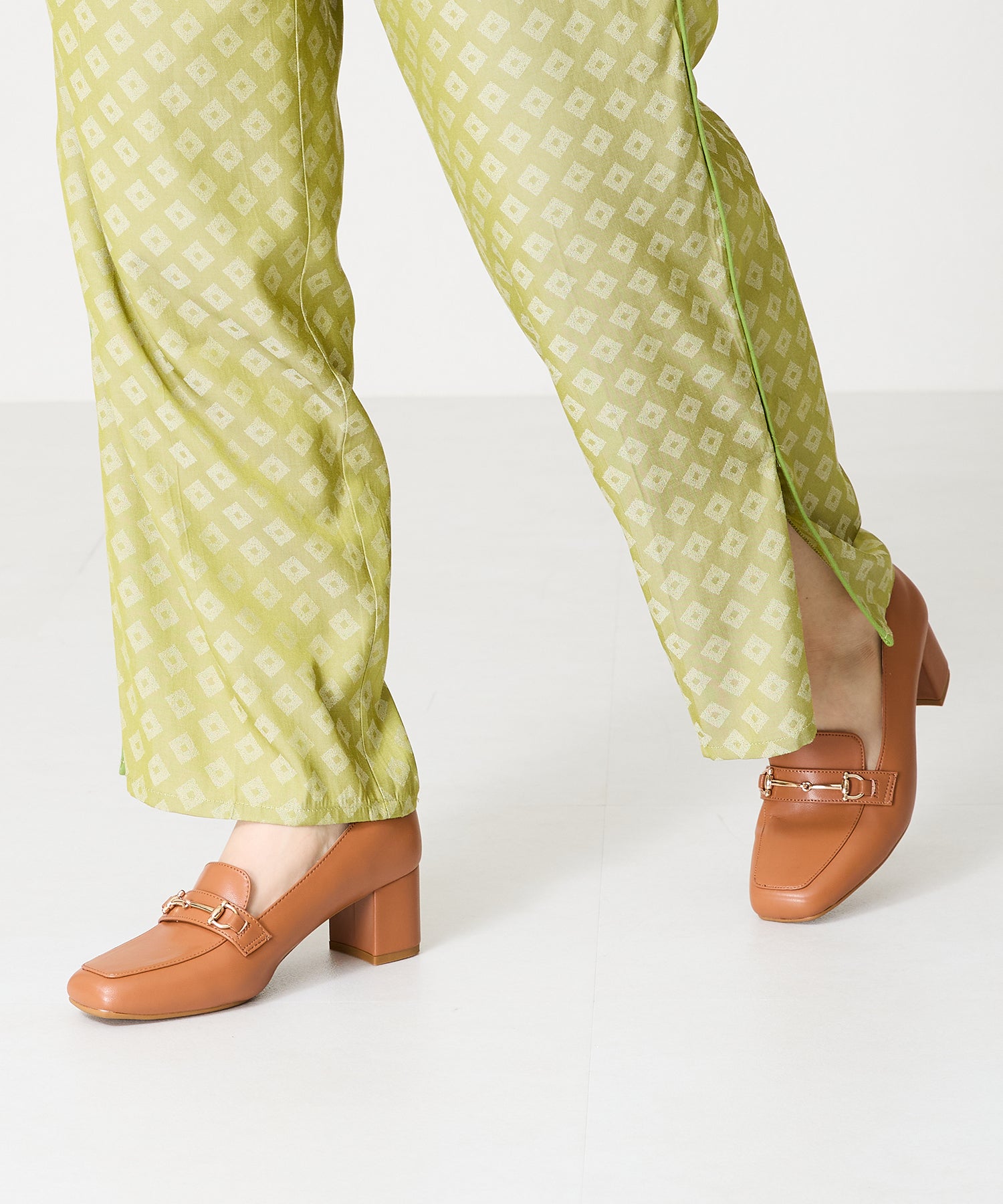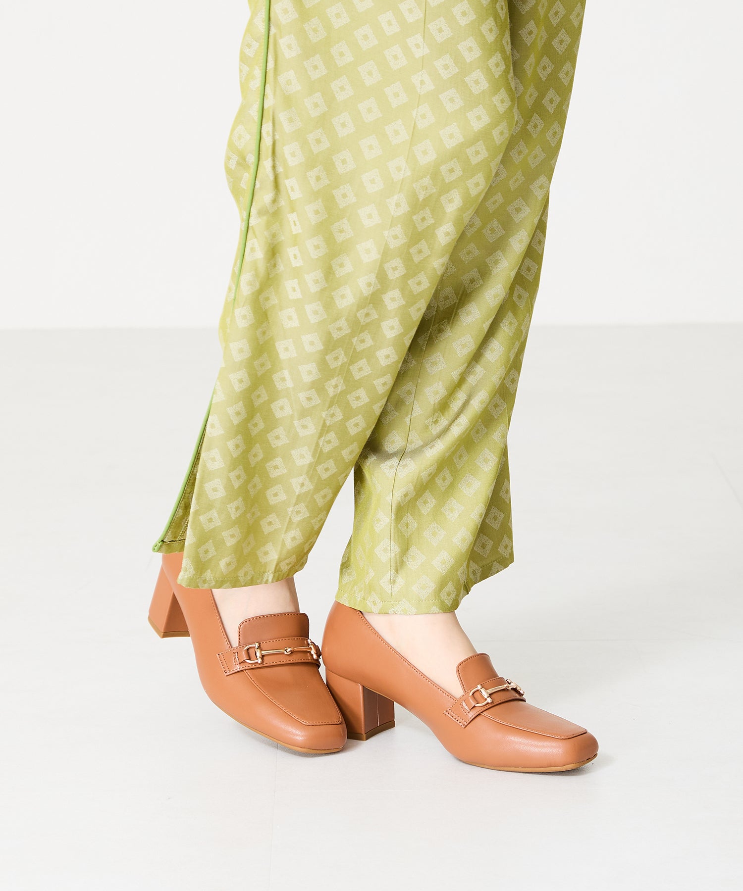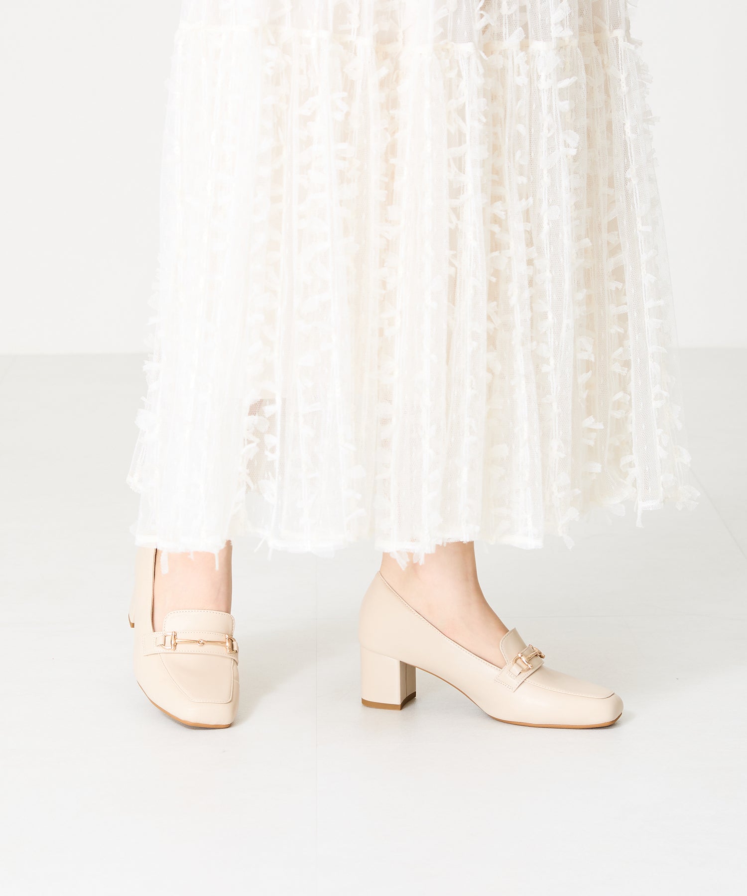 丸みのあるスクエアトゥが女性らしいヒールローファーは、履きやすさとシルエットにとことんこだわったアイテム。インソールに施された厚手のクッションが足の負担を軽減してくれるだけでなく、深めの履き口と踵クッションで脱げにくく、ヒール初心者でも挑戦しやすいのが嬉しいポイント。オンオフ問わず使えるデザインとカラバリで履き回し力も抜群。