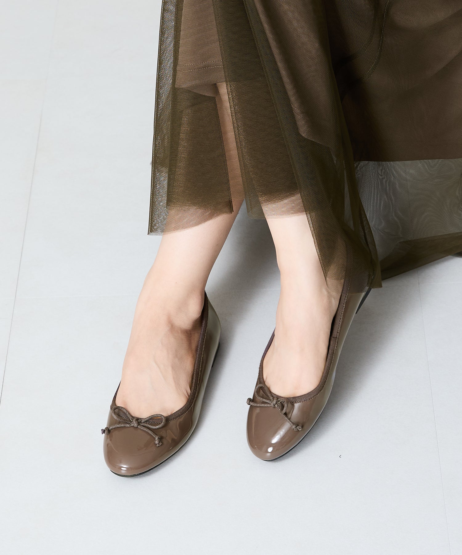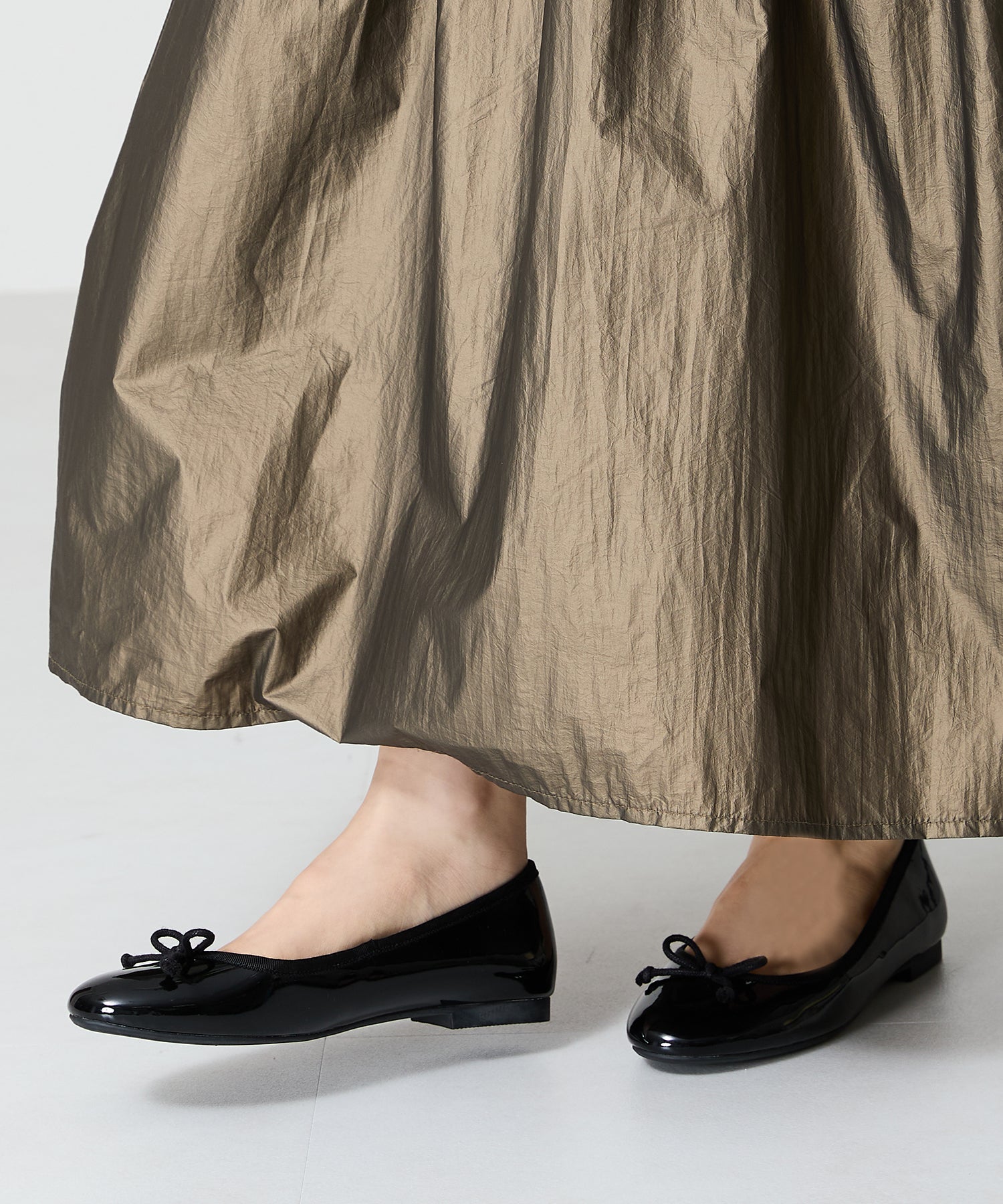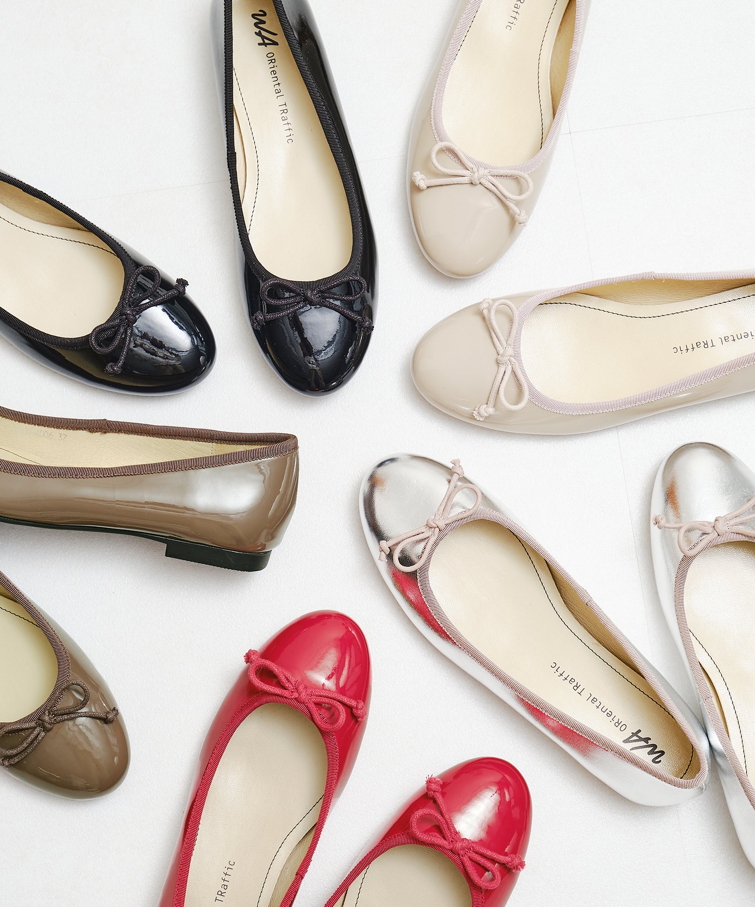 どんなスタイリングにも合わせやすい定番バレエシューズは、厚手のクッション入りで長時間履いても疲れにくく、履き心地も兼ね備えた万能アイテム。デイリー使いはもちろん、お仕事用にもぴったりなカラーを展開し、シーンを選ばず使える優れもの。シルバーのメタリック素材、その他カラーはエナメル素材を使用する事で1年通して履けるのも嬉しいポイント。