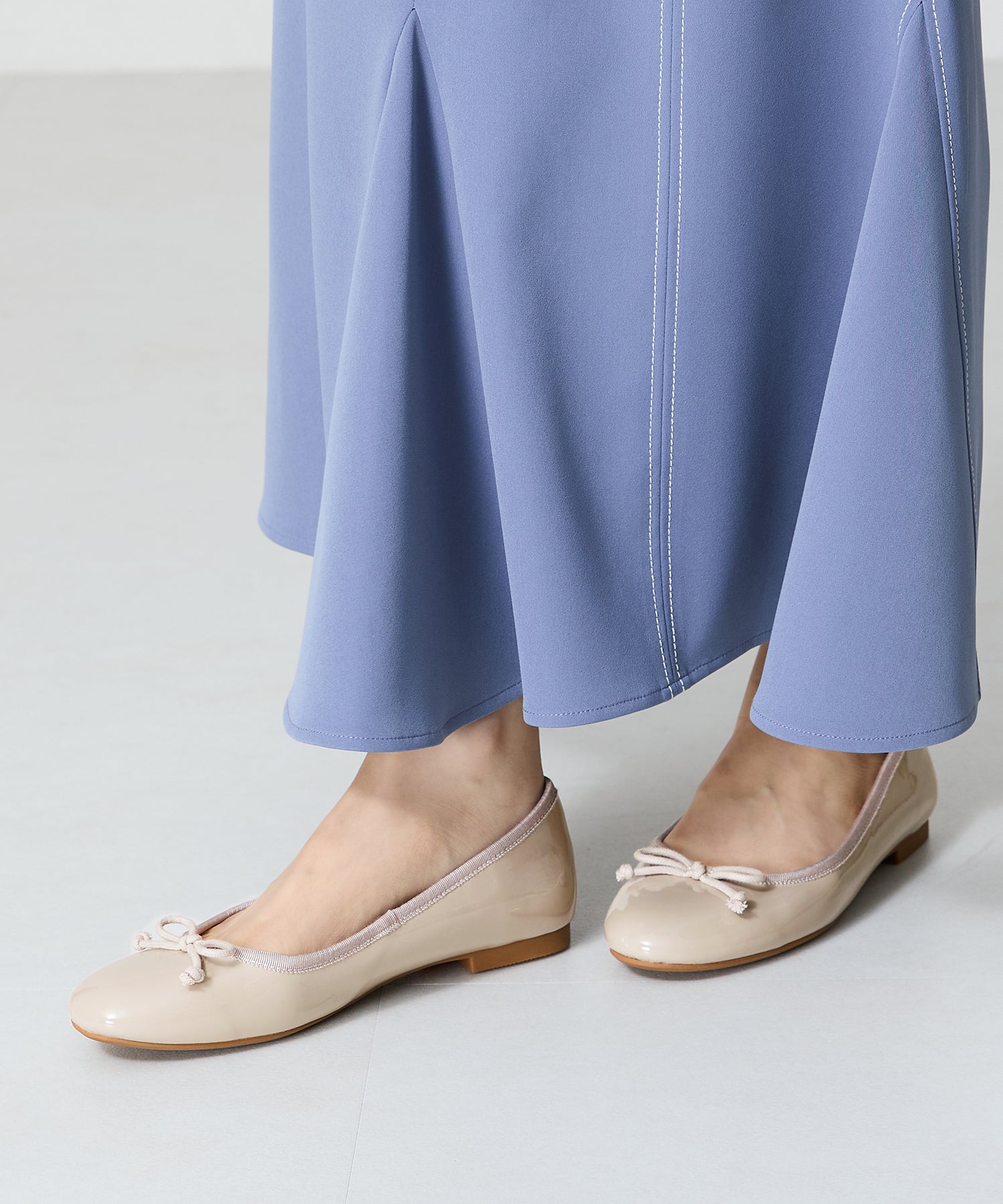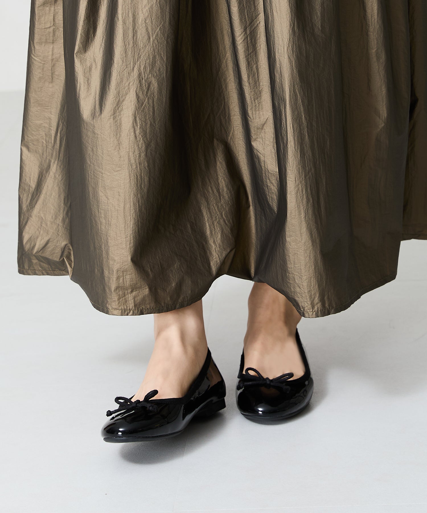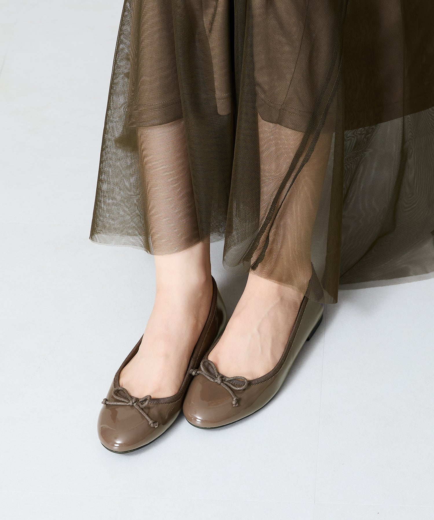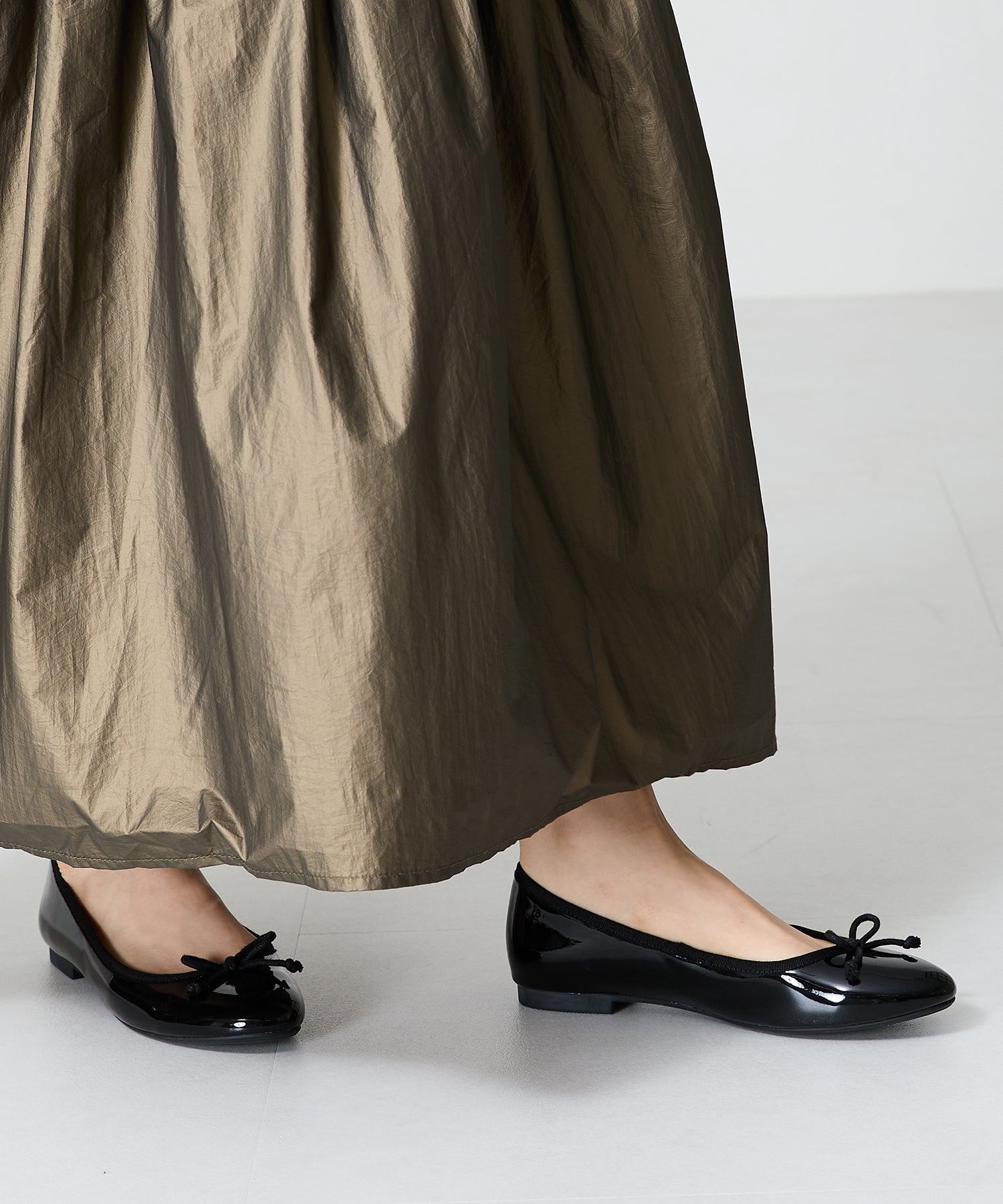 どんなスタイリングにも合わせやすい定番バレエシューズは、厚手のクッション入りで長時間履いても疲れにくく、履き心地も兼ね備えた万能アイテム。デイリー使いはもちろん、お仕事用にもぴったりなカラーを展開し、シーンを選ばず使える優れもの。シルバーのメタリック素材、その他カラーはエナメル素材を使用する事で1年通して履けるのも嬉しいポイント。