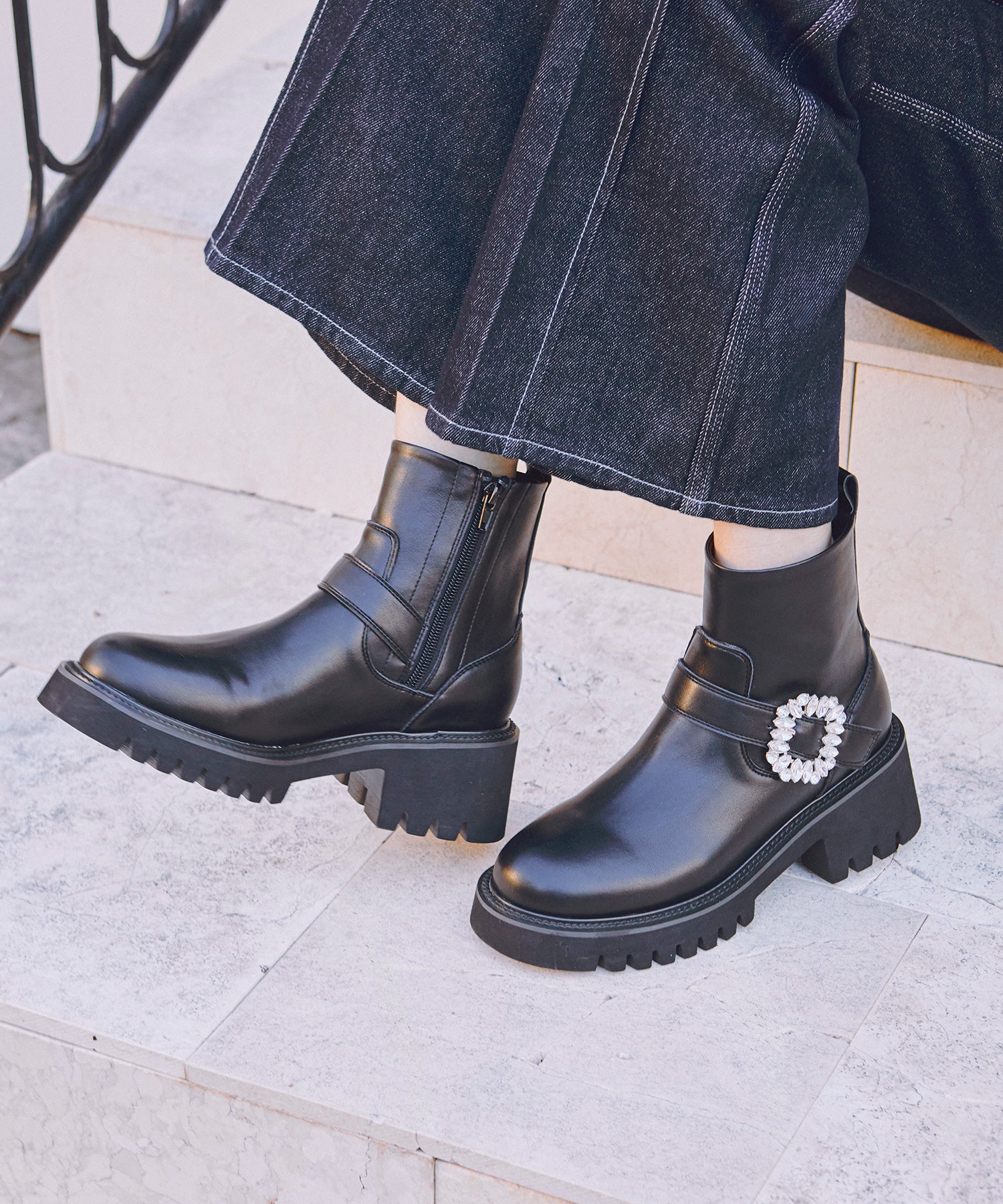 【カタログ掲載アイテム】ビジューバックル厚底ブーツ/51402