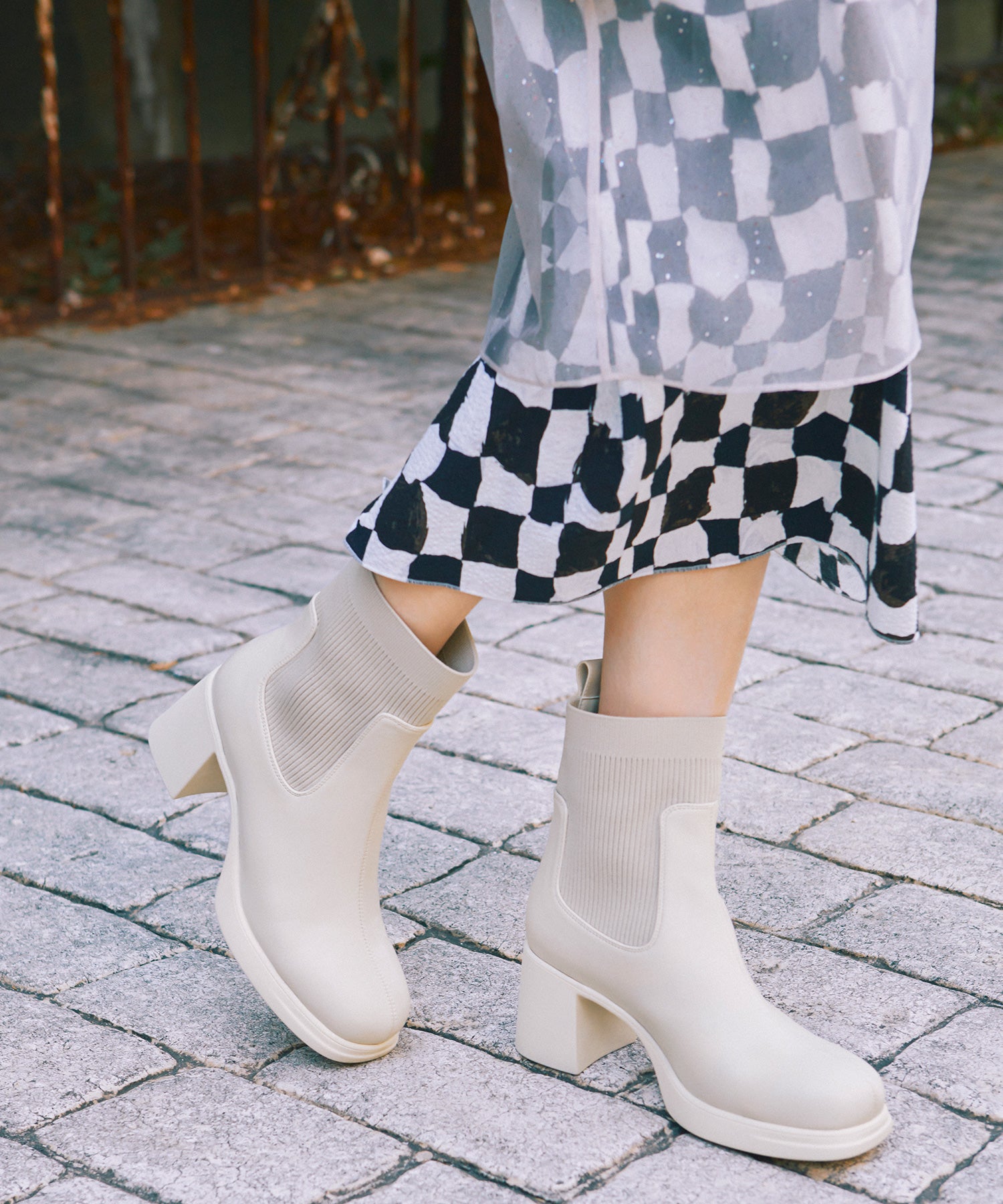 トレンド継続中の無駄のないシンプルなニットブーツは、足まわりに優しくフィットする1足。スタイルアップを叶えてくれる高めのヒールもストーム付きで安定感があり、見た目以上に軽量に仕上げることで疲れにくいアイテムに。リブの細いニットで縦のラインを綺麗に見せつつ、スクエアトゥなので指先までゆったり無理なく履くことができる。艶感のある素材で大人カジュアルなスタイリングが叶うブーツ。
