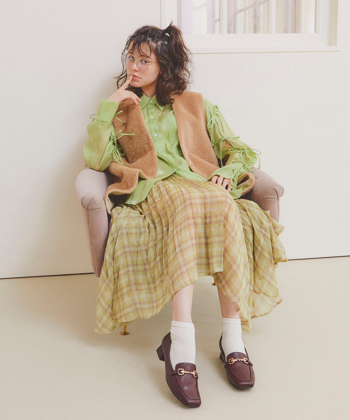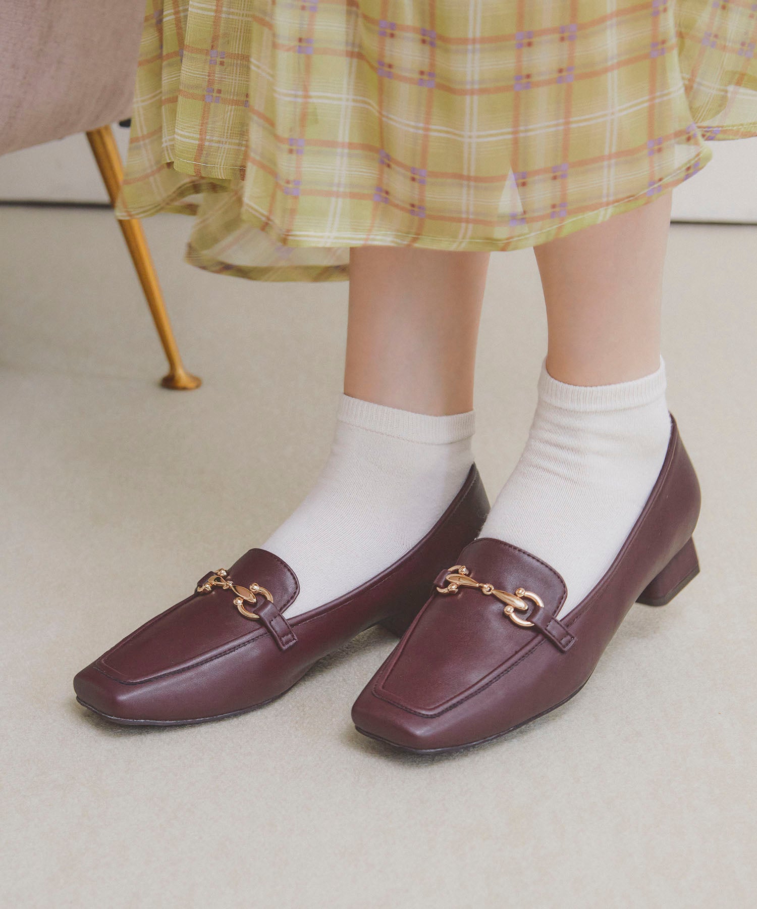 ゴールドのビットモチーフにスマートなスクエアトゥで女性らしさを強調したローファーが登場。こなれ感のある台形ヒールは程よい高さで安定感があり、長時間の歩行でも疲れにくい。オンオフ問わず活躍する1足は、パンツにもスカートにも合わせやすい万能アイテム。シンプルながらも立体的なパイピングがアクセントになり、足元に存在感をプラスしてくれる。