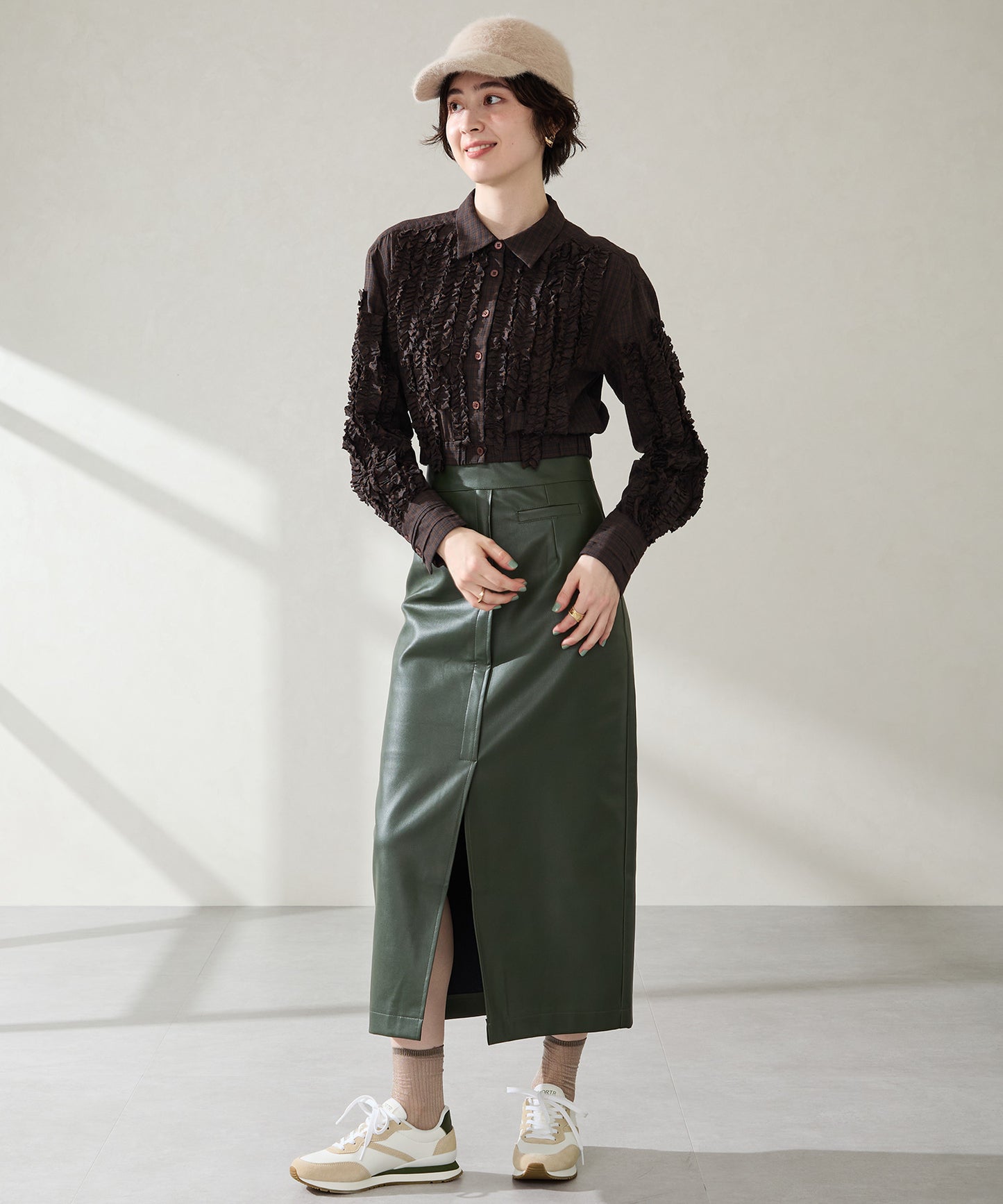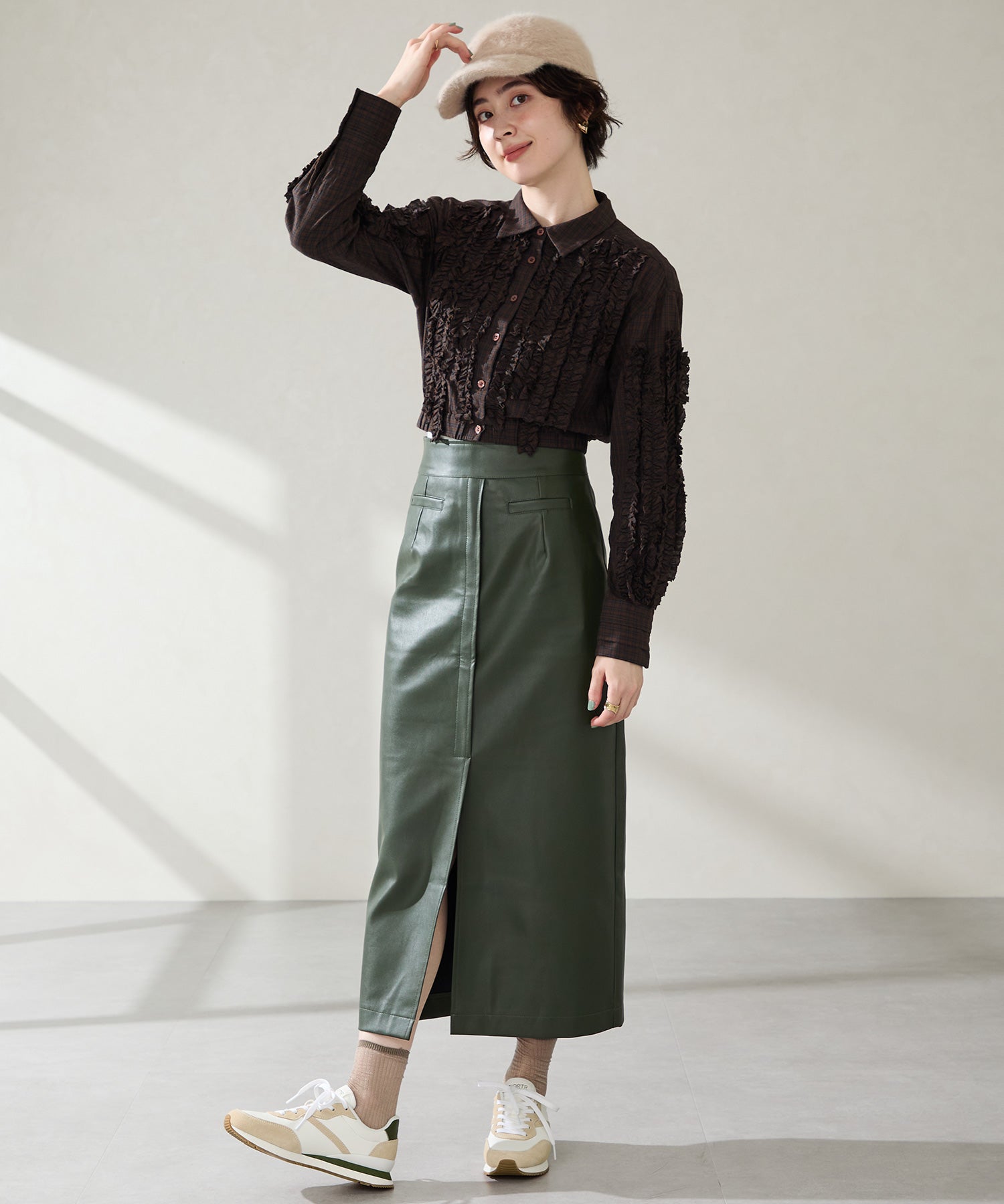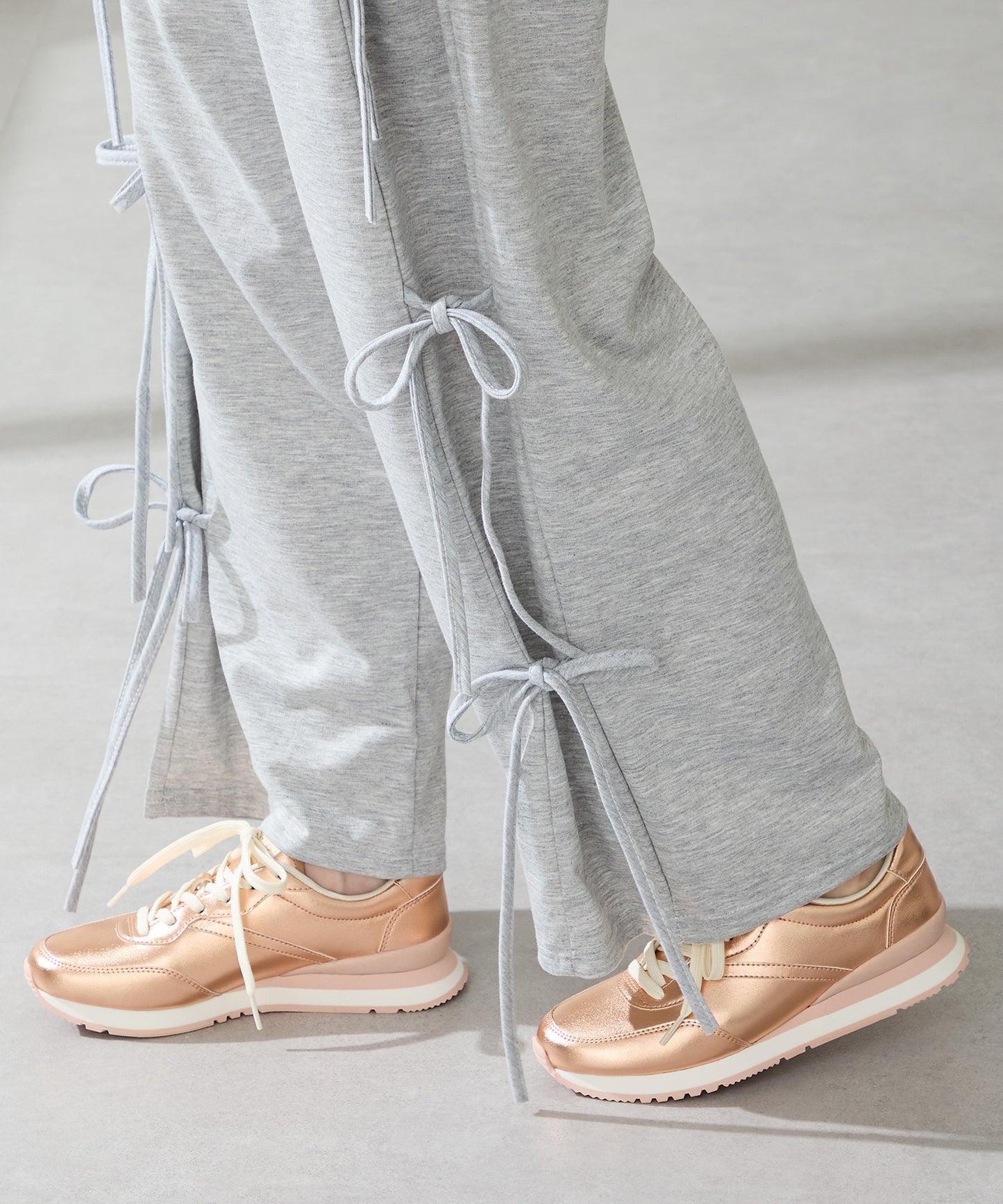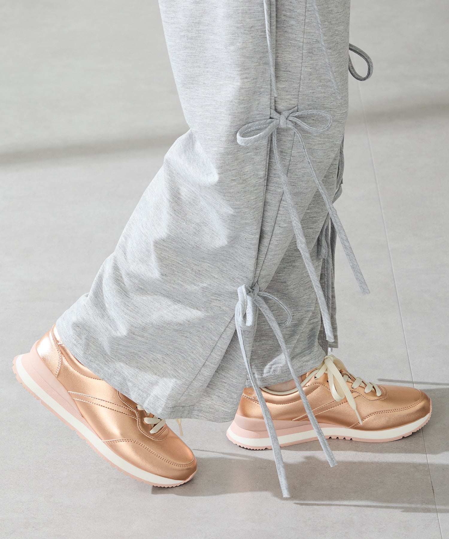 台形にカットされた特徴的なソールのスニーカーはどこかレトロな雰囲気のアイテム。フラットソールでミニマムなシルエットと計算された切替パーツの配置が洗練された都会的な印象にしてくれる。ワントーンでまとめながらパーツごとの素材違いを楽しめるベージュはヒール部分に差した鮮やかなグリーンがポイントに。エッジの利いたメタリックカラーのピンクは他とは被らない個性を出せるカラー。