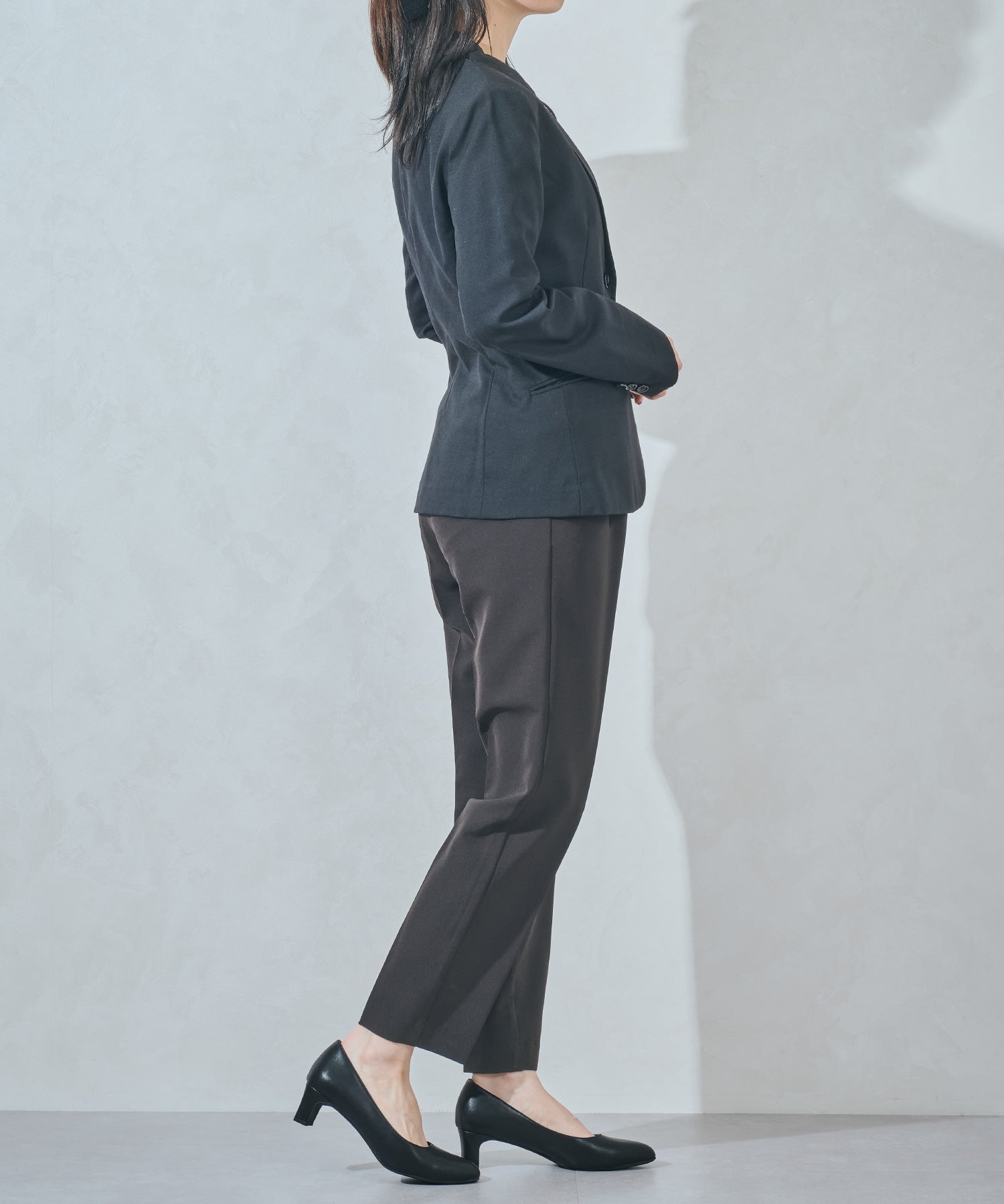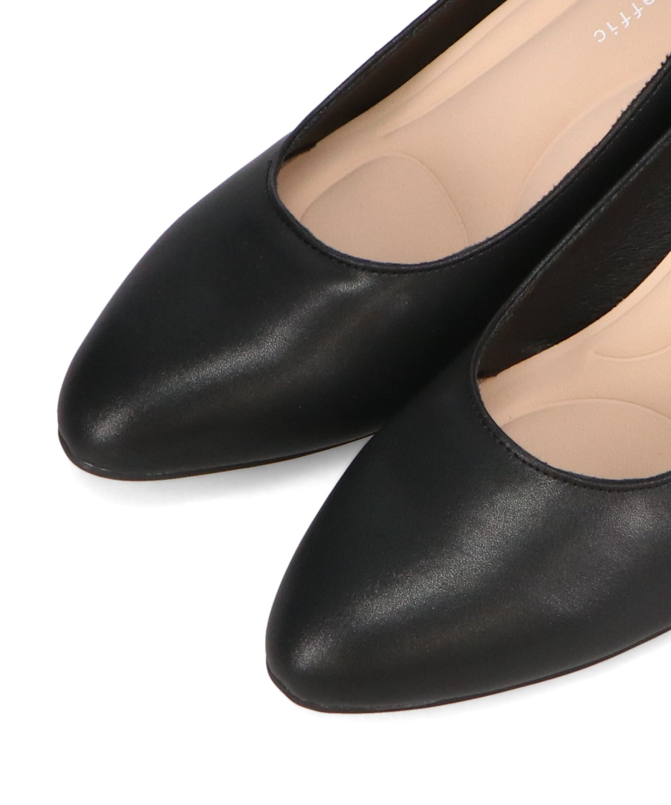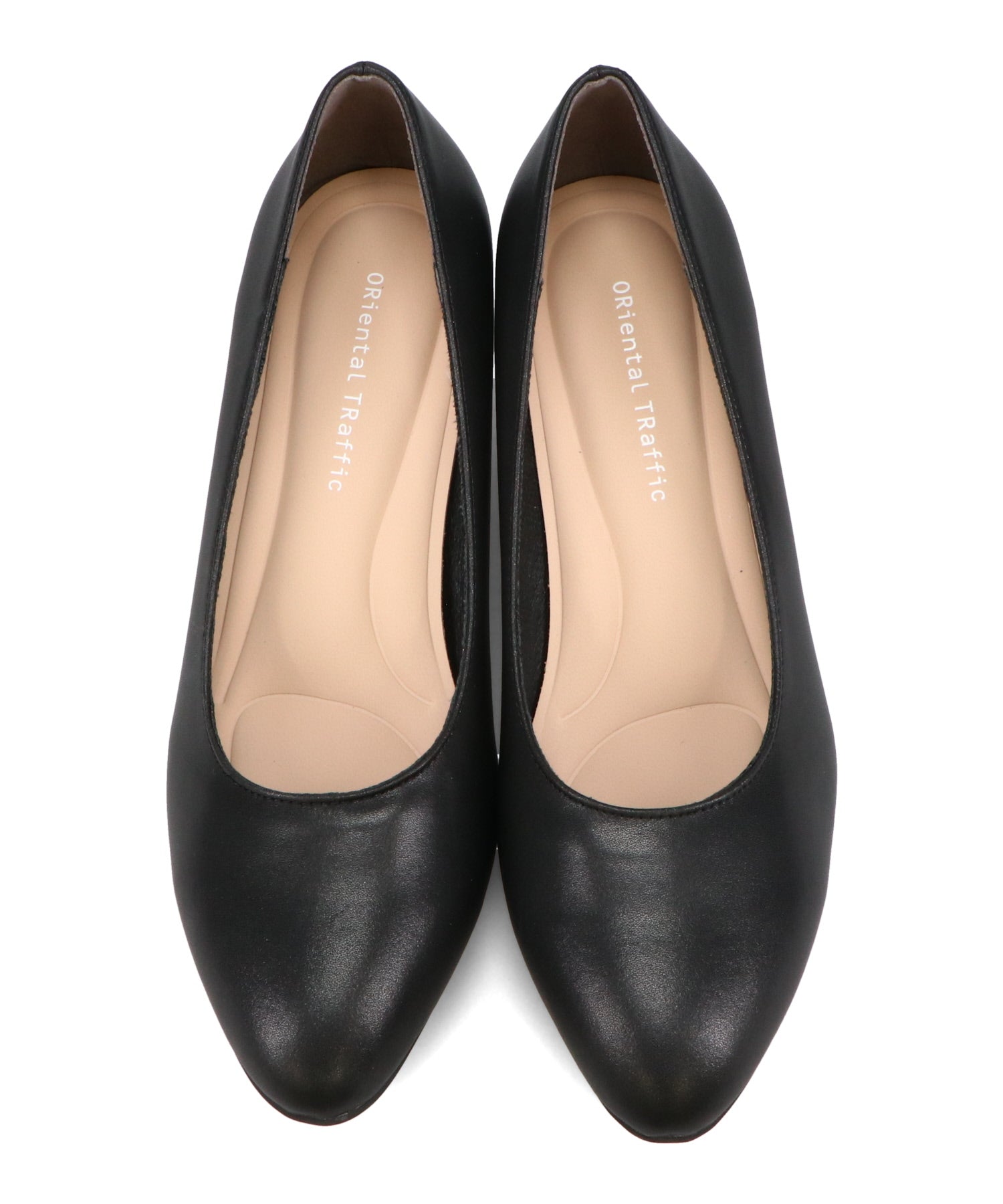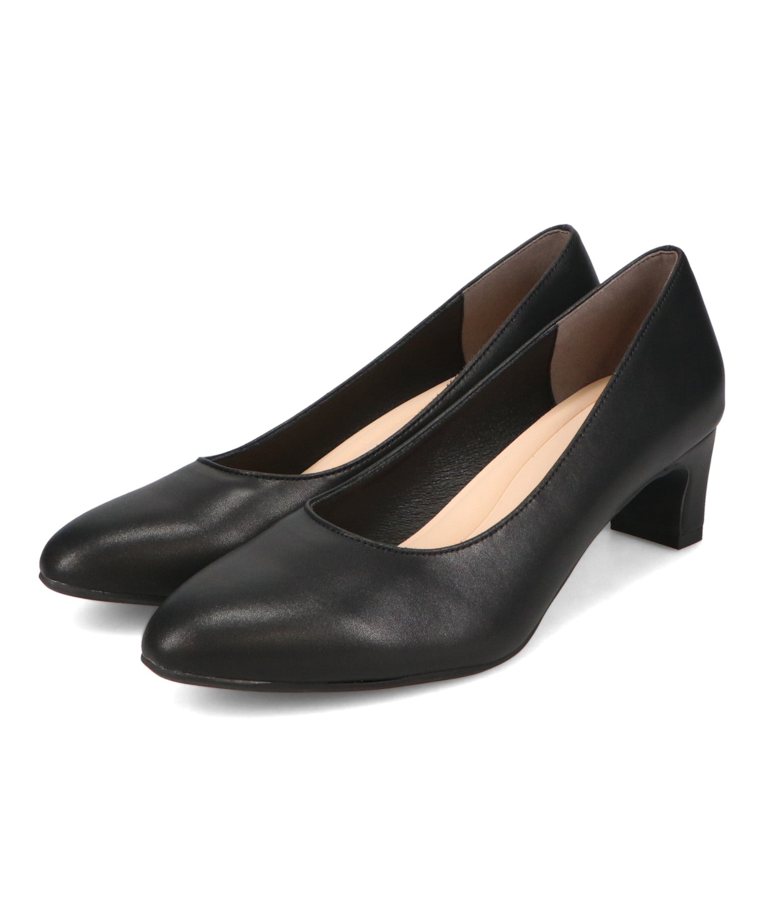 普段使いからビジネスシーンなど幅広く活躍するベーシックなプレーンパンプスは、丸みのあるラウンドトゥで女性らしい雰囲気に。厚手クッション入りの中敷は凹凸を付けたオリジナルのデザインで、より足裏に柔らかさを感じる仕様に。4.8cmの程よい高さのプレートヒールと、安心感のある履き心地で長時間の使用も楽なのでヒールが苦手な方にもおすすめの1足。