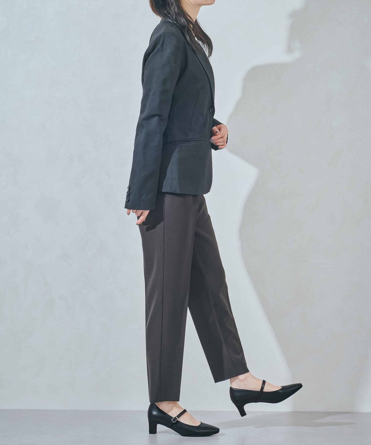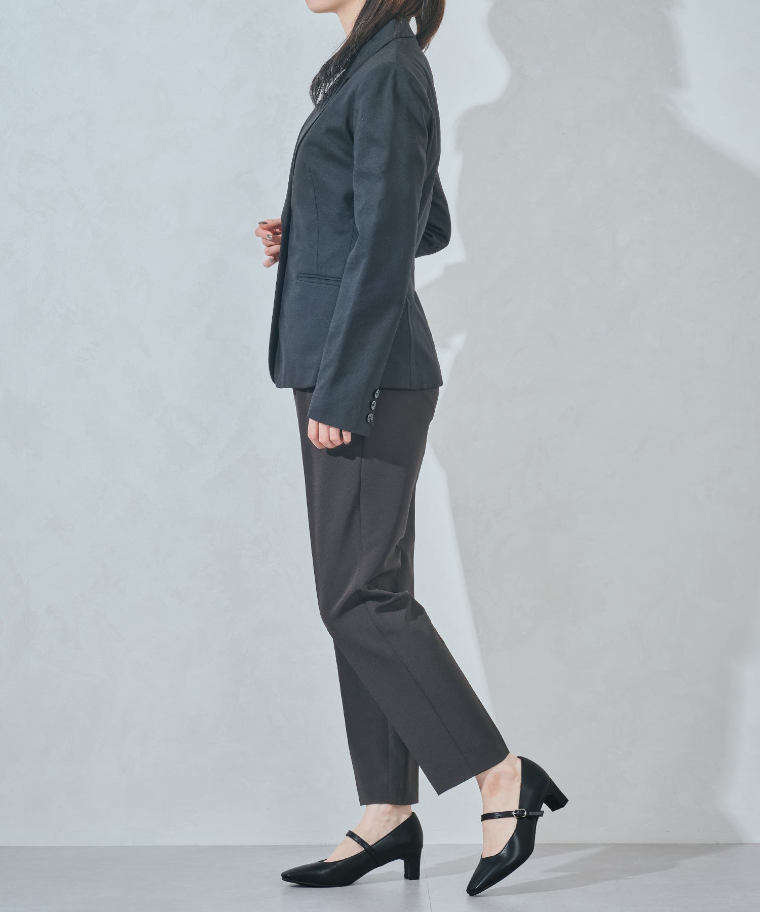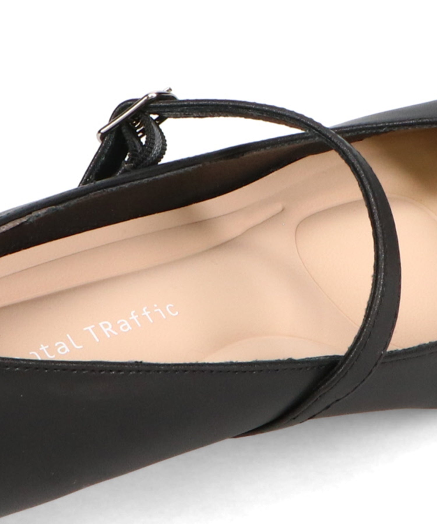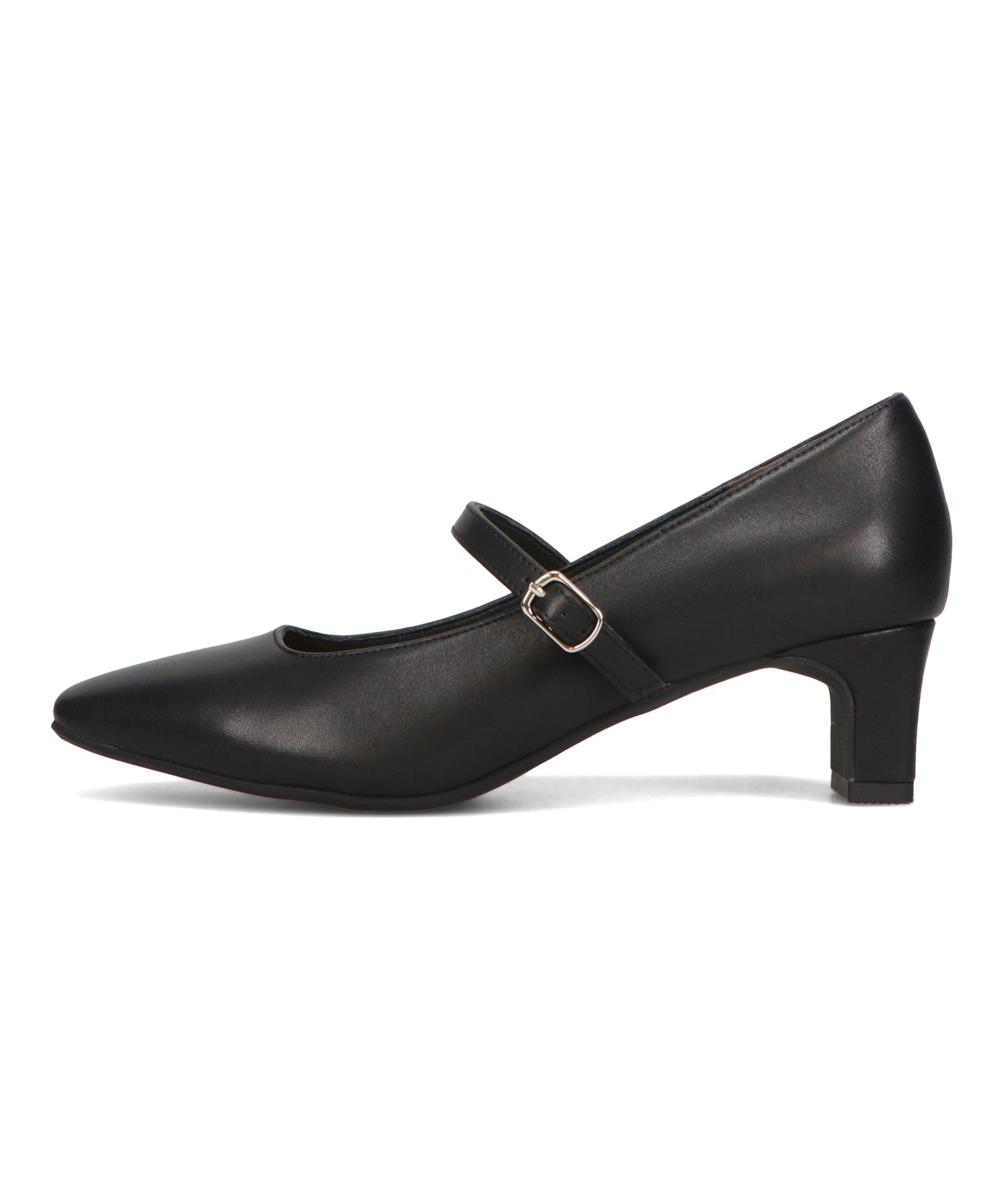 すっきりとした細身のスクエアトゥに太めのプレートヒールがこなれ感を演出するストラップパンプス。甲にフィットする華奢なストラップには隠しゴムが付いているので着脱のしやすさも考えられた作り。肉厚なクッションを入れたインソールで足裏への負担も軽減してくれる。通勤用やきちんとした場面にも合わせられるパンプスは、1足持っていると便利なアイテム。