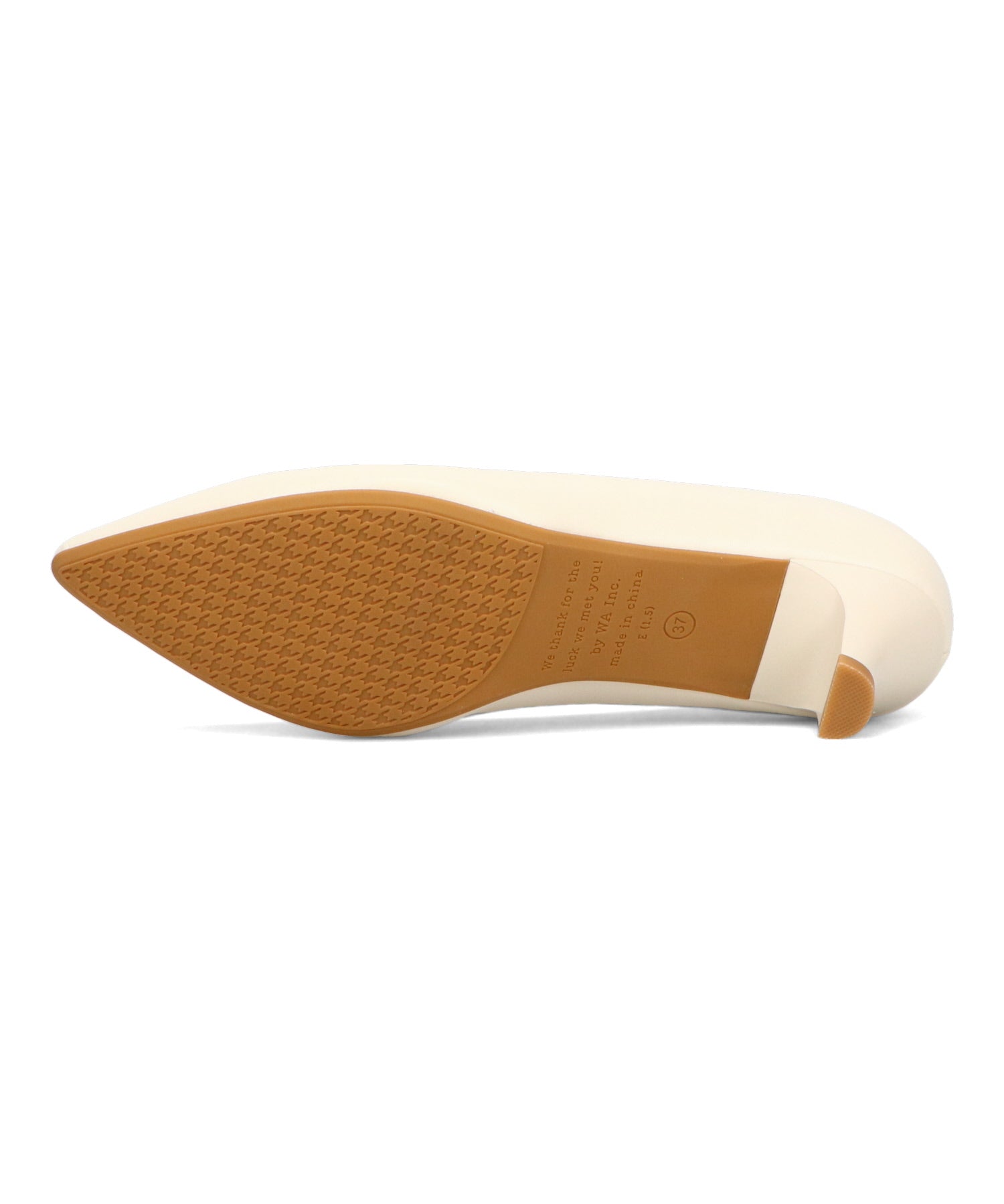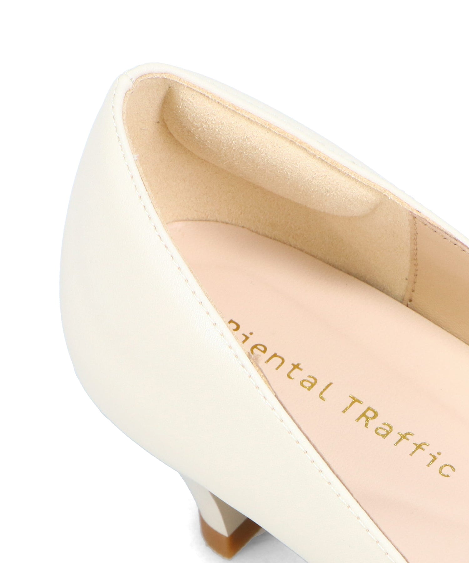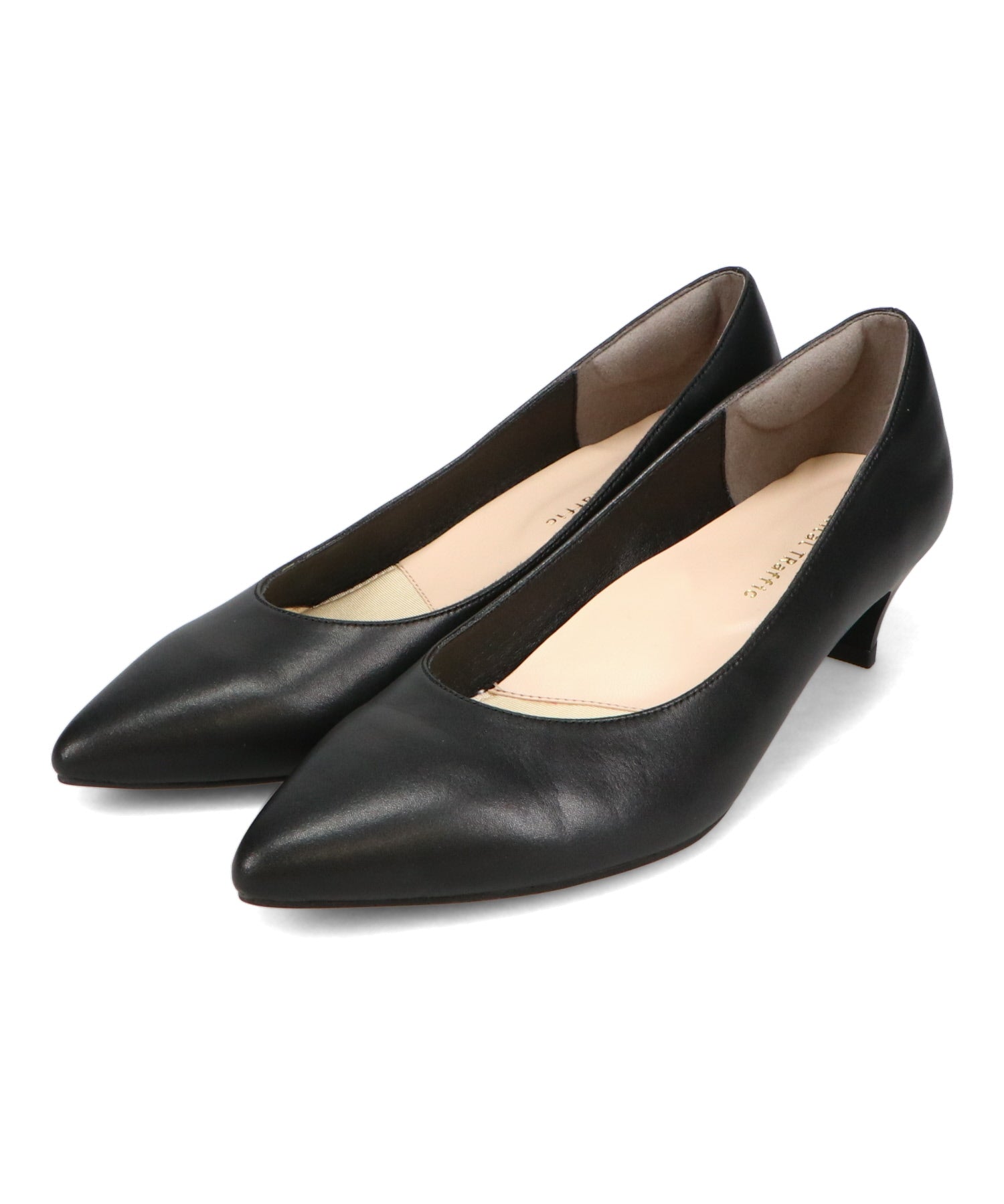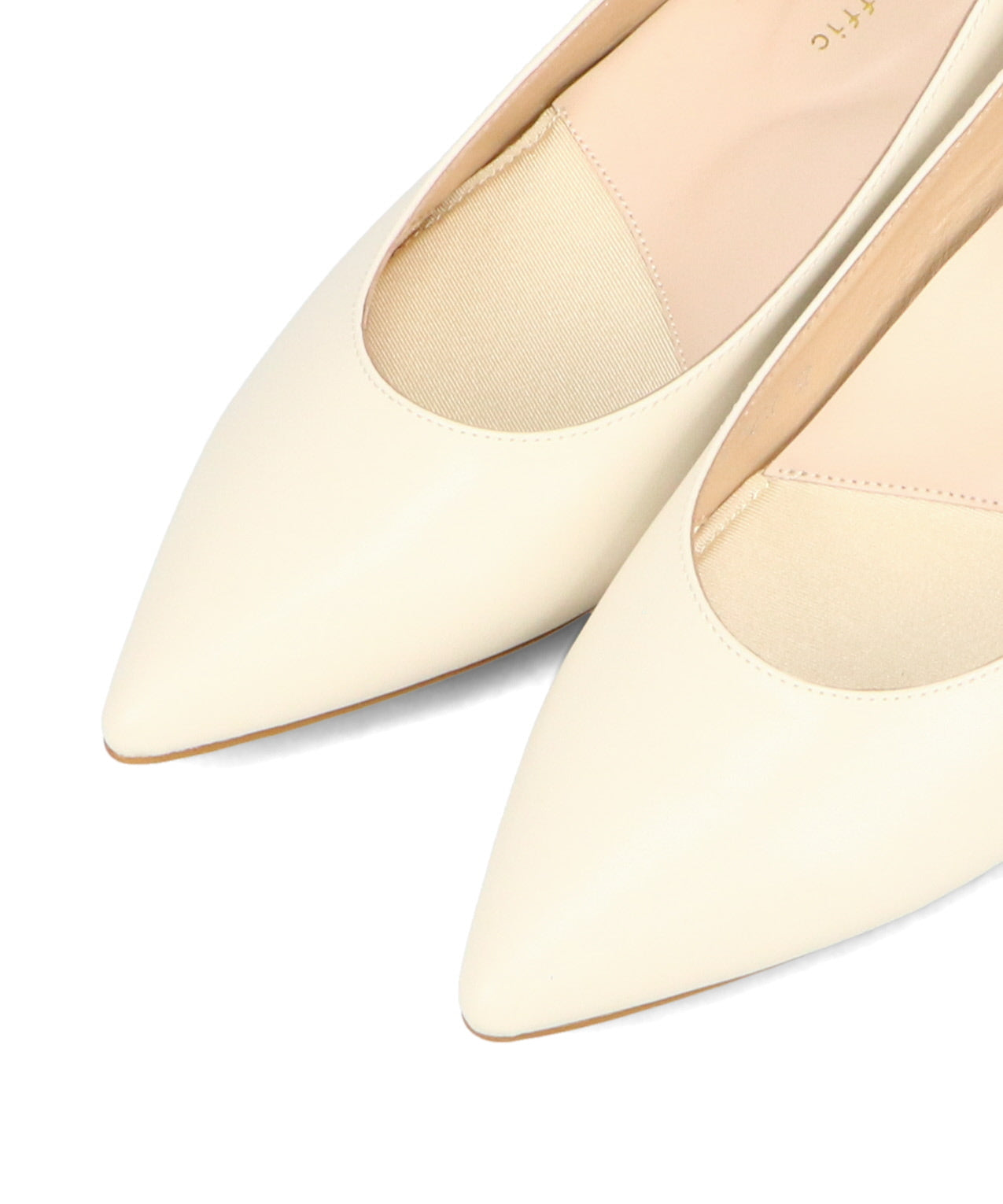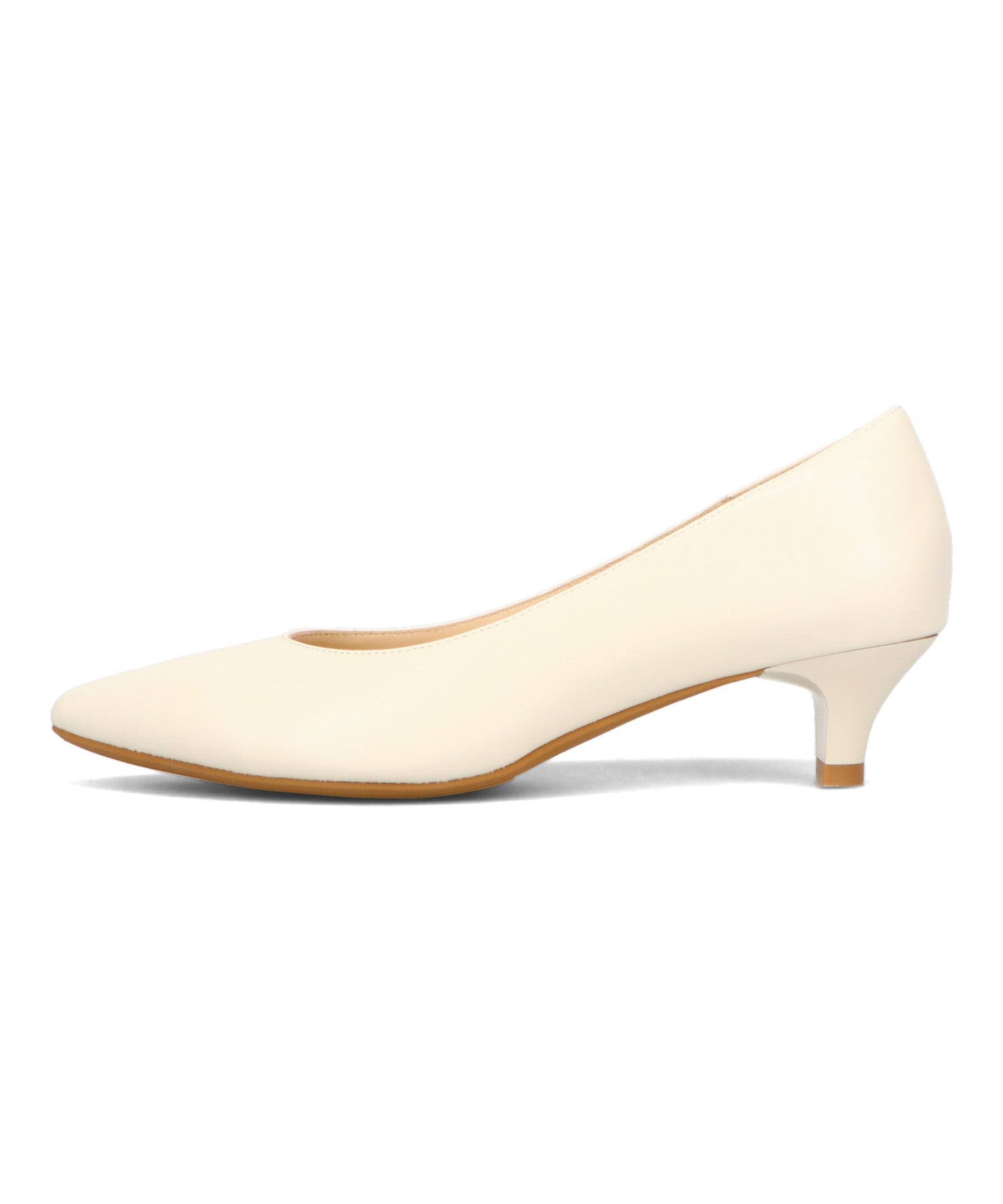 ベーシックデザインのパンプスは上品な艶感のあるスムース合皮でデイリーから通勤用まで幅広く活躍してくれるアイテム。スッキリとしたポインテッドトゥが女性らしく、くびれのあるヒールで華奢な印象にしつつも低めの4cmの高さで歩きやすい。つま先部分とインソールにクッションを入れ、踵のクッションでホールド感が高いのもポイント。