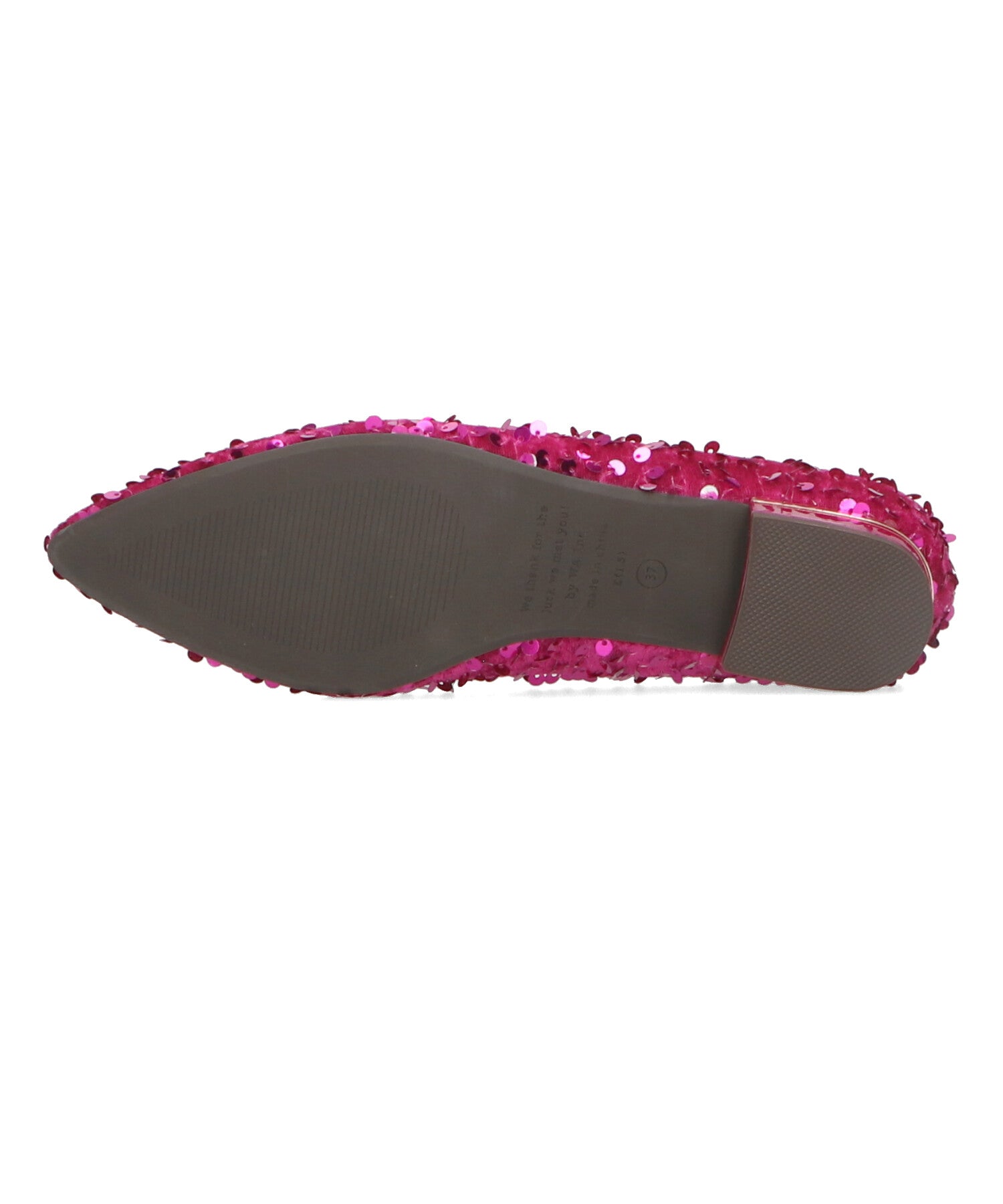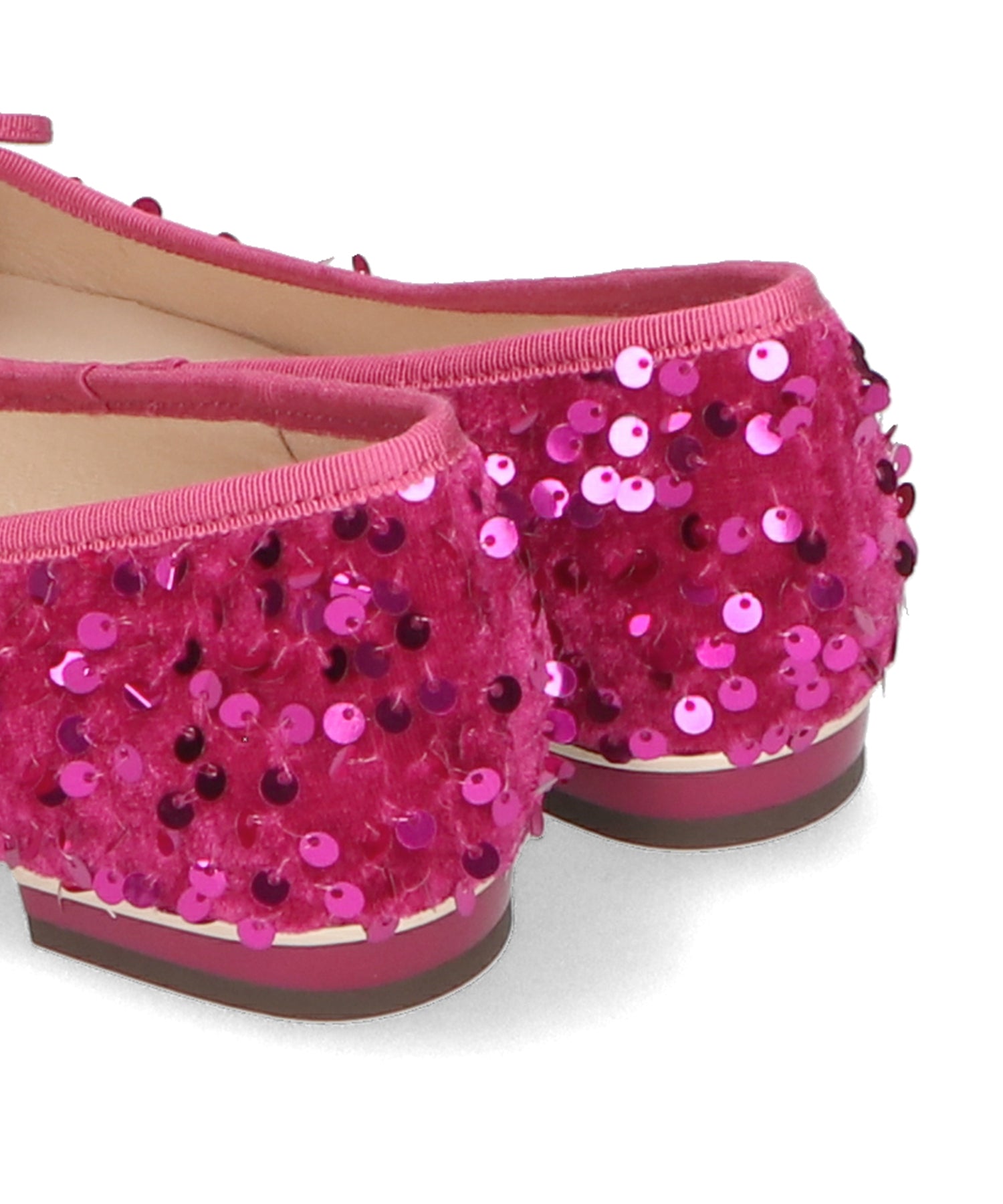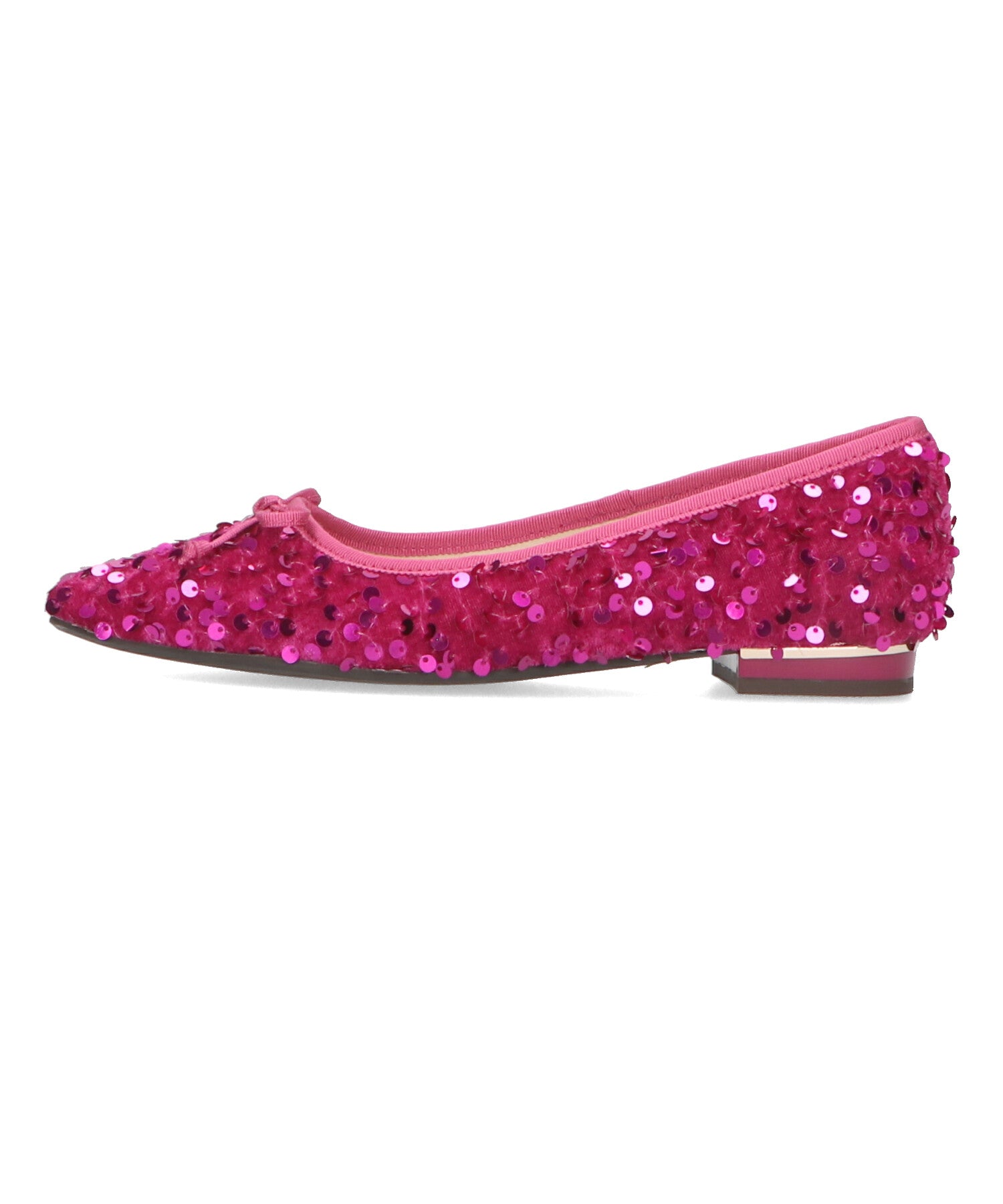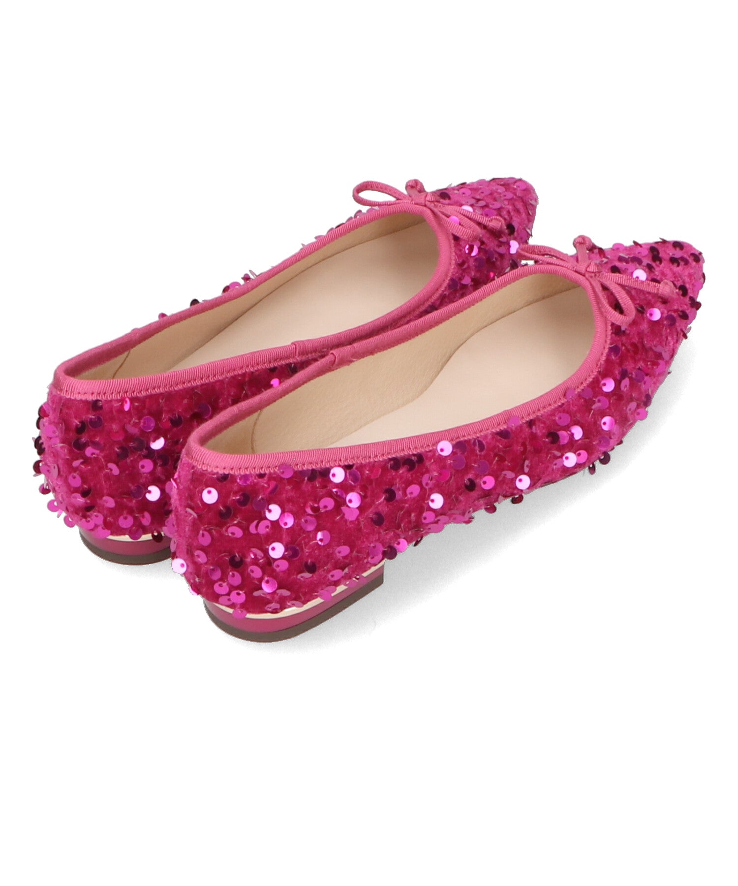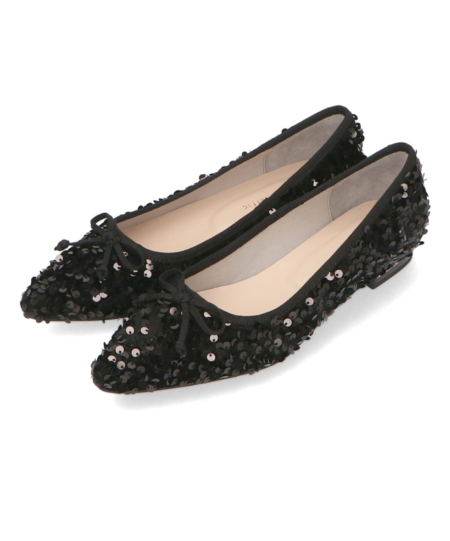 シーズンムード高まる重厚感のある生地に大粒のスパンコールをあしらったバレエシューズはトレンドのキーアイテム。ポインテッドトゥの大人っぽさと、さりげないリボンの甘さのバランスが絶妙で、デイリーに使えるフラットヒールなのも嬉しいポイント。派手すぎないブラックは普段のスタリングに取り入れやすく、主役級のシルバーとピンクは足元に華やかさを添えてくれるおすすめカラー。