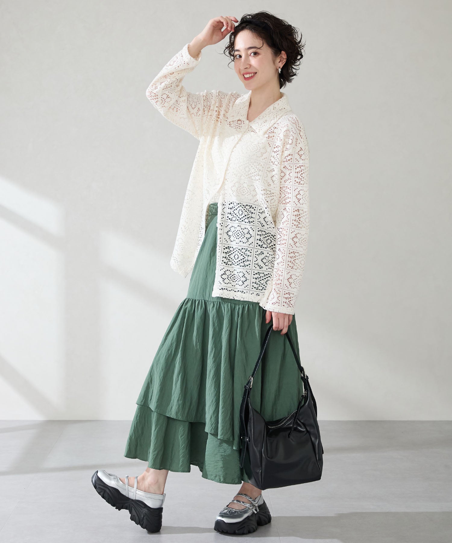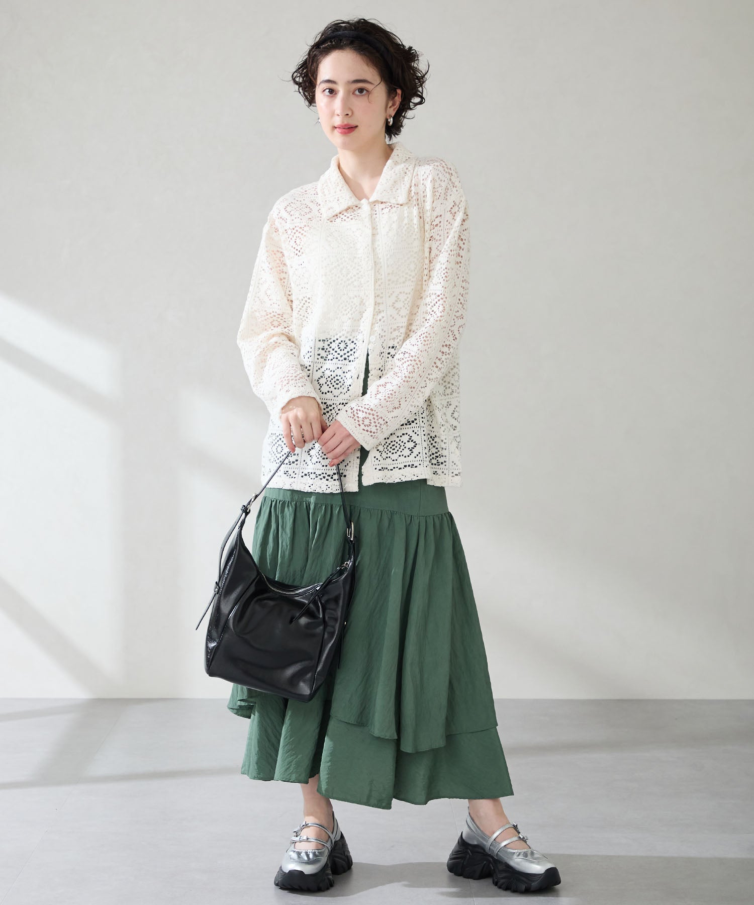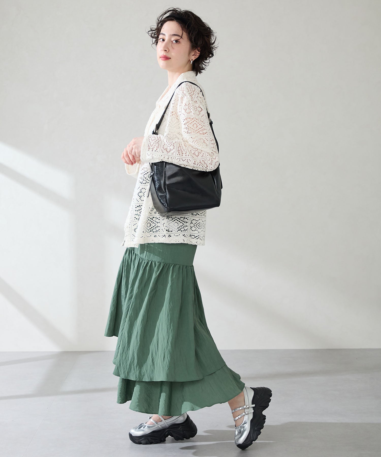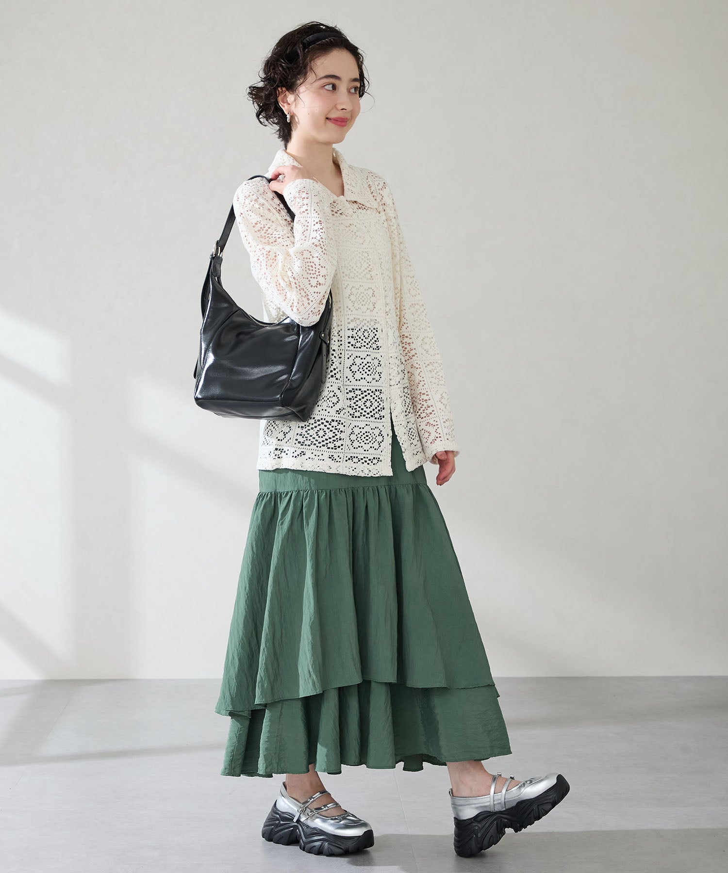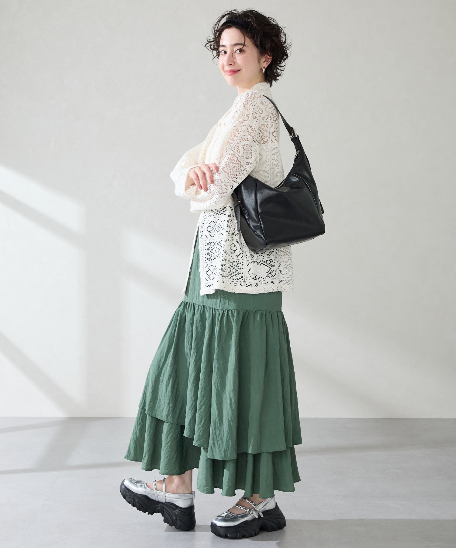 ストラップにさりげなく施したリボンデザインのガーリーさと、スニーカーソールの歩きやすさを両立した厚底シューズ。存在感がありながら華奢なストラップで甲まわりをすっきり見せてくれて、履き口のギャザーデザインが程よいアクセント。高低差が少ない弾力のあるソールでたくさん歩く日でも疲れにくいスポーツMIXな主役級の1足は、ソールをブラックに統一することでまとまりのある印象に。