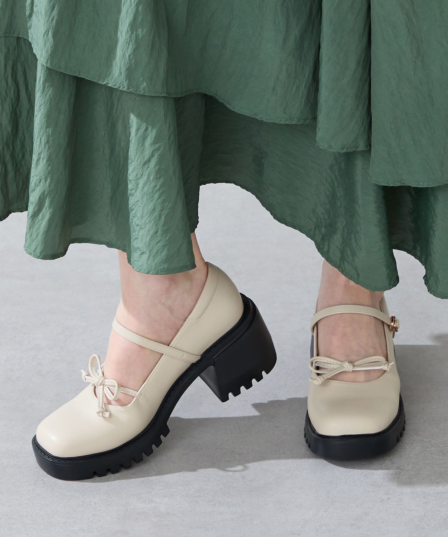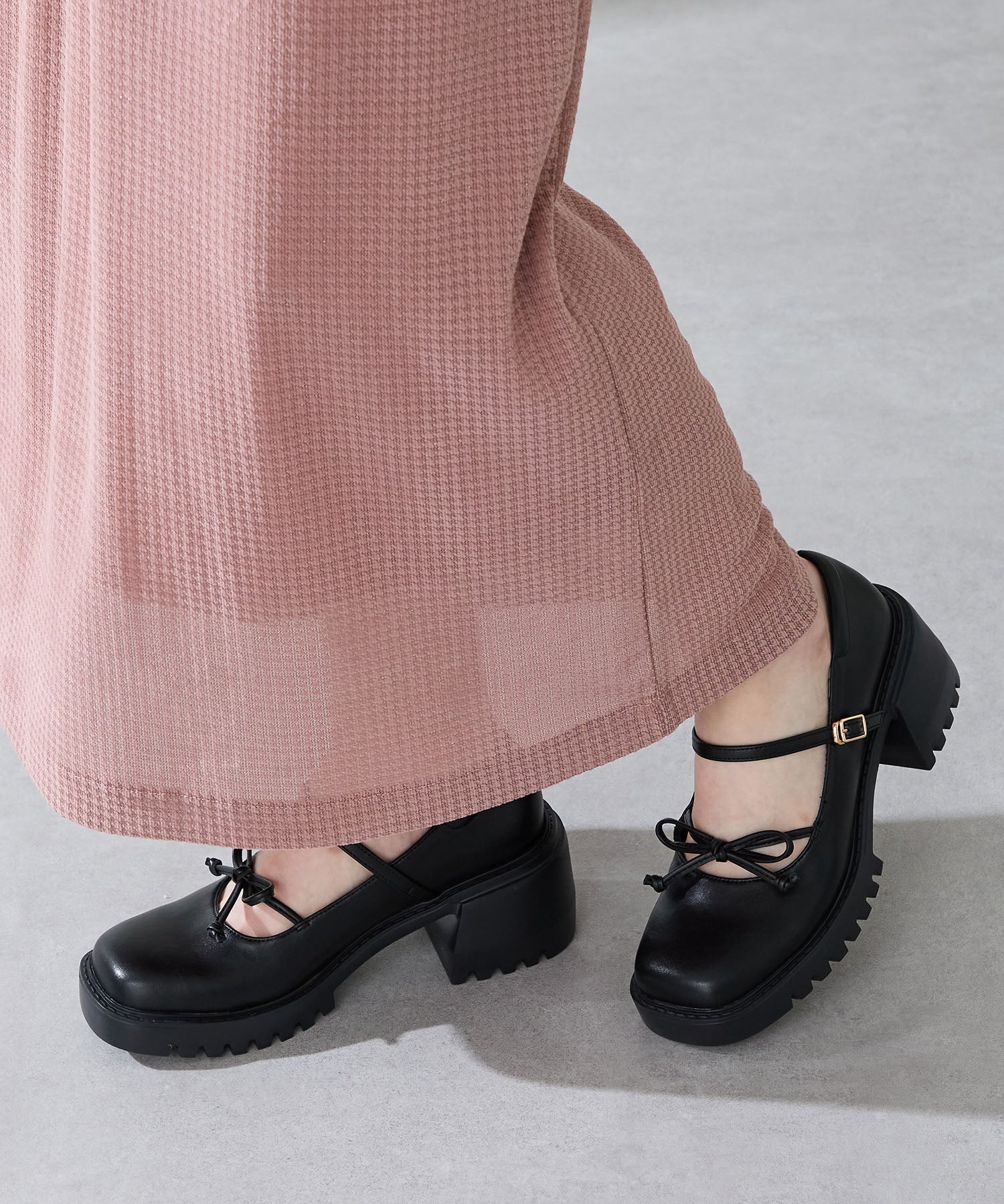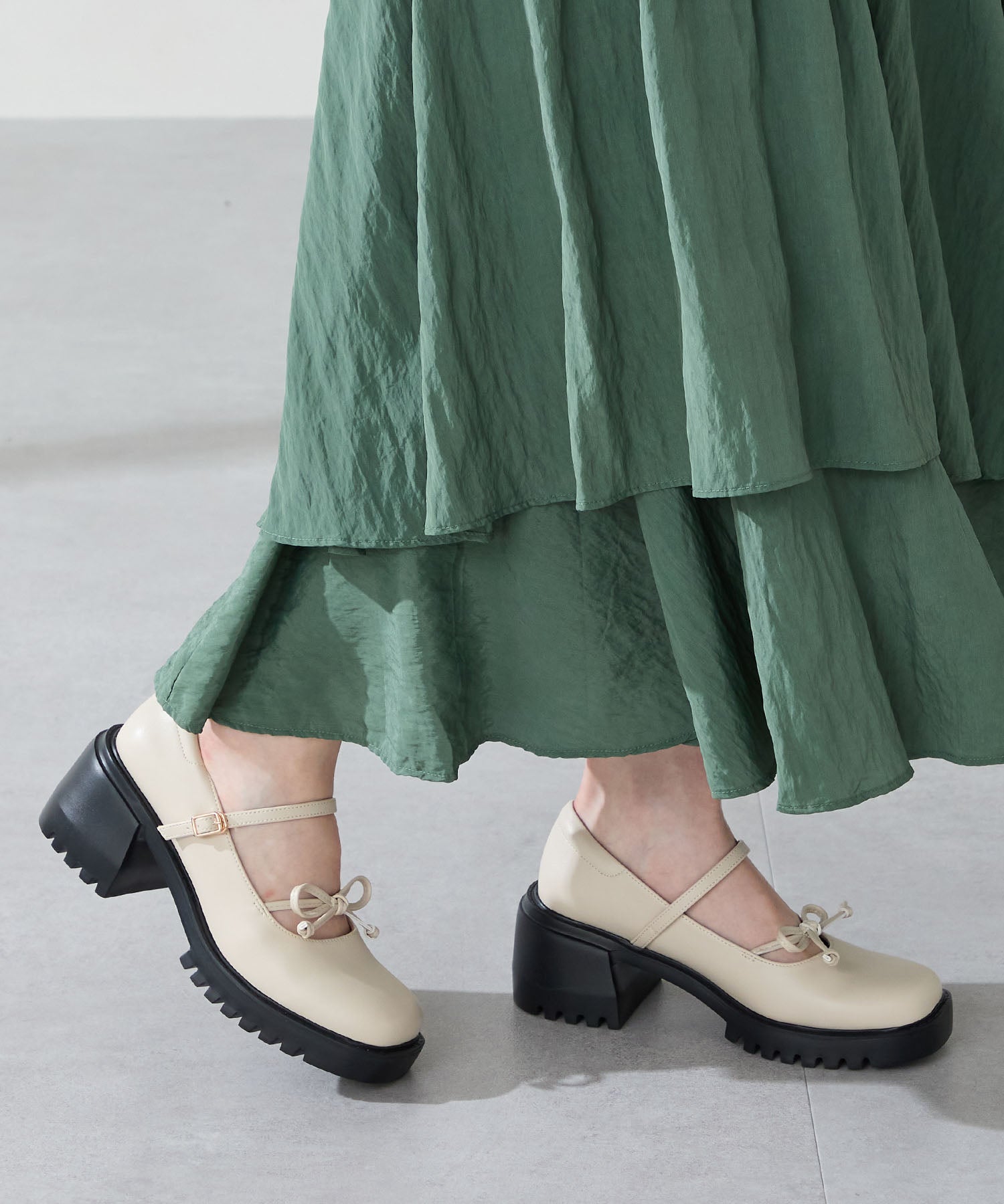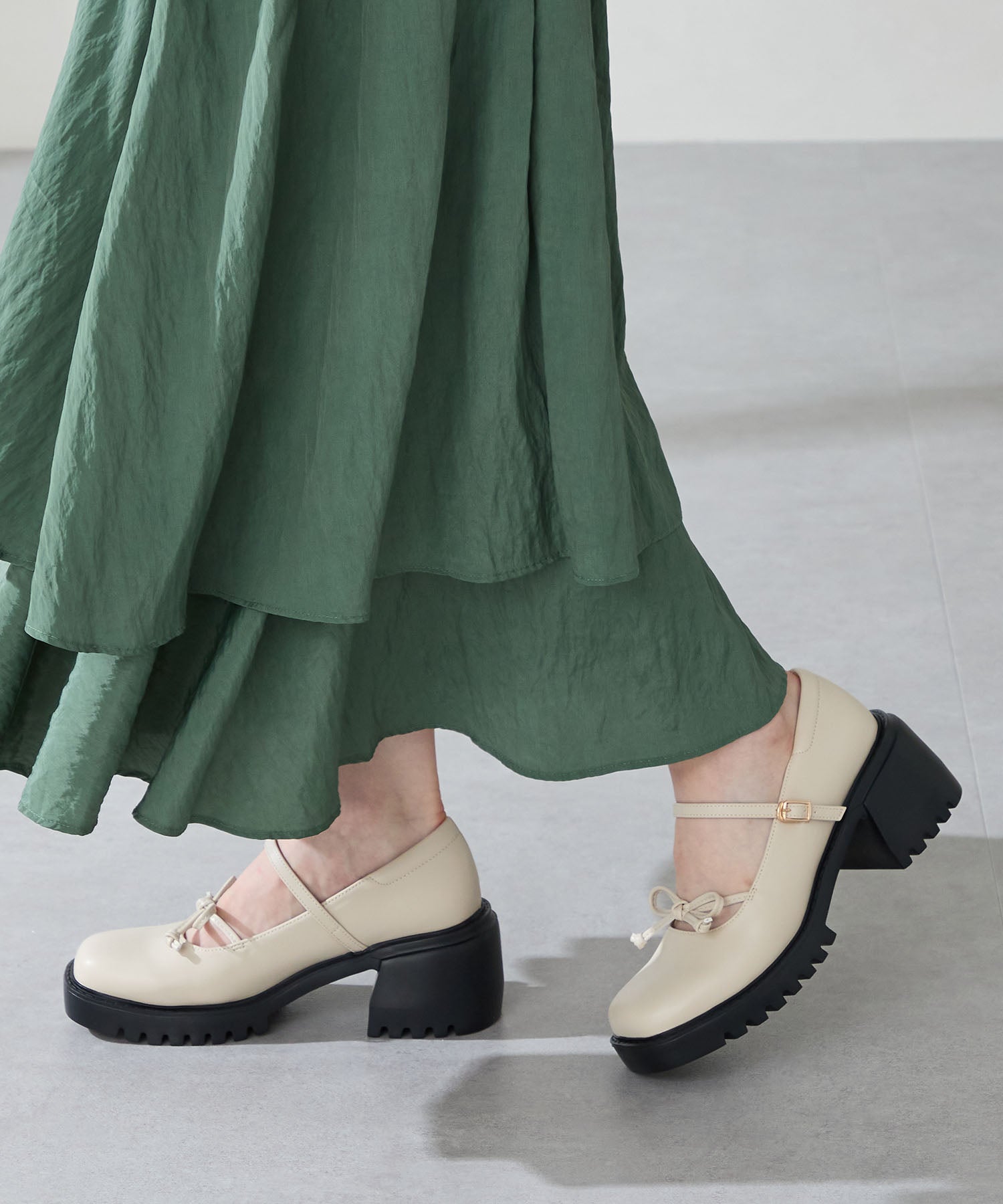 リボンデザイン×厚底ソールで程よく甘さを抑えたダブルベルトシューズ。厚底で足元を綺麗に見せながら、見た目以上の軽量ソールで快適な履き心地を実現。2本のベルトで足をホールドし、フロントにリボンを施した大人可愛いデザインが、コーディネートのアクセントに。踵クッション入りで、長時間の歩行でも疲れにくい嬉しい設計。