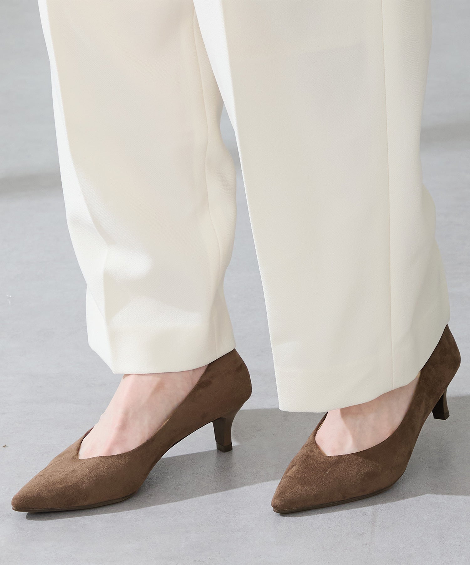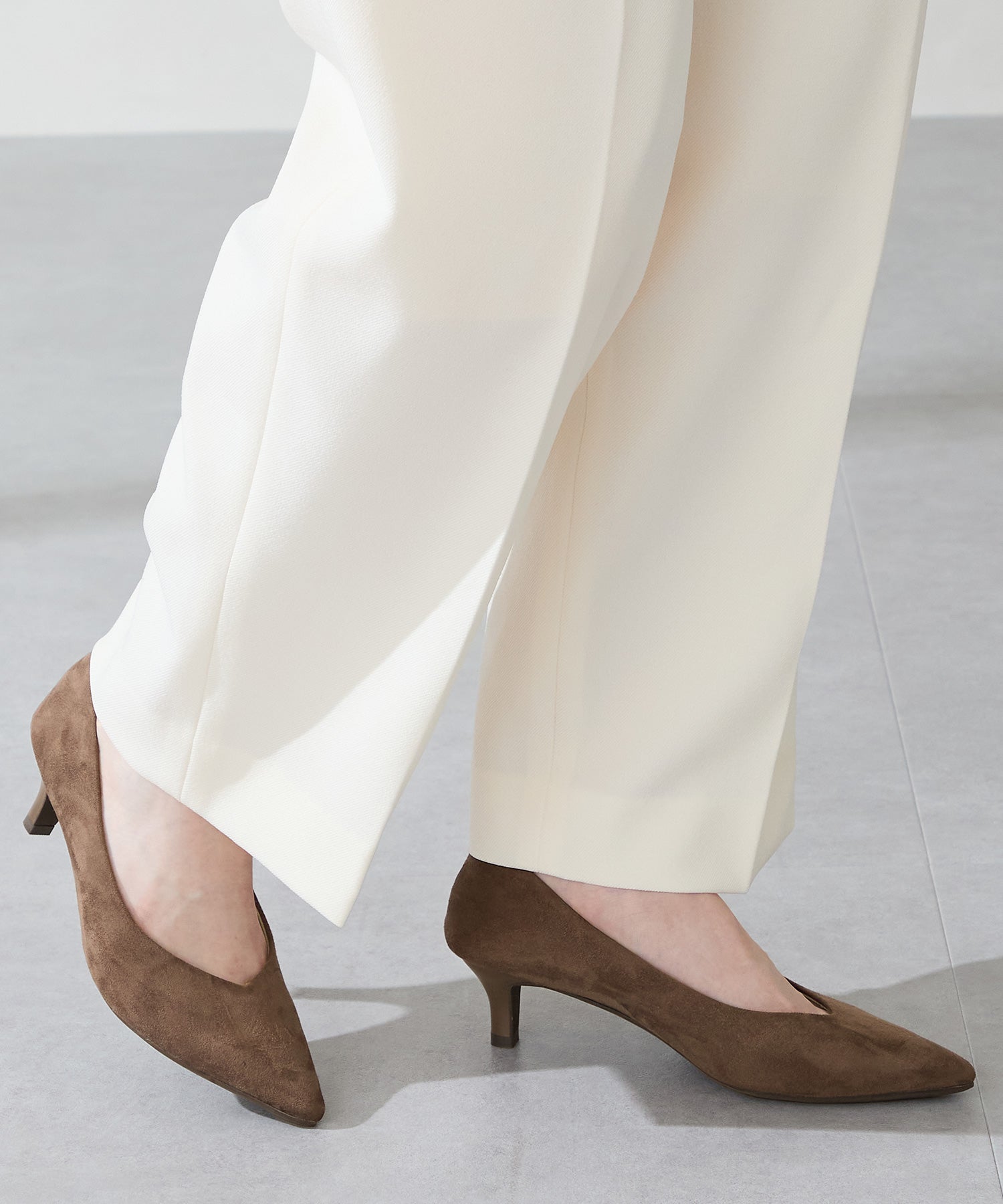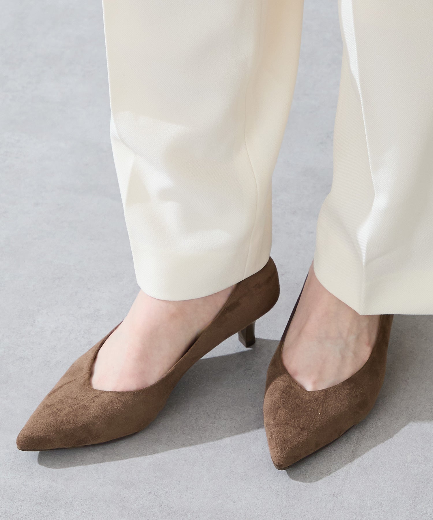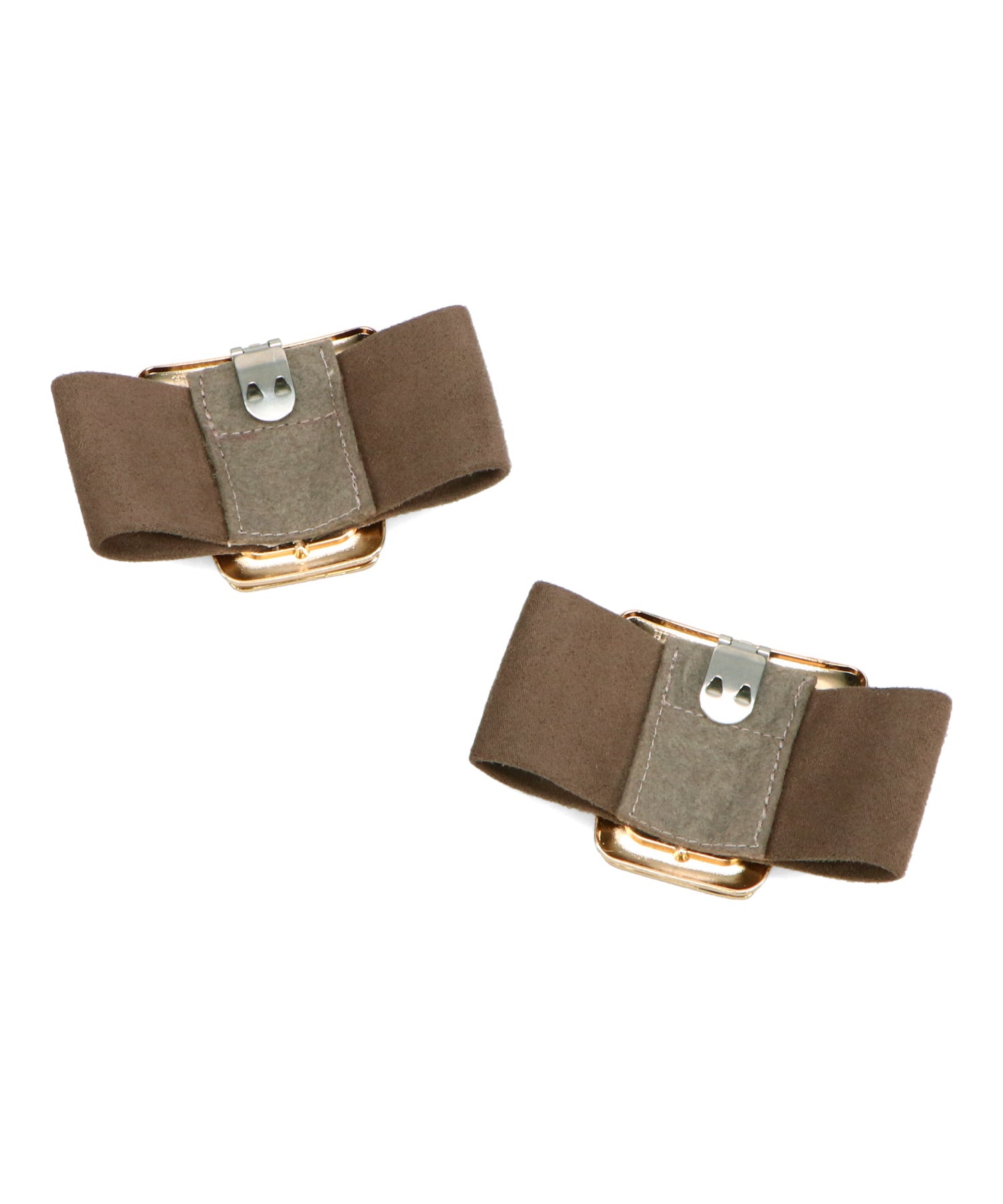 シャープなポインテッドトゥに華奢なヒールが女性らしさを引き立たせてくれるパンプス。クリップ式で付け外しが可能な大ぶりのモチーフは、リボン×ゴールドの組み合わせで上品な印象に。つま先や中敷にクッションを入れることでヒールでも歩きやすさを考えられた作り。足に馴染むスエード素材と、シーンによって使い分けできるデザインで幅広く使える1足。