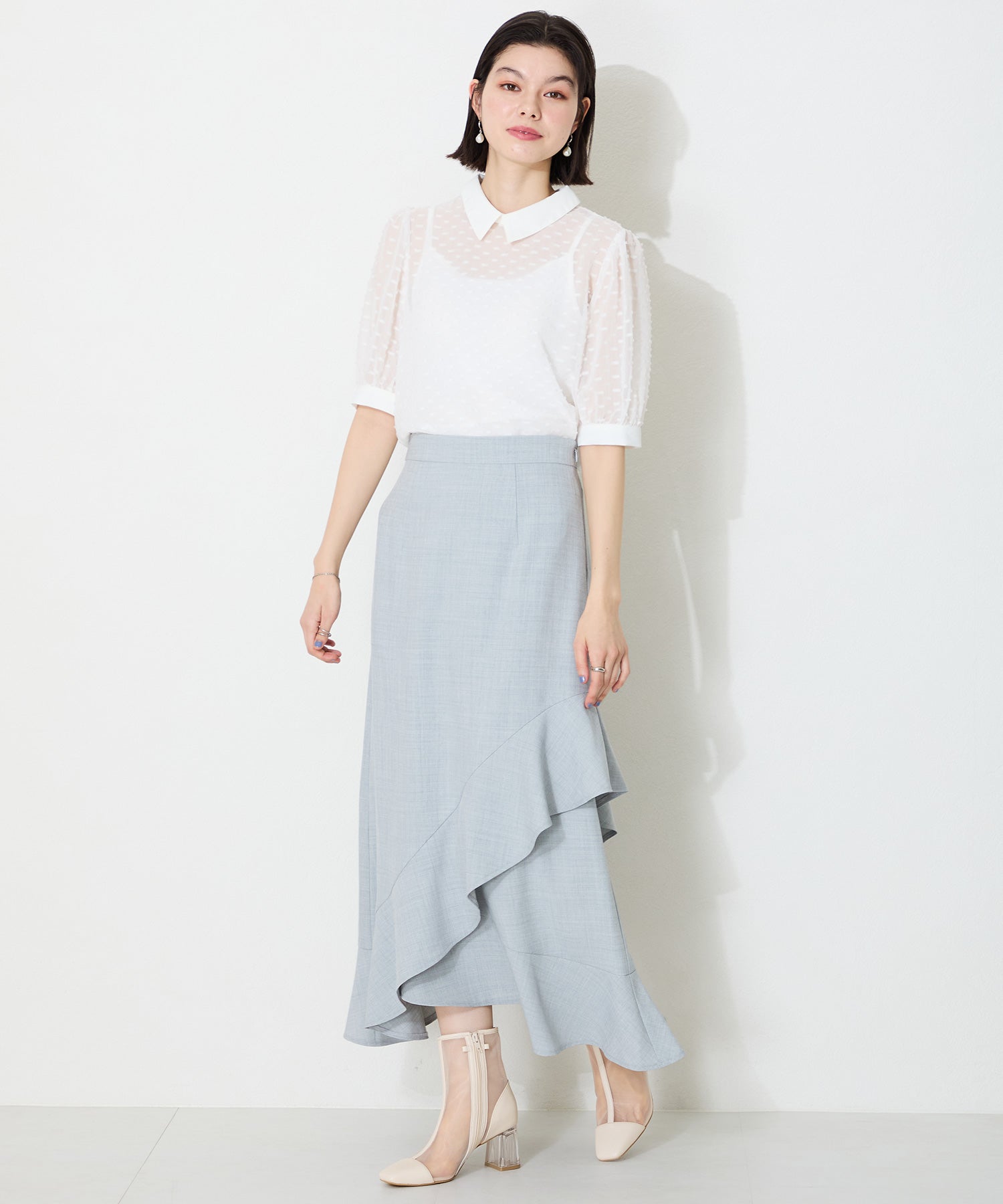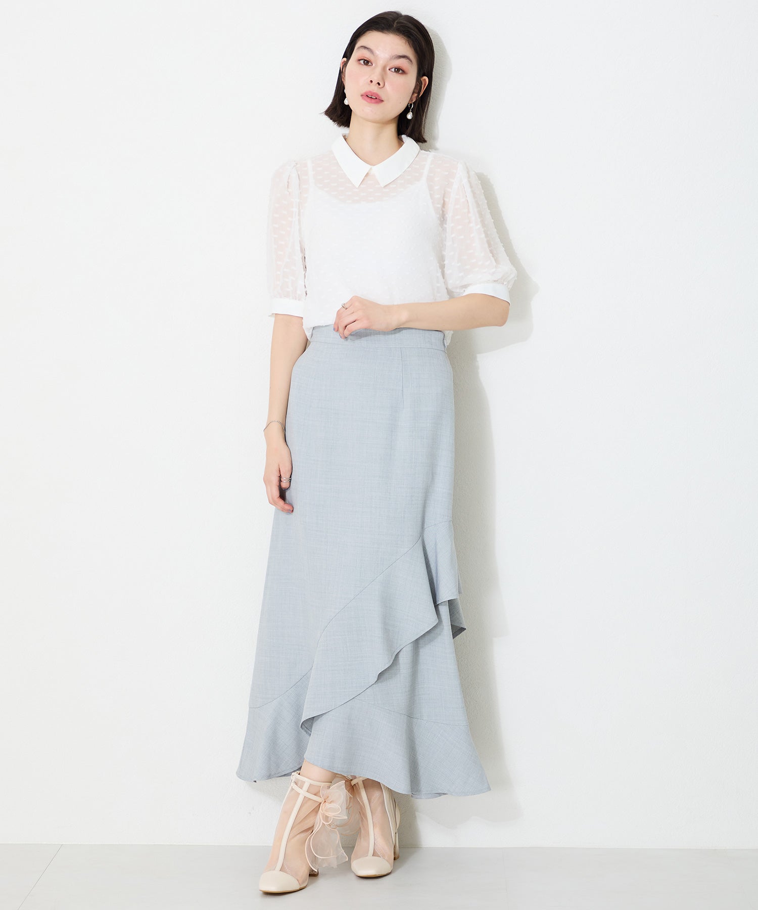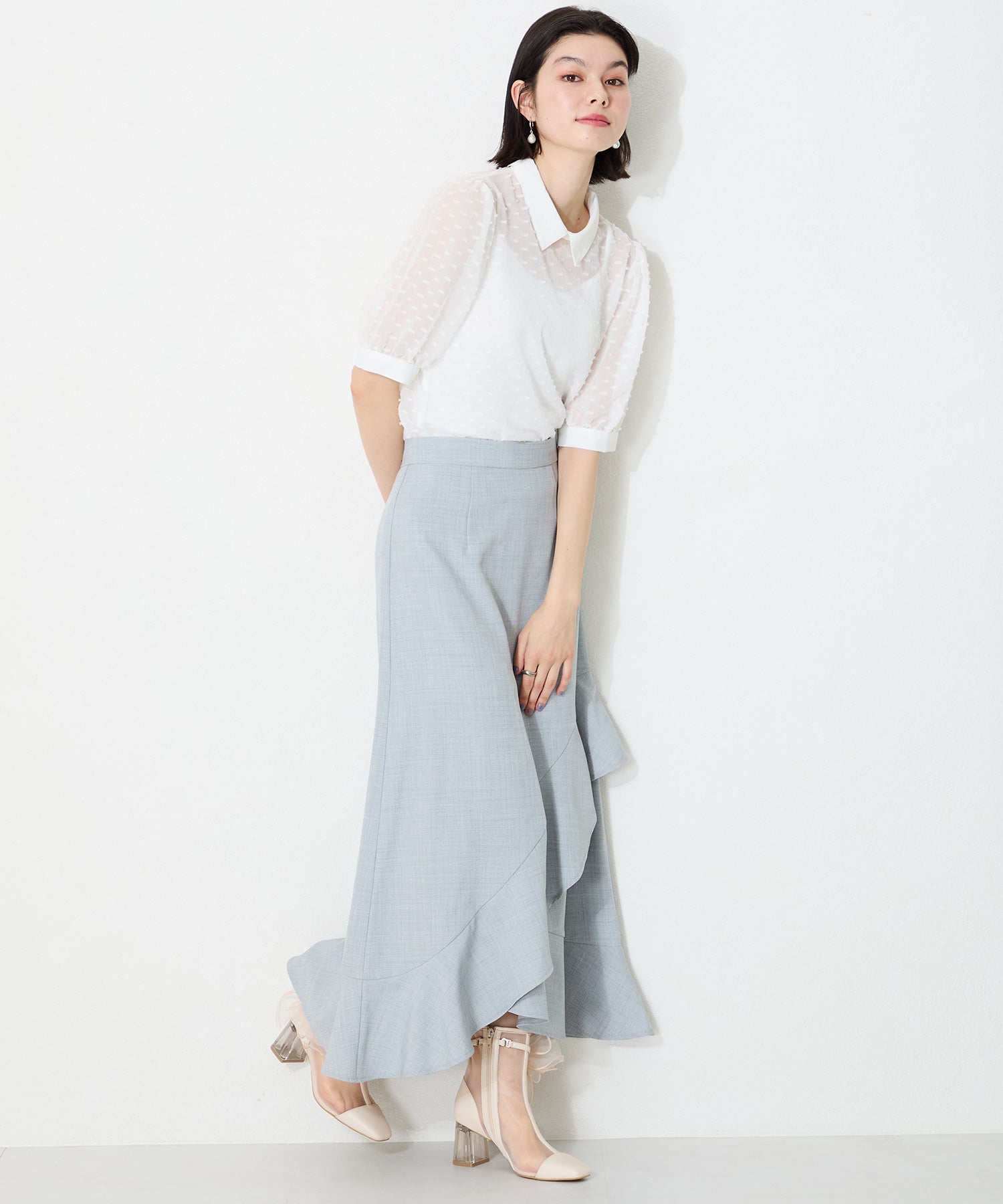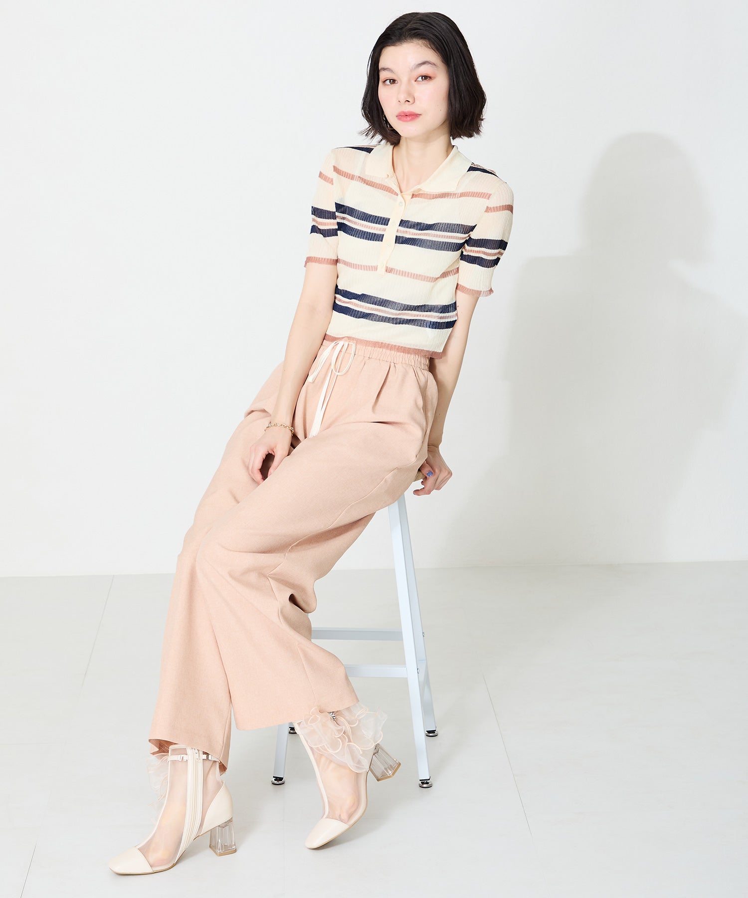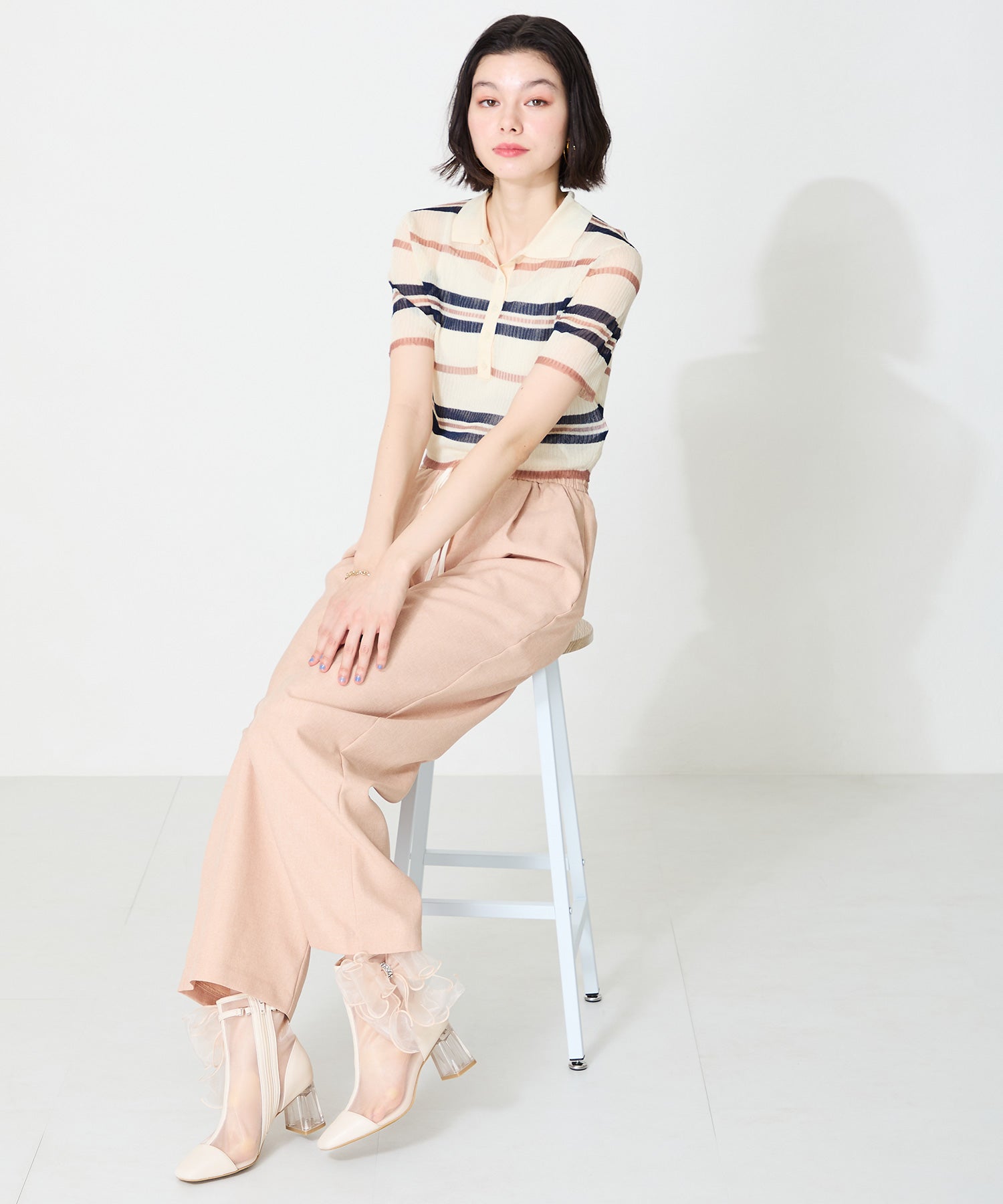 スタイリングの主役になるチュールのショートブーツは、華やかでふわっとしたニュアンスのあるリボンモチーフが旬な足元を演出。リボンベルトは取り外しが可能で、取るとシンプルなブーツとして幅広く活躍する優秀アイテム。ほんのりとベージュカラーを纏ったクリアヒールは大人なムードが漂う雰囲気で履くと気分が高まる特別な1足。