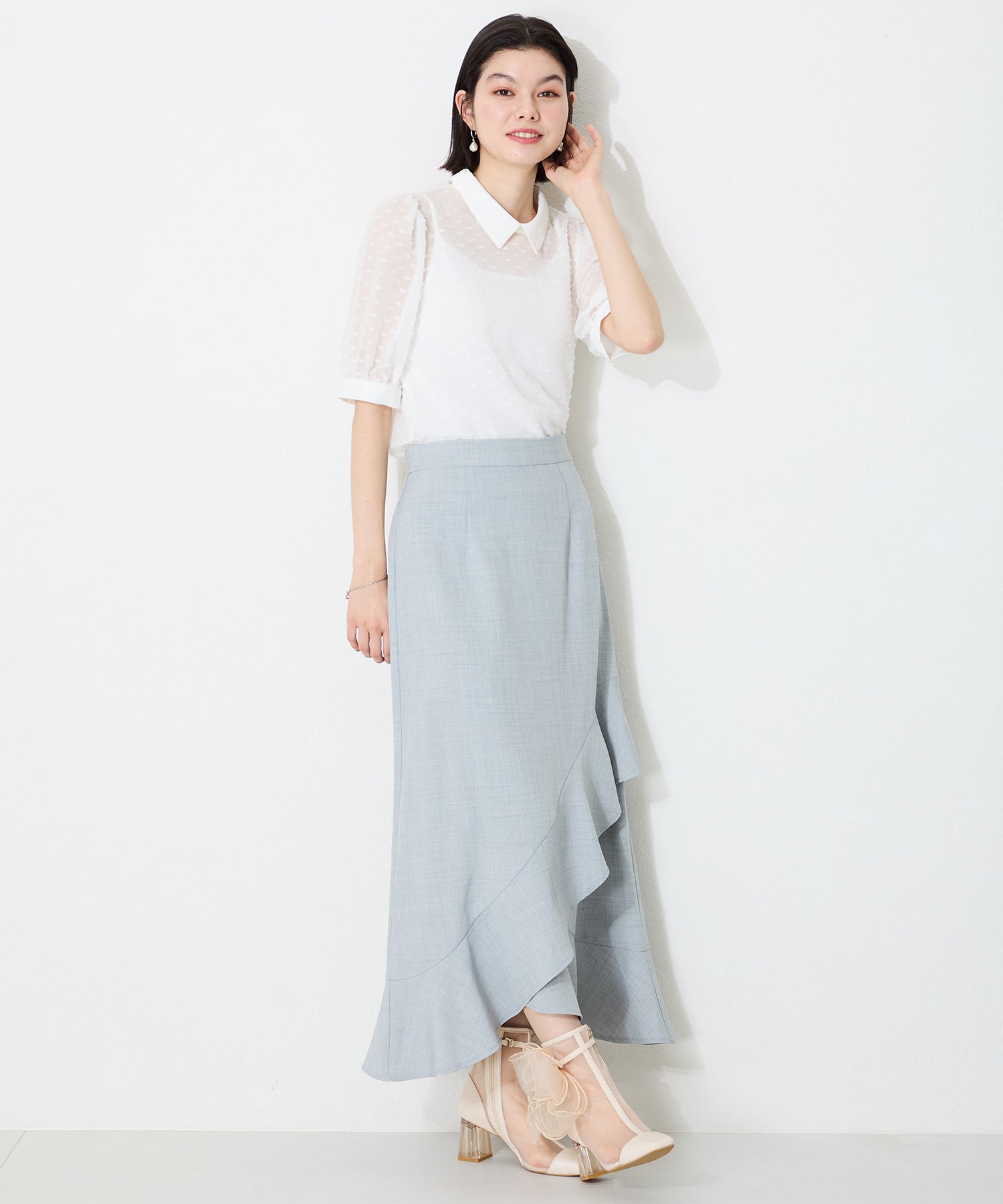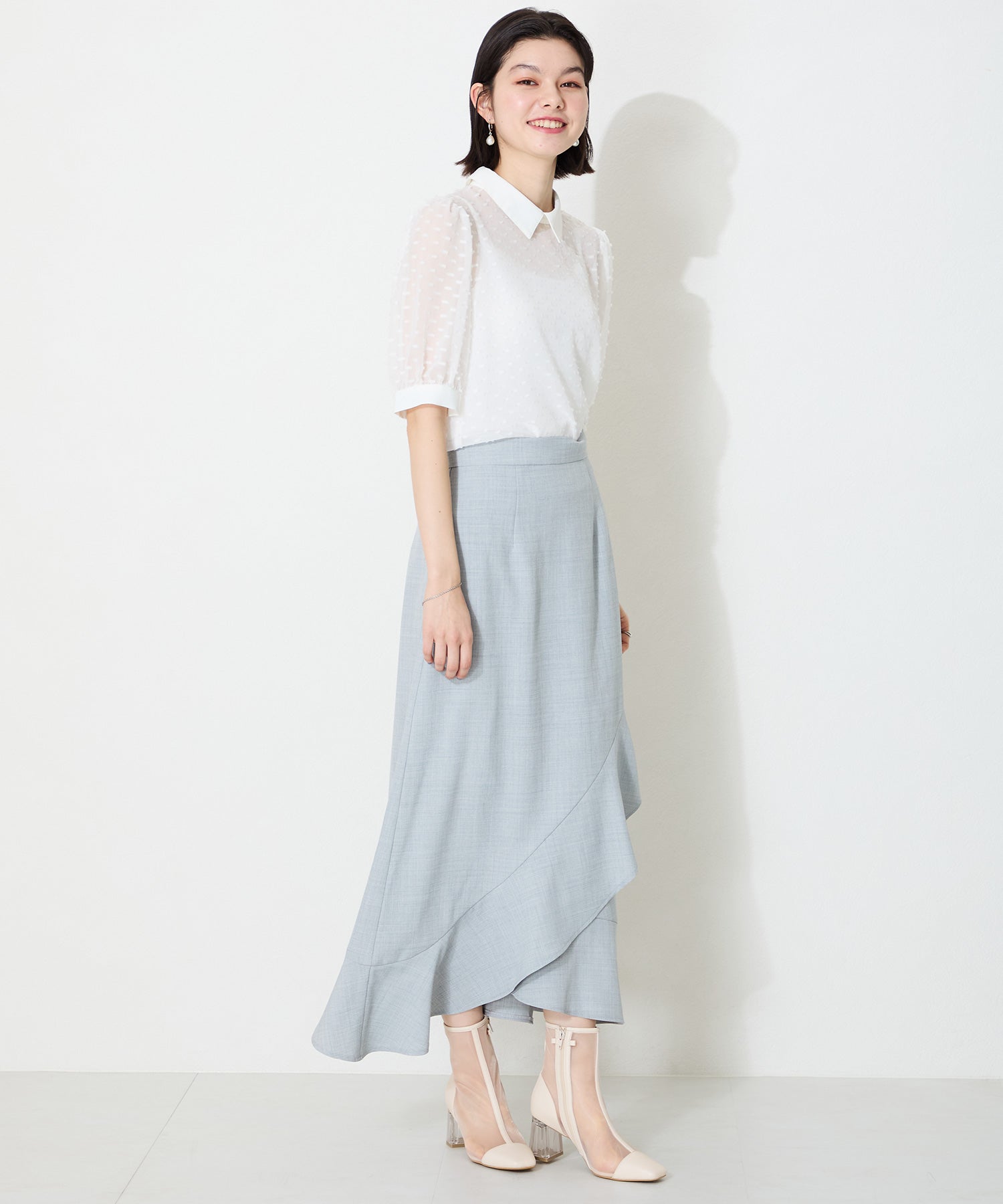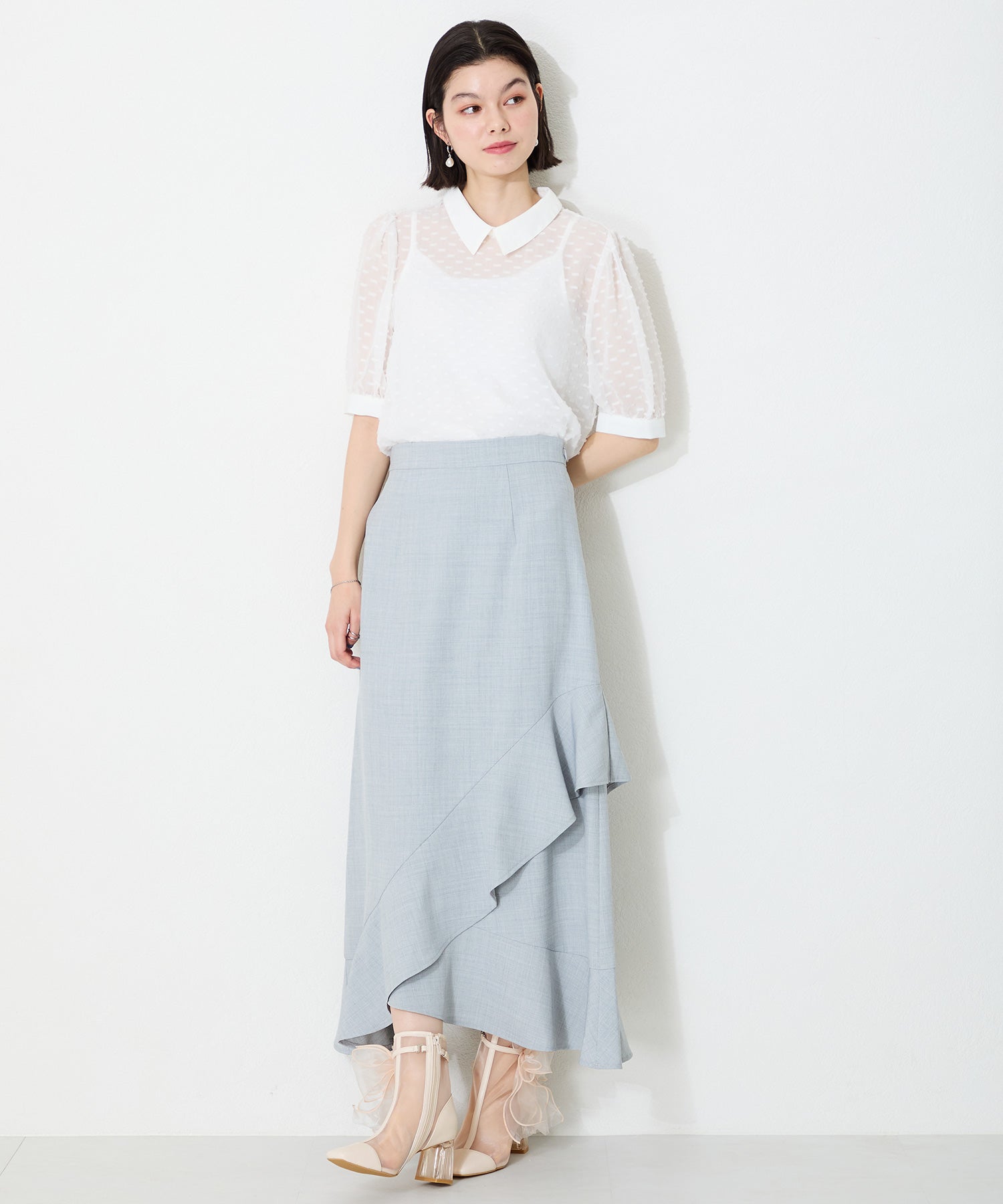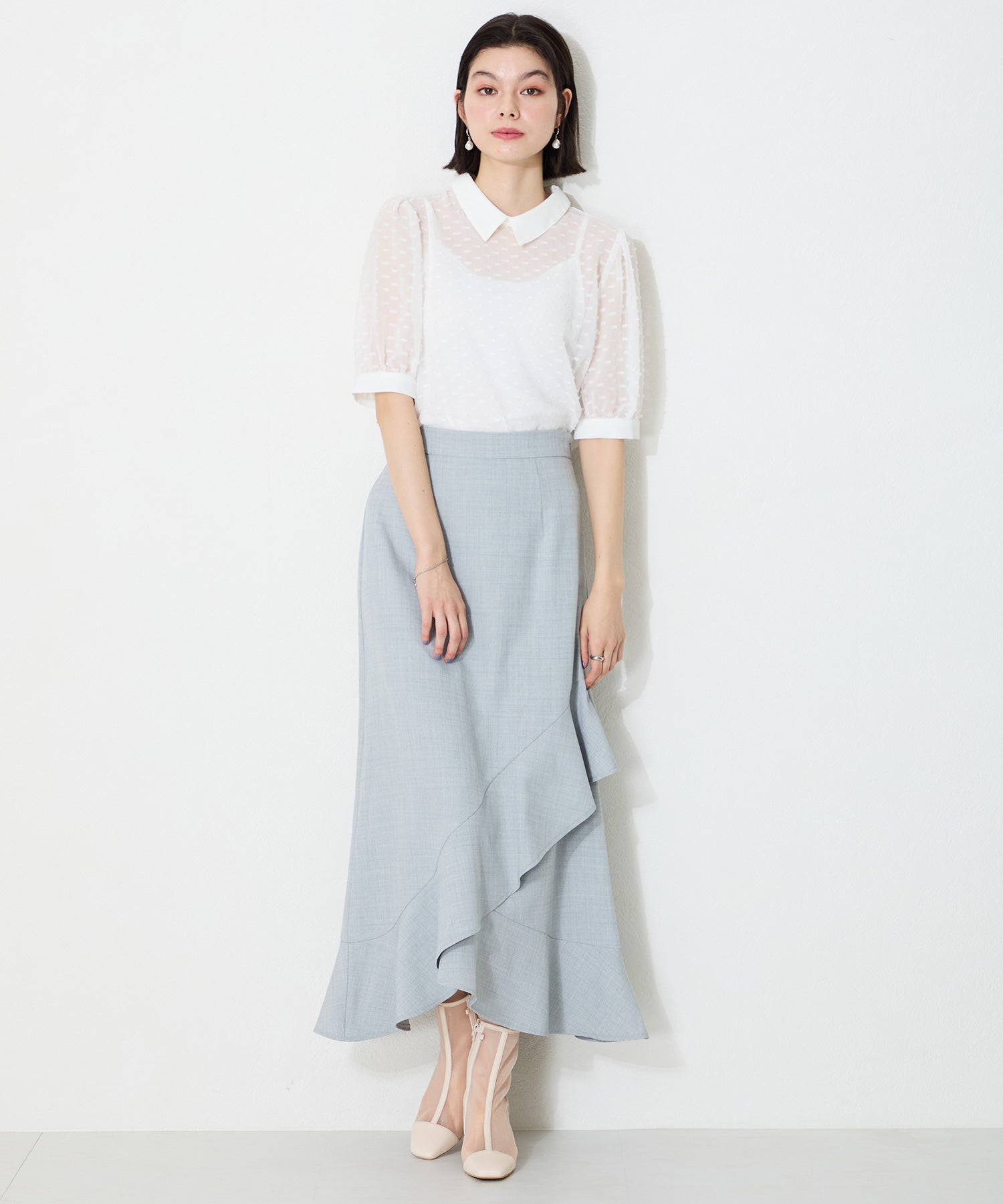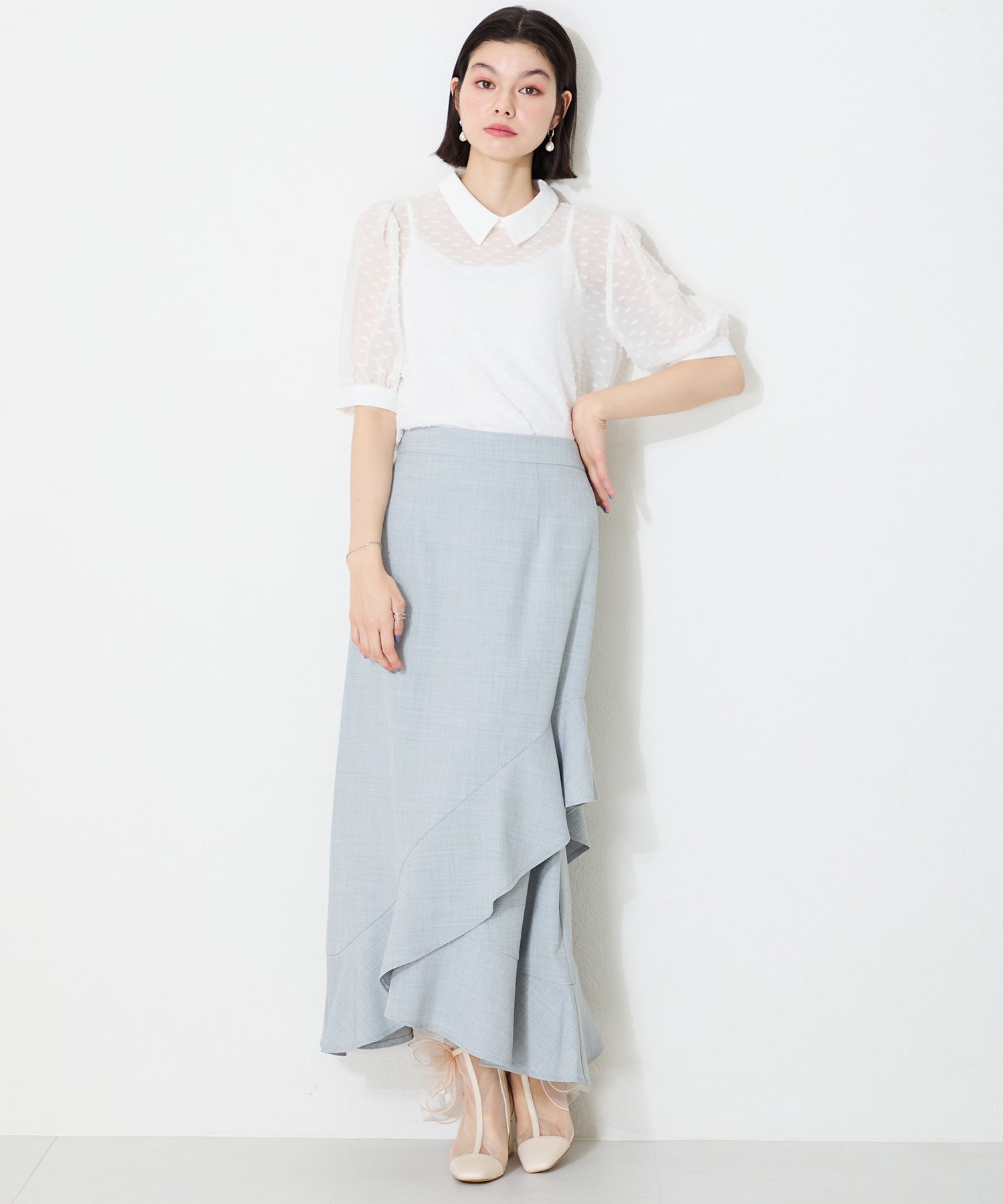 スタイリングの主役になるチュールのショートブーツは、華やかでふわっとしたニュアンスのあるリボンモチーフが旬な足元を演出。リボンベルトは取り外しが可能で、取るとシンプルなブーツとして幅広く活躍する優秀アイテム。ほんのりとベージュカラーを纏ったクリアヒールは大人なムードが漂う雰囲気で履くと気分が高まる特別な1足。