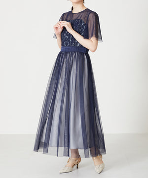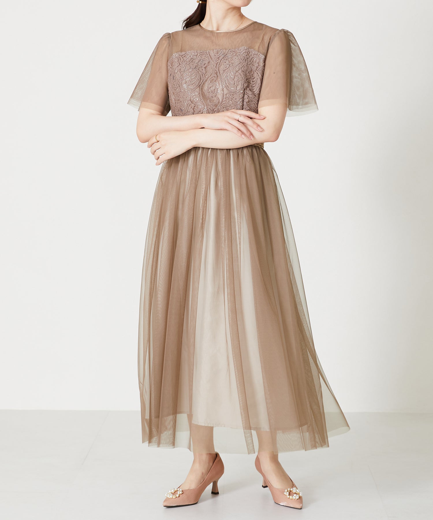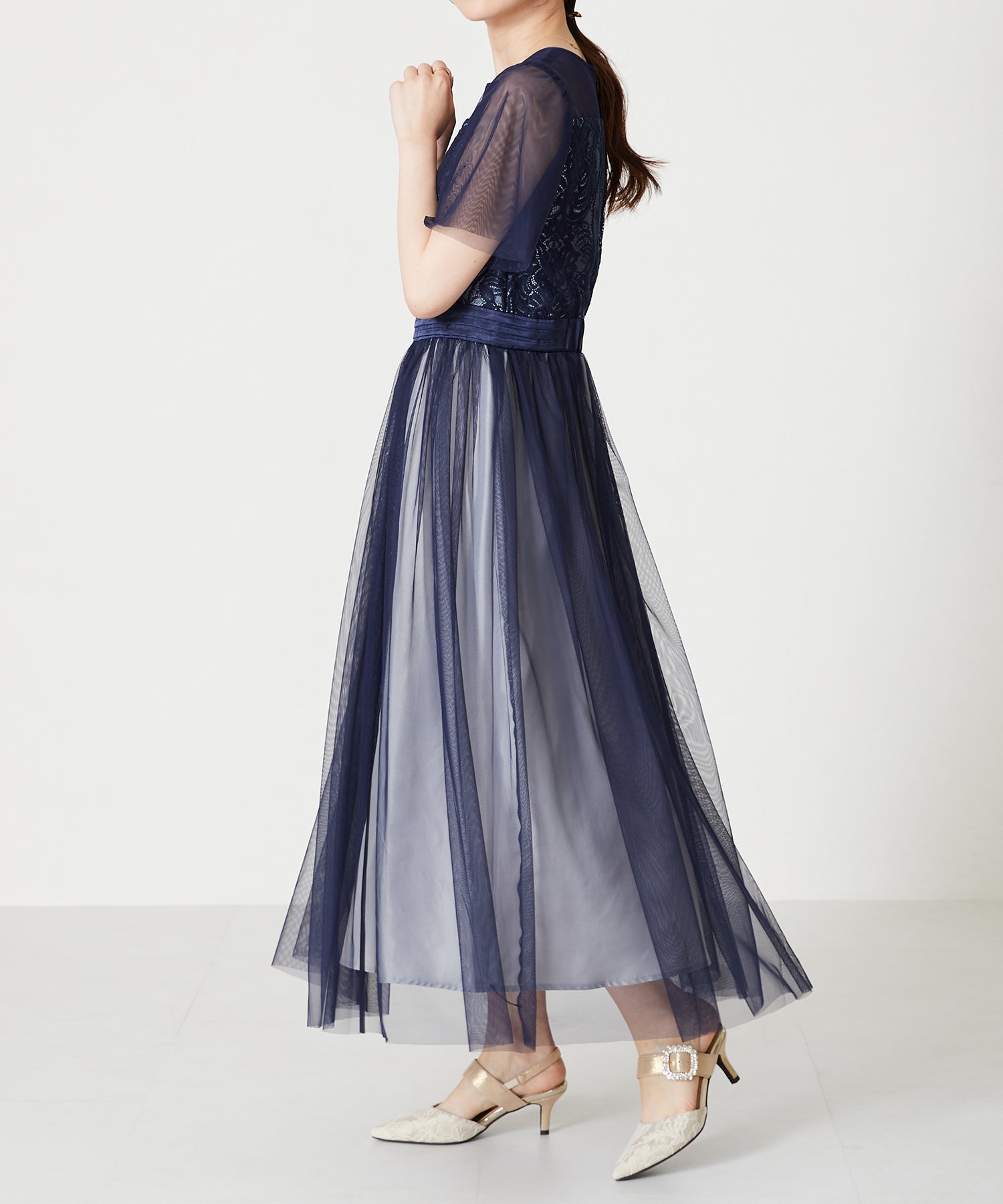 チュールシフォンワンピース/MO33O02【結婚式/オケージョン/パーティー】