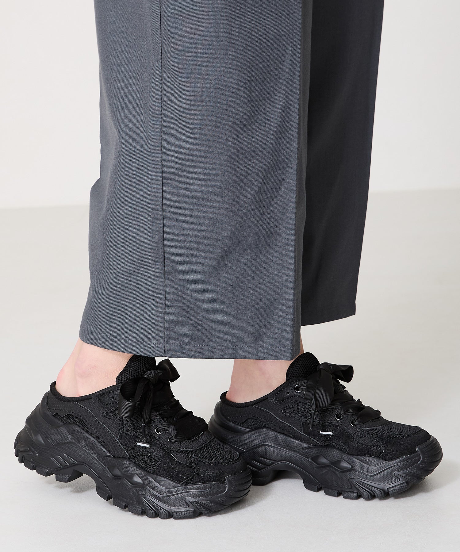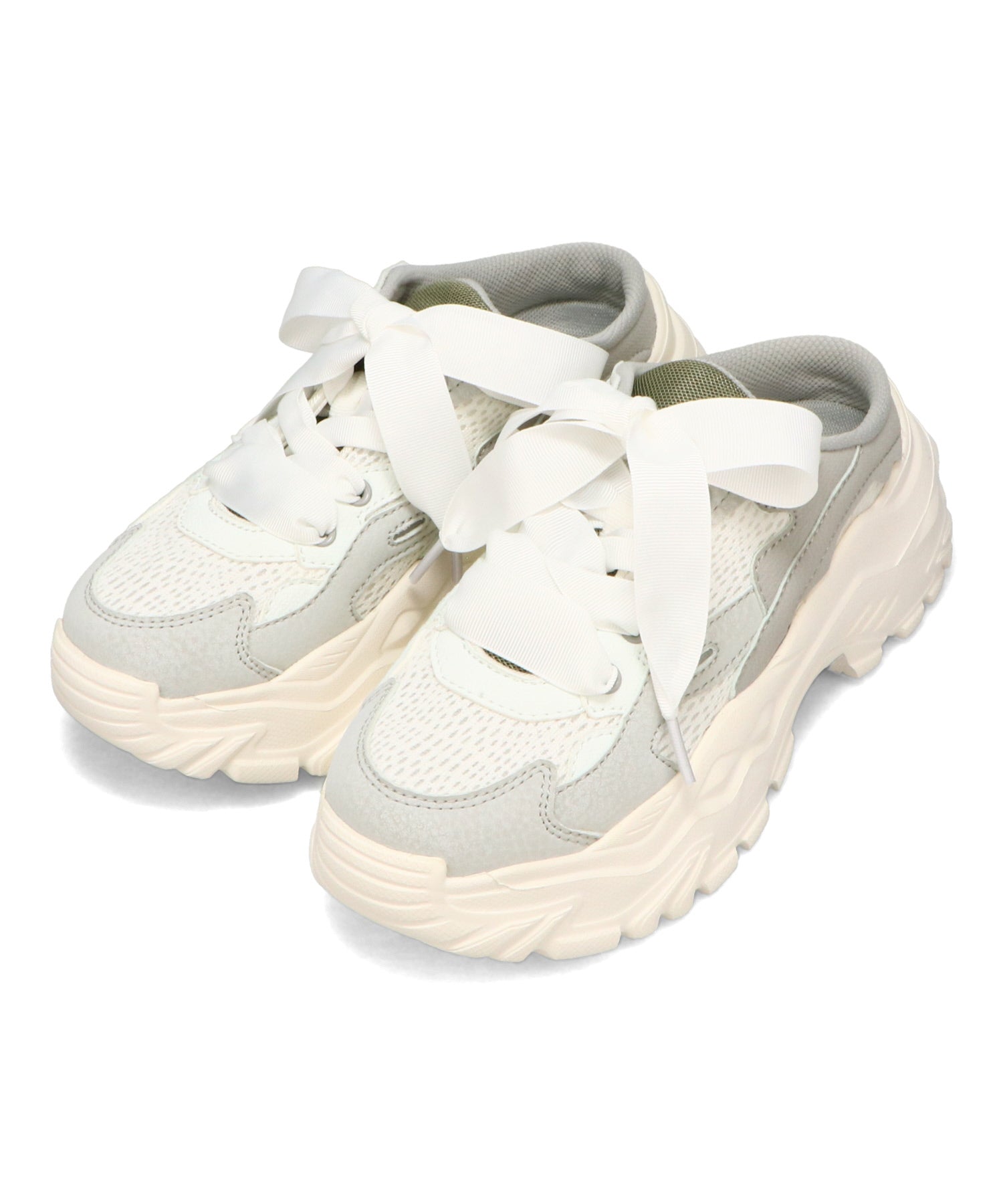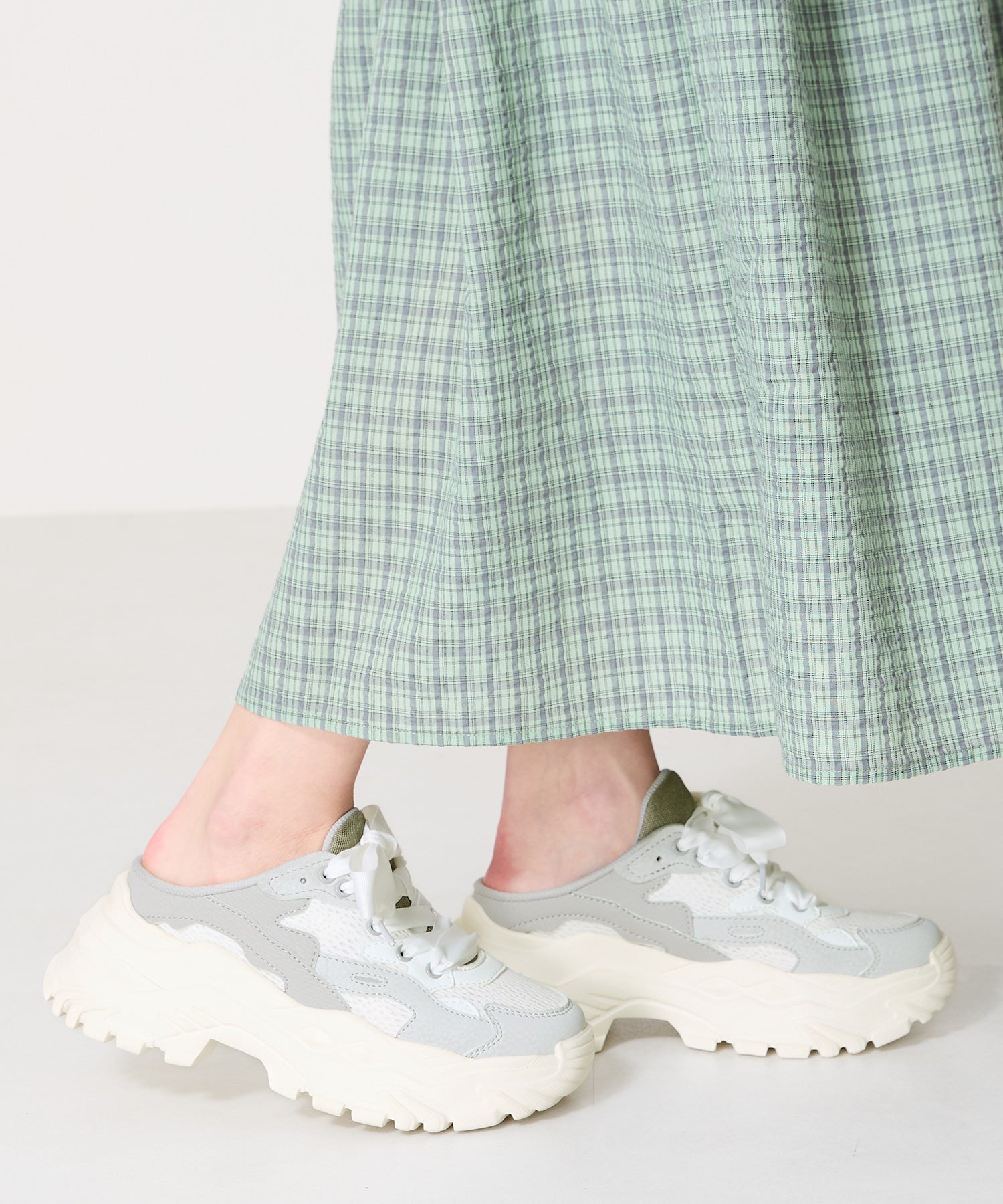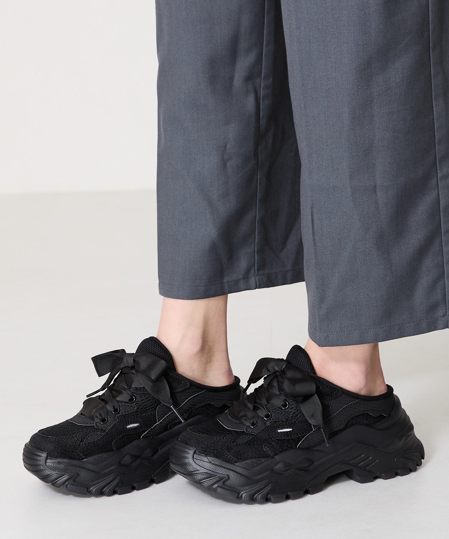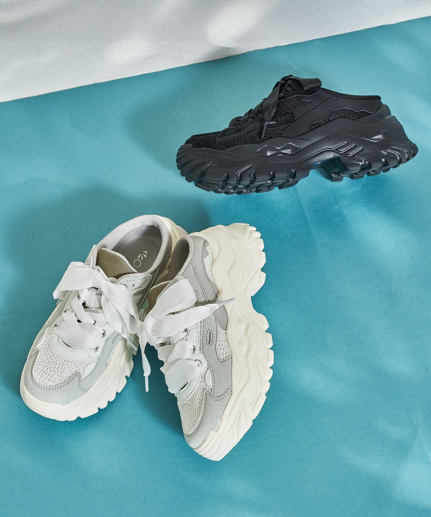 春夏らしいミュールデザインが新鮮なスニーカーが登場。踵部分が開いているので、すっと足入れできて便利なのはもちろんいつものコーデに合わせれば抜け感のある足元に。ボリューム感のあるシルエットがアクティブな雰囲気ながらリボンのシューレースにすることで女性らしくバランスを調整。アッパーは型押し素材やメッシュなどマテリアルにもこだわった注目アイテム。