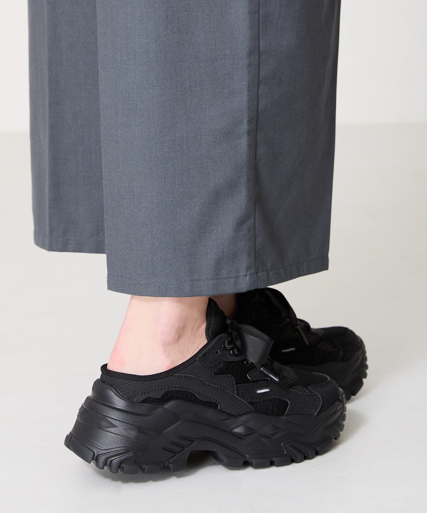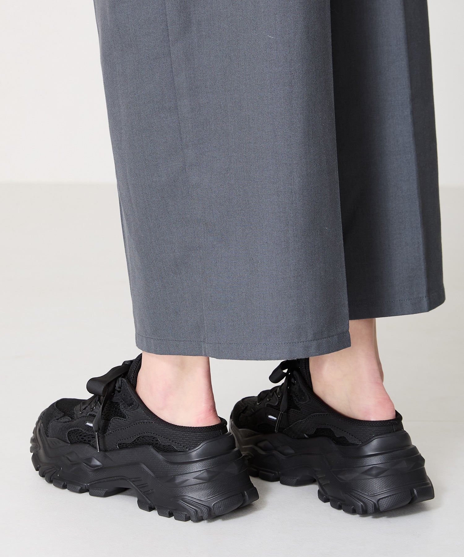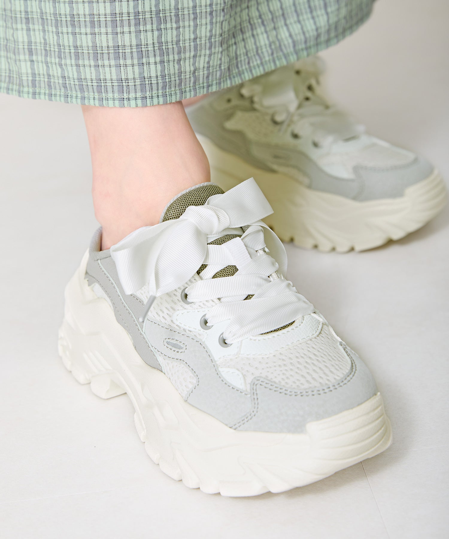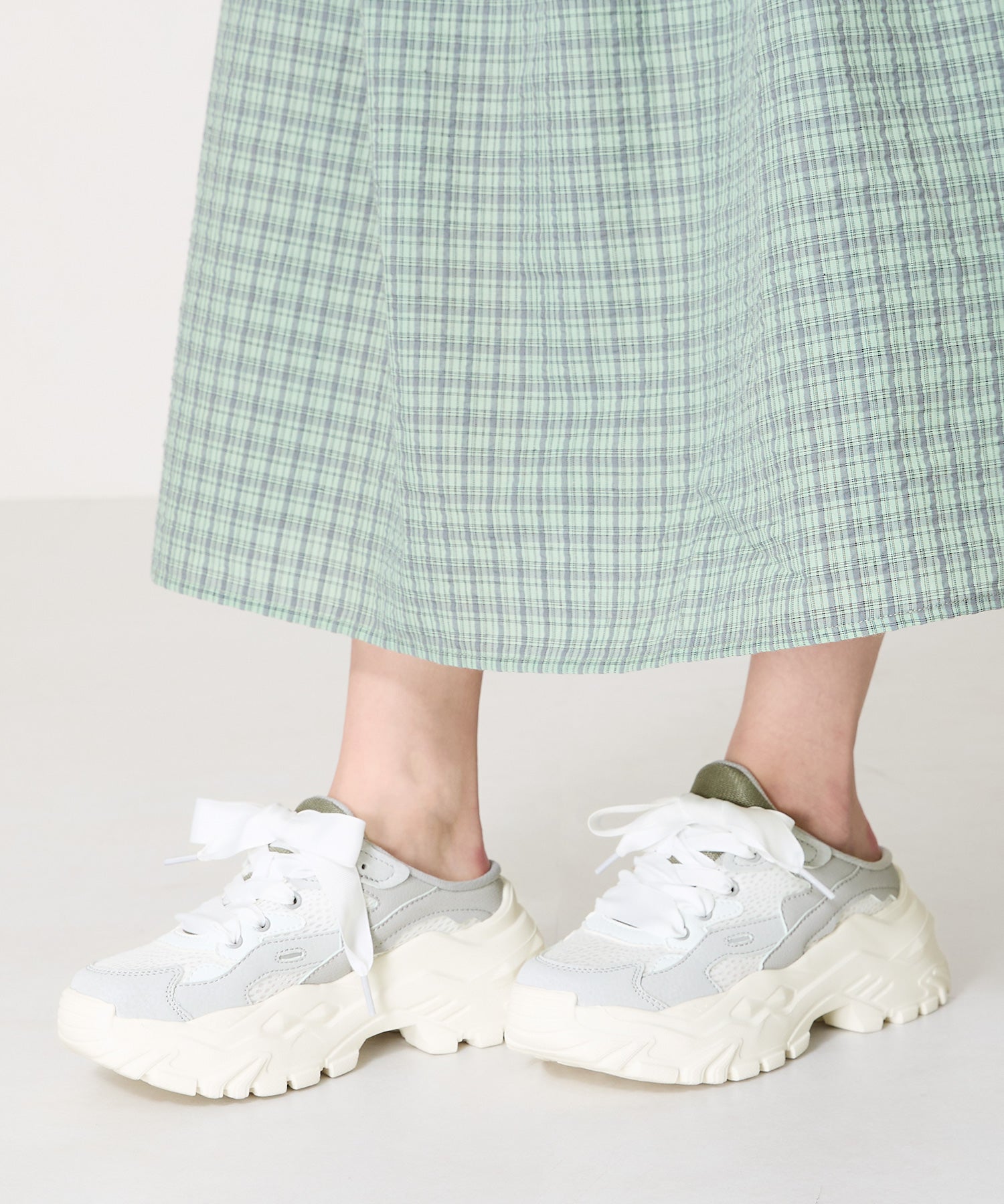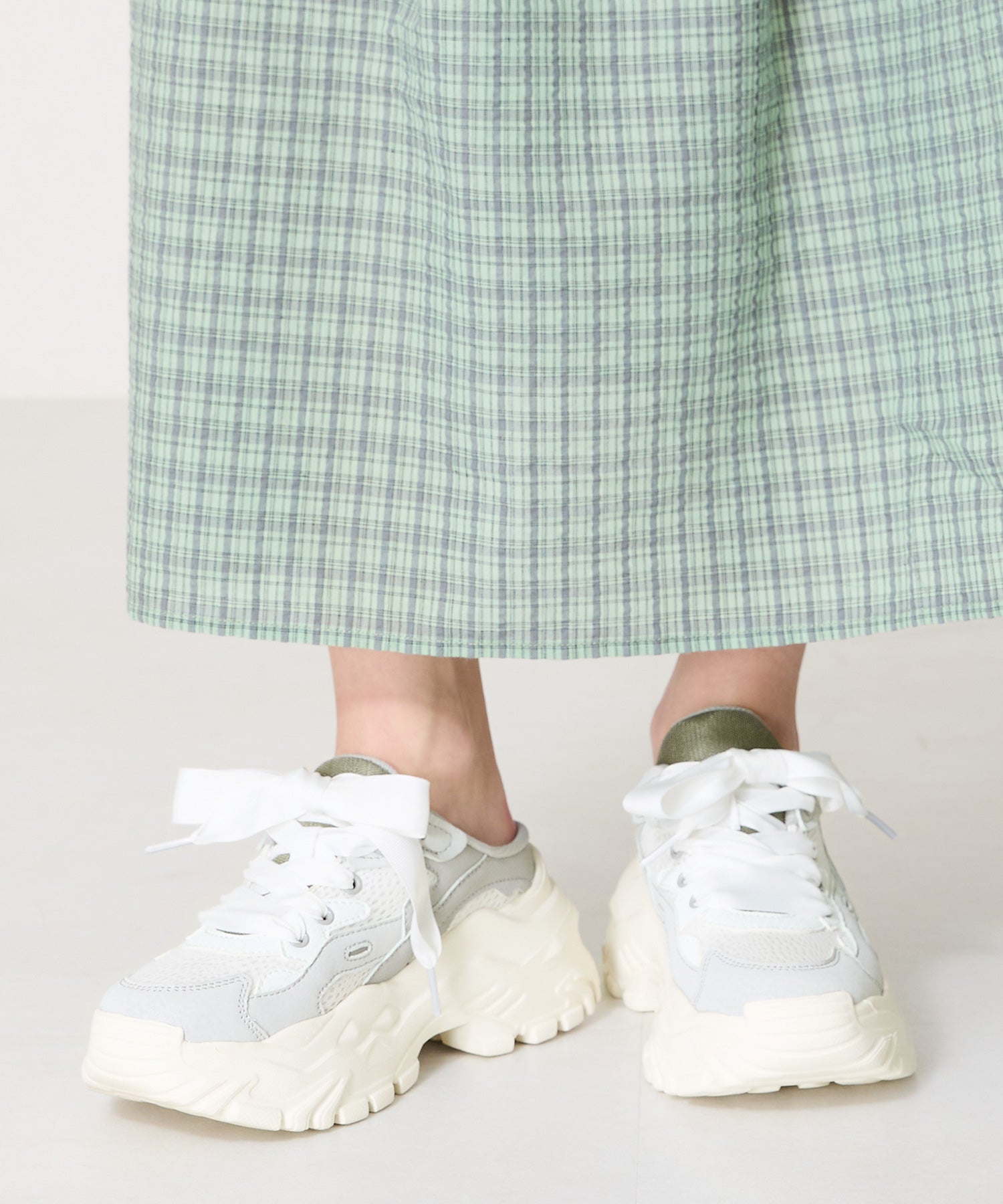 春夏らしいミュールデザインが新鮮なスニーカーが登場。踵部分が開いているので、すっと足入れできて便利なのはもちろんいつものコーデに合わせれば抜け感のある足元に。ボリューム感のあるシルエットがアクティブな雰囲気ながらリボンのシューレースにすることで女性らしくバランスを調整。アッパーは型押し素材やメッシュなどマテリアルにもこだわった注目アイテム。