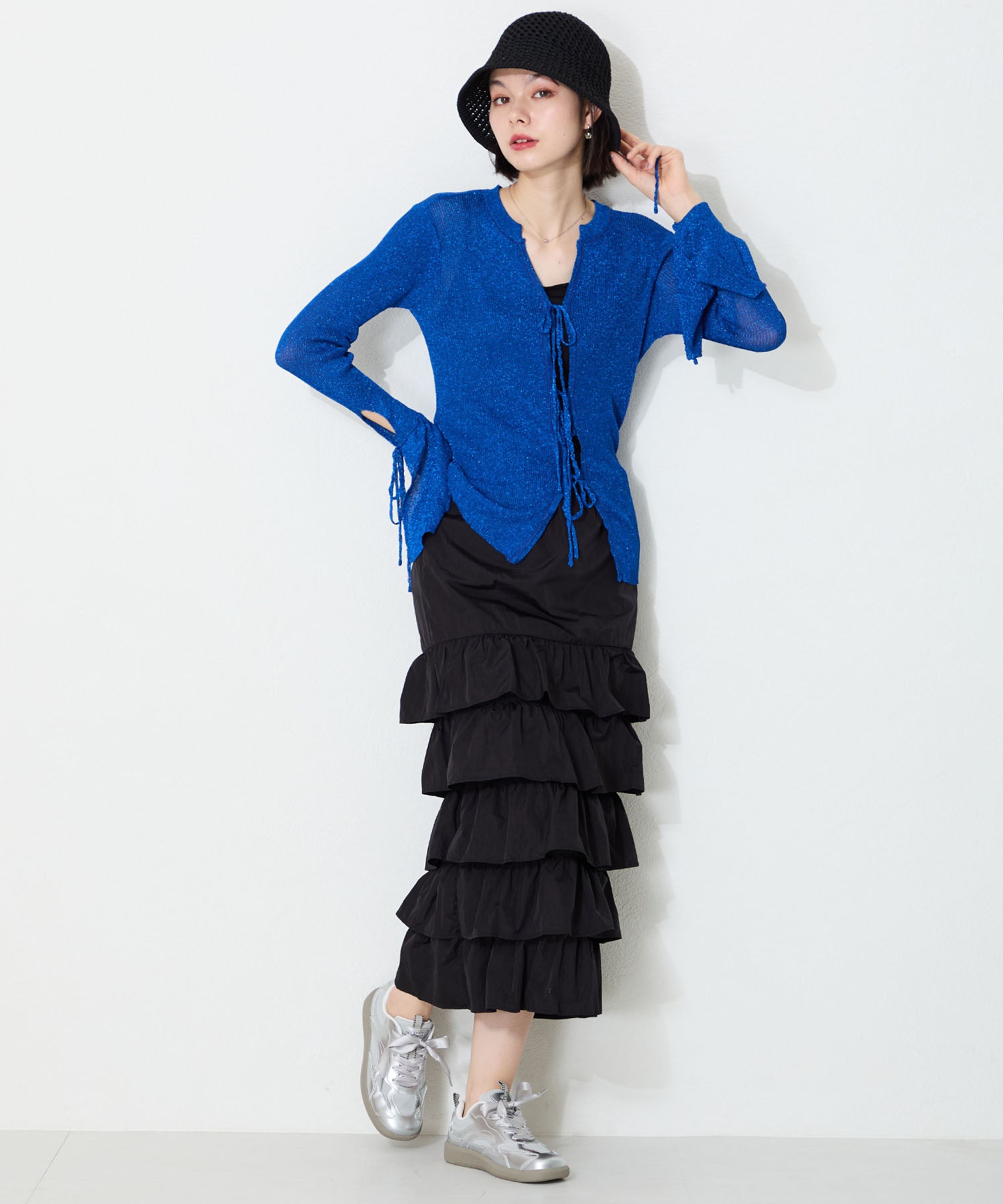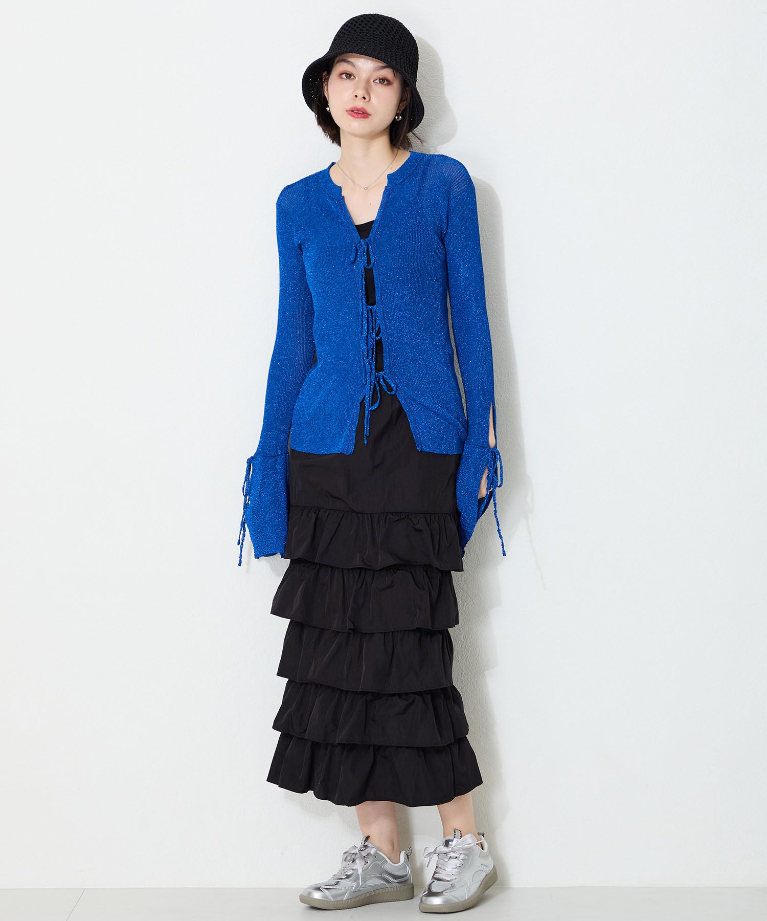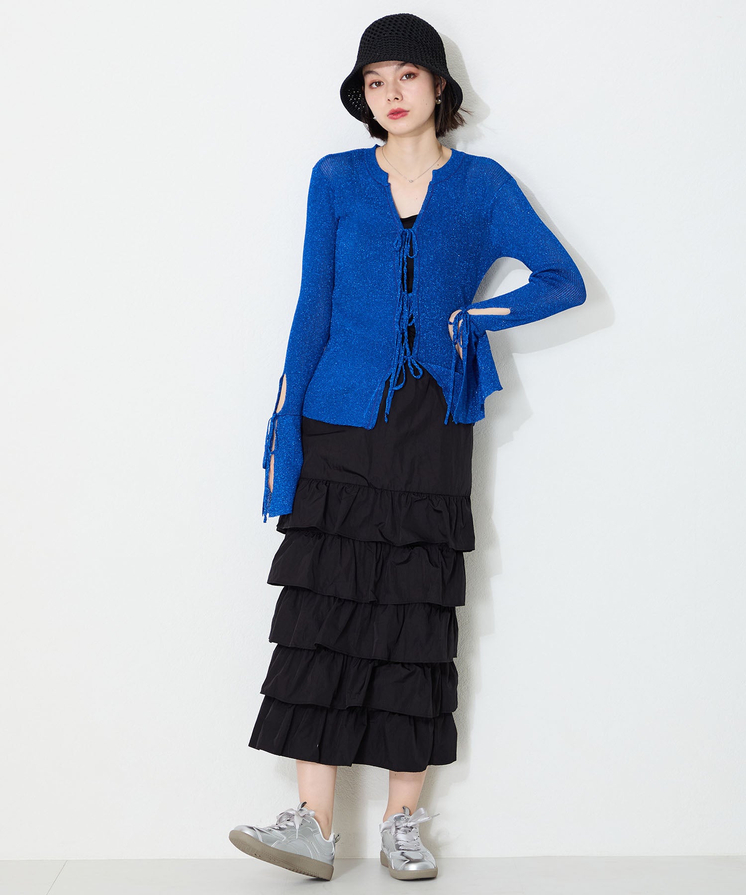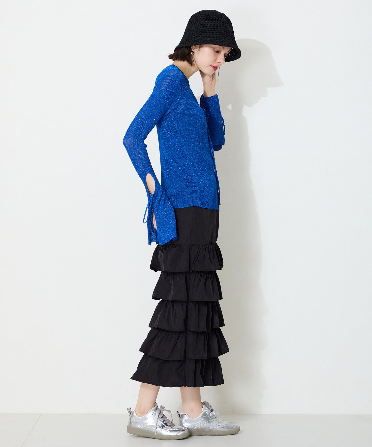 アッパー全体に大胆にメタリックの切替デザインを施したトレンド感満載のスニーカー。ベースをメッシュ素材にすることで通気性が良く、ソールも薄めでコンパクトなものを選んで見た目も軽やかな足元を演出。シューレースはサテンリボンにしてガーリーさをプラスし、スクエアトゥがカジュアルからフェミニンまで幅広く活躍してくれる。