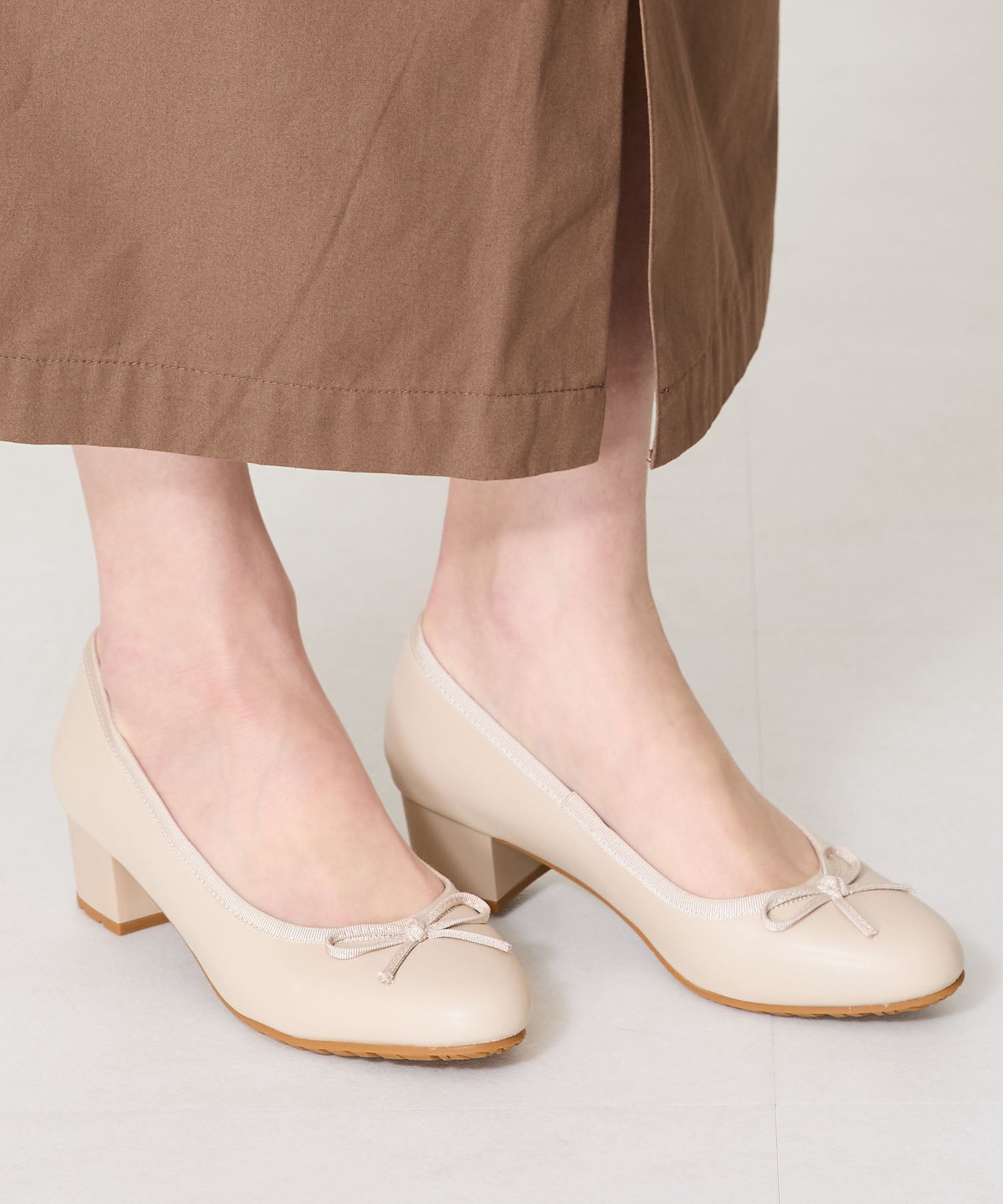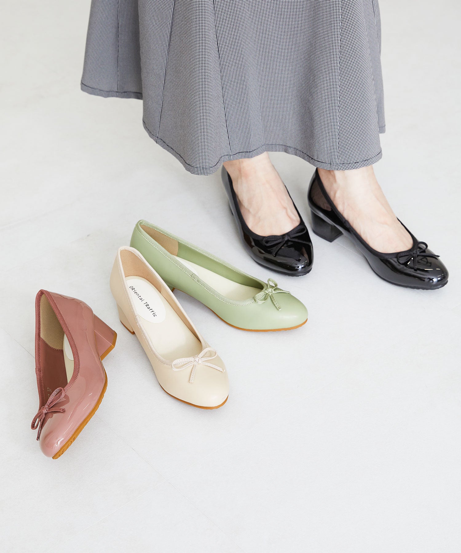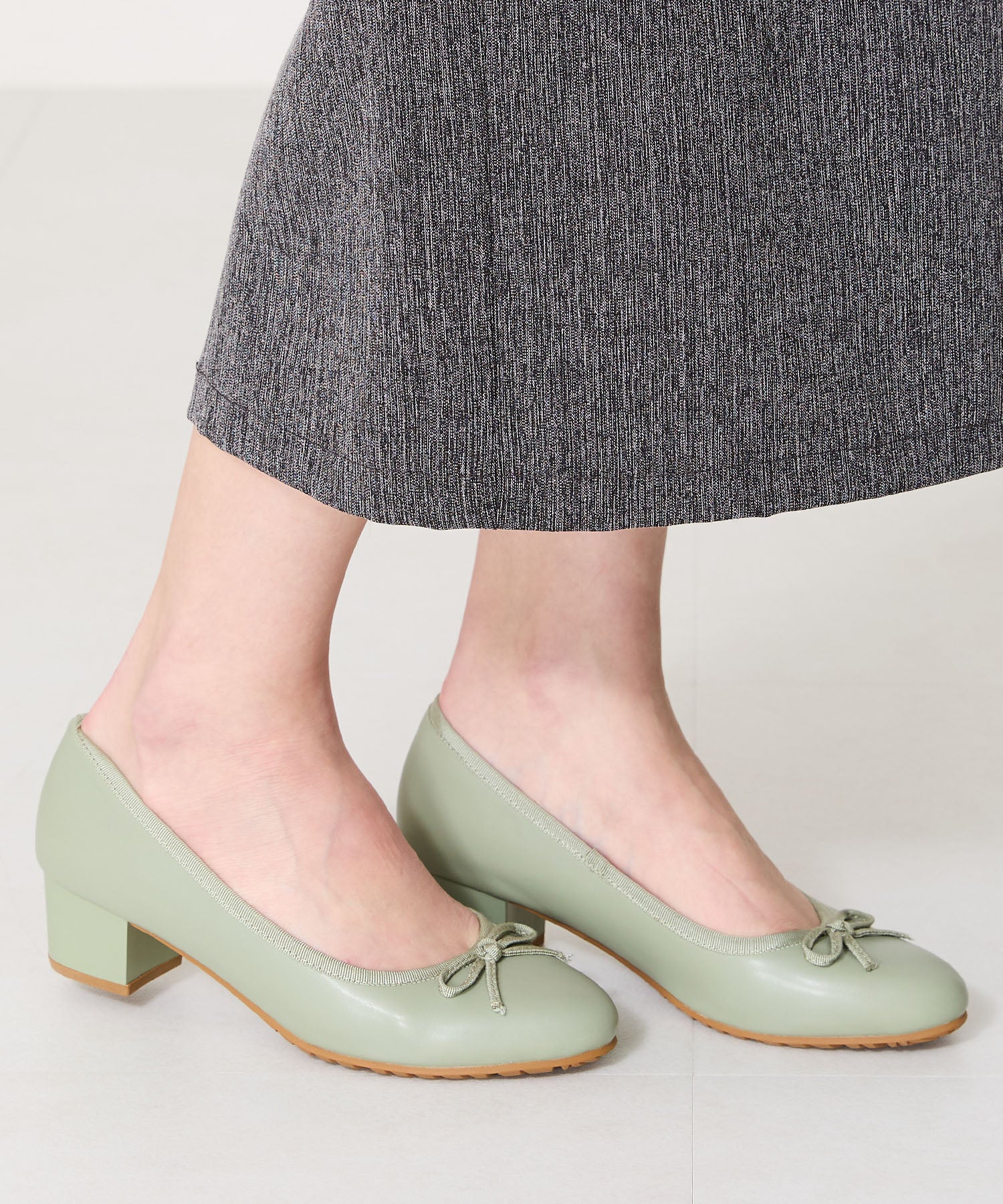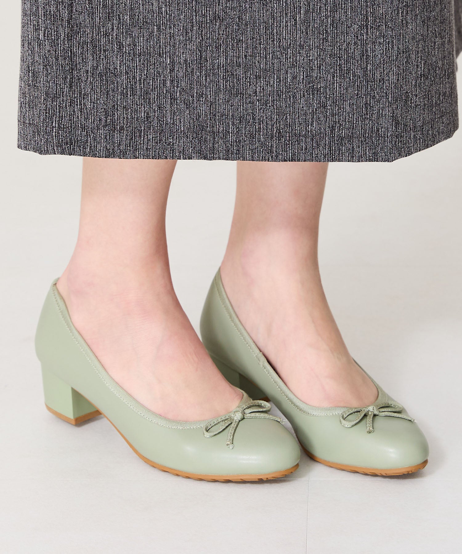 季節問わず人気のヒールバレエパンプスは華奢なリボンで甘くなりすぎず、程よい高さのミドルヒールで大人可愛い足元に。ベーシックなブラックやベージュに加え、くすみカラーが可愛いグリーンとピンクの豊富なカラーバリエーションで展開。通勤通学はもちろん、雨の日以外にもデイリー使いや休日スタイルと幅広いシーンに活躍してくれる優秀アイテム。