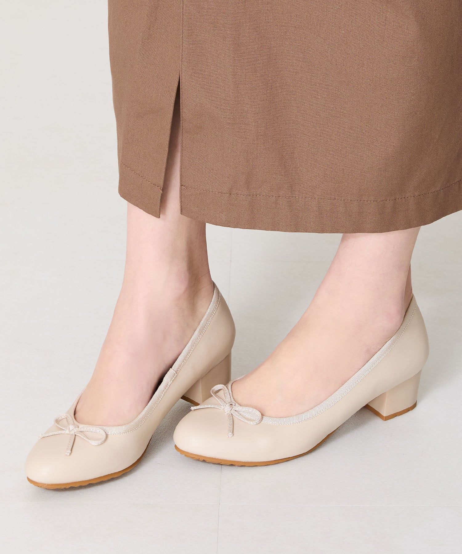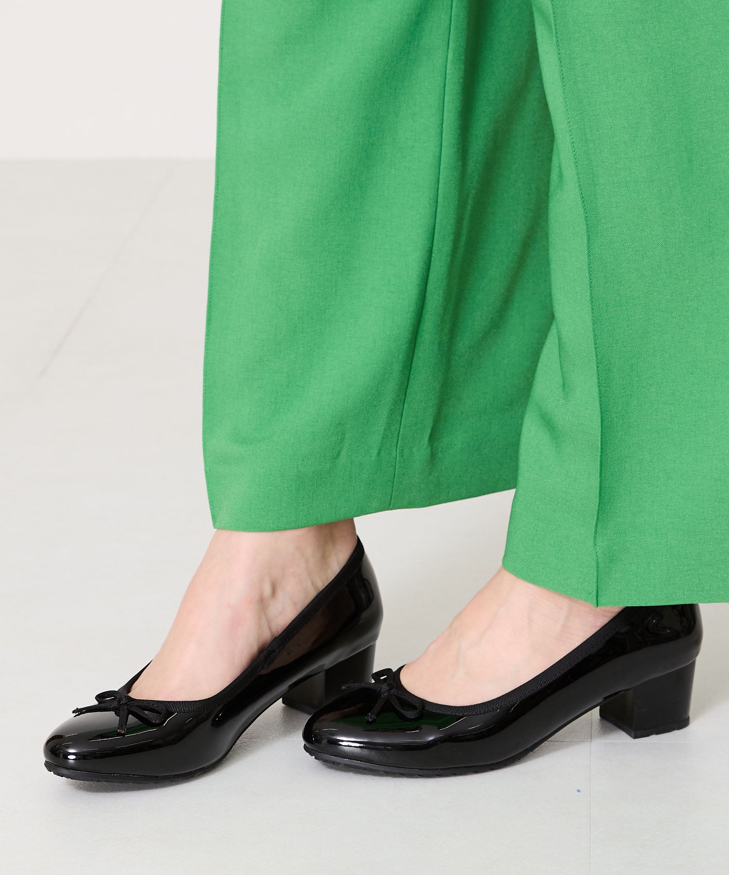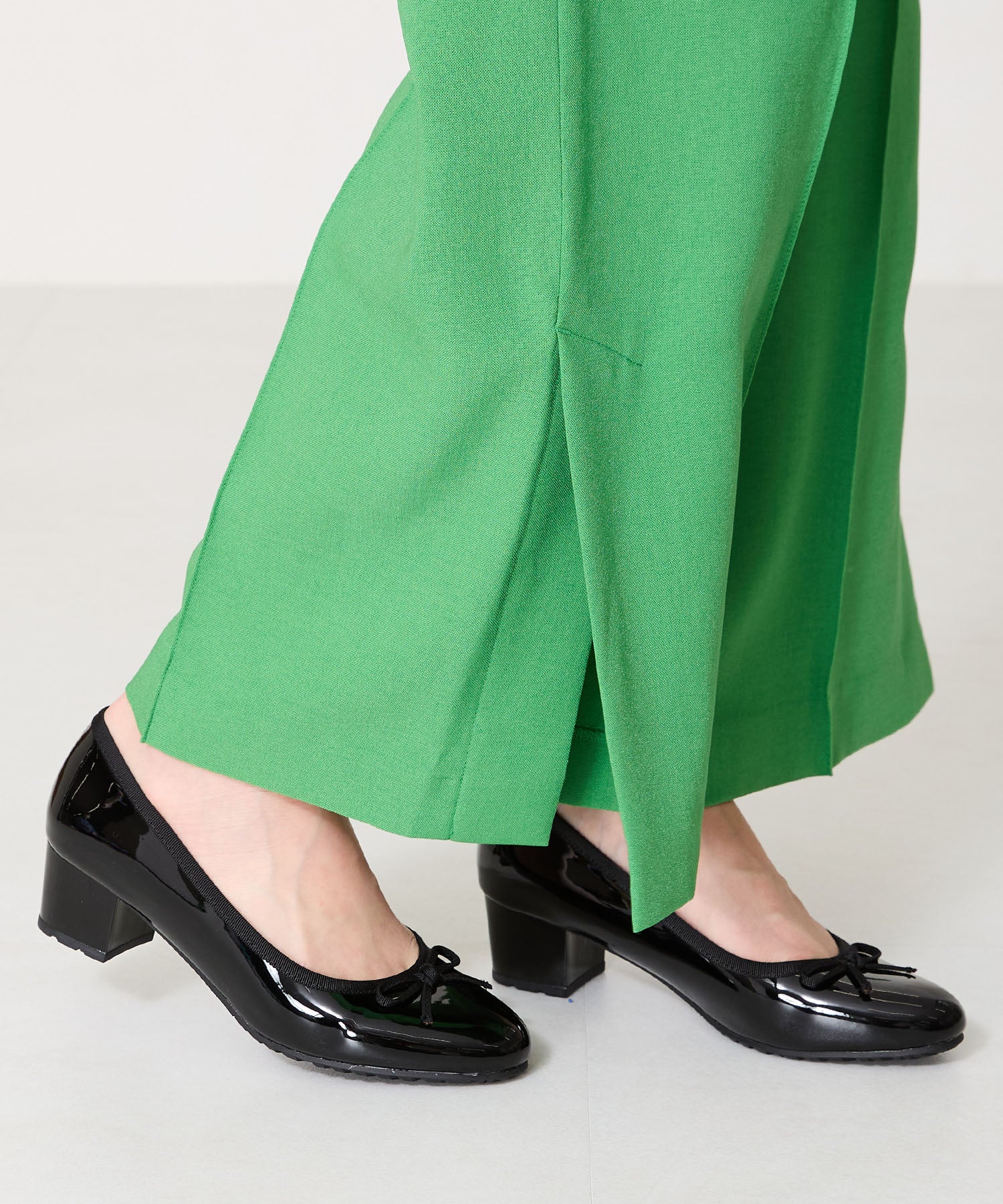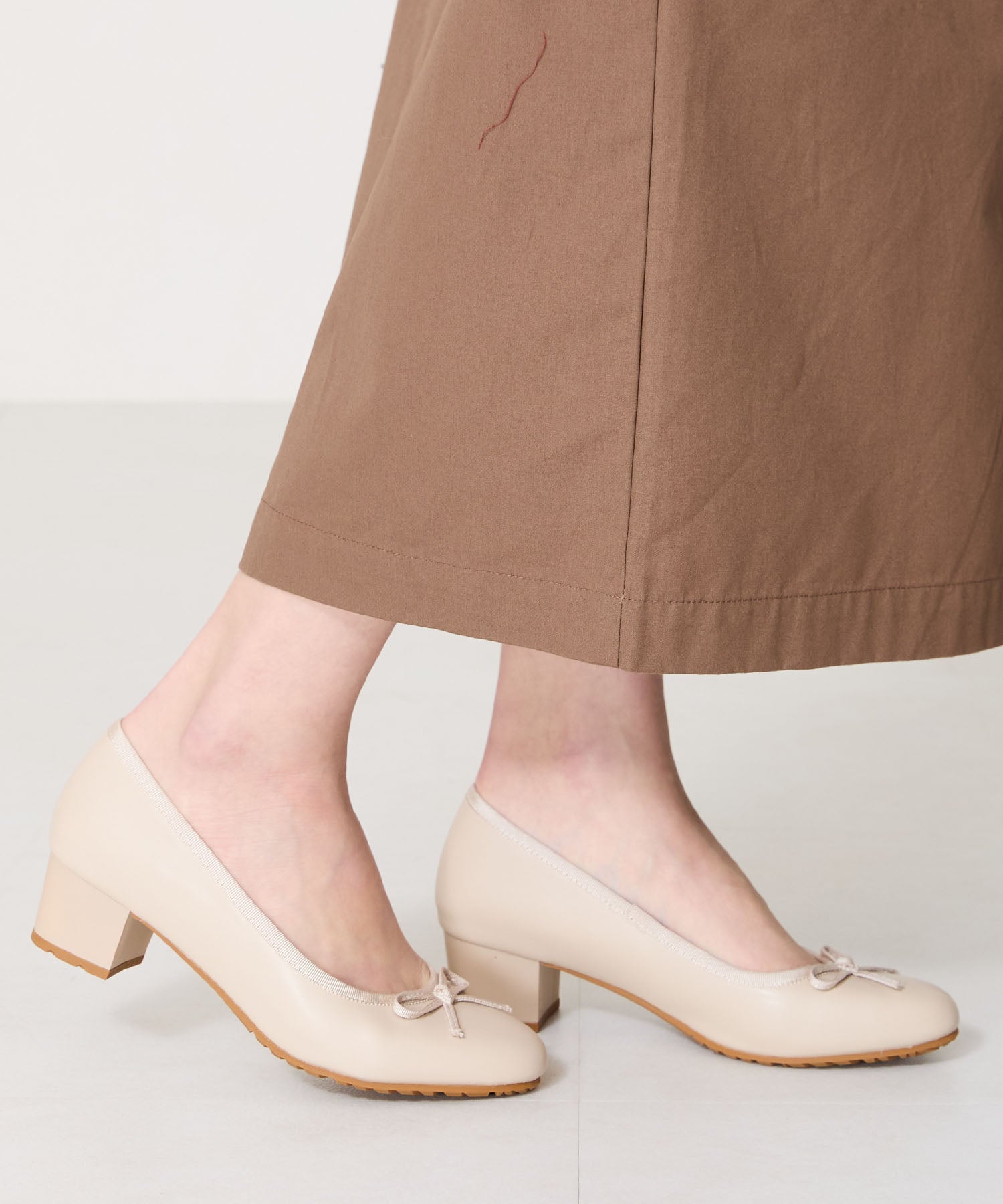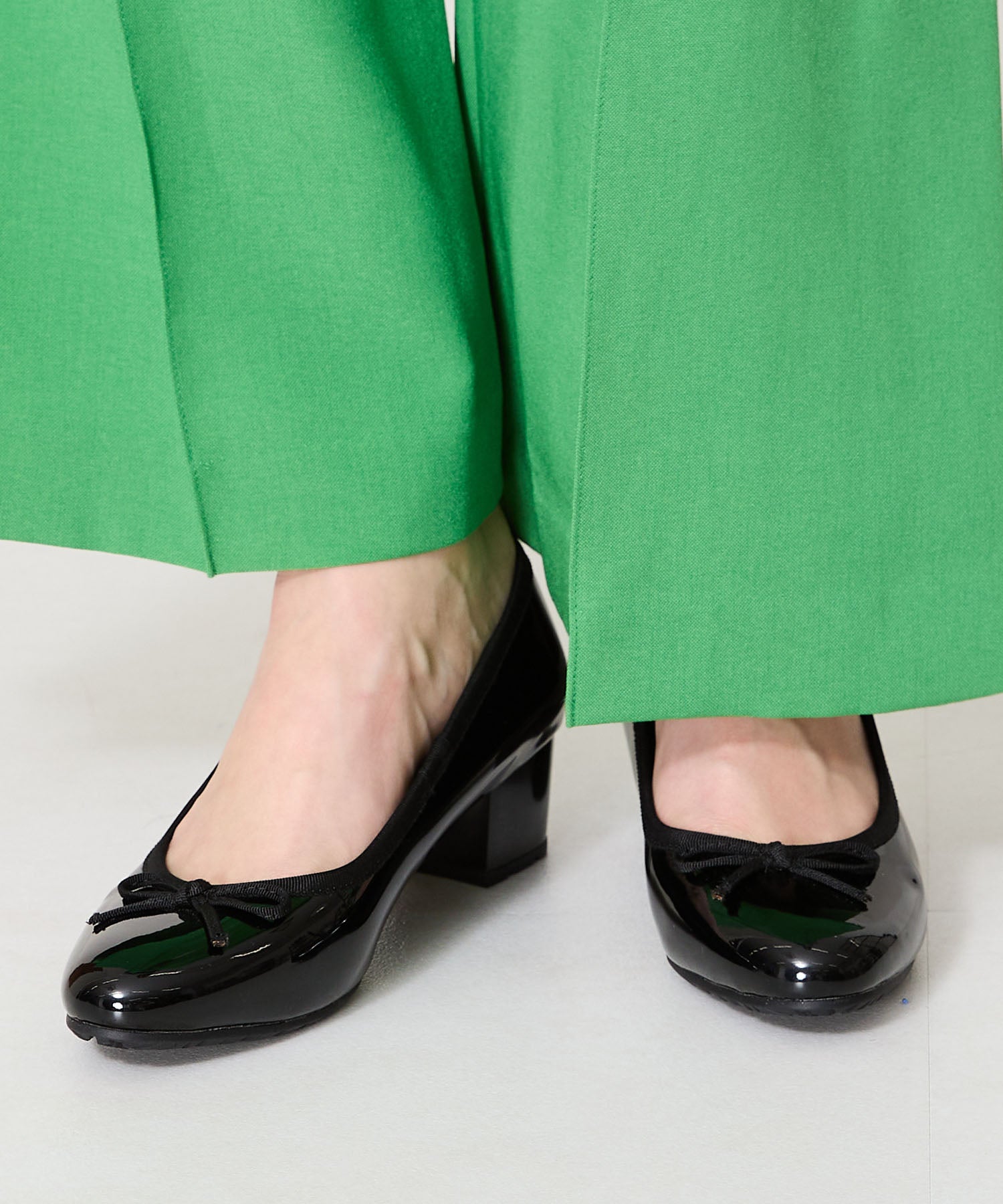 季節問わず人気のヒールバレエパンプスは華奢なリボンで甘くなりすぎず、程よい高さのミドルヒールで大人可愛い足元に。ベーシックなブラックやベージュに加え、くすみカラーが可愛いグリーンとピンクの豊富なカラーバリエーションで展開。通勤通学はもちろん、雨の日以外にもデイリー使いや休日スタイルと幅広いシーンに活躍してくれる優秀アイテム。