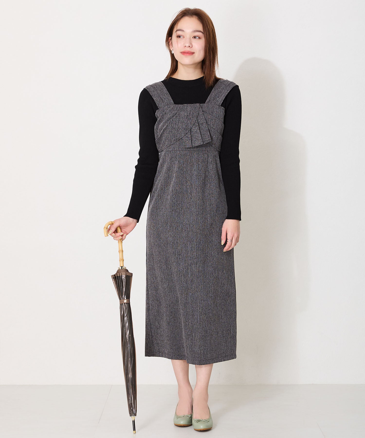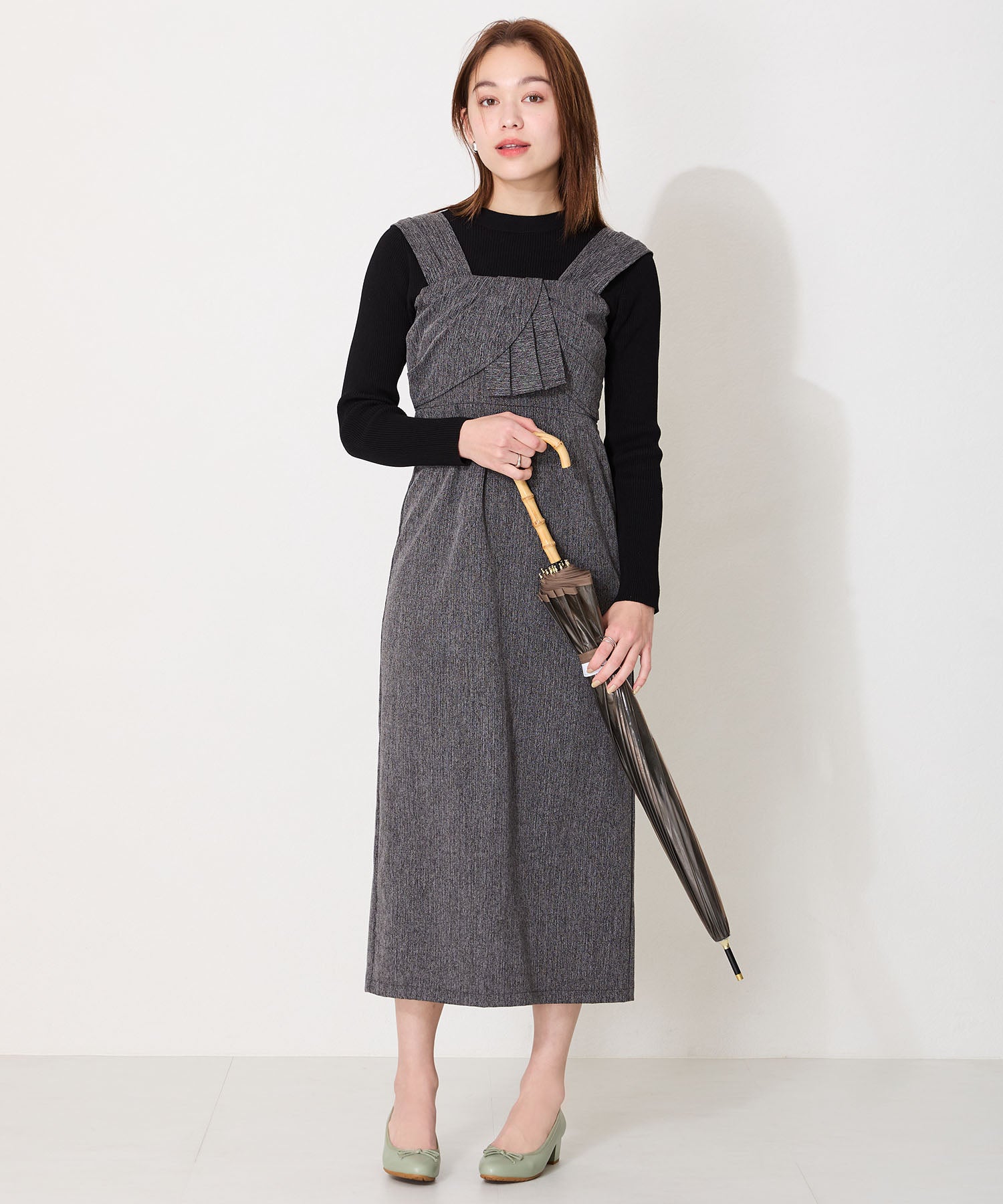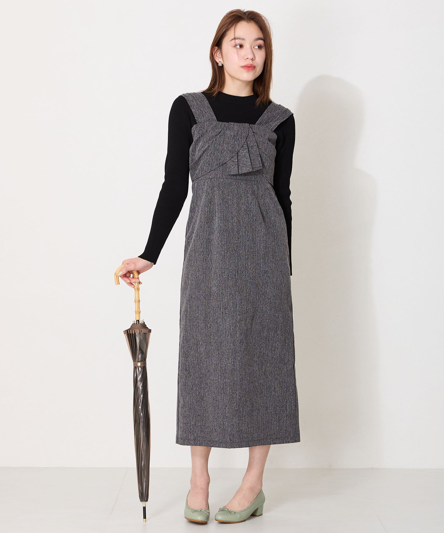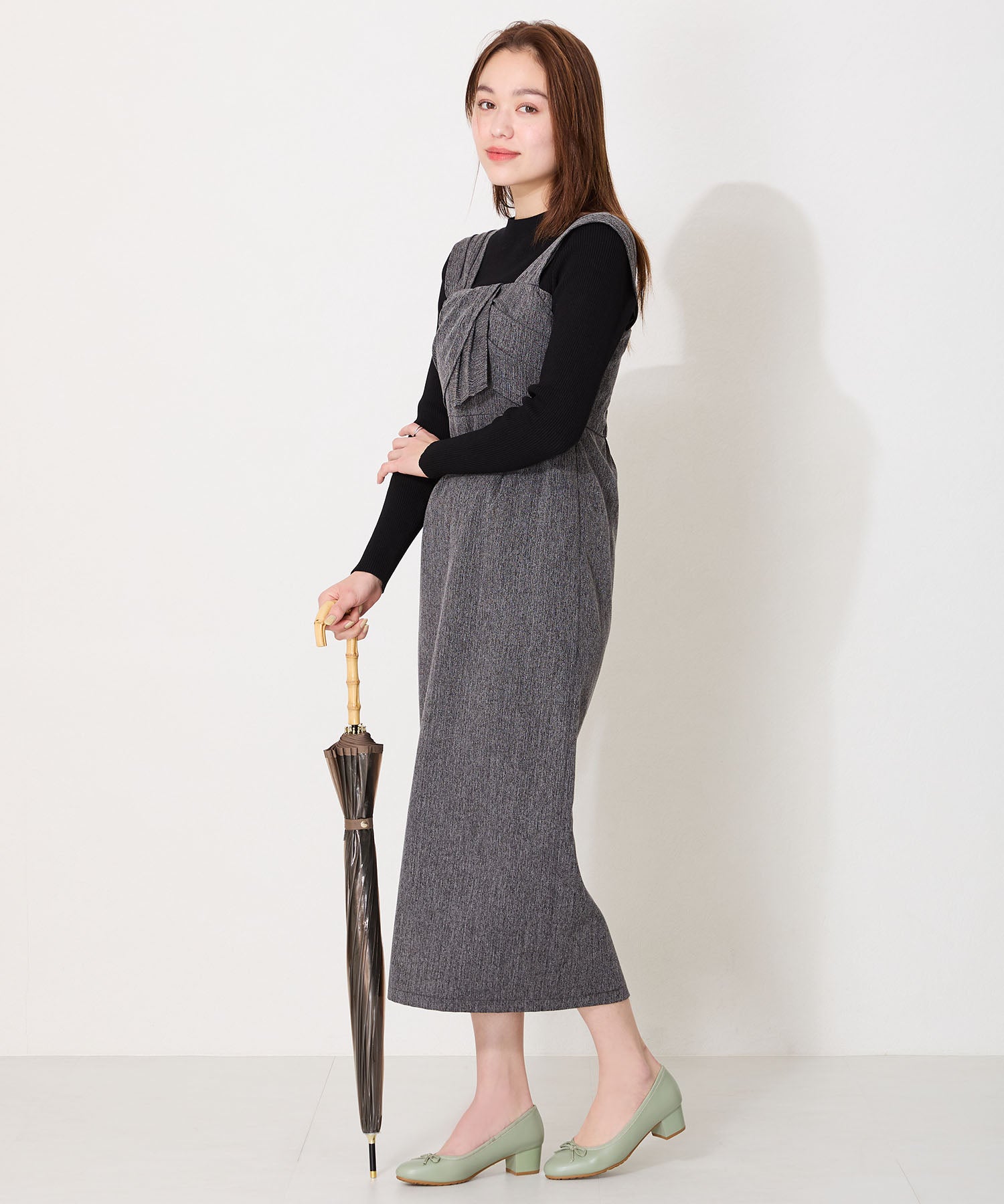 季節問わず人気のヒールバレエパンプスは華奢なリボンで甘くなりすぎず、程よい高さのミドルヒールで大人可愛い足元に。ベーシックなブラックやベージュに加え、くすみカラーが可愛いグリーンとピンクの豊富なカラーバリエーションで展開。通勤通学はもちろん、雨の日以外にもデイリー使いや休日スタイルと幅広いシーンに活躍してくれる優秀アイテム。