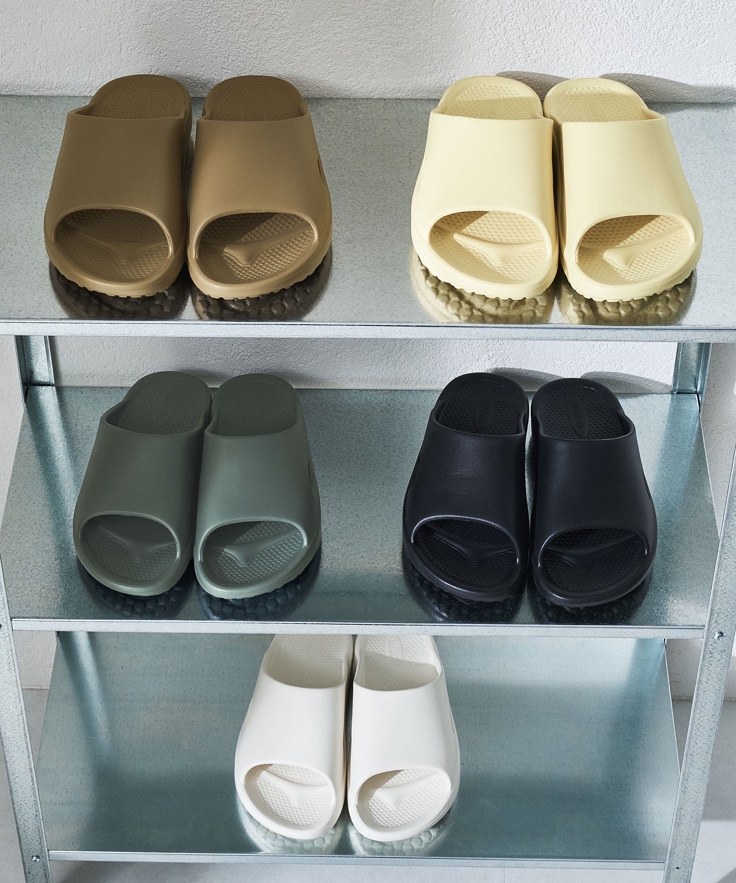 夏にさらっと履きたいスライドサンダルは柔らかさと弾力性を兼ね備えた軽やかな履き心地。足の動きに合わせてしなやかに沈み込むクッション性が、歩行時の負担を軽減。さらに足裏のラインに沿った形の中底が自然にフィットし長時間の着用でも快適さをキープしてくれる。軽量で扱いやすく、室内履きからワンマイルまで幅広く活躍してくれ、選べる5色カラーとサイズ展開も豊富にご用意。ユニセックスで使用でき、ペア使いにもおすすめな1足。