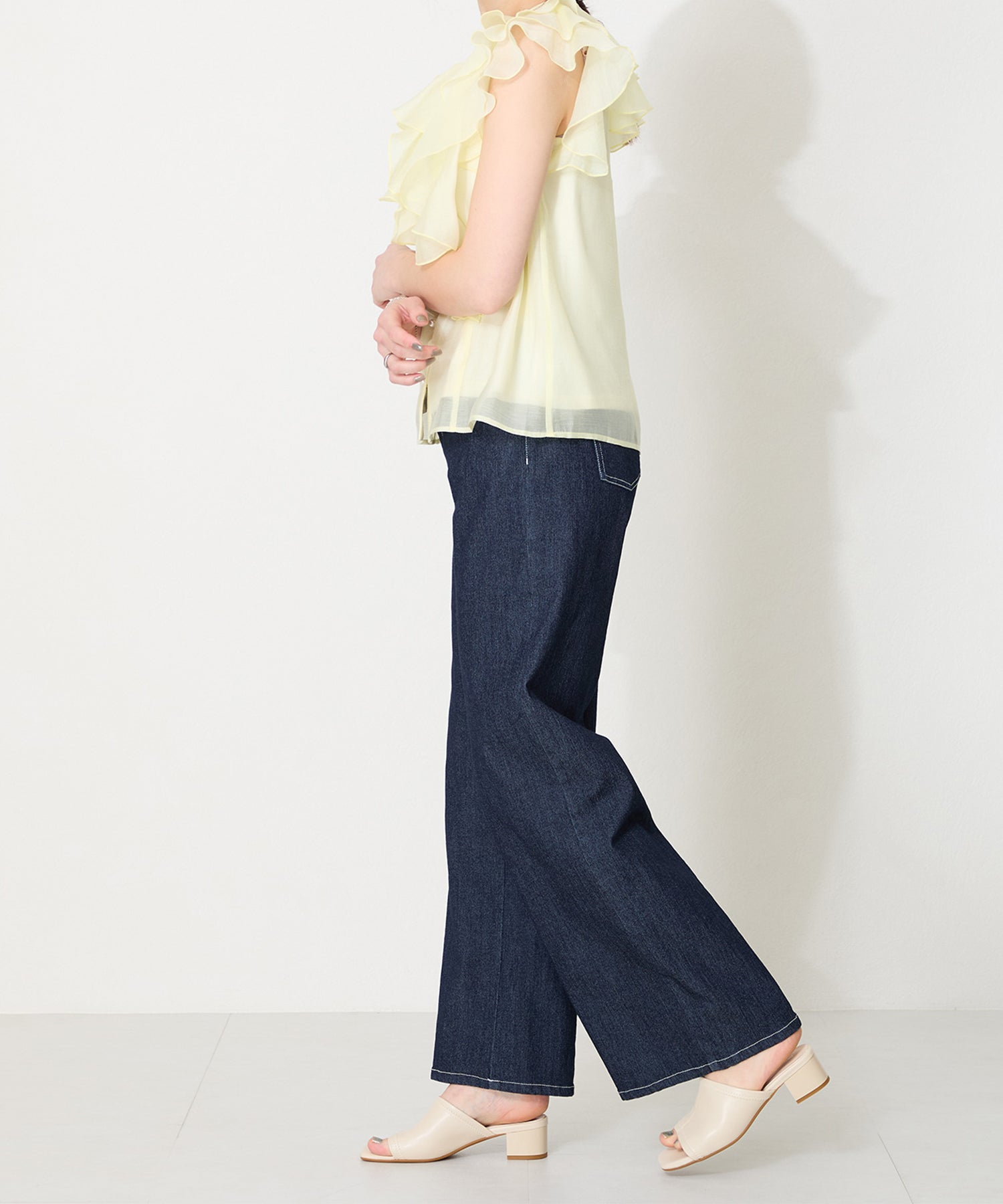 1足持っていると便利などんなコーディネートにも合わせやすいシンプルなミュールサンダルは、ベルト裏側にナイロン素材を使用して足当たりをソフトにしたり、低めのミドルヒールにして歩きやすくしたりと履き心地にこだわったアイテム。スクエアトゥのシルエットがスタイリッシュに仕上げてくれるので、ワンランク上の履きこなしが出来るのもポイント。