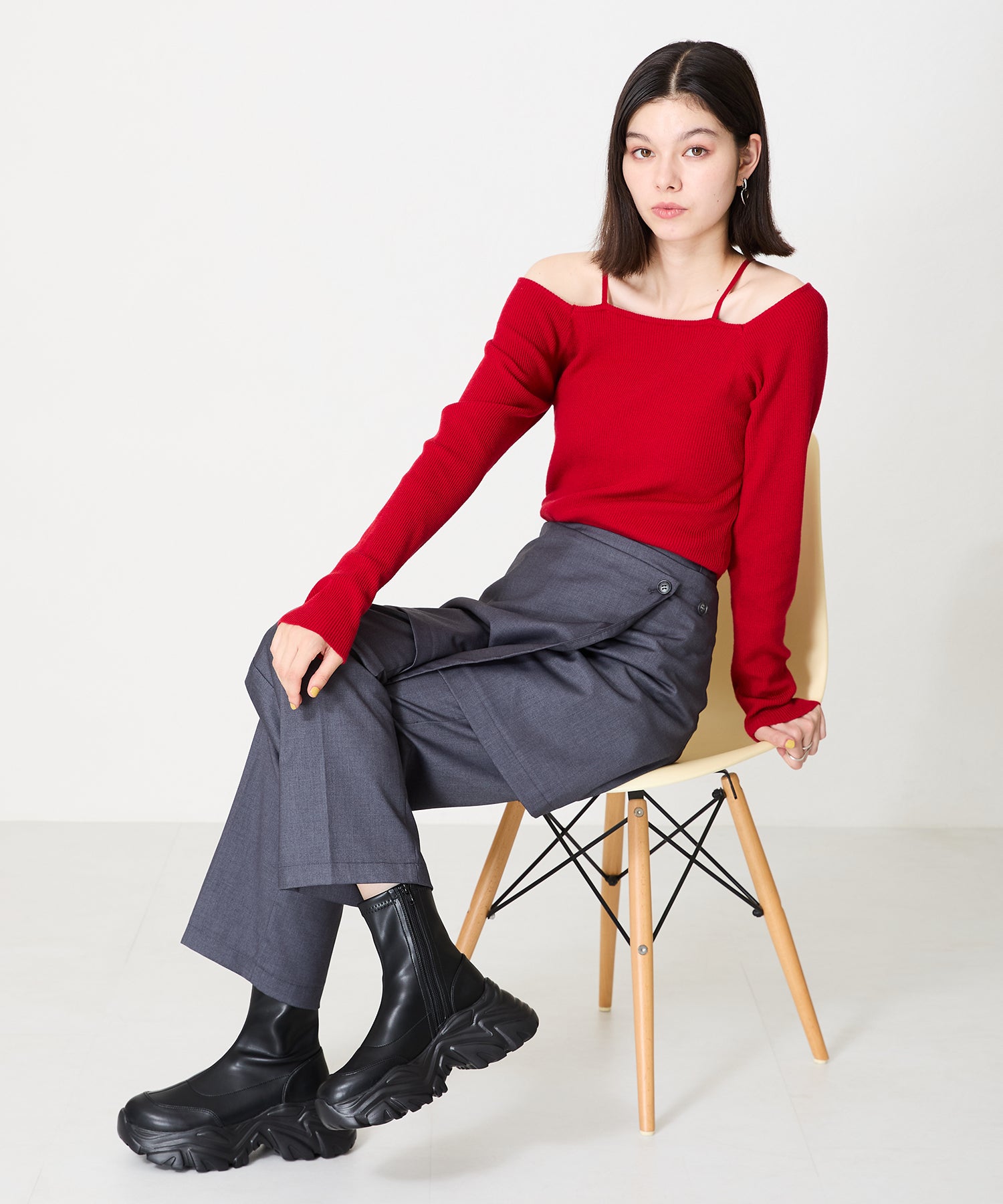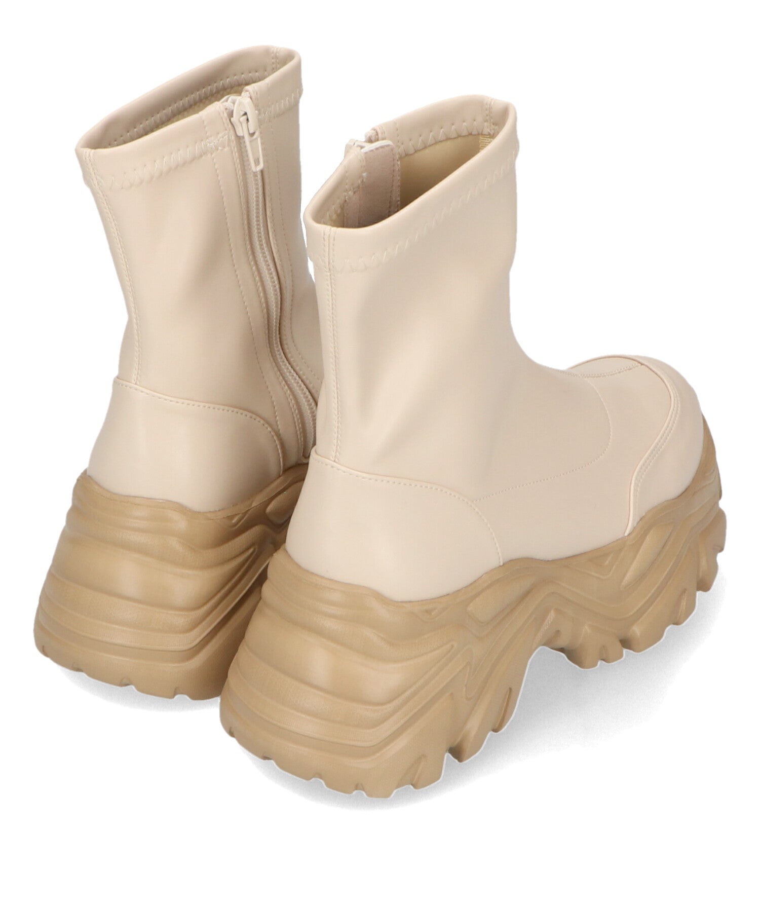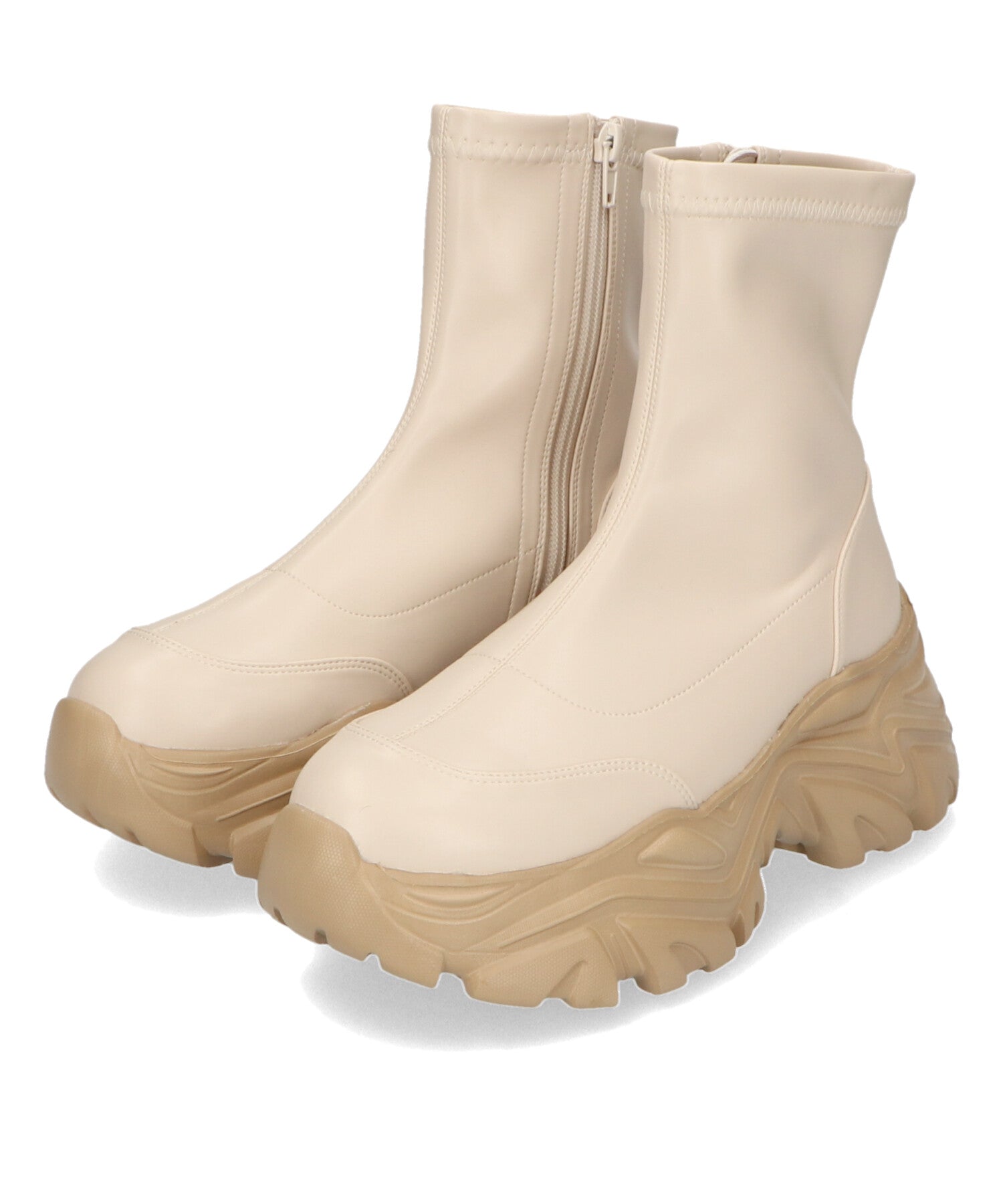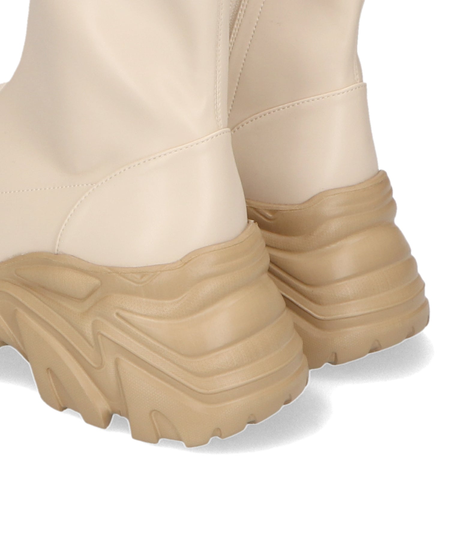 とことんボリュームを持たせたスニーカーソールがインパクト大のブーツは、履くだけでコーディネートの主役になる1足。筒回りはストレッチ素材で足当たりが良くフィットするので、ボリューミーなソールと組み合わせることで細見え効果が抜群。ソールには軽量で柔らかい材質を使用しているので見た目以上に歩きやすく疲れにくいので、今季手に入れたいマストアイテム。
