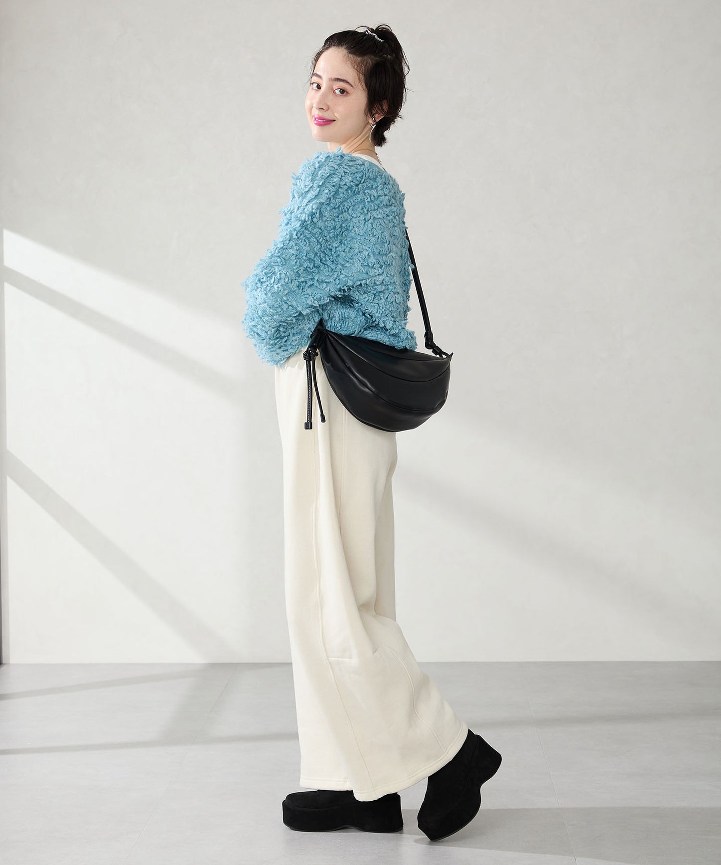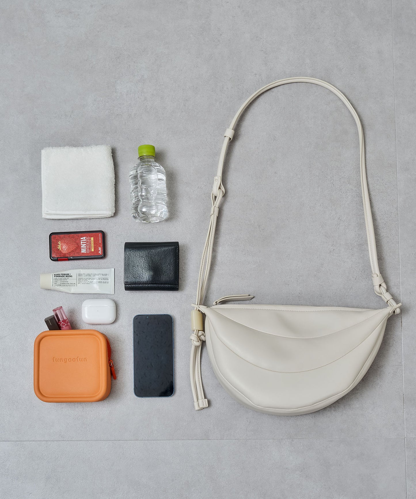 ハーフムーン型のシンプルなデザインでカジュアルからフェミニンまでスタイリングを選ばず使える万能バッグ。柔らかい素材感で使いやすく、ショルダーは結び目の位置を変えて長さの調節が可能。見た目以上に入るサイズ感は荷物が多い日にも大活躍。ベーシックなブラックとホワイトのカラー展開も魅力的。