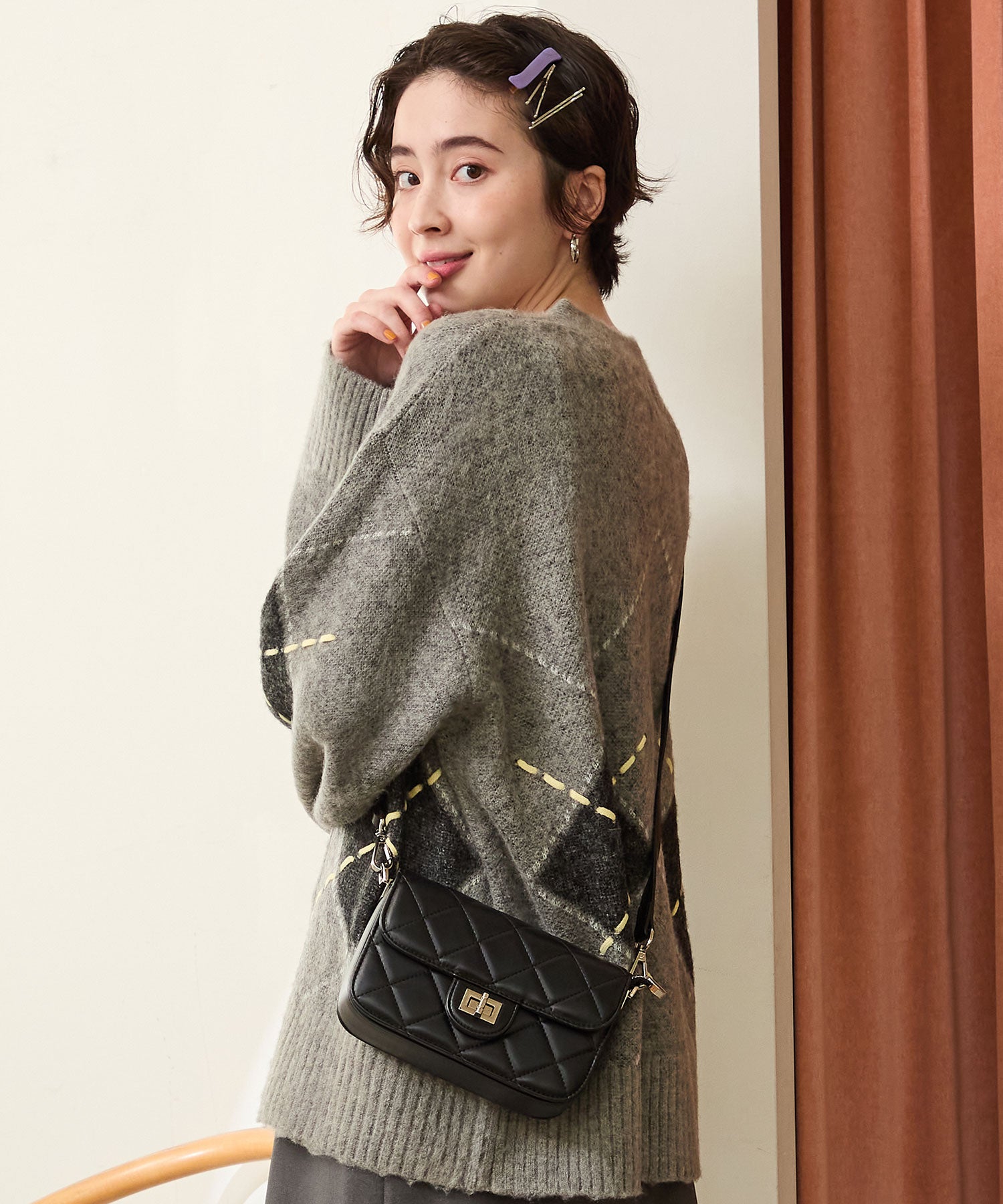 キルティングデザインのボックス型ショルダーバッグは、洗練されたフォルムが使いやすく、オンオフ問わず様々なシーンで活躍してくれそう。内側には複数のポケットが付いているのに加え、スマートフォンなどの必需品がすっきり収まるコンパクトなサイズ感なので、ちょっとした外出にもぴったり。