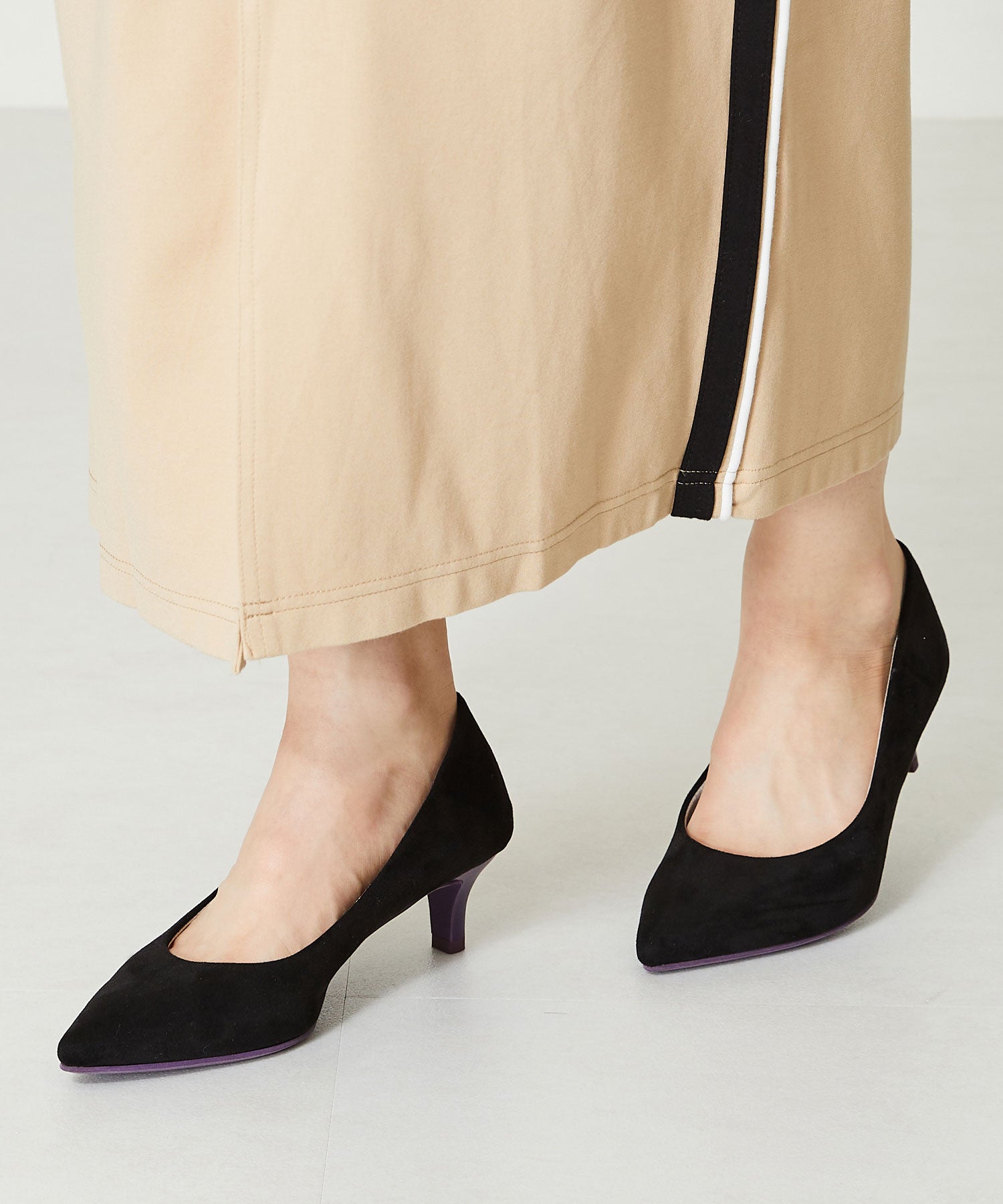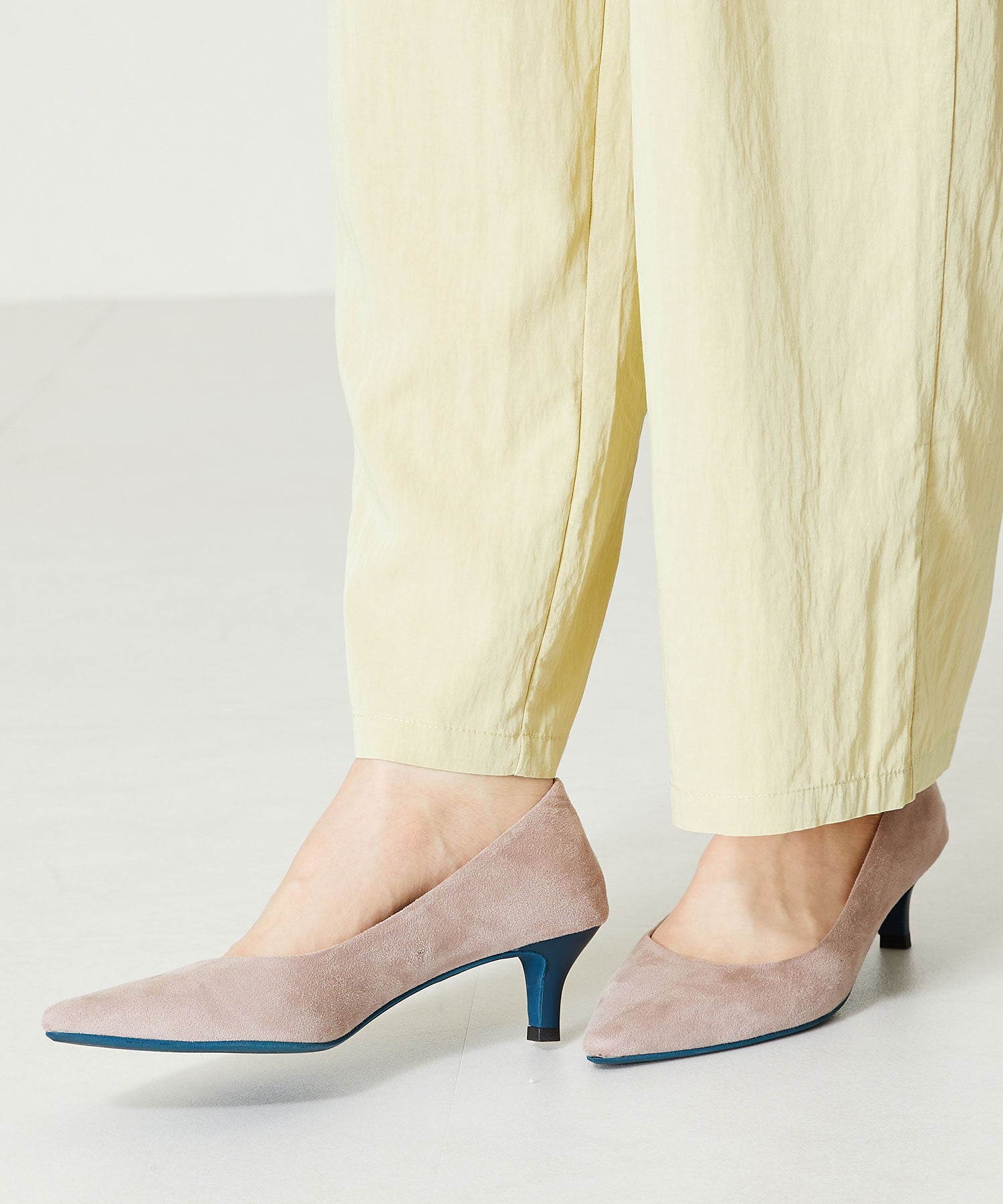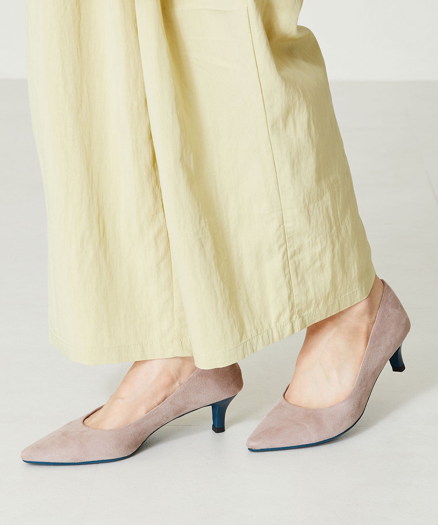 シャープなポインテッドトゥに細身のヒールが女性らしく、履くだけで華奢見えが叶うパンプス。シンプルなデザインだからこそ、ソールとヒールはあえて全色異なるカラーにし、さりげなく遊び心をプラス。踵には柔らかな芯を入れた作りで靴ずれしにくく、足当たりの良さを実現。つま先にクッションが入っているので指先への負担も少なく、ミドルヒールでヒールが苦手な方にもおすすめ。