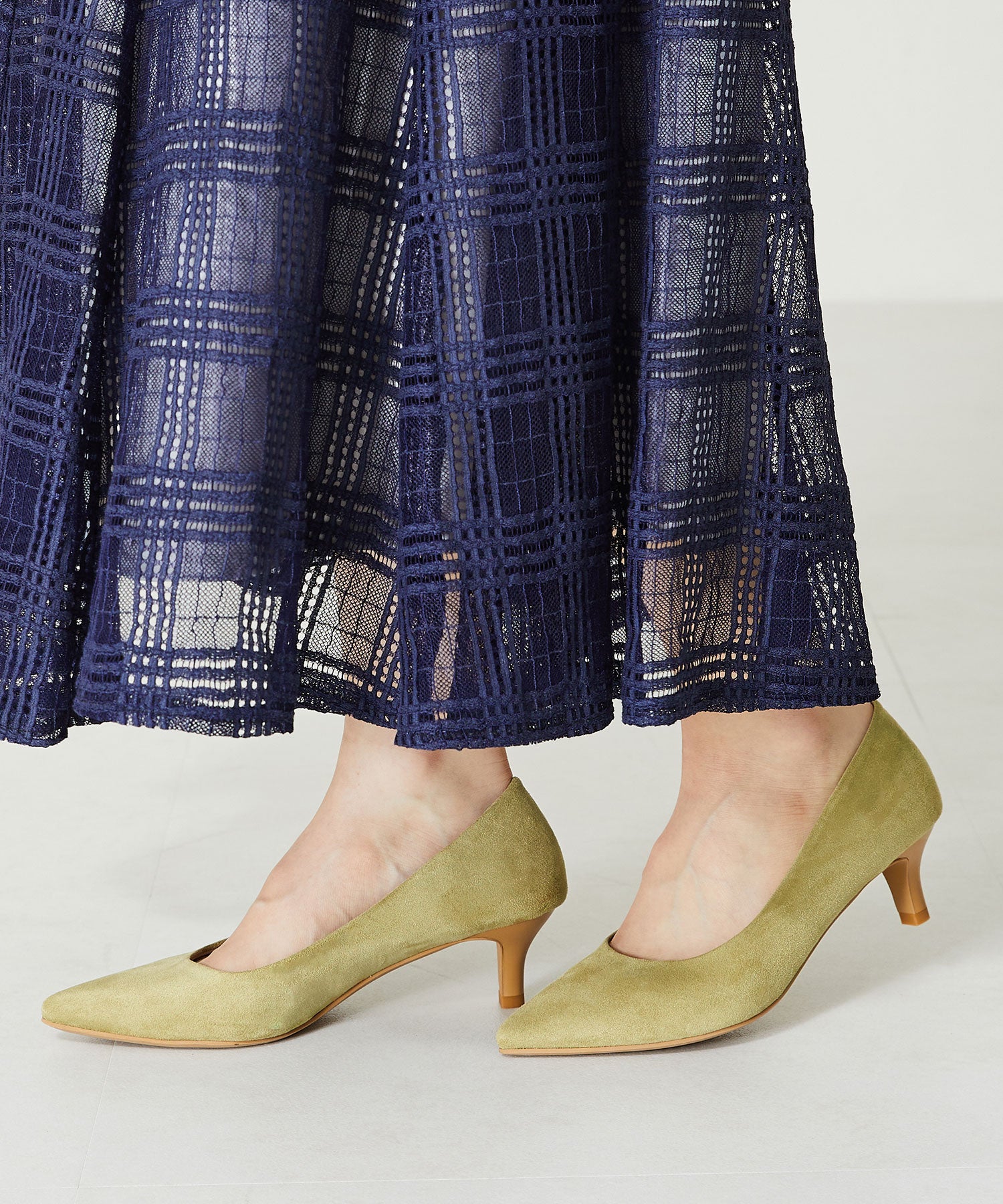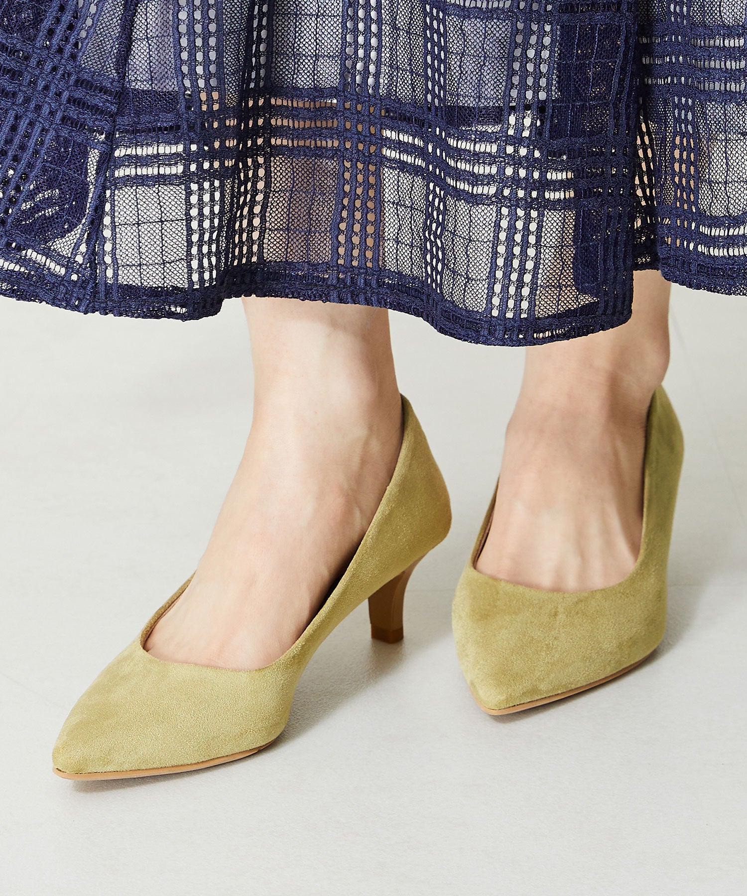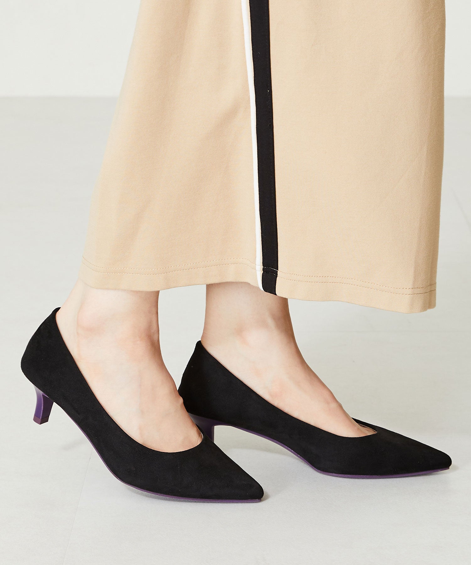 シャープなポインテッドトゥに細身のヒールが女性らしく、履くだけで華奢見えが叶うパンプス。シンプルなデザインだからこそ、ソールとヒールはあえて全色異なるカラーにし、さりげなく遊び心をプラス。踵には柔らかな芯を入れた作りで靴ずれしにくく、足当たりの良さを実現。つま先にクッションが入っているので指先への負担も少なく、ミドルヒールでヒールが苦手な方にもおすすめ。