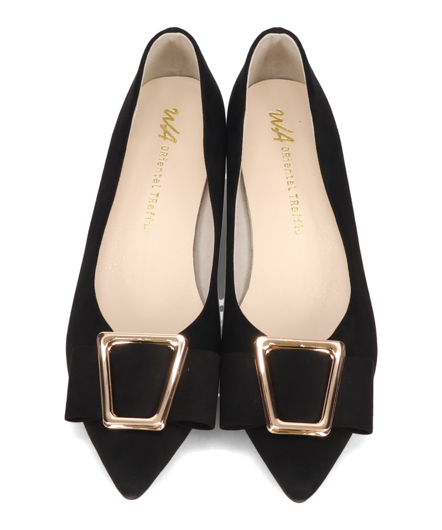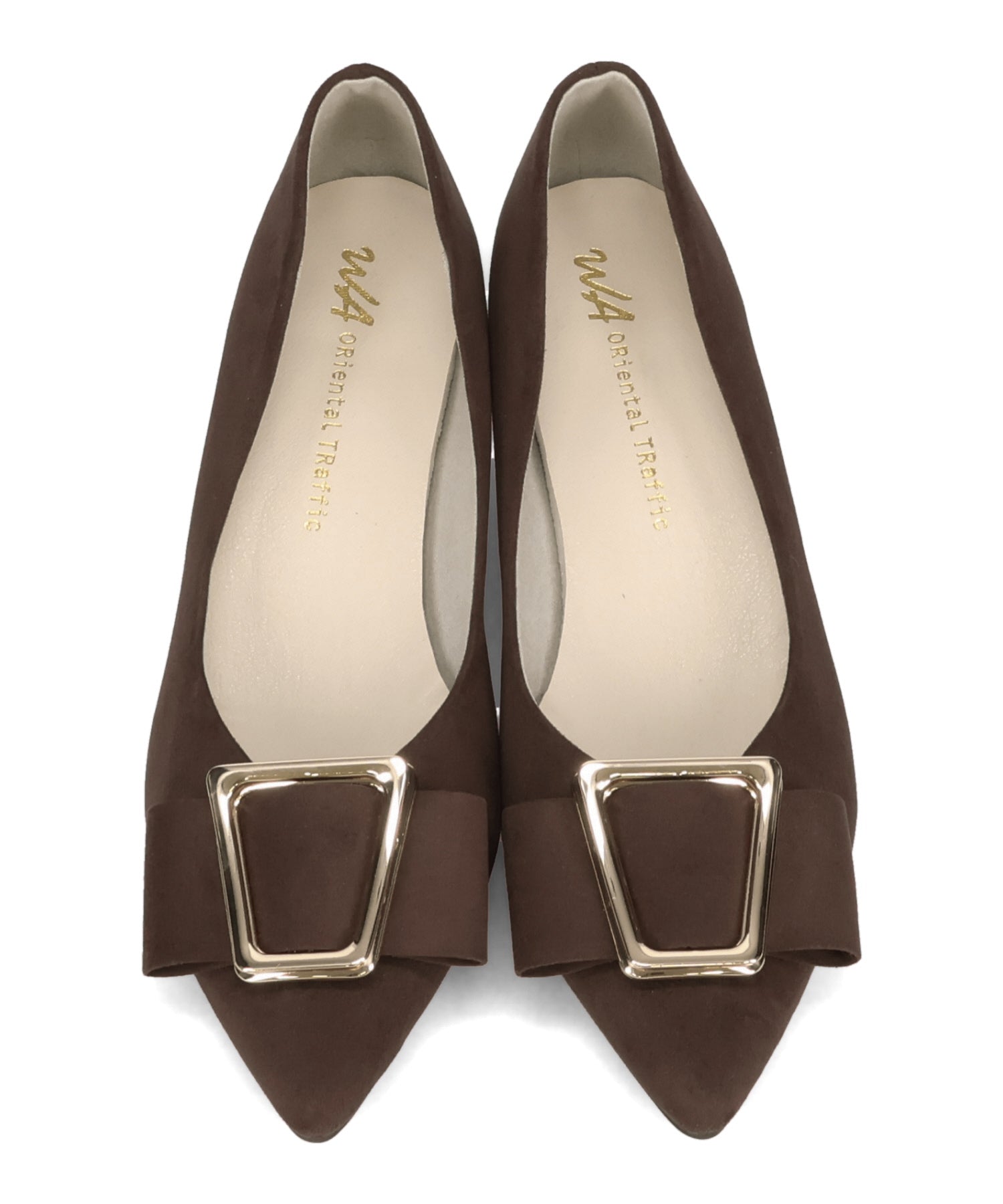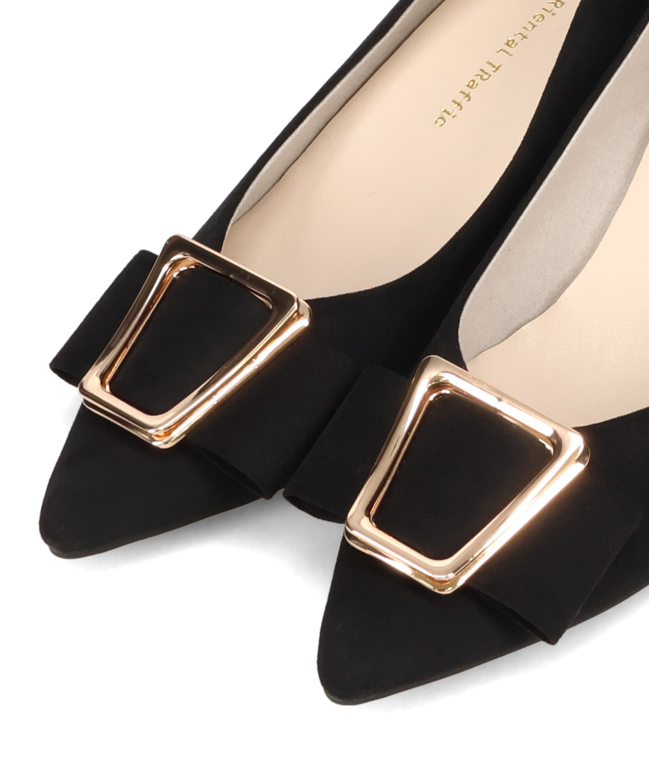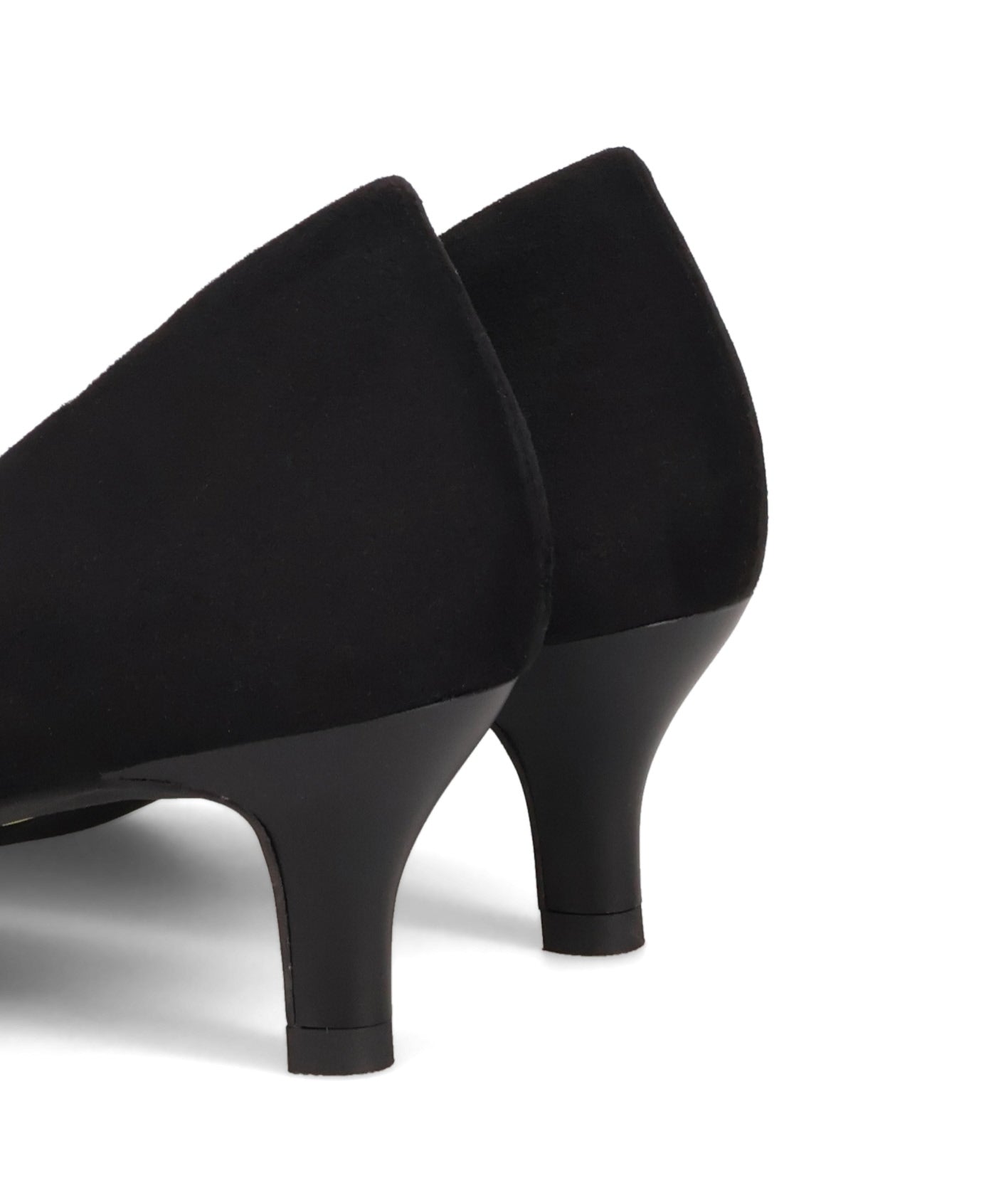 シャープなポインテッドトゥに華奢なヒールが女性らしさを引き立たせてくれるパンプス。大ぶりのモチーフは、クリップ式で付け外しが可能でシーンに合わせての使い分けが可能。つま先や中敷にクッションを入れることでヒールでも歩きやすい設計に。今期はベーシックで万能なブラック、トレンド人気のブラウン、春らしく差し色にもなるくすみグリーンの嬉しい3足展開。