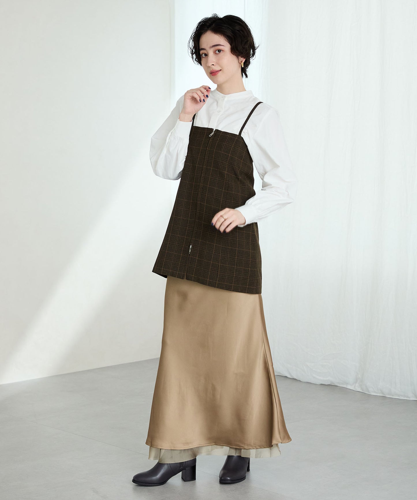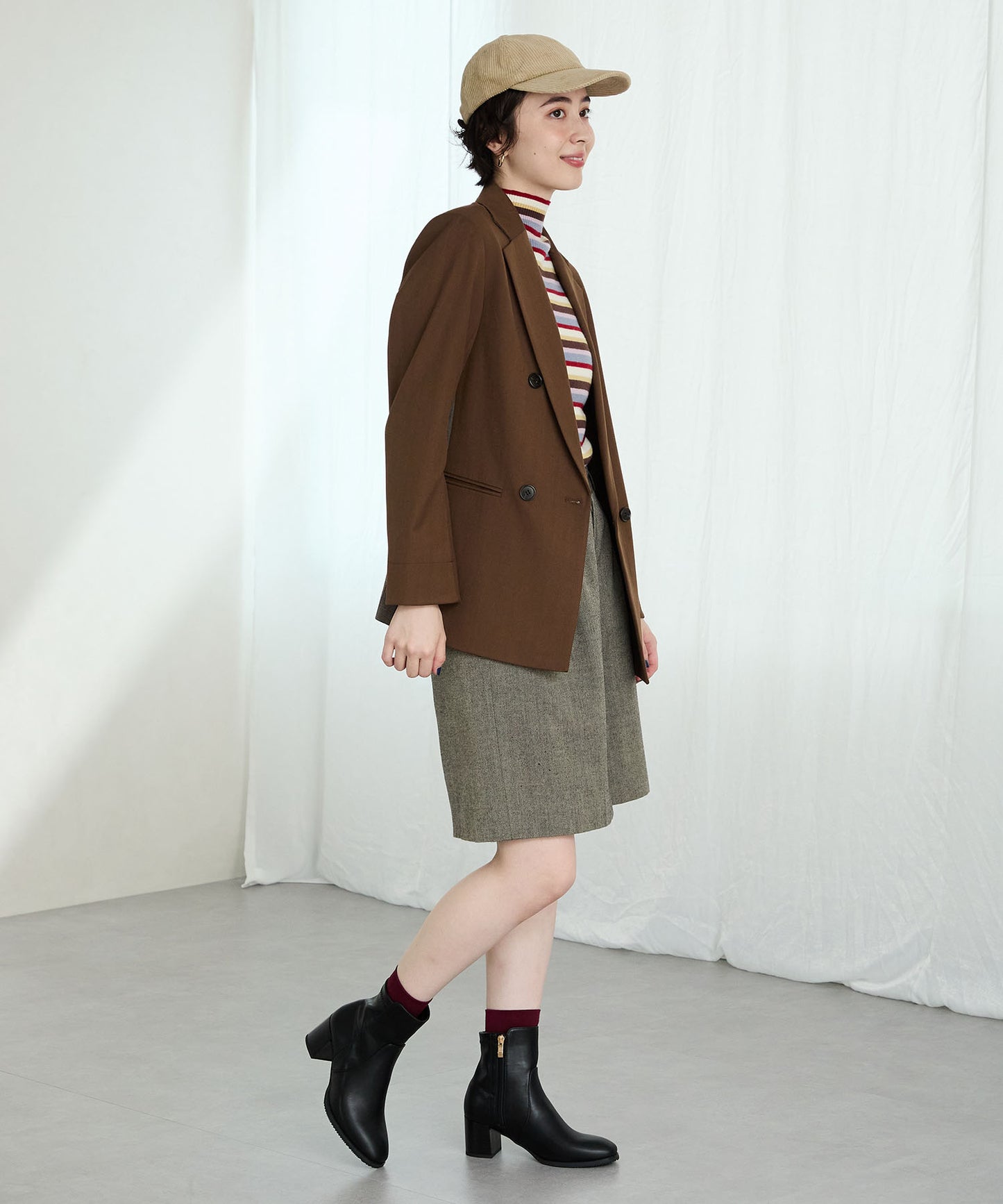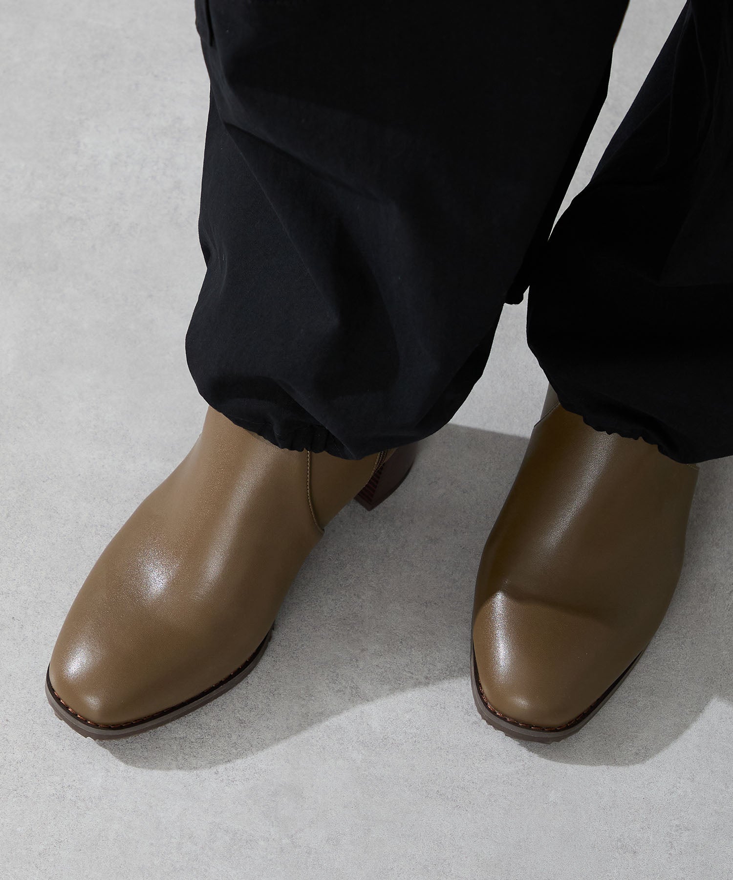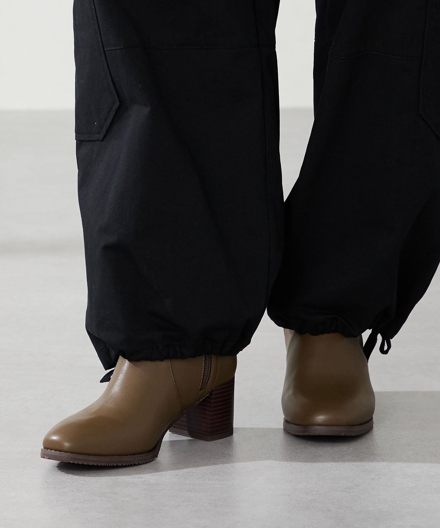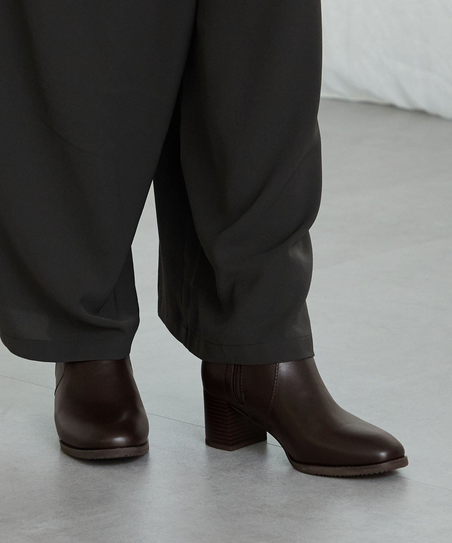 シルエットにとことんこだわった美脚効果抜群のブーツは、後ろ側を切り替え、伸縮性のあるストレッチ素材を使用することで圧迫感がなく、ストレスのない履き心地。カラー毎に素材を変えているのでお洋服の雰囲気に合わせて選ぶことが出来る。6㎝ヒールでも太めのチャンキーヒールにすることで歩行が安定し、疲れにくい。履き口に段差を付けたり、内側のゴールドのジップがアクセントに。