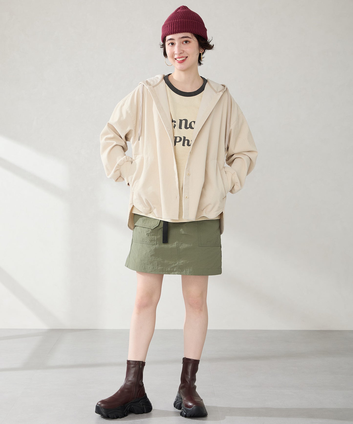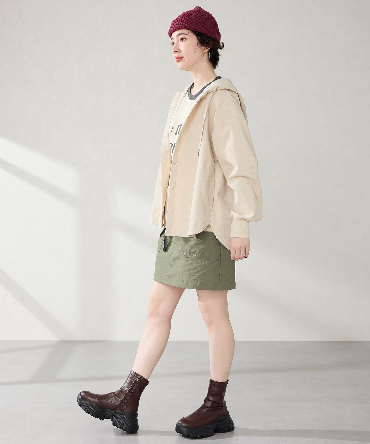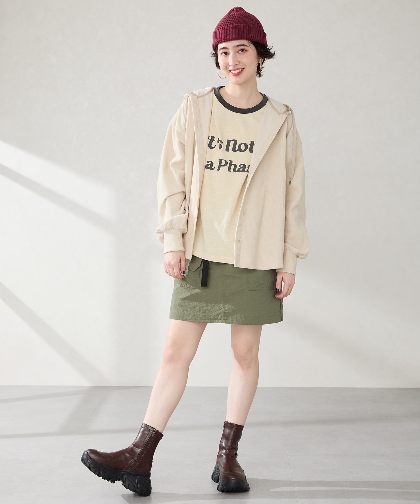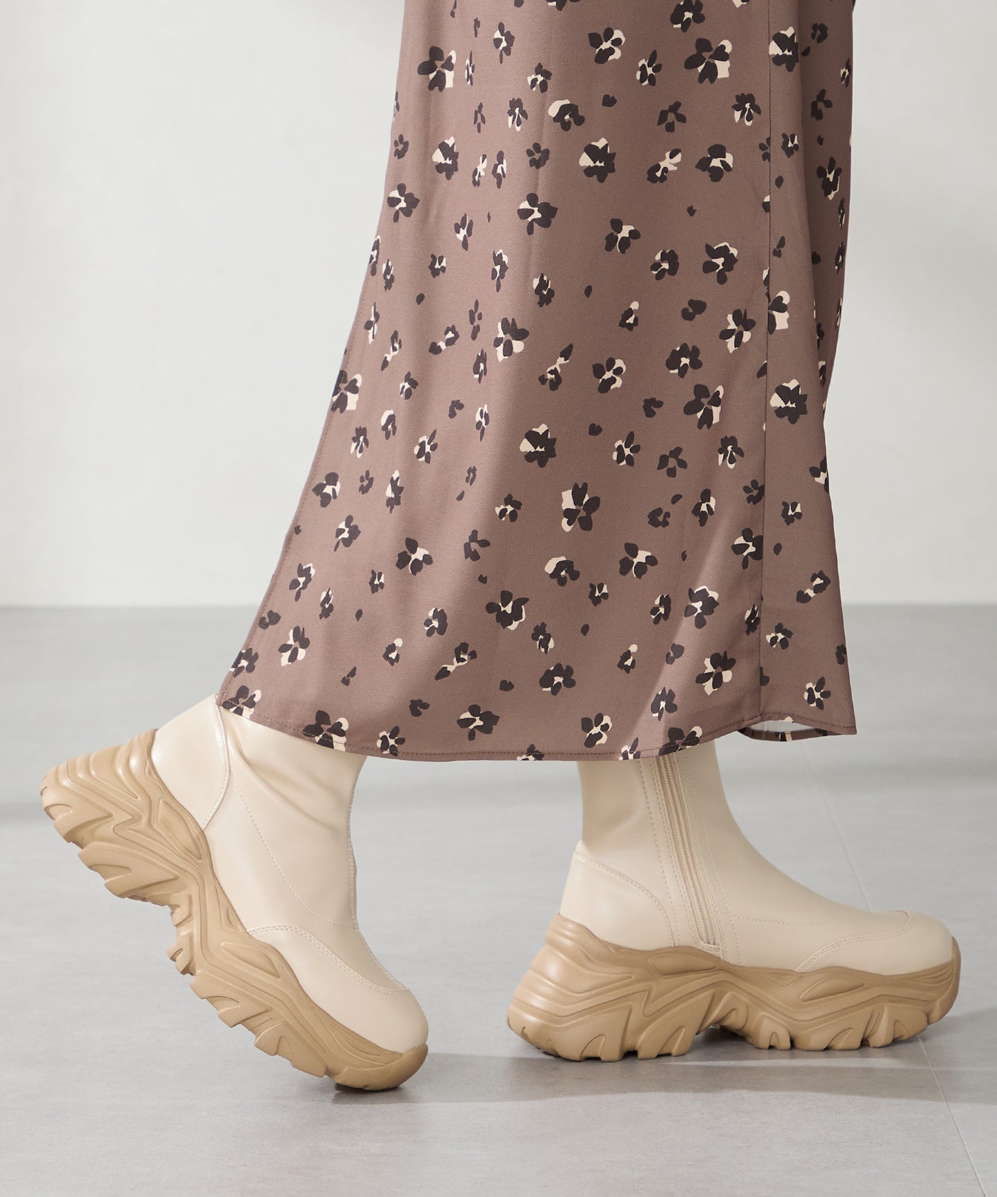 とことんボリュームを持たせたスニーカーソールがインパクト大のブーツは、履くだけでコーディネートの主役になる1足。筒回りはストレッチ素材で足当たりが良くフィットするので、ボリューミーなソールと組み合わせることで細見え効果が抜群。ソールには軽量で柔らかい材質を使用しているので見た目以上に歩きやすく疲れにくいので、今季手に入れたいマストアイテム。