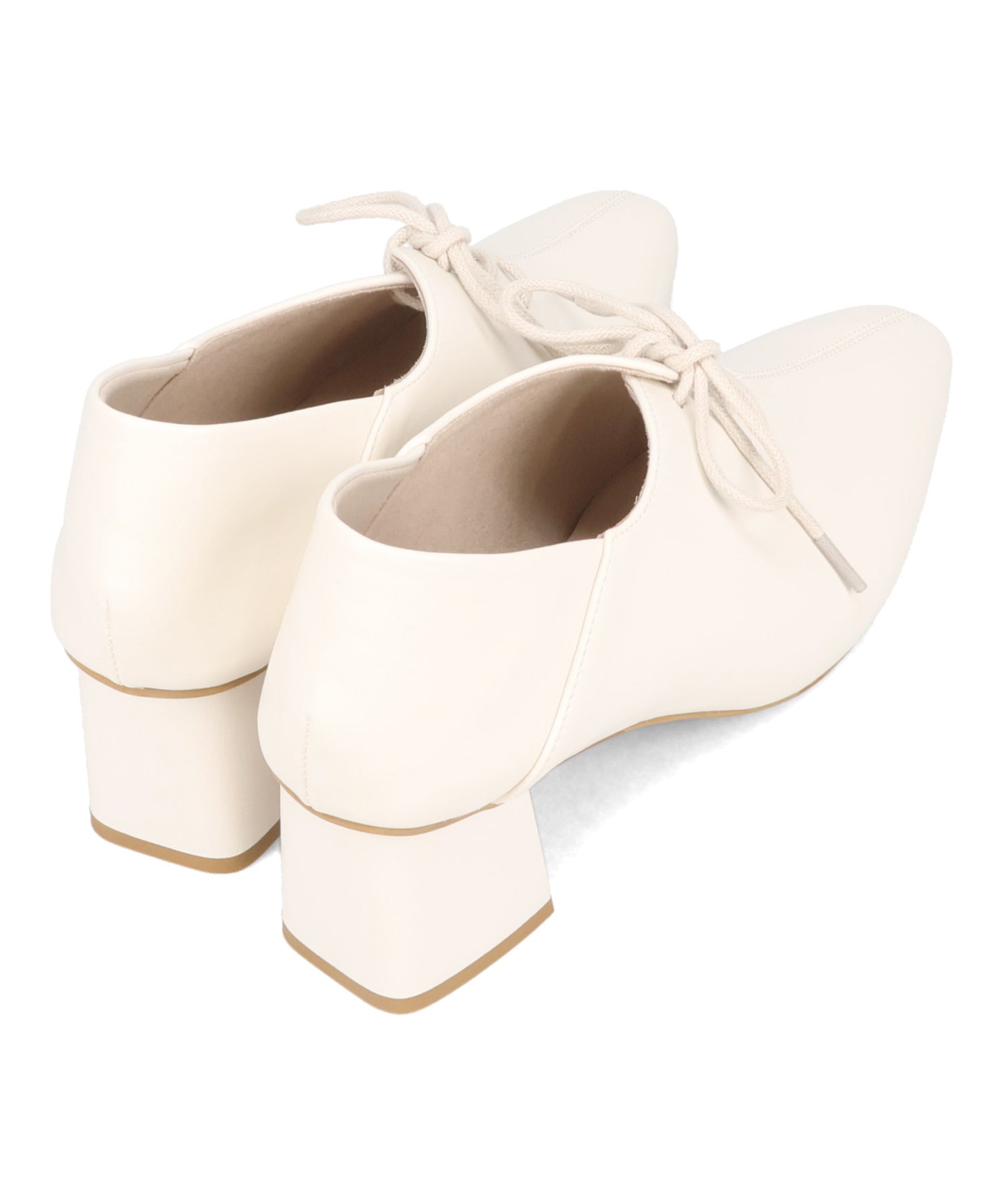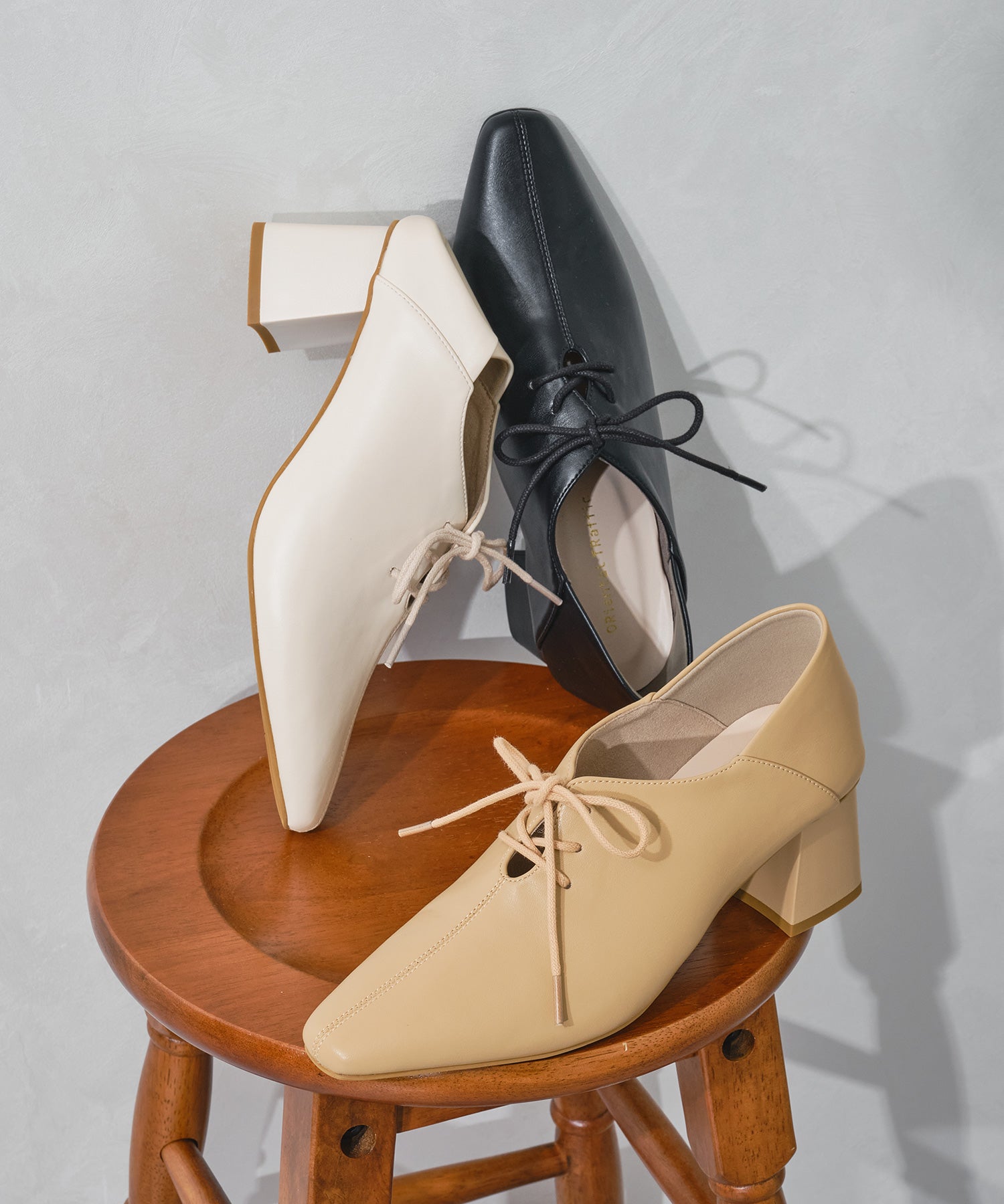 足をすっぽり包み込む甲深パンプスは、細めのシューレースを付けることでフィット感を高めながらも華奢な印象に見せてくれる1足。5.8cmのヒールもチャンキーヒールで安定感があり、さらに踵部分は芯を入れないバブーシュ仕様にすることで踏んでも履けるのが嬉しい2wayデザイン。甲のスリットで程よく抜け感がでるので、長めのボトムスと合わせても相性◎。