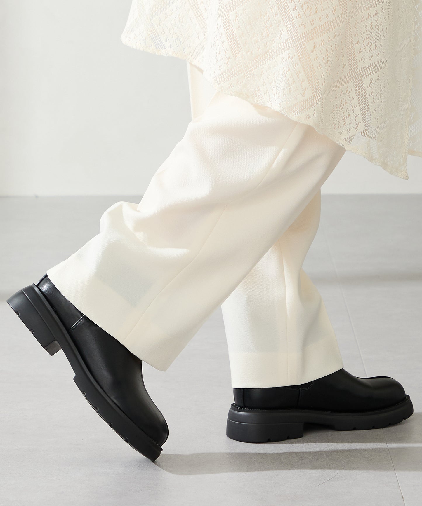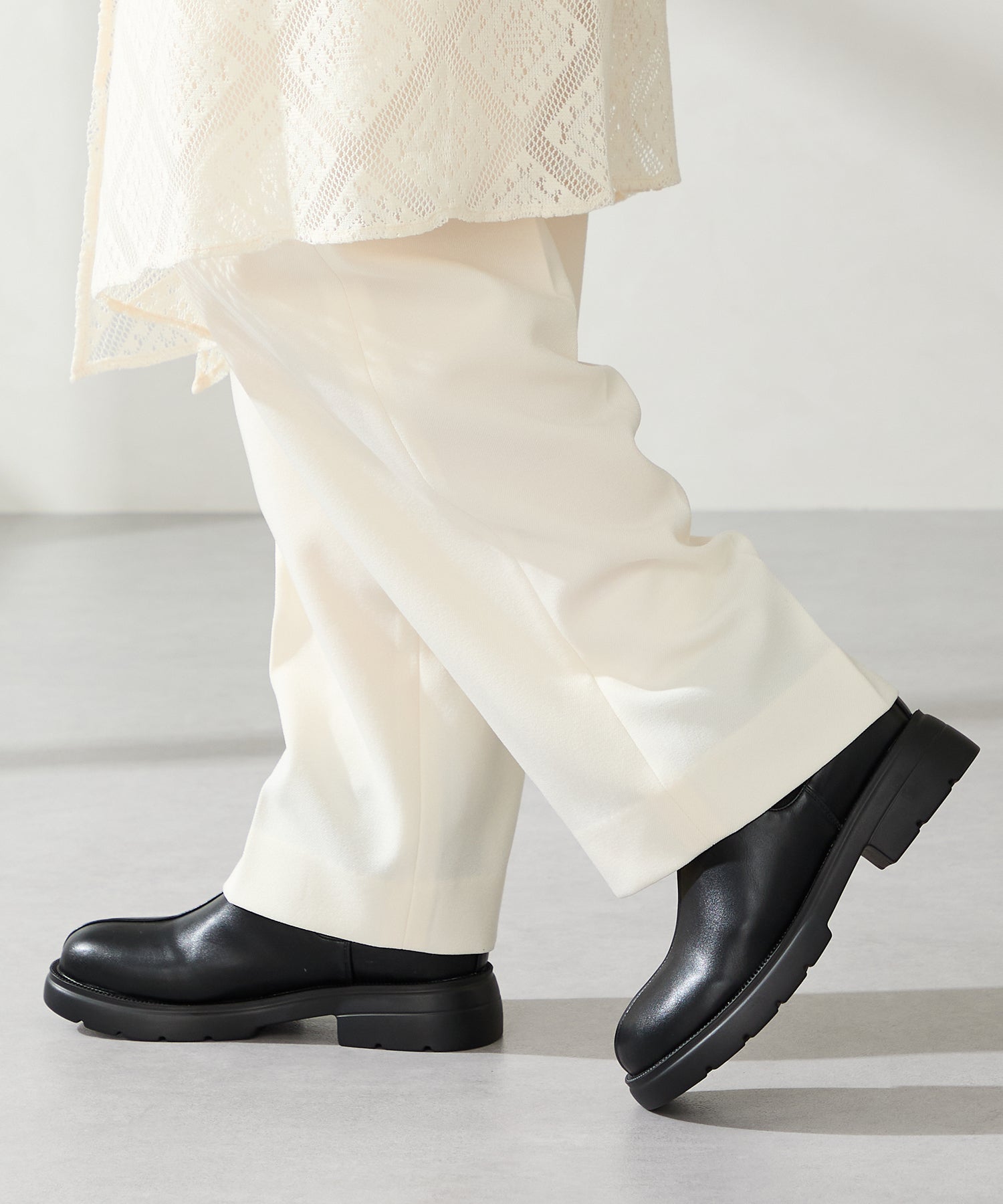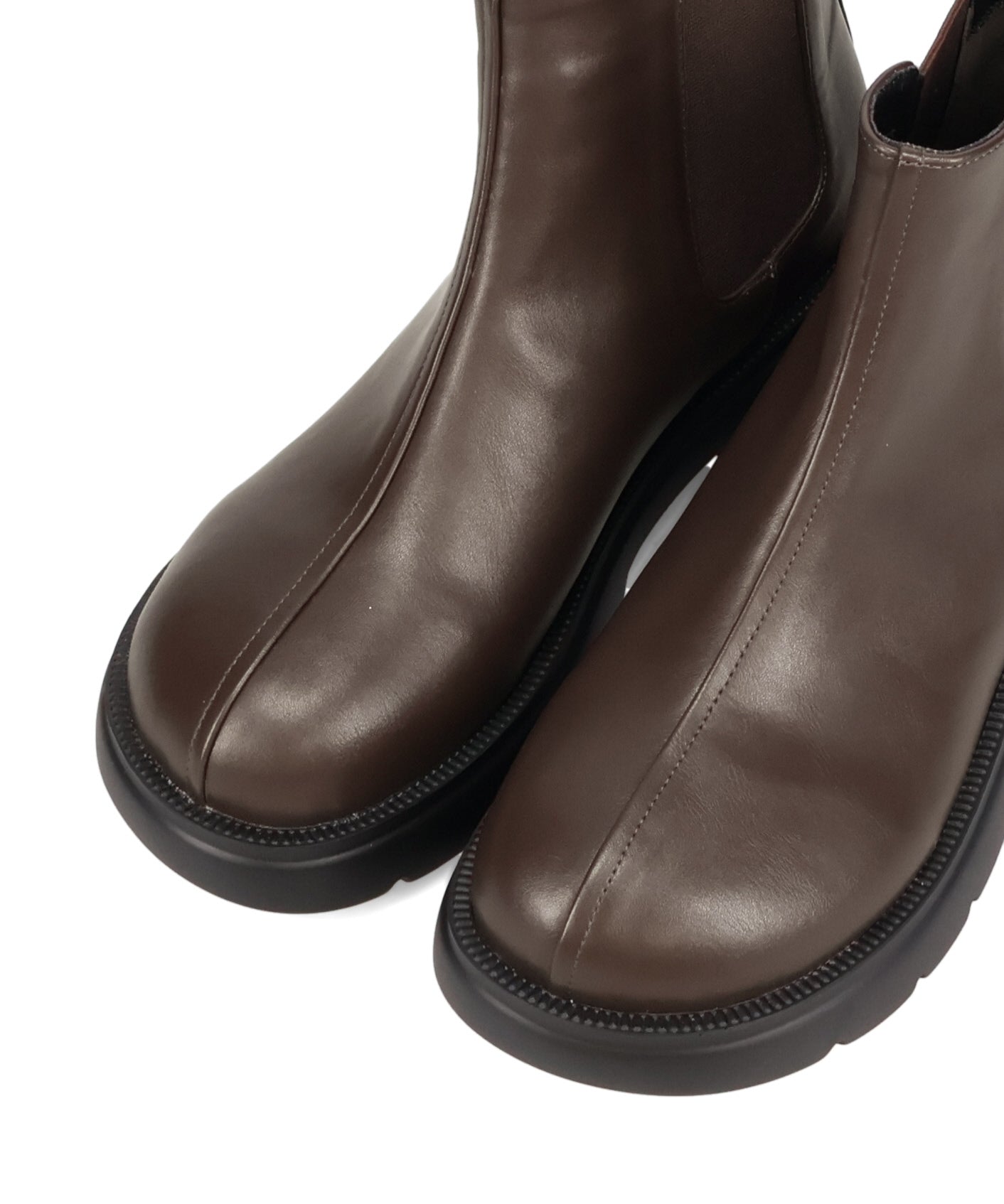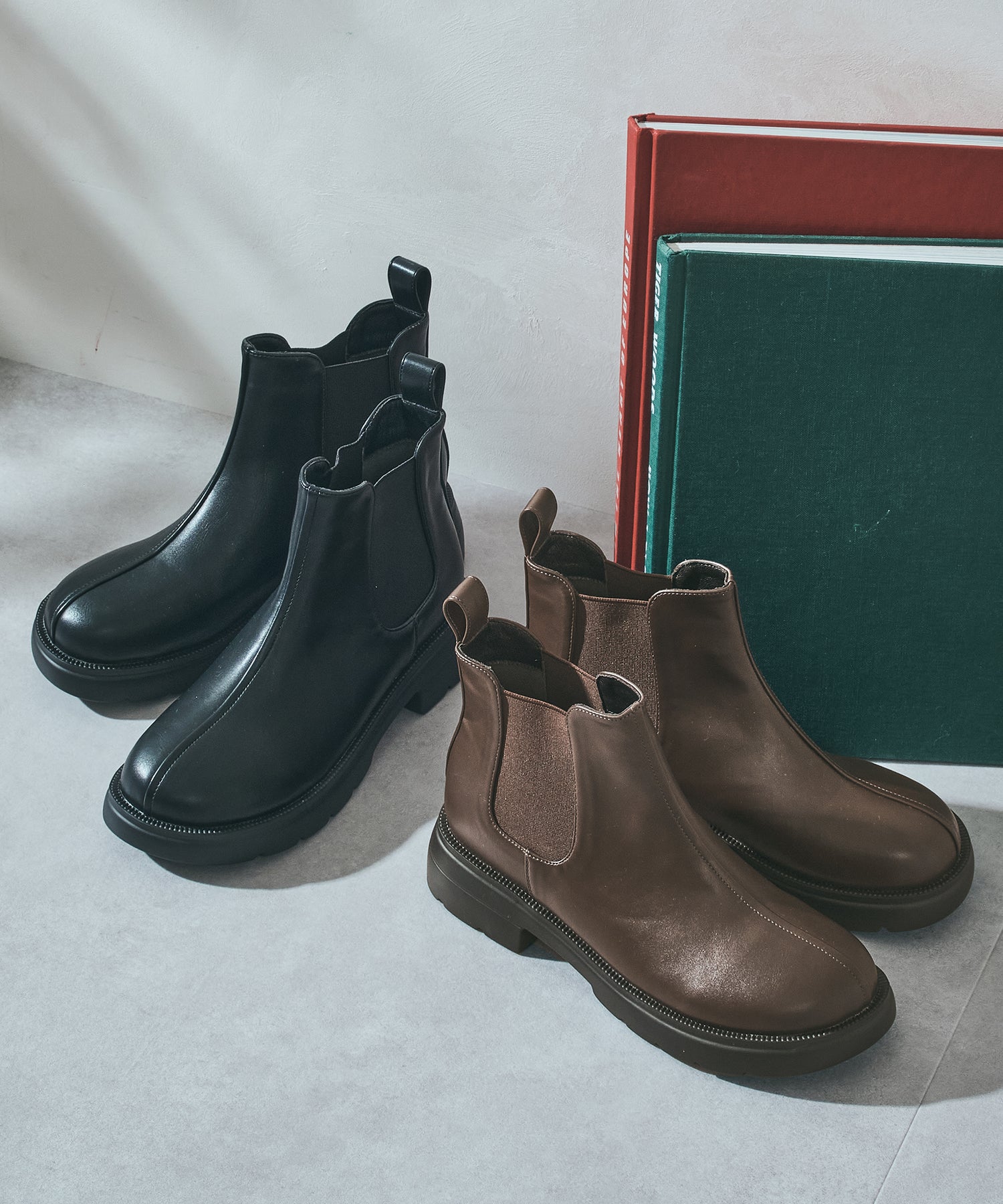 定番のサイドゴアブーツは、丸みのあるオブリークトゥで今っぽいフォルムに、センターに入れた立体的な切替デザインでひと癖加えたアイテム。絶妙な厚さのソールは軽い材質を使用することで足運びがしやすく、ジップのないゴアデザインで着脱も楽ちん。コーディネートを選ばない短めの丈感に、ブラックとダークトーンのブラウンの合わせやすい2色展開でこの冬大活躍しそう。