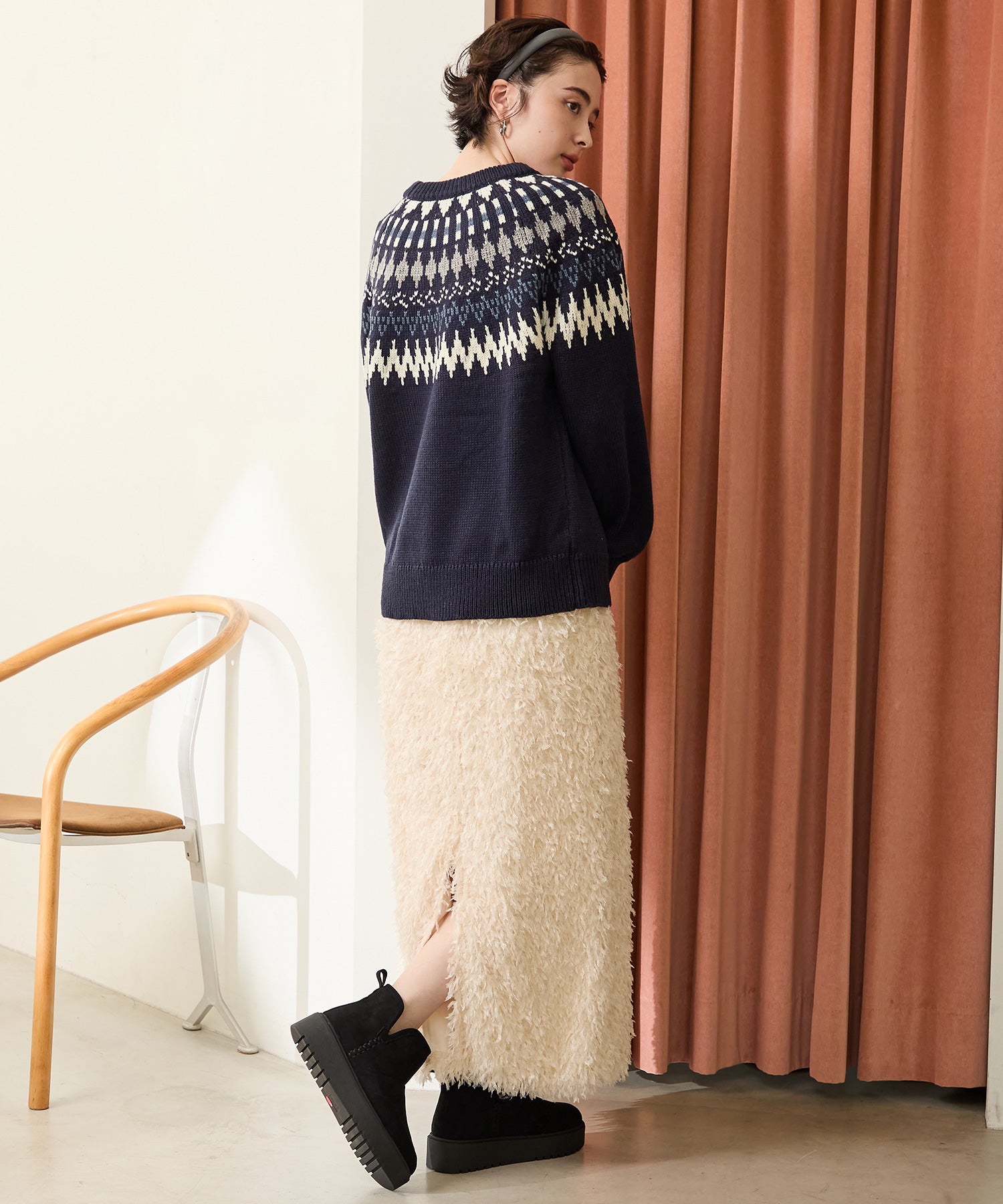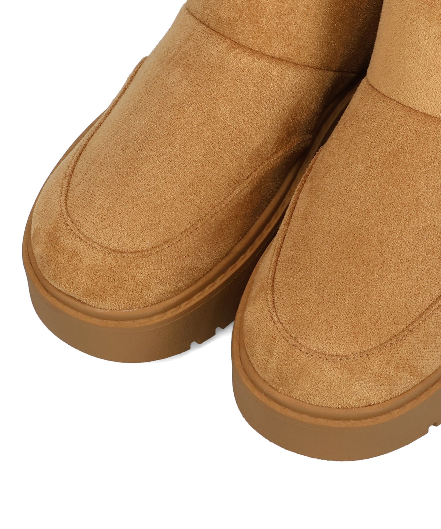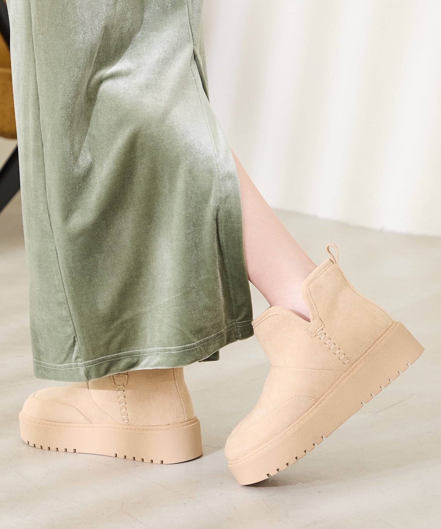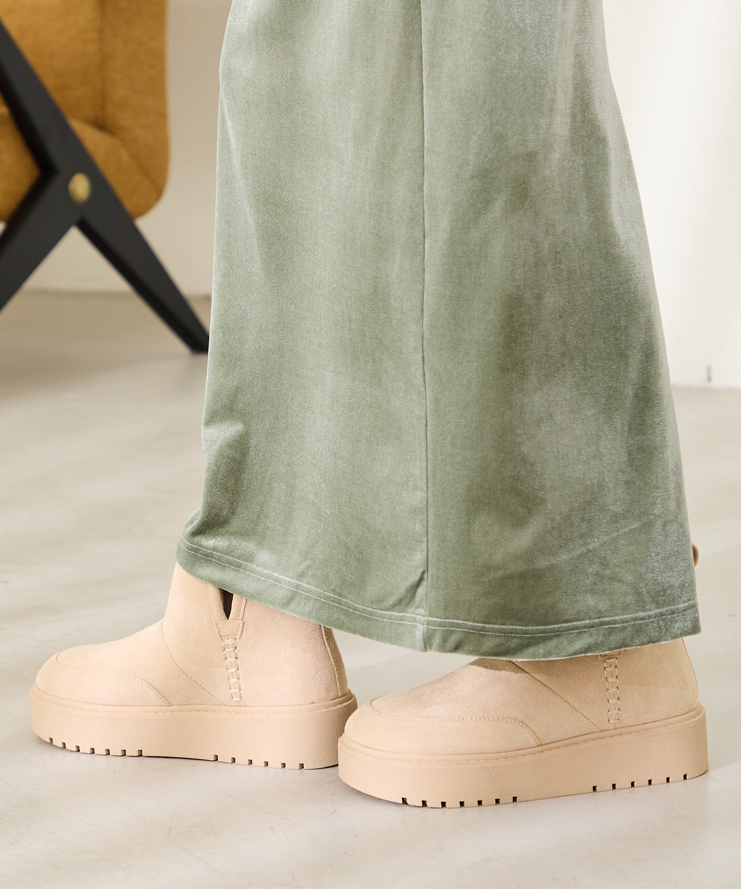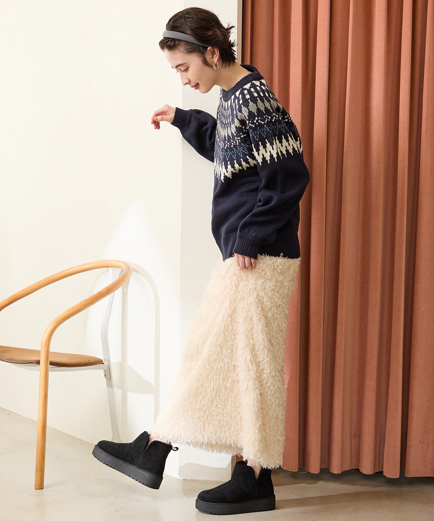 内側全体にフェイクファーをあしらったムートンブーツはお洒落さと防寒を両立できるアイテム。短めの筒丈で着脱しやすく、サイドスリット入りなので筒を折り返しても楽しめる2way仕様なのが嬉しいポイント。しっかり厚みのあるボリュームソールが今季らしいシルエットを叶えてくれる。ソールは柔らかく軽い材質で屈曲性が高く、フィット感抜群な機能面も充実したマストハブブーツ。