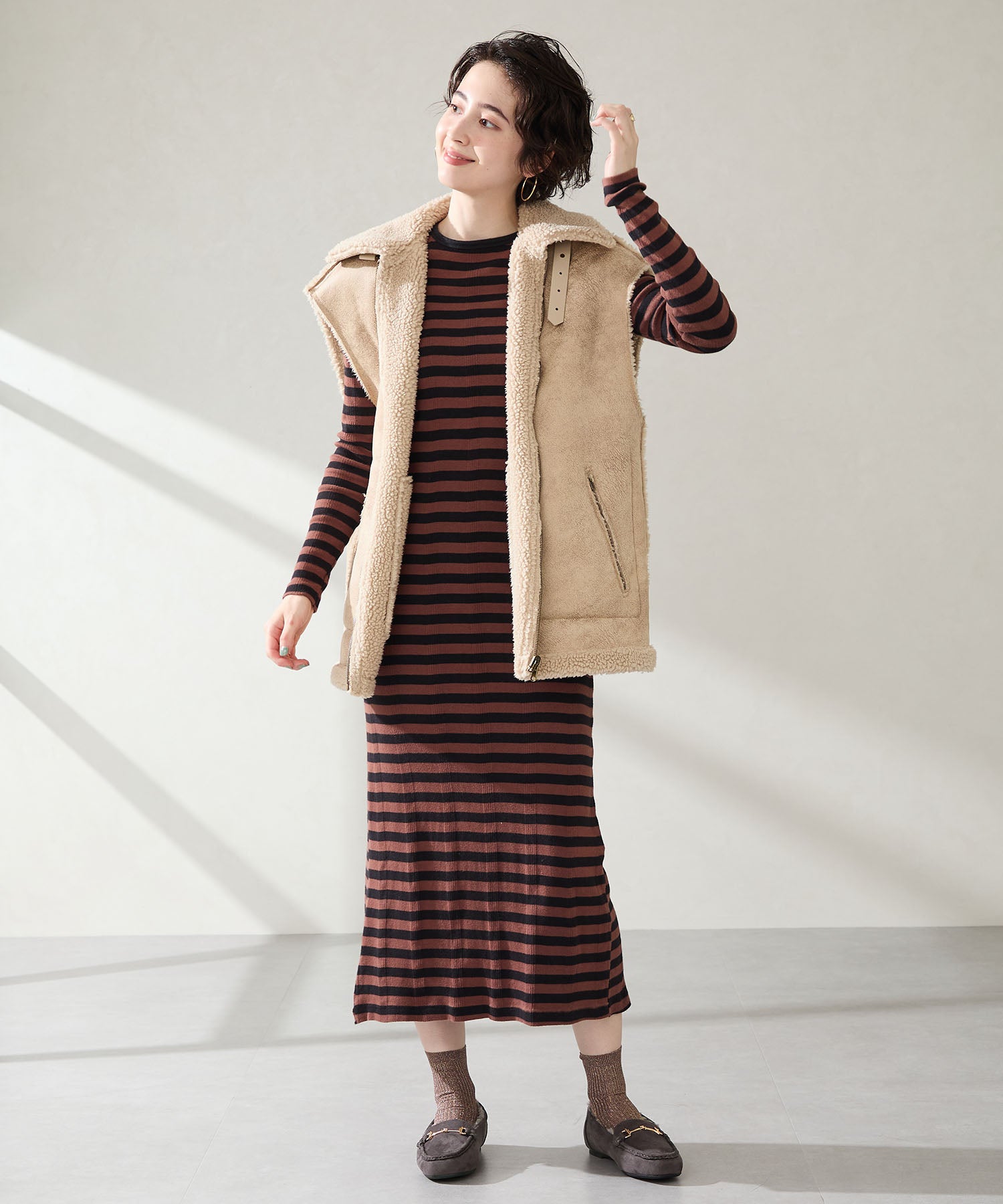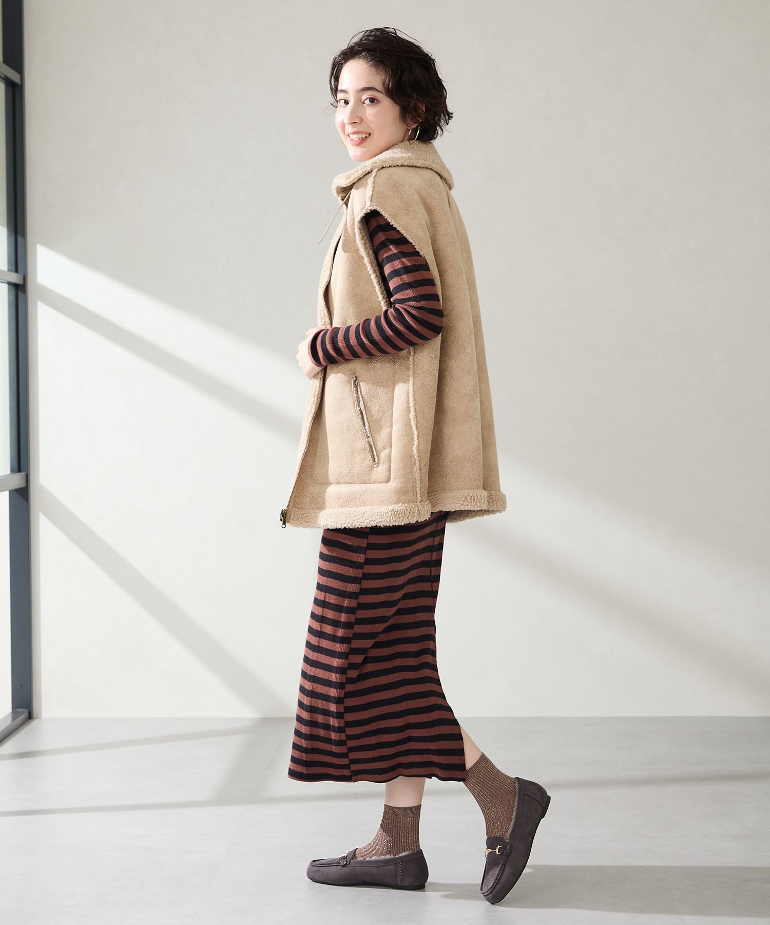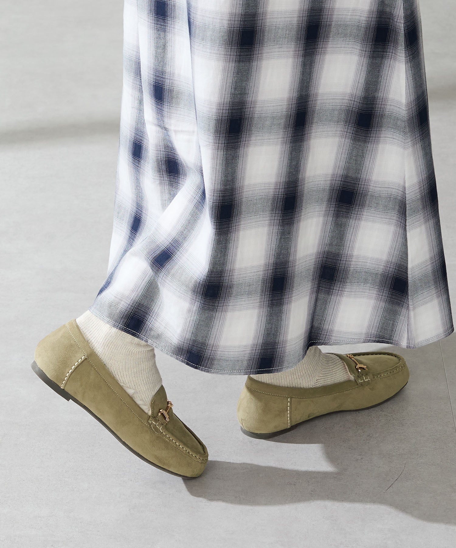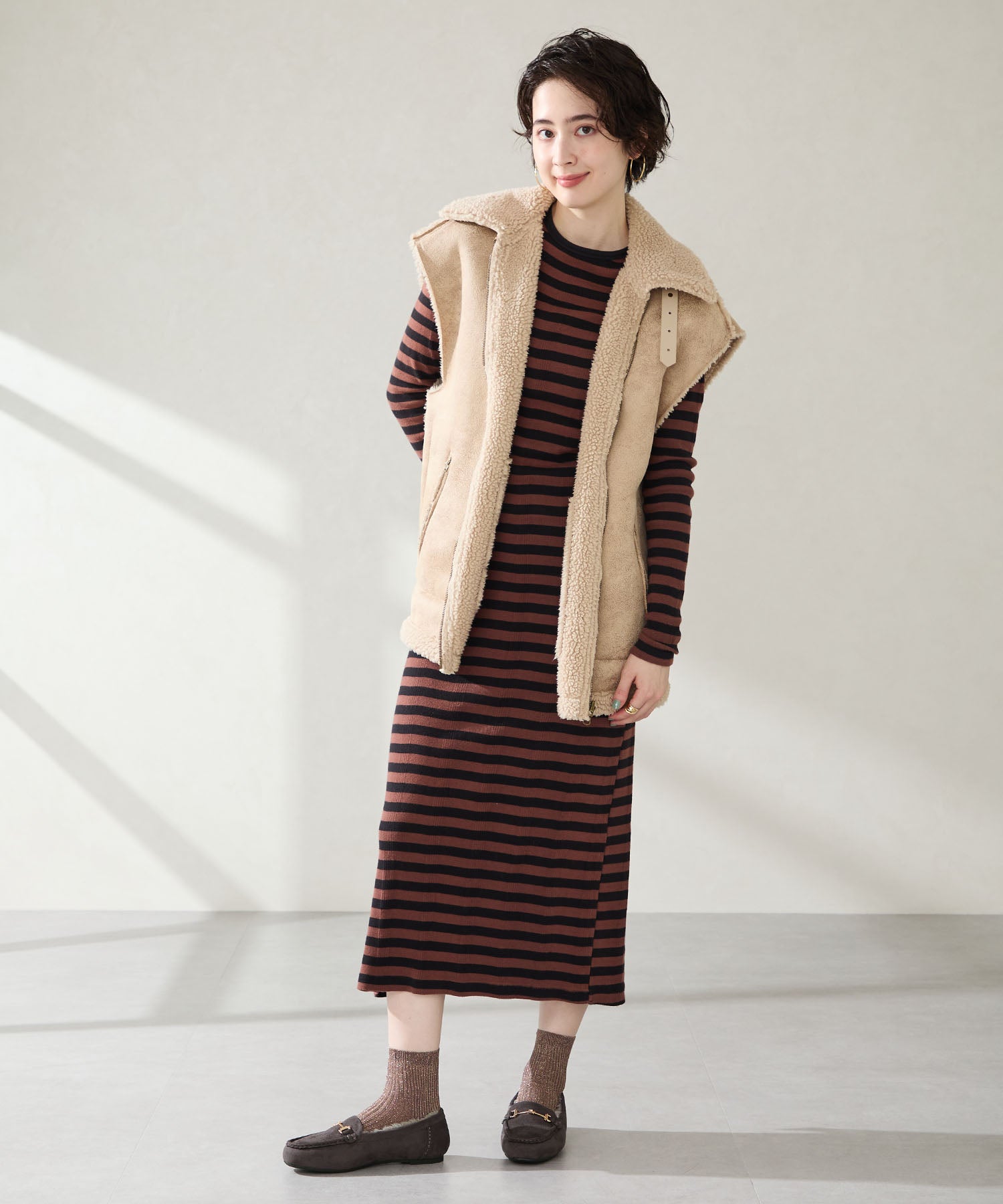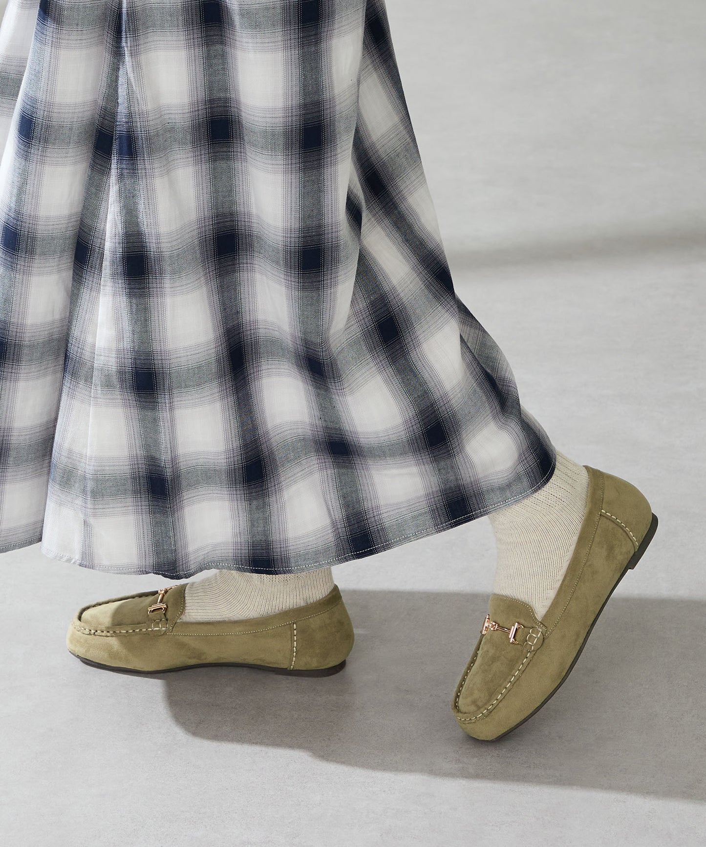 軽くて暖かい人気のムートンシューズは、ゴールドのビットモチーフを付けたデザインで高級感のある仕上がりに。中敷や内側全体にふわふわのフェイクファーを使用し、足裏や指先まで優しく包み込んでくれる履き心地。さっと楽に履ける上に、甲を覆う深めの履き口でホールド感があり、防寒アイテムとして最適なシューズは、この冬大活躍すること間違い無し。