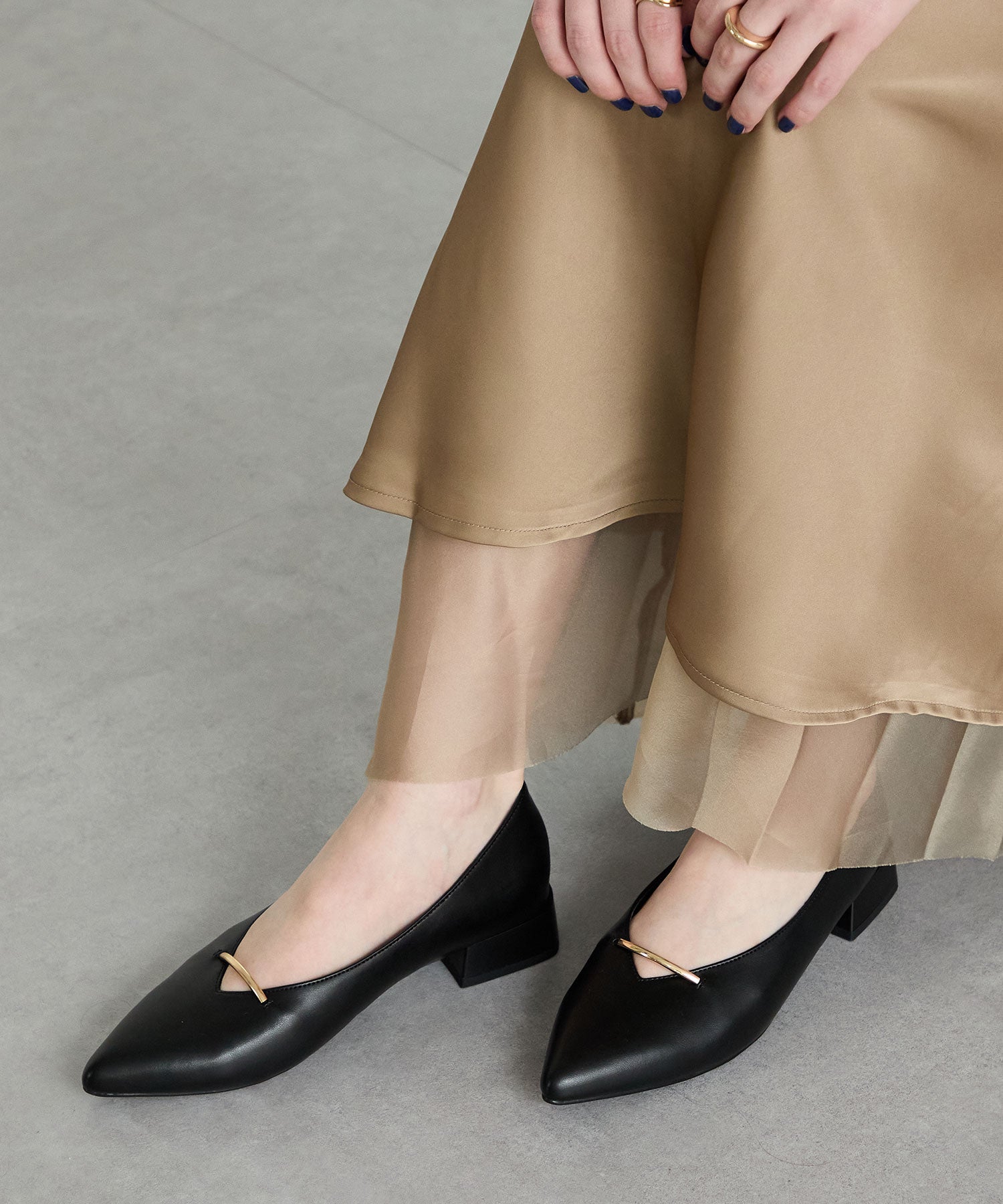 【WEB先行予約/11月中旬発売予定】ラインメタルパーツポインテッドトゥパンプス/55304
