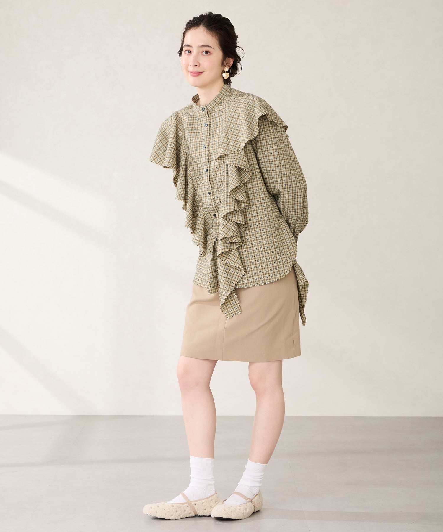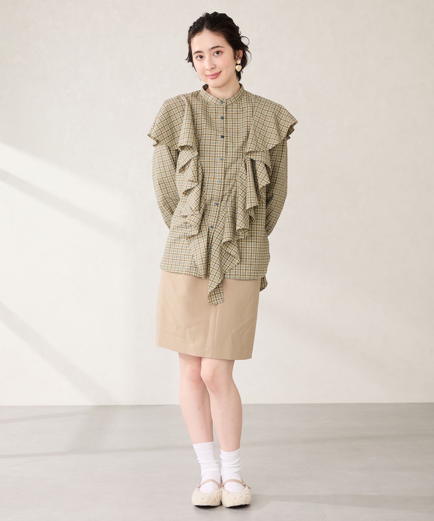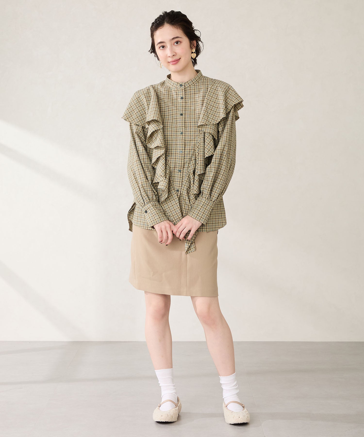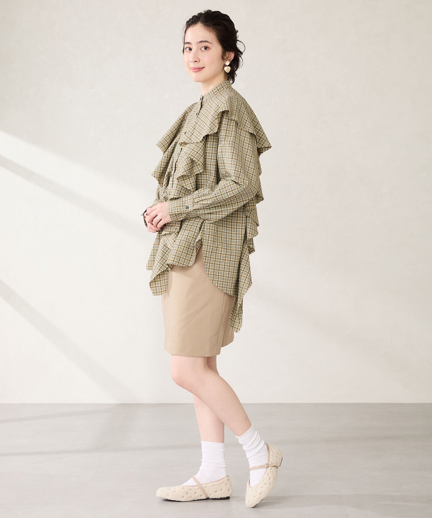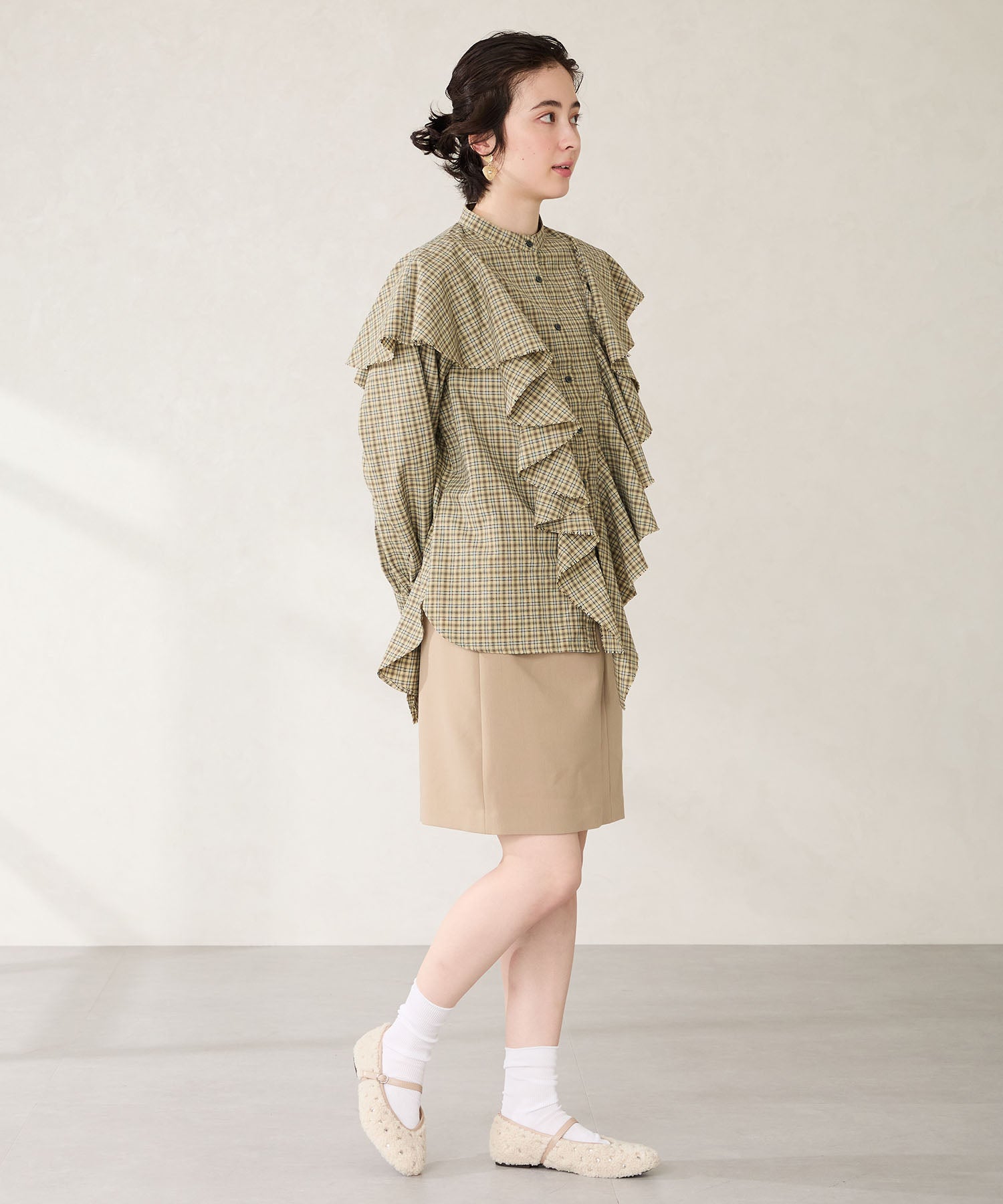 全体にスタッズを散りばめハードな雰囲気を纏ったメリージェーンパンプス。細かなラメがさりげなく輝くブラックに、レオパード柄がトレンドライクなブラウン、シーズンムードを高めるモコモコなボア素材が可愛いベージュと、全色異なるマテリアルで仕上げたバリエーションで選ぶのが楽しい。隠しゴム付きの細ストラップで、足をしっかりホールドしながら、着脱のしやすさも考えられた1足。