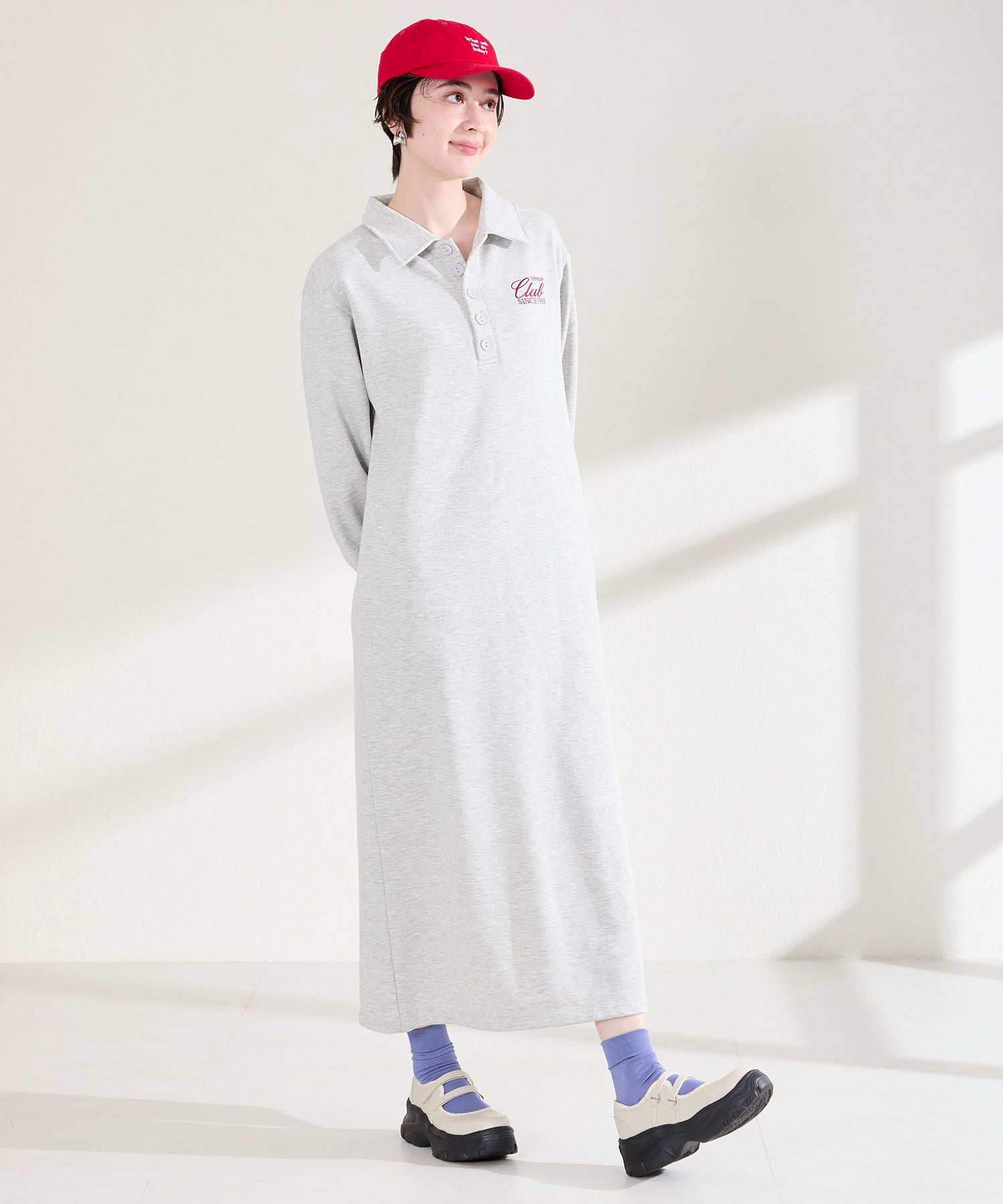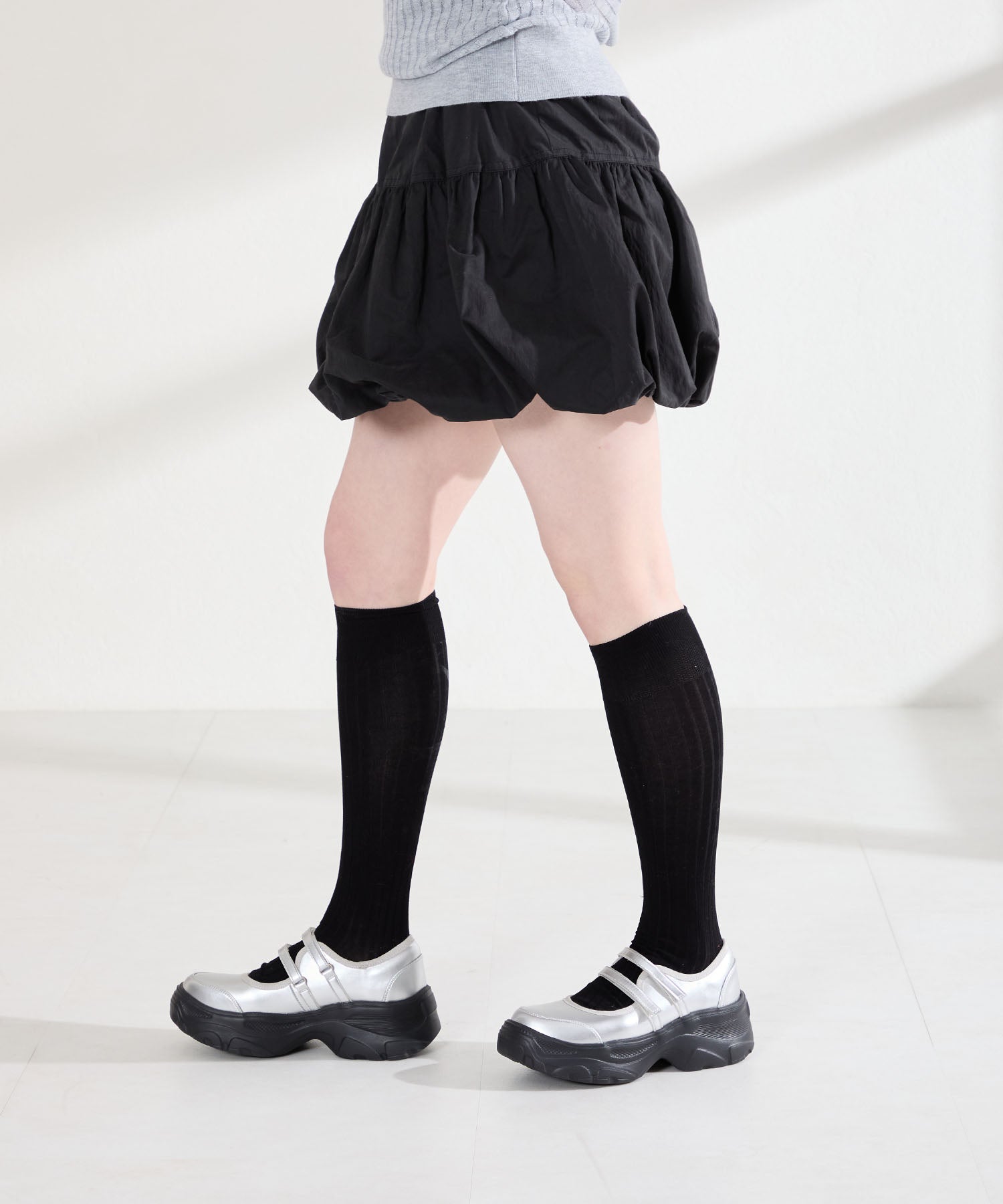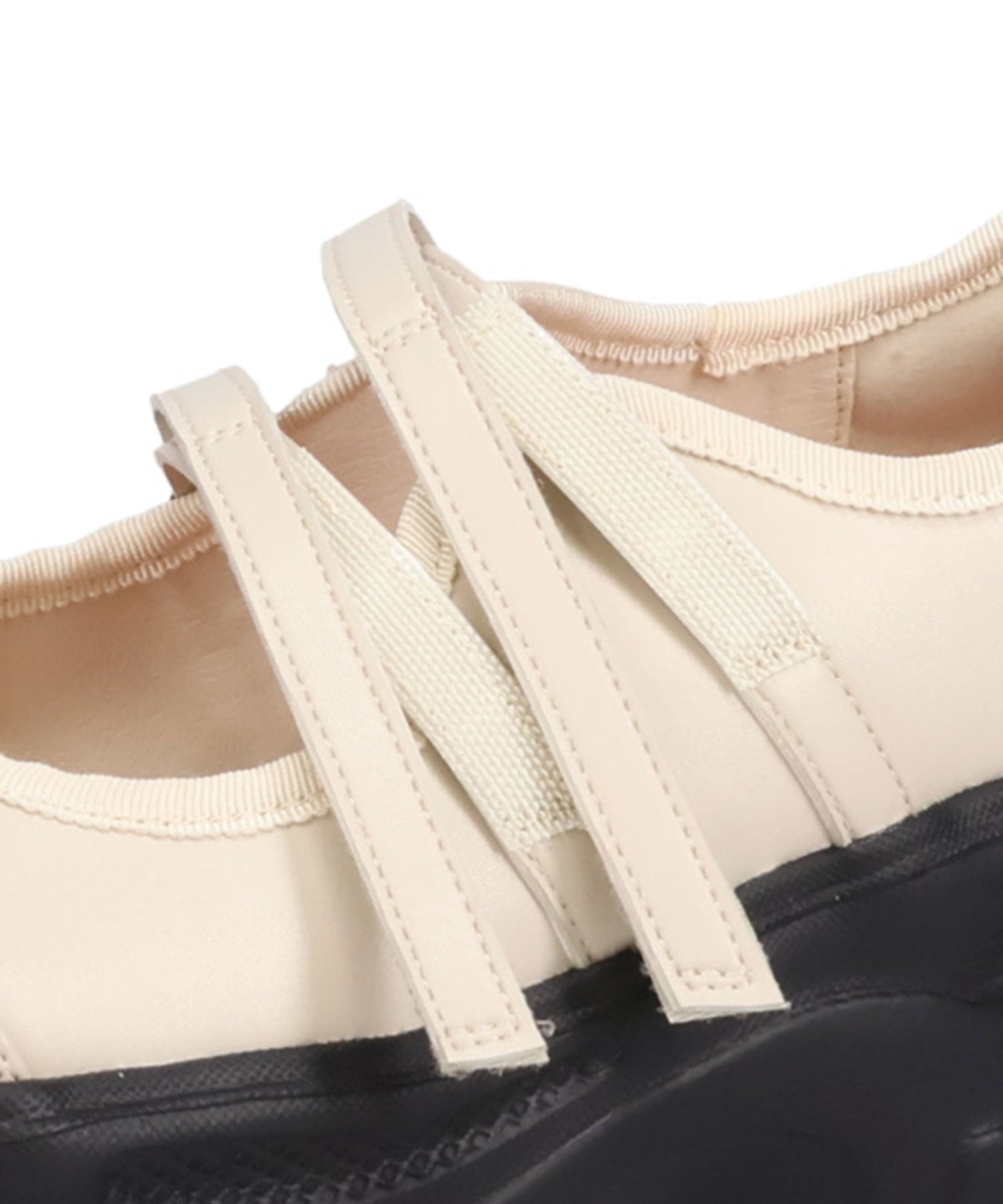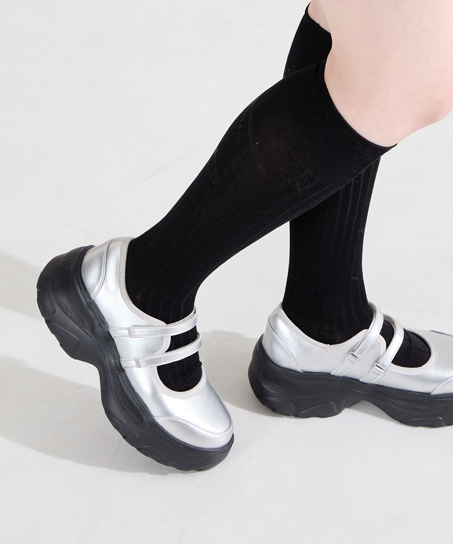 ボリューム感たっぷりのスニーカーソールとメリージェーンデザインの組み合わせが今季らしい旬のアイテム。2本のベルトはベルクロタイプで着脱がしやすく、厚底ソールは見た目以上に軽量なので、高低差が少なく歩きやすいのも嬉しい。甲部分が空いており、靴下の合わせ方次第で表情が変わるので、カジュアルにもガーリーにも幅広いスタイリングに合わせられる。