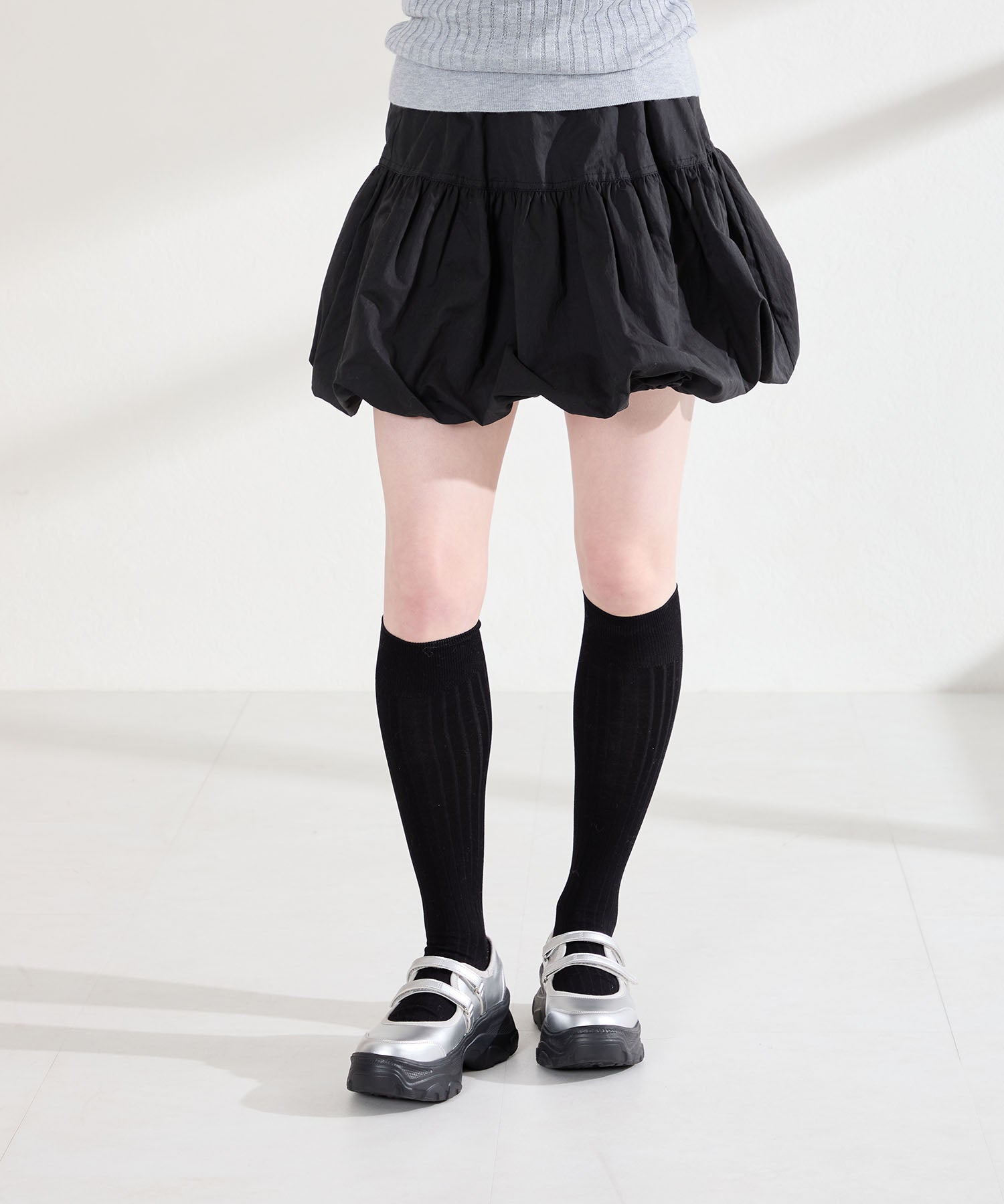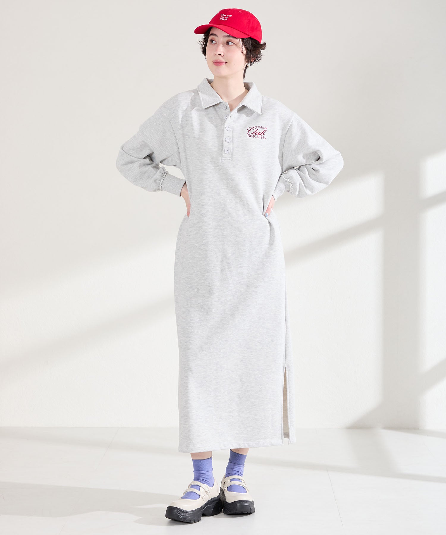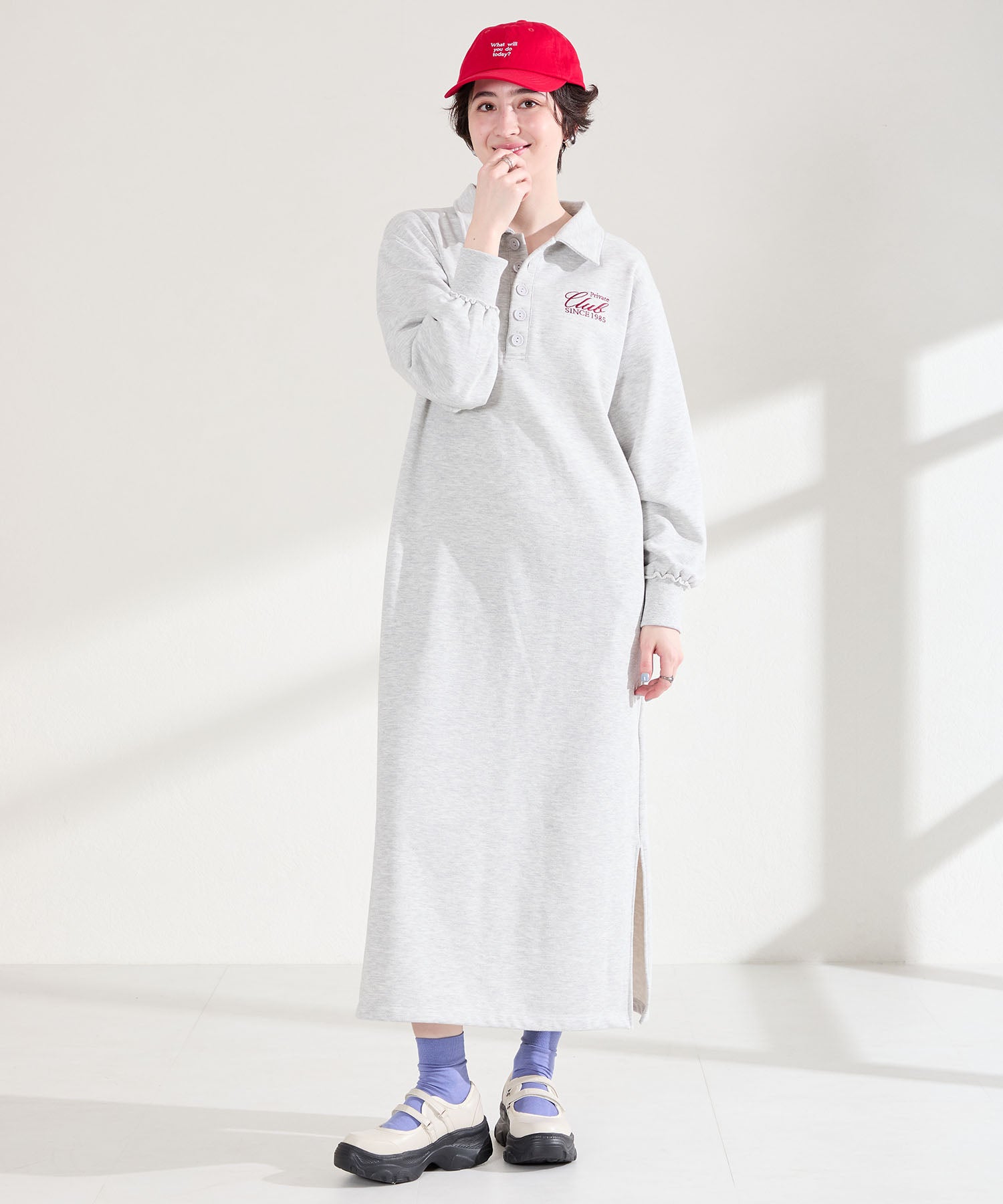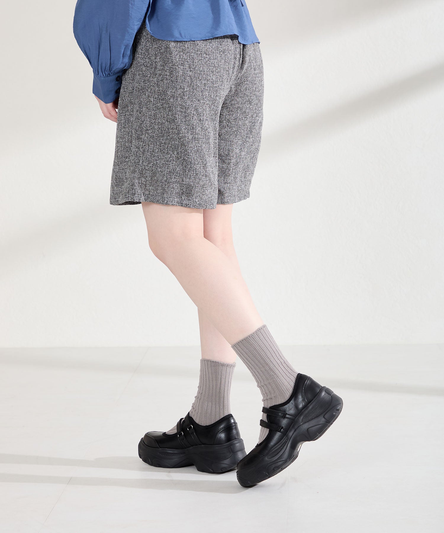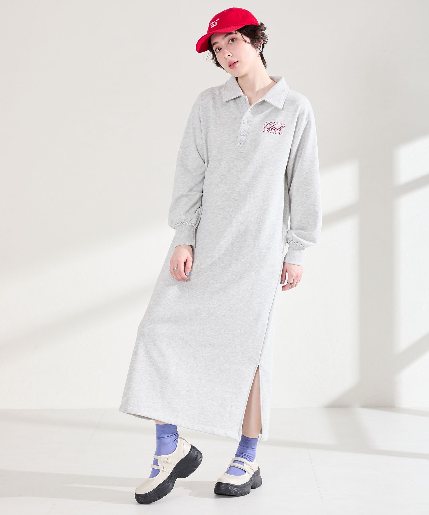 ボリューム感たっぷりのスニーカーソールとメリージェーンデザインの組み合わせが今季らしい旬のアイテム。2本のベルトはベルクロタイプで着脱がしやすく、厚底ソールは見た目以上に軽量なので、高低差が少なく歩きやすいのも嬉しい。甲部分が空いており、靴下の合わせ方次第で表情が変わるので、カジュアルにもガーリーにも幅広いスタイリングに合わせられる。