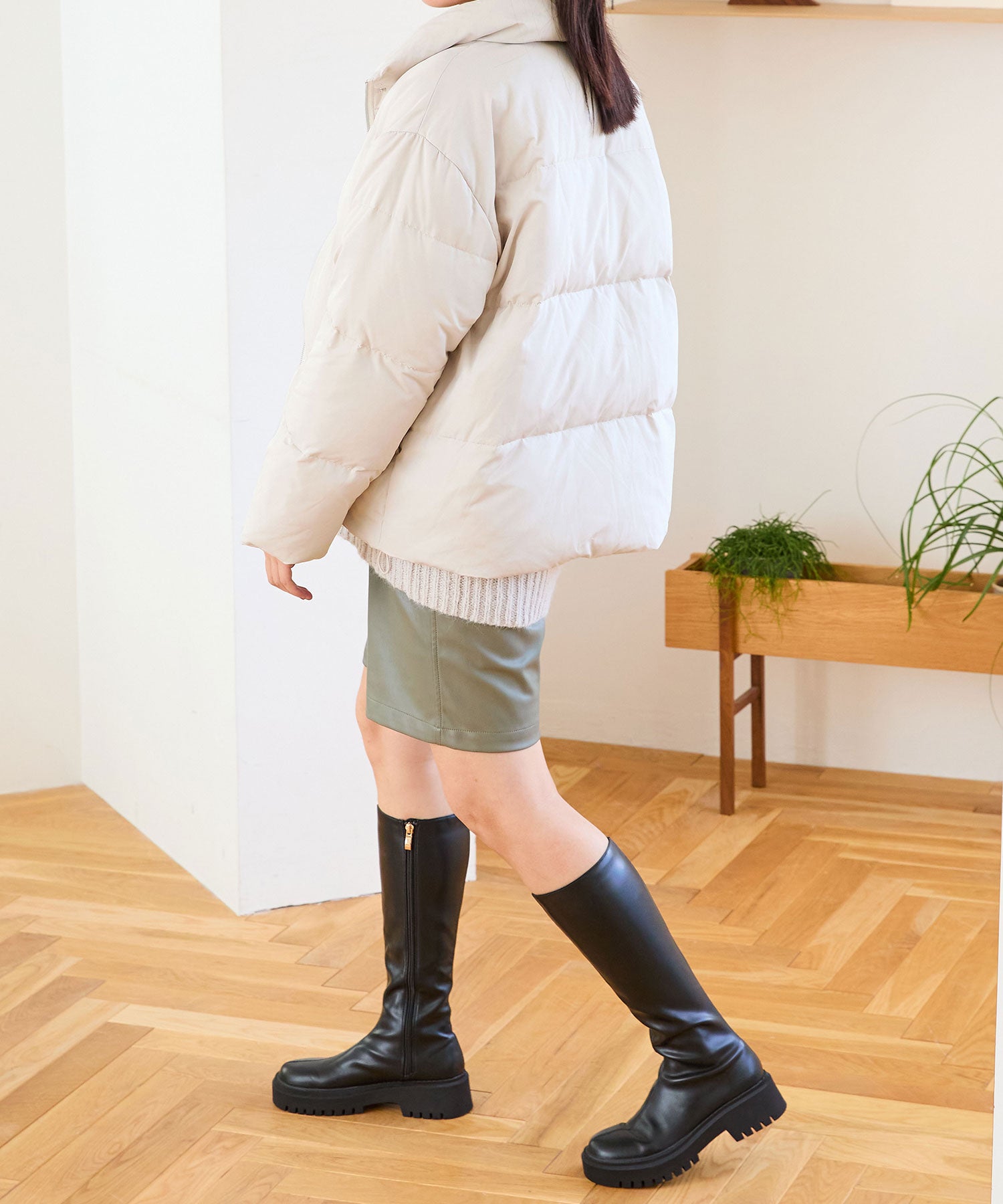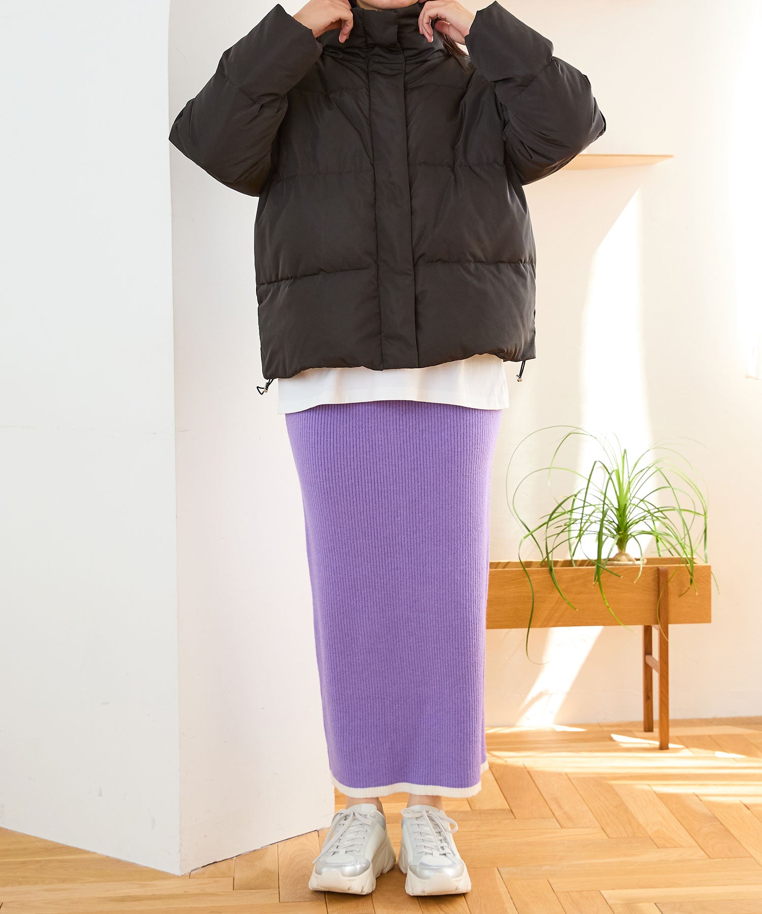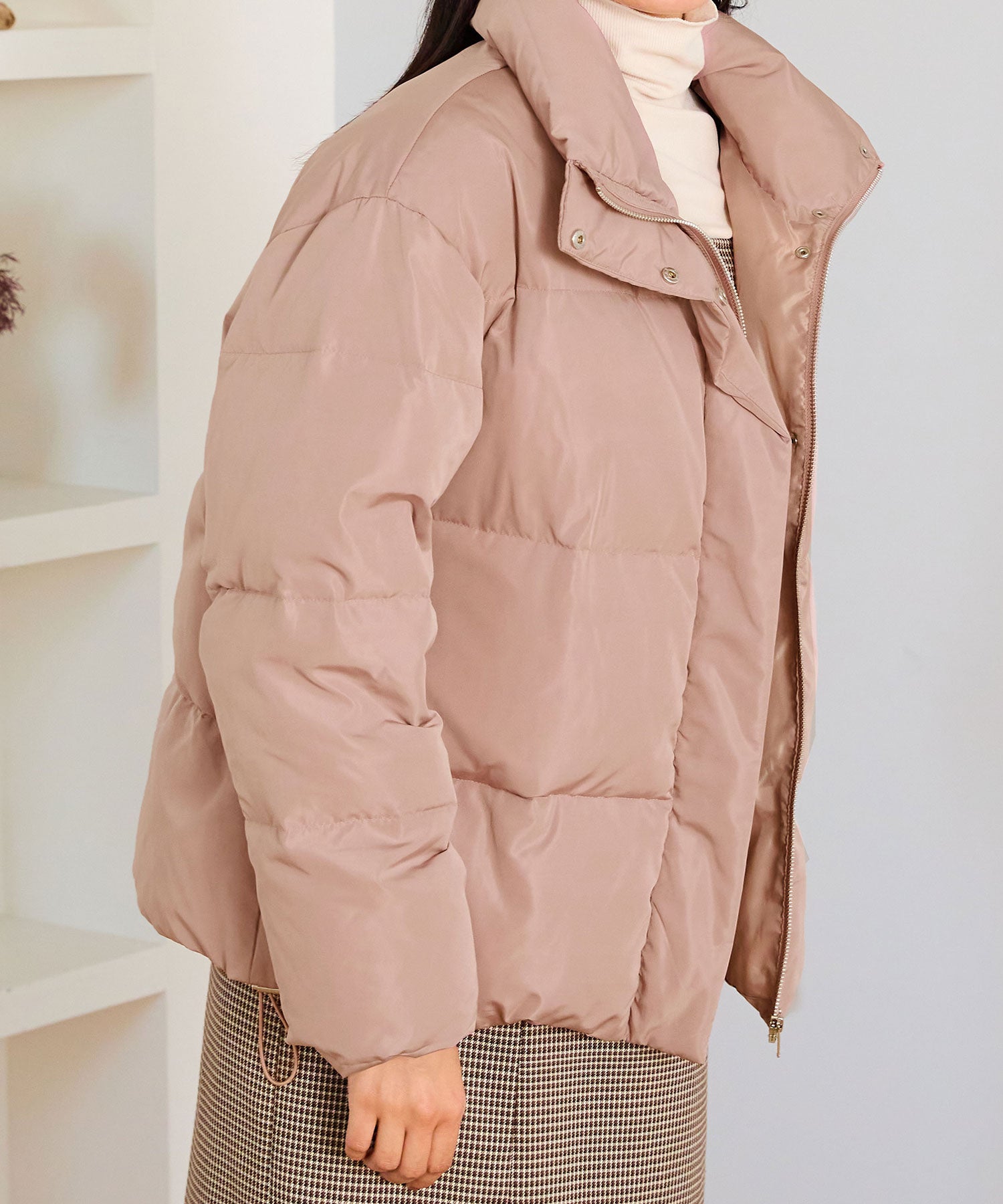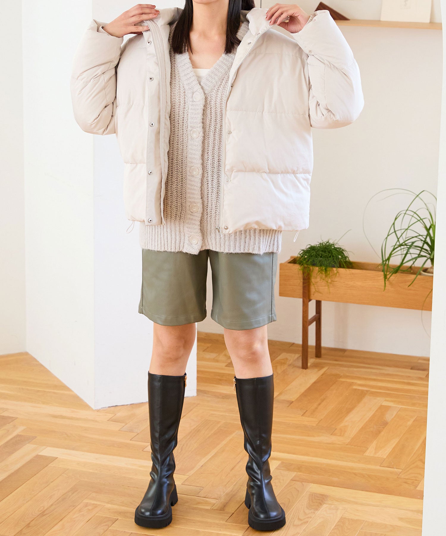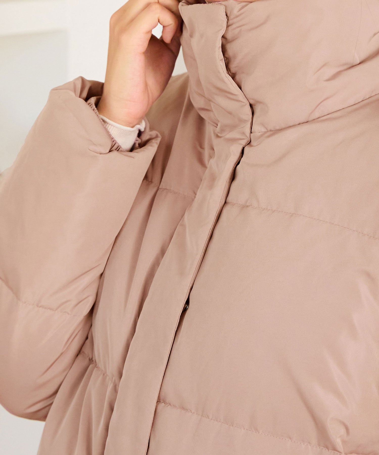 シンプルで幅広く合わせやすいダウンジャケットは、しっかり高さのあるスタンドネックで、首元や顔まわりまで防寒できる優秀アイテム。袖まわりや身幅はゆったりとした着心地で、中に厚手のニットやインナーを合わせられるサイズ感。ポケット裏地を起毛素材にしたのも隠れたこだわり。裾はぎゅっと絞れる2way仕様なので、その日の気分やスタイリングに合わせてシルエットを変えられる。
