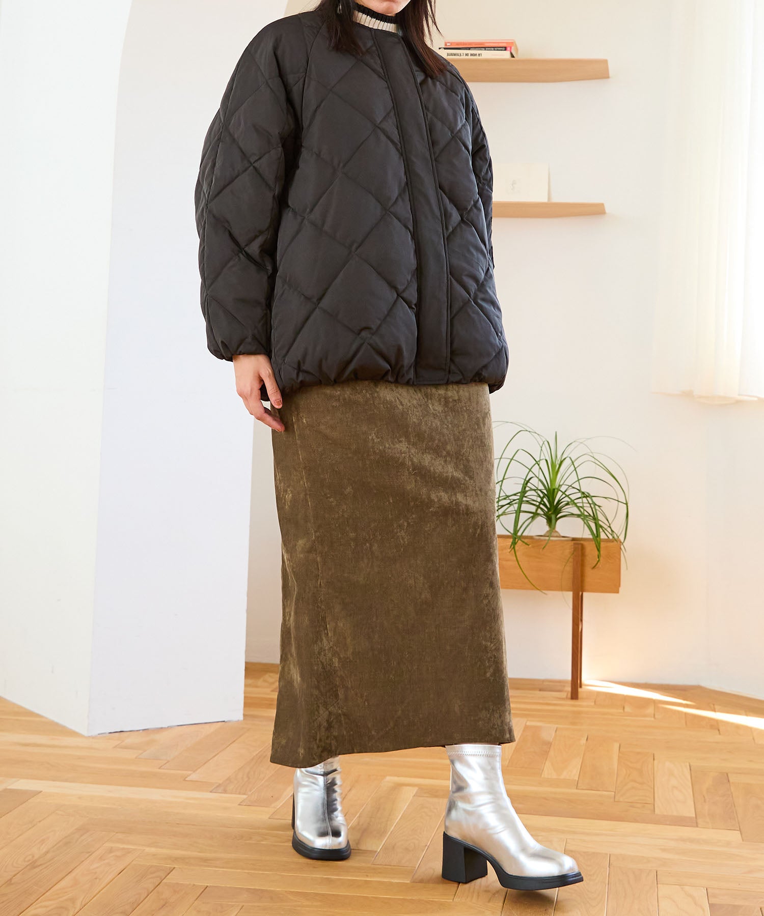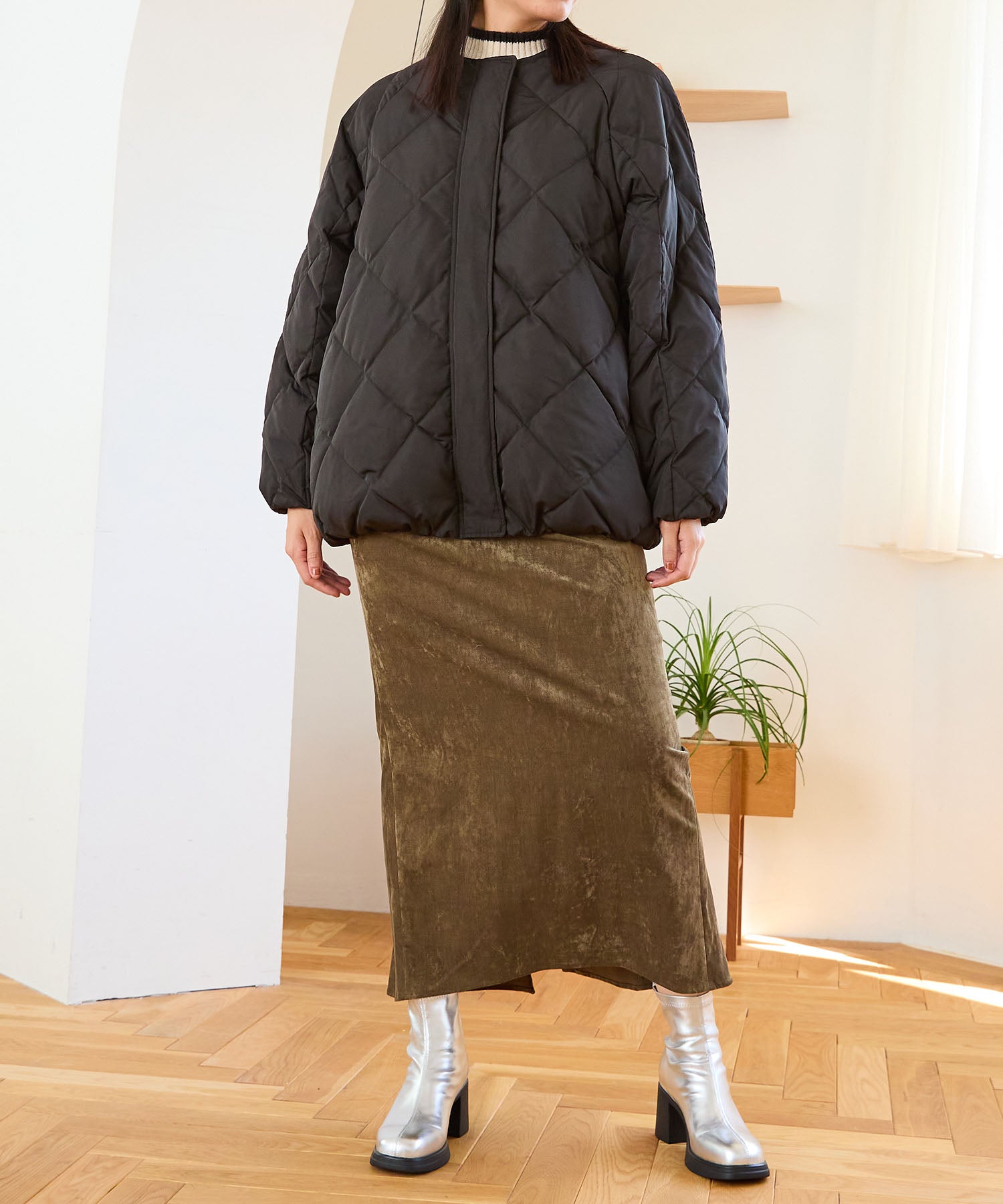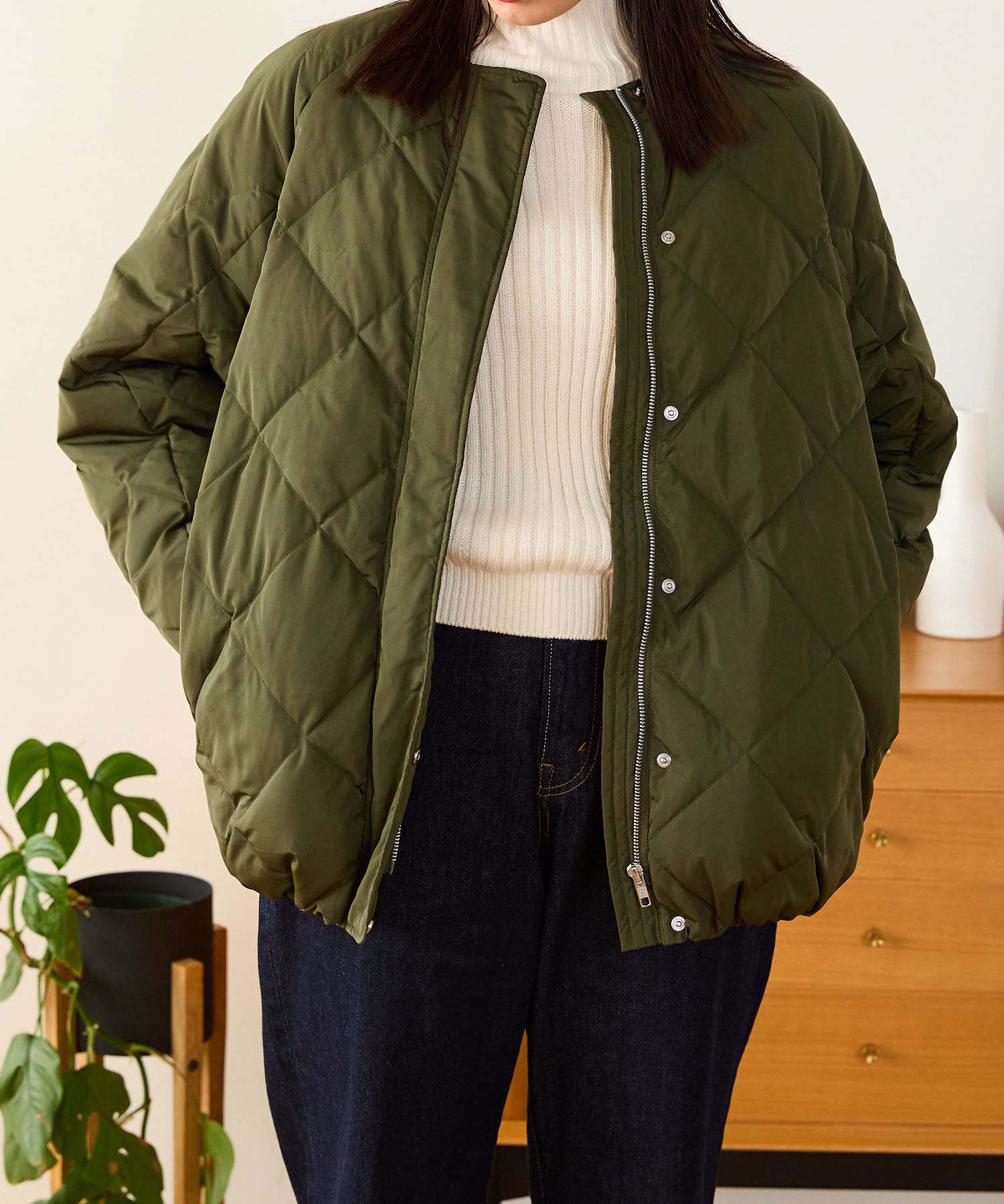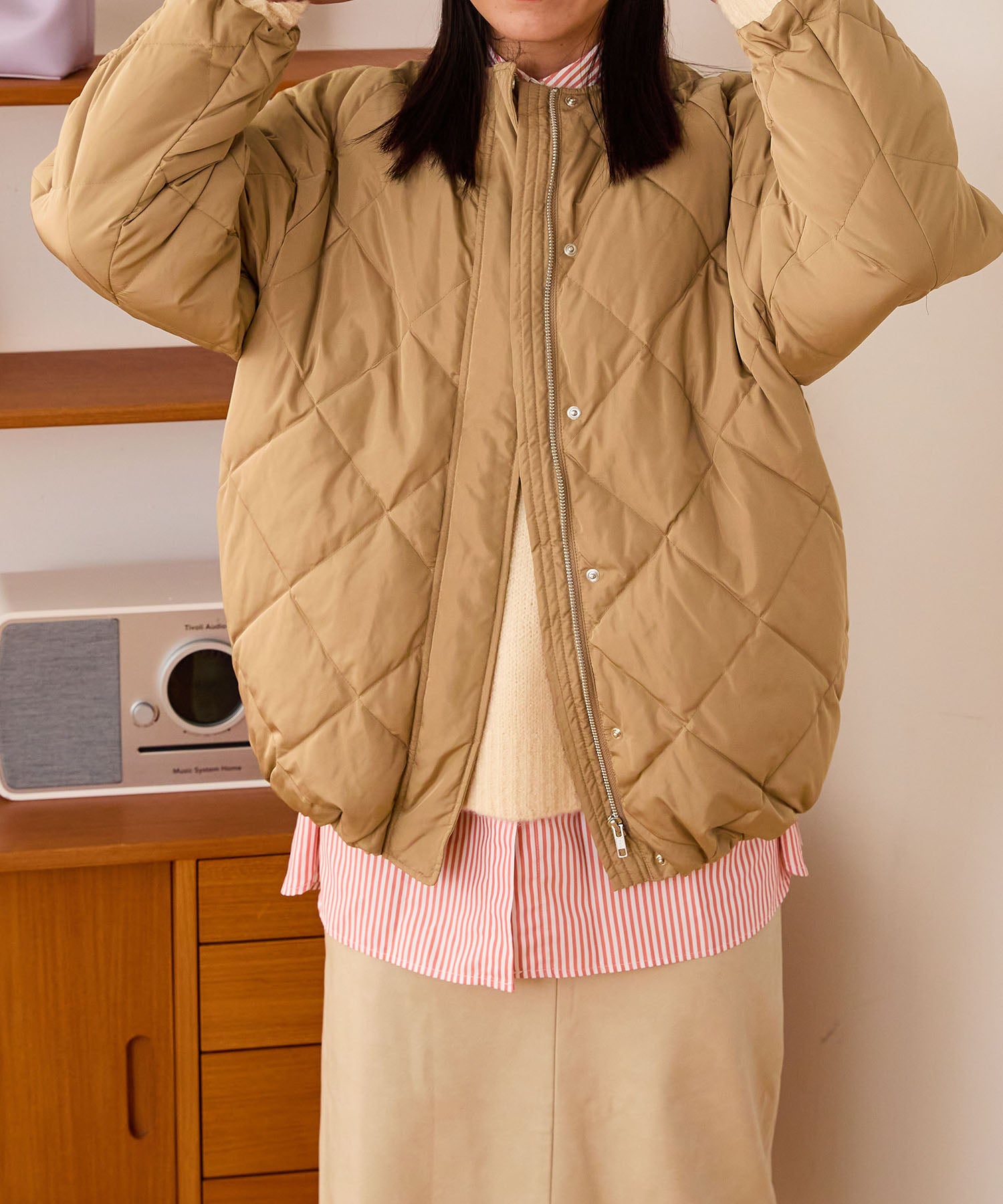 カジュアルにさっと羽織れるキルティングジャケットは、ノーカラーでカットソーやタートルネックとの相性も抜群。お尻が隠れるくらいの着丈で細身のパンツとも安心して合わせられるのが嬉しい。袖口や裾にギャザーを入れることで風を通しにくいような仕様に。程よいゆったり感はありつつも、女性らしいシルエットを叶えたアイテムは、この冬活躍すること間違いなし。
