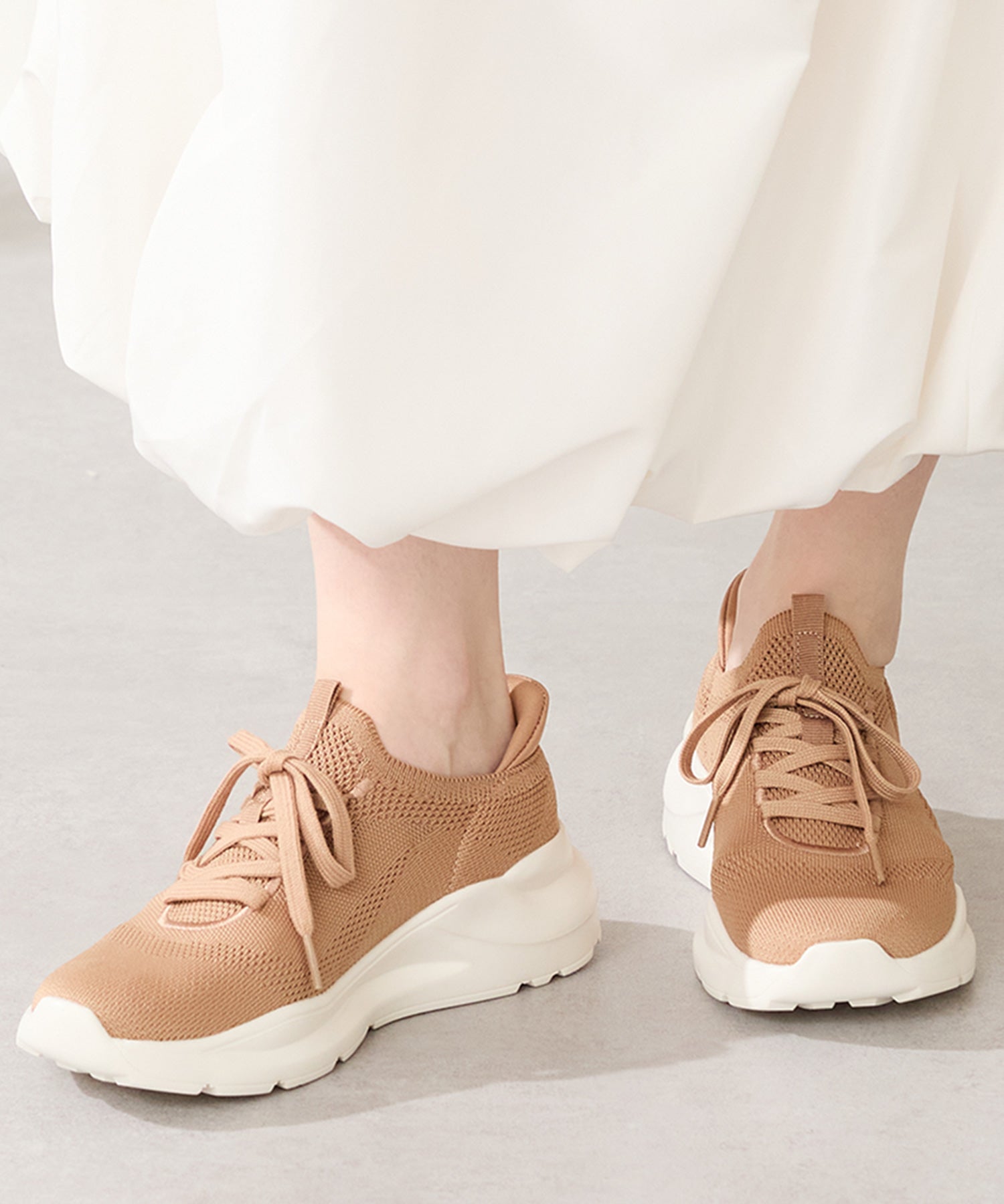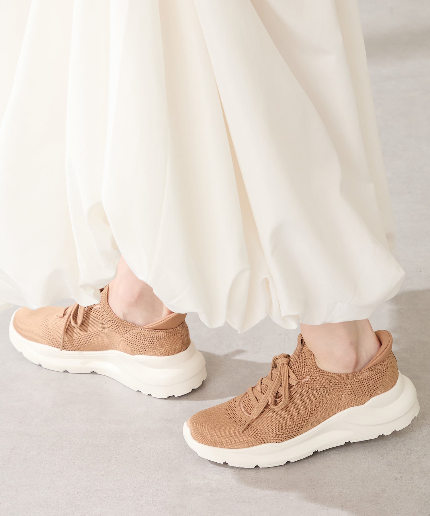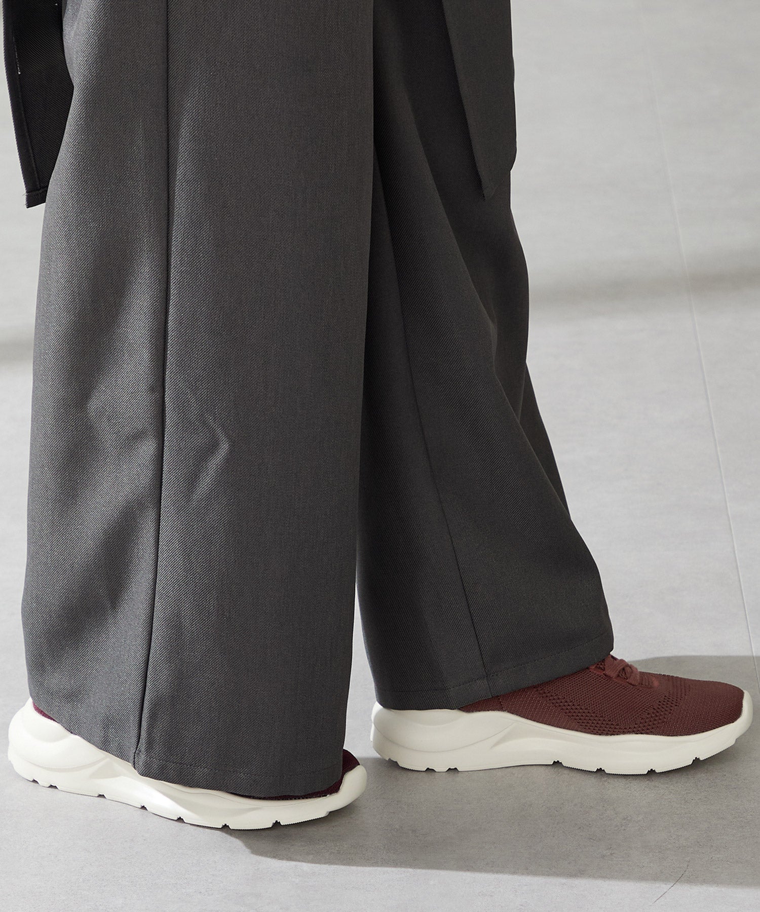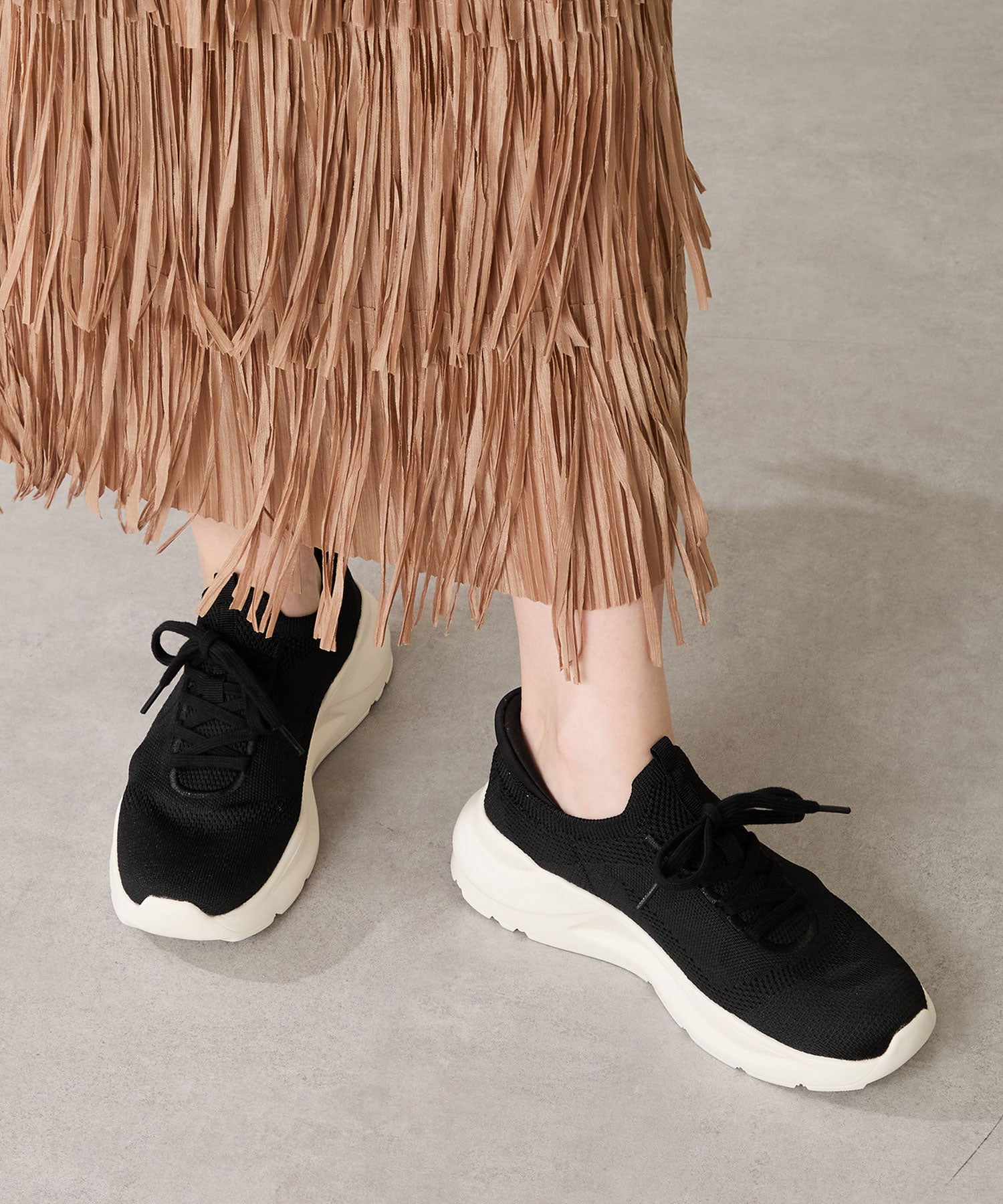 フィット感のあるニット素材と、さっと履けるハンズフリー仕様で軽さと快適さを追求したスニーカーが登場。足当たりの柔らかいニットは伸縮性があるので馴染みやすく、オリジナルの編み目の模様は凹凸感のあるものにすることでメリハリのある印象に。ニットなので通気性が良く、中敷は厚みのあるクッションを全体に入れているので沢山歩くシーンでも活躍する1足。更にレースアップ部分は紐で調節が可能で自身の足に合わせて変えられるのも嬉しいポイント。履き口がよく伸びるうえに、踵にはオリジナル設計の芯を入れることで手を使わずに立ったまま一瞬で履ける仕様に。フィット感にとことんこだわり、今までにない感動の履き心地を実現したスニーカー。ソールまで単色でまとめたブラック/ブラックと、深みのある色合いが魅力のブラウンとワインを加えた選べる7カラー展開。