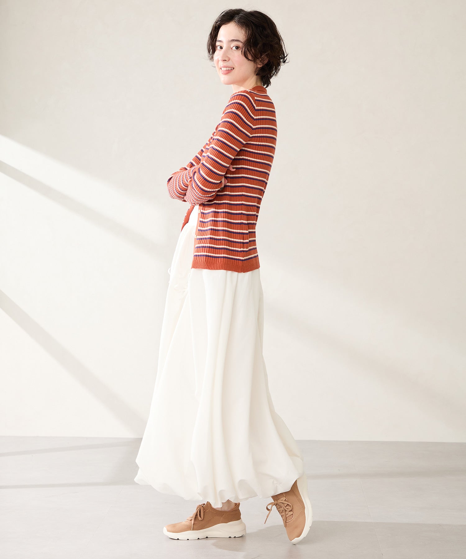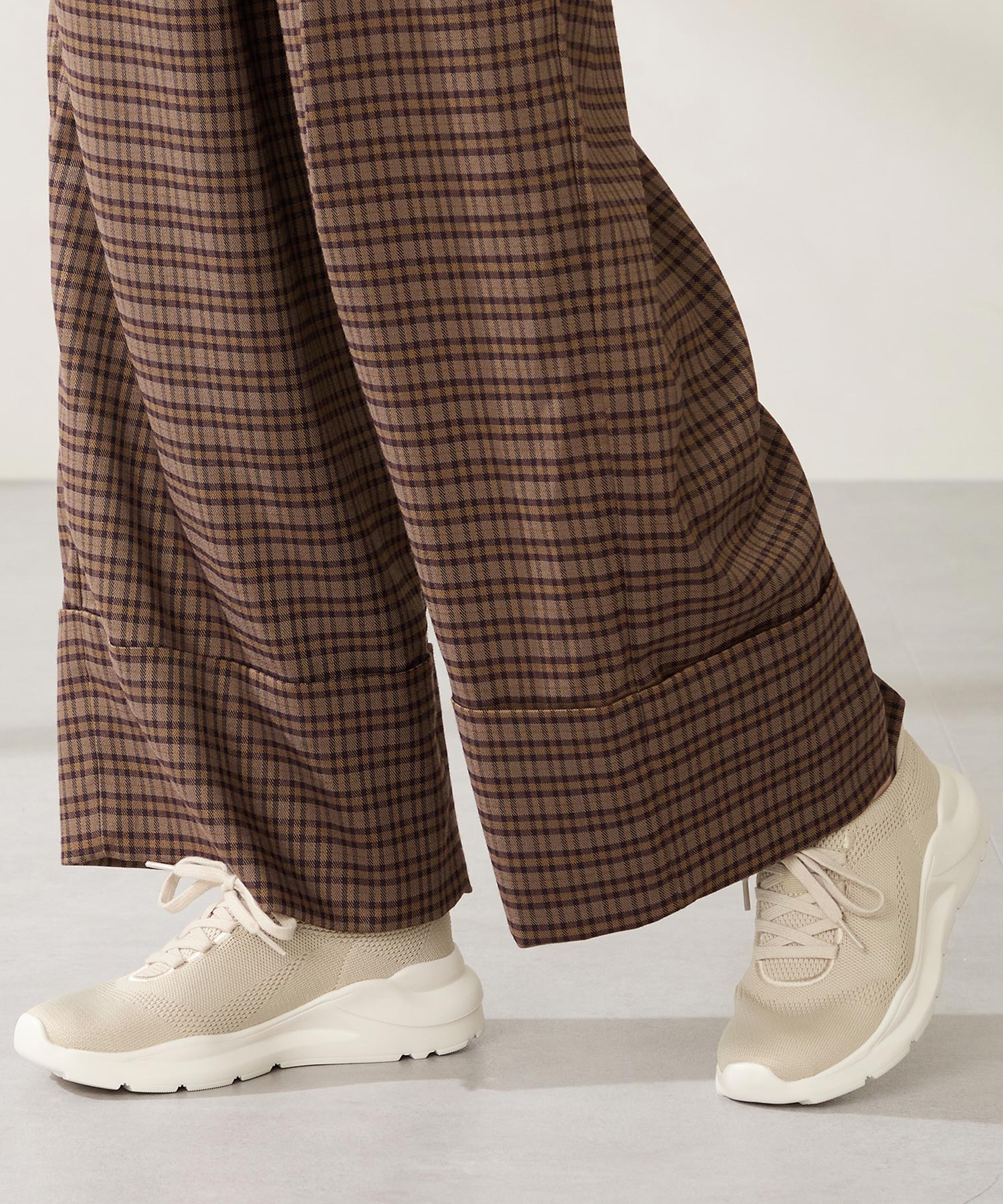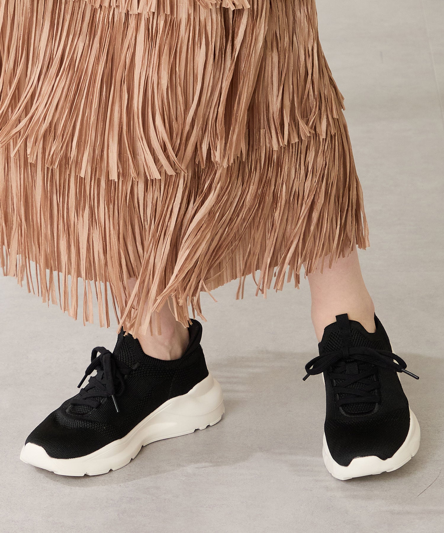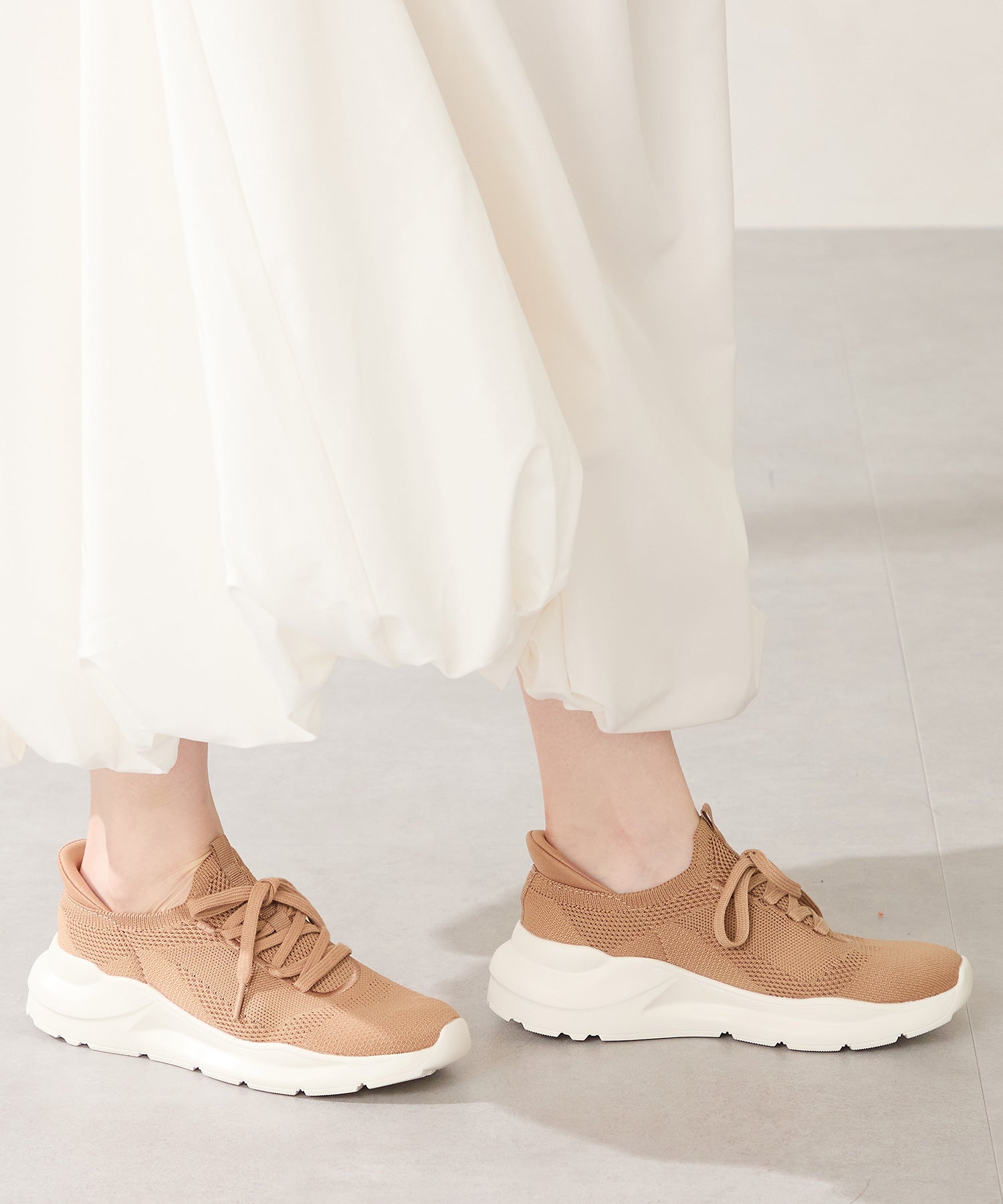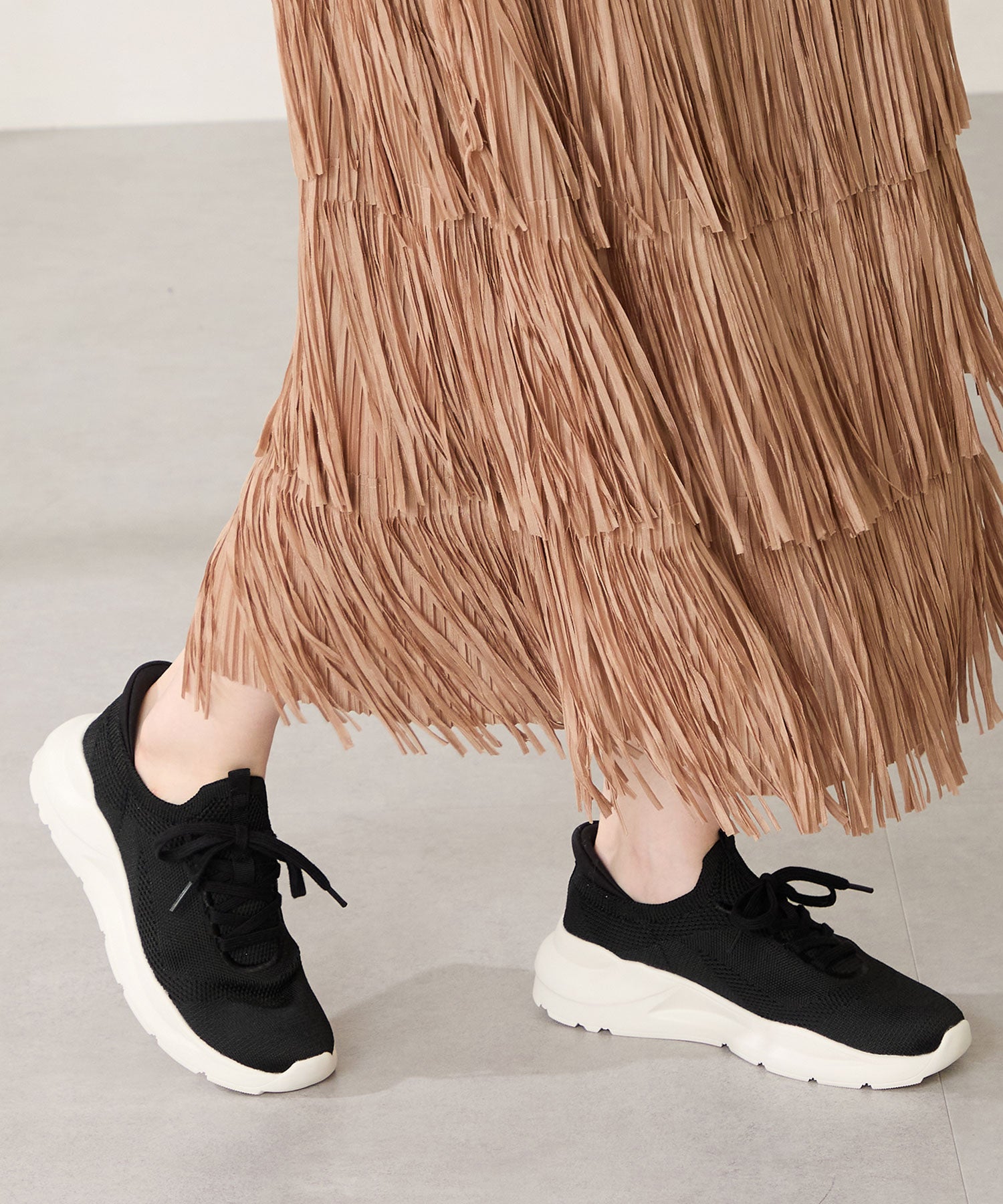 フィット感のあるニット素材と、さっと履けるハンズフリー仕様で軽さと快適さを追求したスニーカーが登場。足当たりの柔らかいニットは伸縮性があるので馴染みやすく、オリジナルの編み目の模様は凹凸感のあるものにすることでメリハリのある印象に。ニットなので通気性が良く、中敷は厚みのあるクッションを全体に入れているので沢山歩くシーンでも活躍する1足。更にレースアップ部分は紐で調節が可能で自身の足に合わせて変えられるのも嬉しいポイント。履き口がよく伸びるうえに、踵にはオリジナル設計の芯を入れることで手を使わずに立ったまま一瞬で履ける仕様に。フィット感にとことんこだわり、今までにない感動の履き心地を実現したスニーカー。ソールまで単色でまとめたブラック/ブラックと、深みのある色合いが魅力のブラウンとワインを加えた選べる7カラー展開。