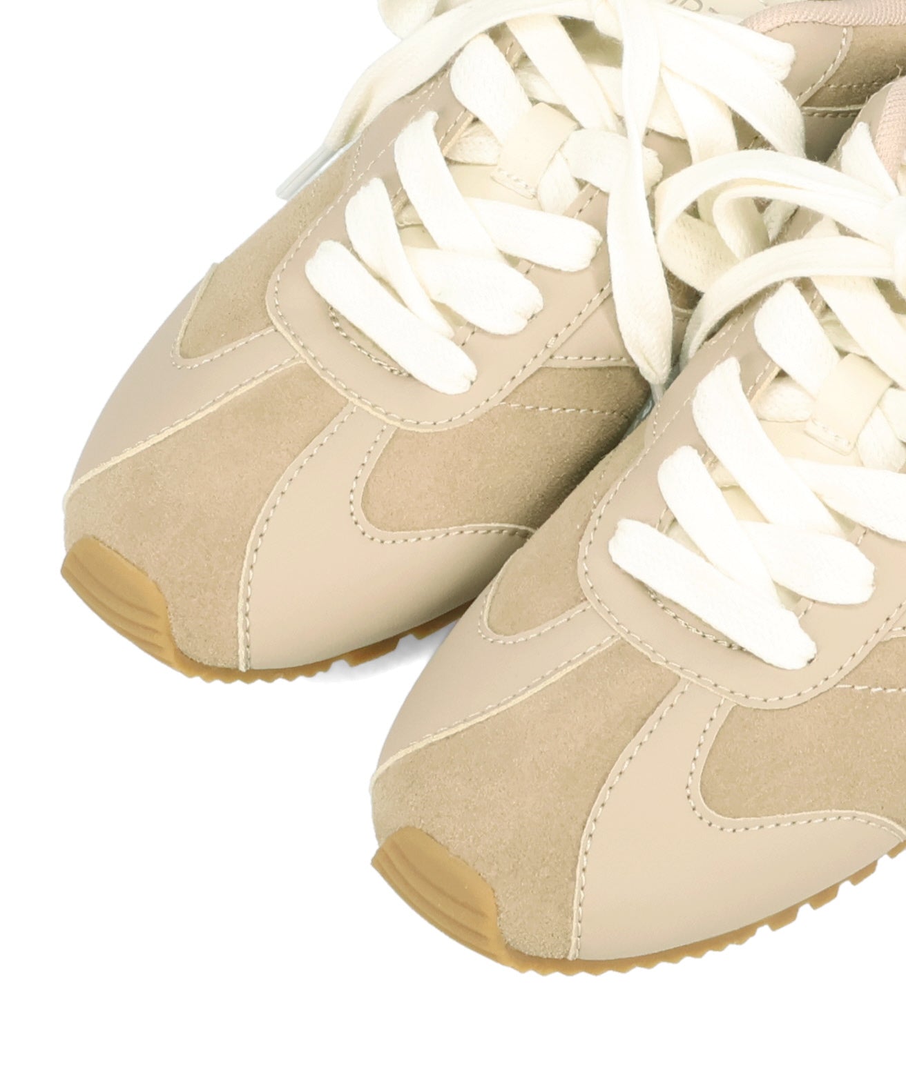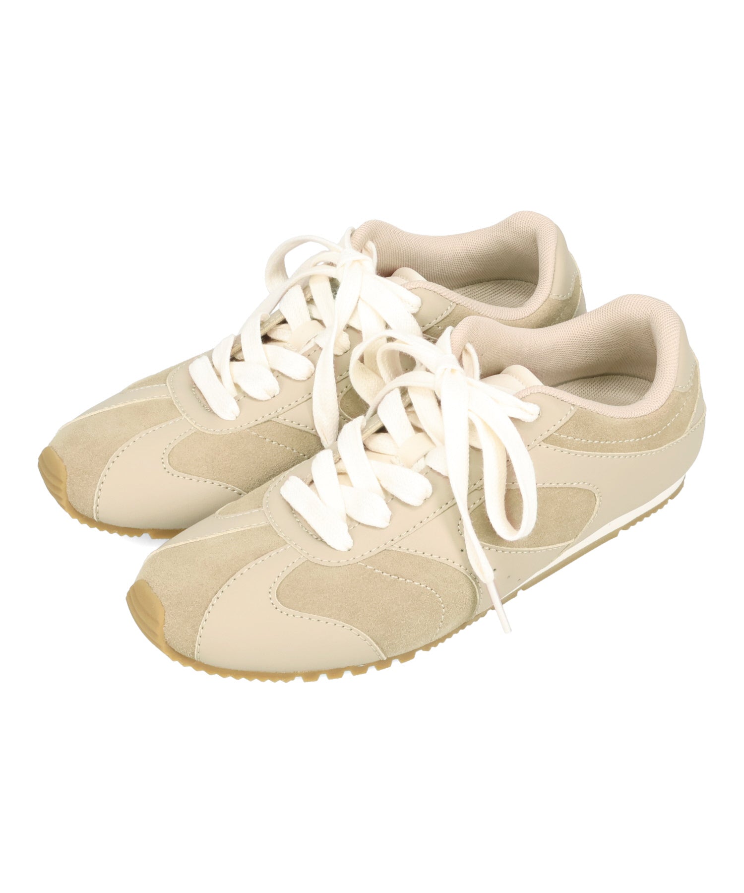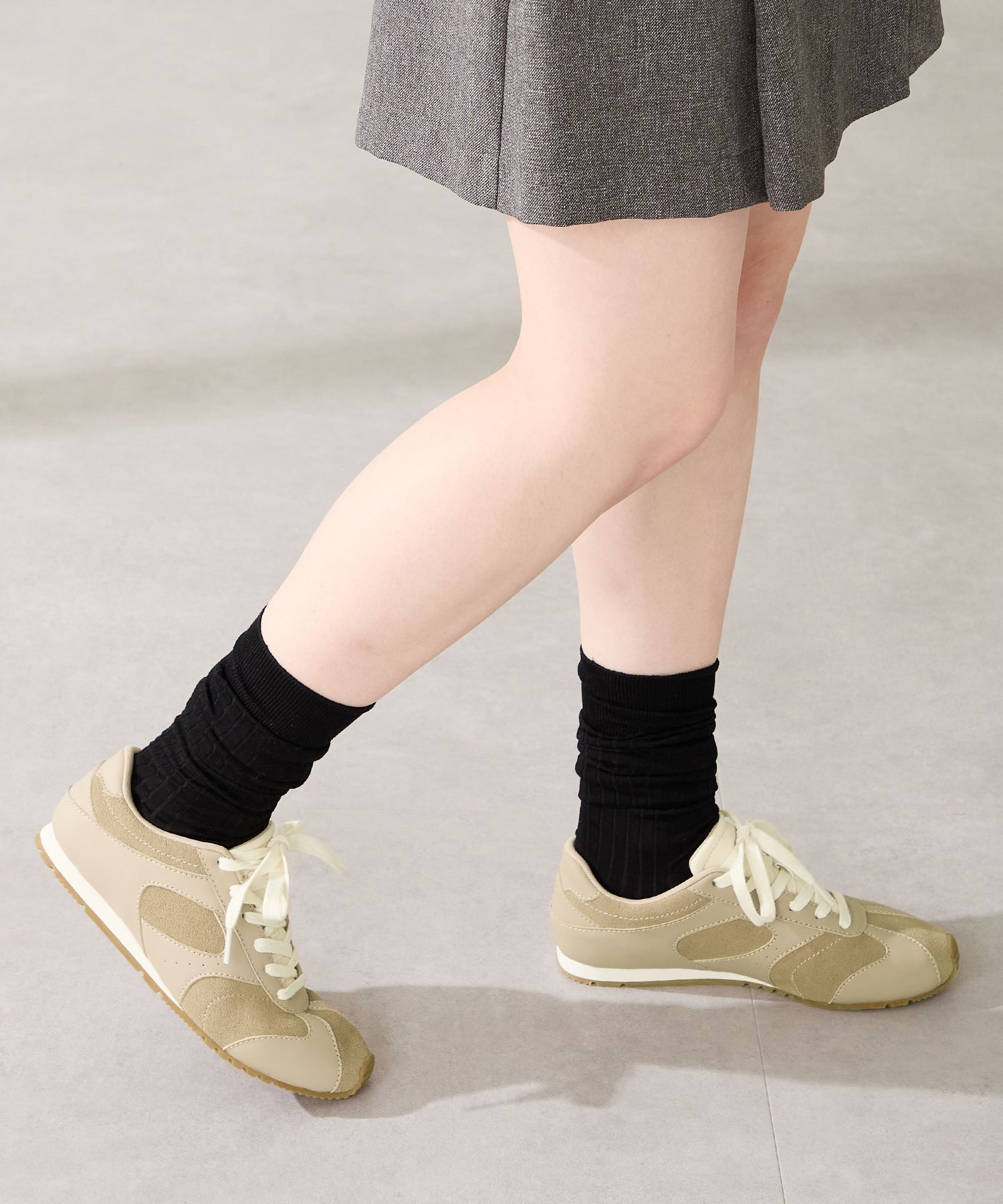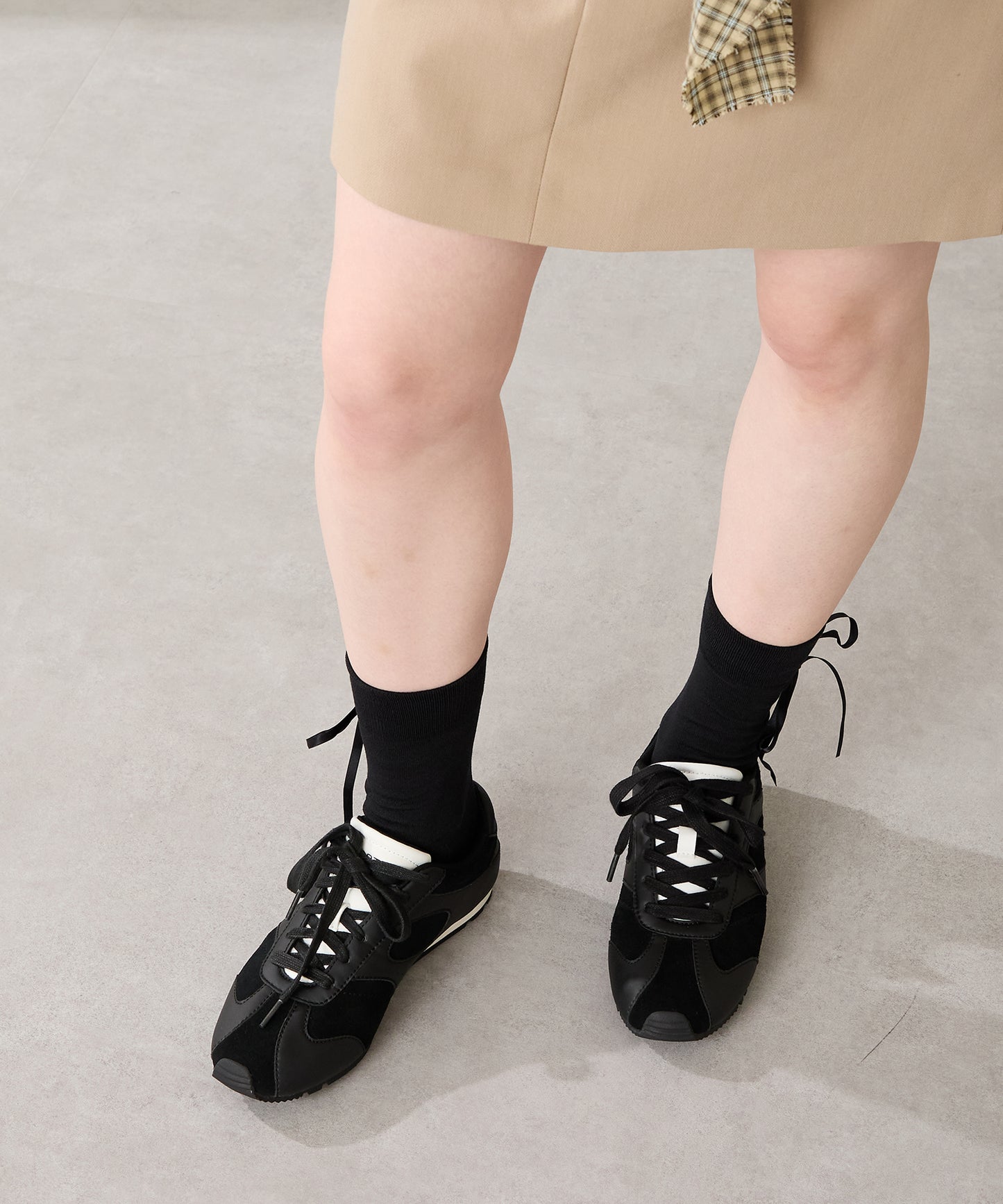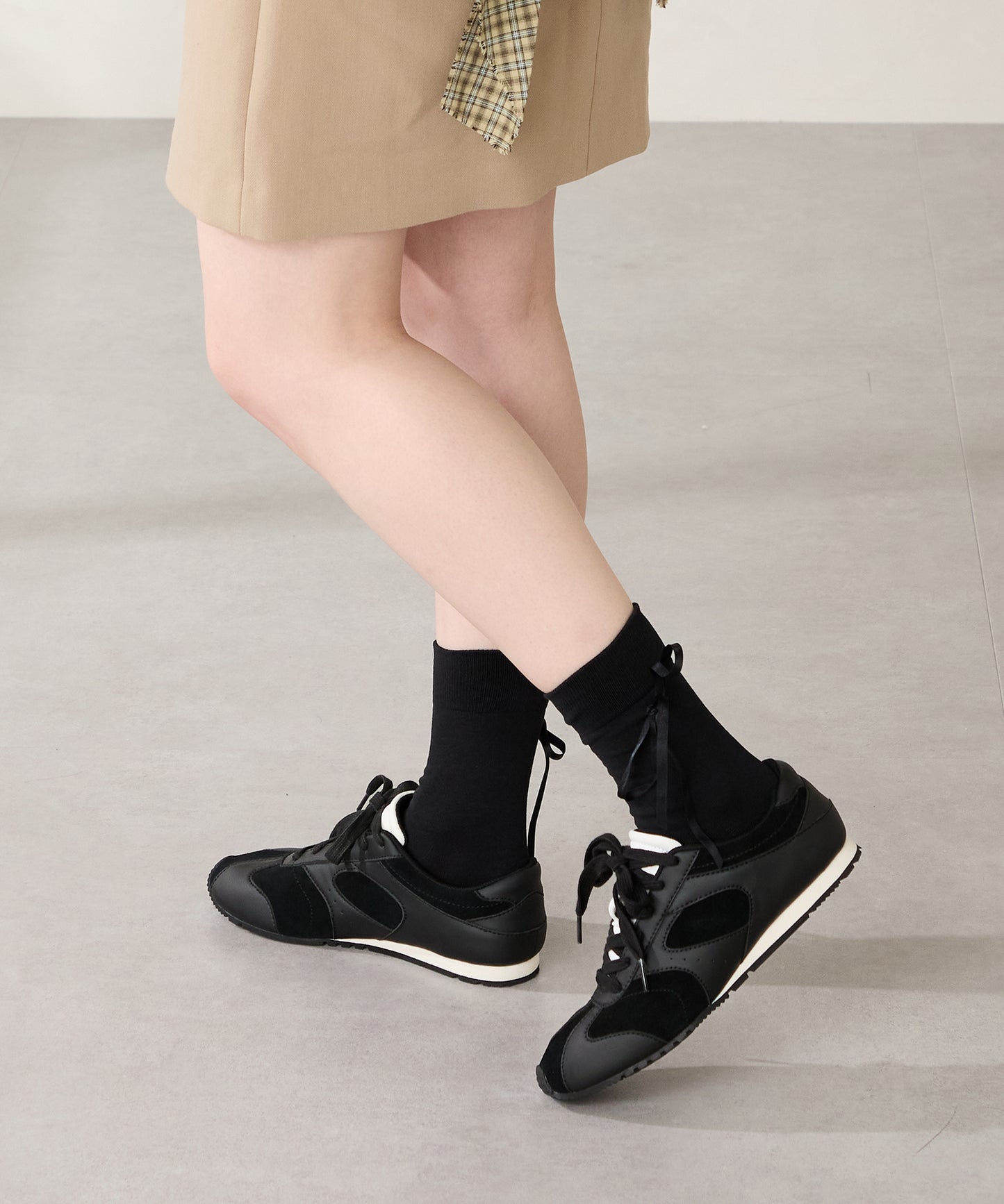 トレンドをおさえたデザインのフラットスニーカーは、履くだけで足元がおしゃれ見えする注目アイテム。付属のラメ紐と付け替えができる2way仕様なので、気分やその日のコーディネートに合わせてアレンジできるのが魅力的。軽やかな履き心地で長時間歩いても疲れにくく、デイリー使いにもぴったり。長めの丈感のパンツとの相性はもちろん、ミニ丈のボトムス合わせも◎。