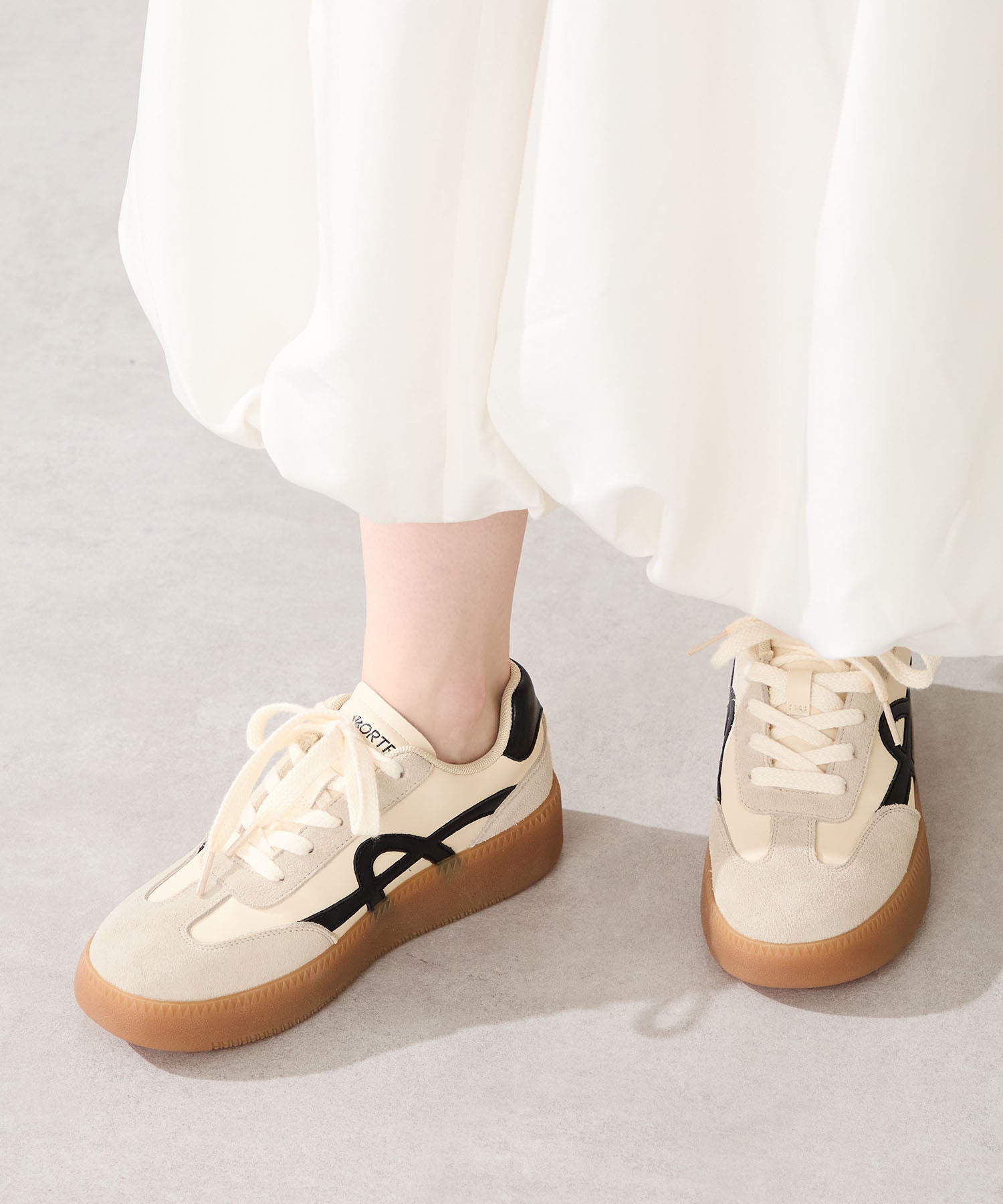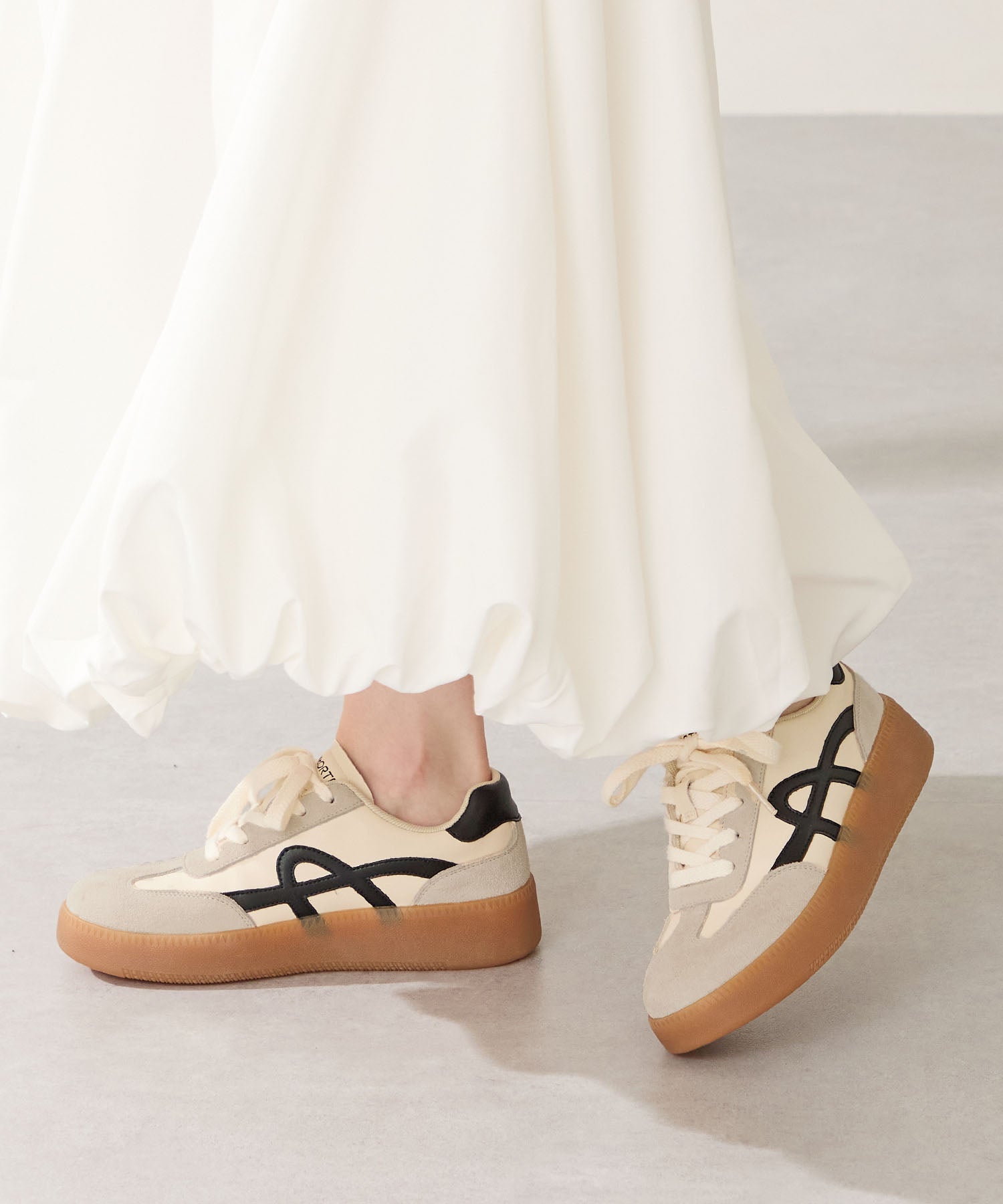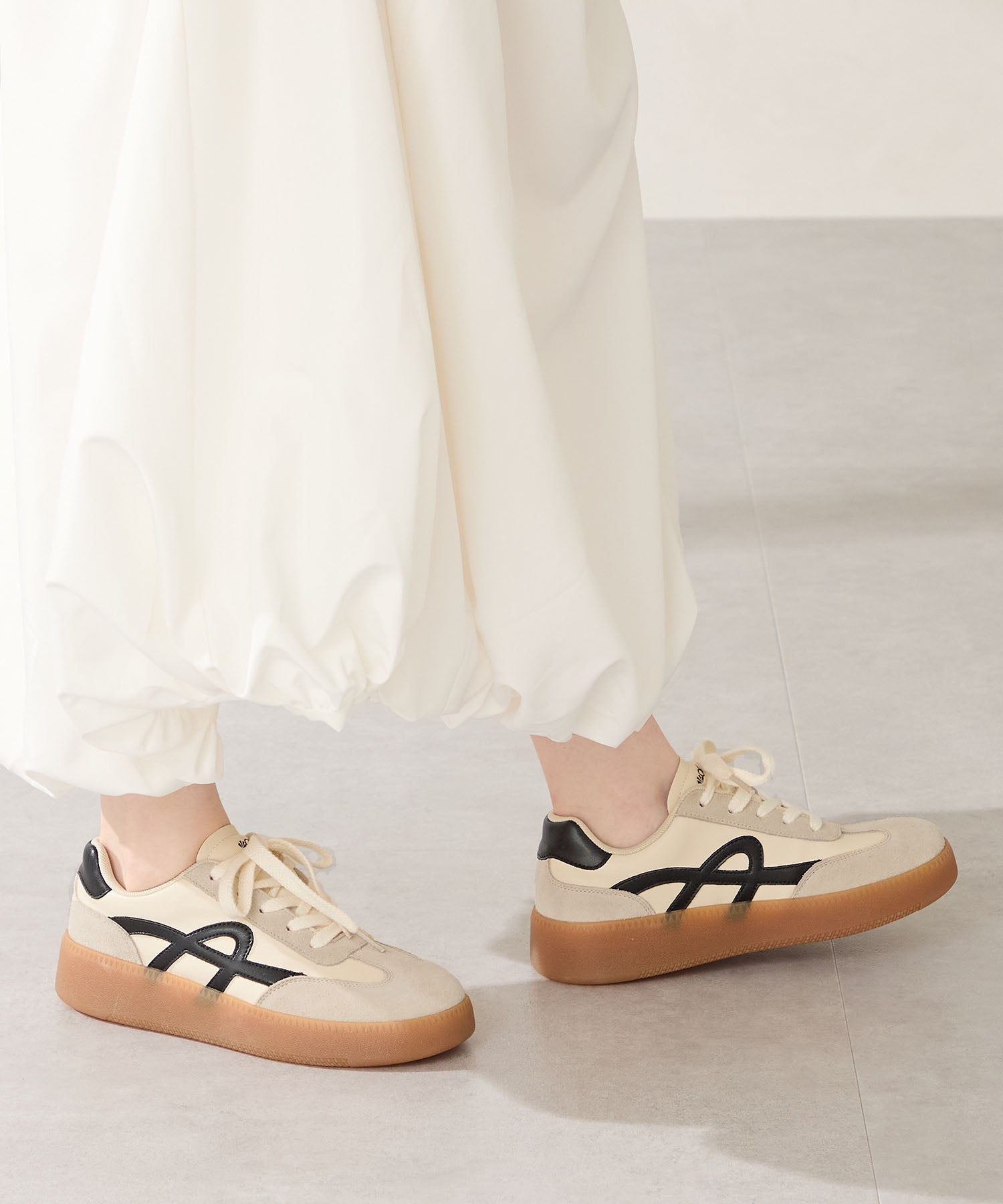クラシックなジャーマントレーナーデザインをベースにした、ミニマルで洗練されたスニーカー。サイドに施されたラインが程良いアクセントで、メリハリのあるデザインがおしゃれ。ガムソール仕様でレトロな雰囲気を演出しつつ、すっきりとしたシルエットがどんなボトムスにもマッチするのでカジュアルスタイルには欠かせない旬のスニーカー。