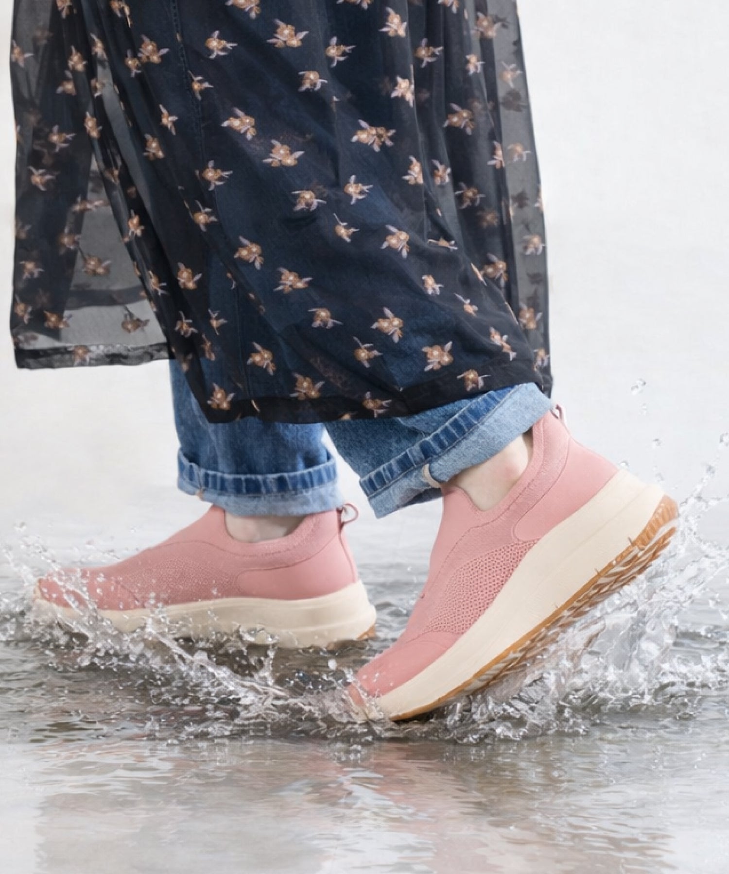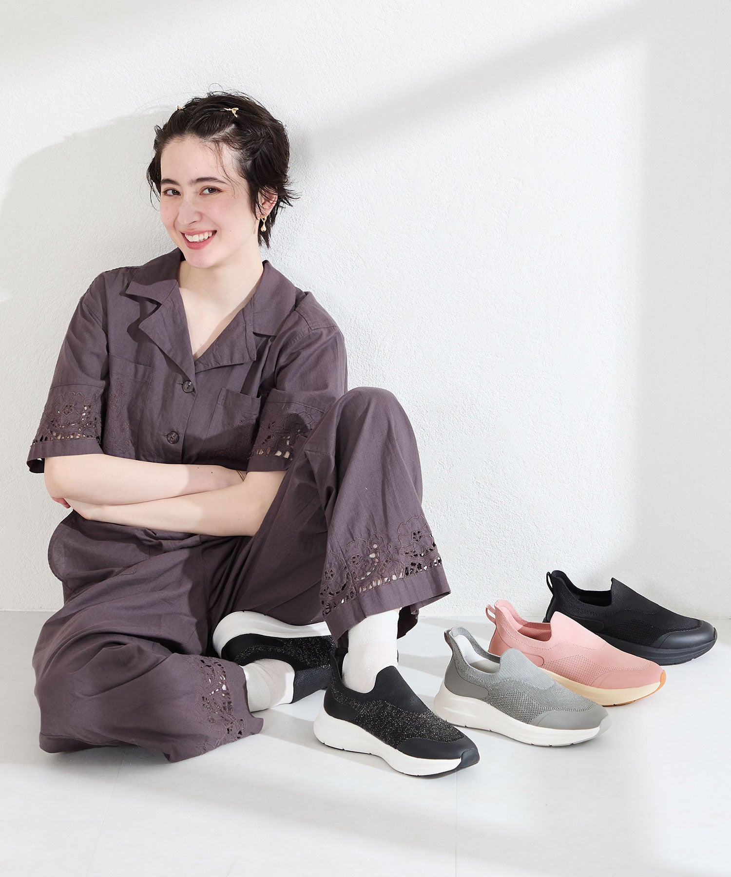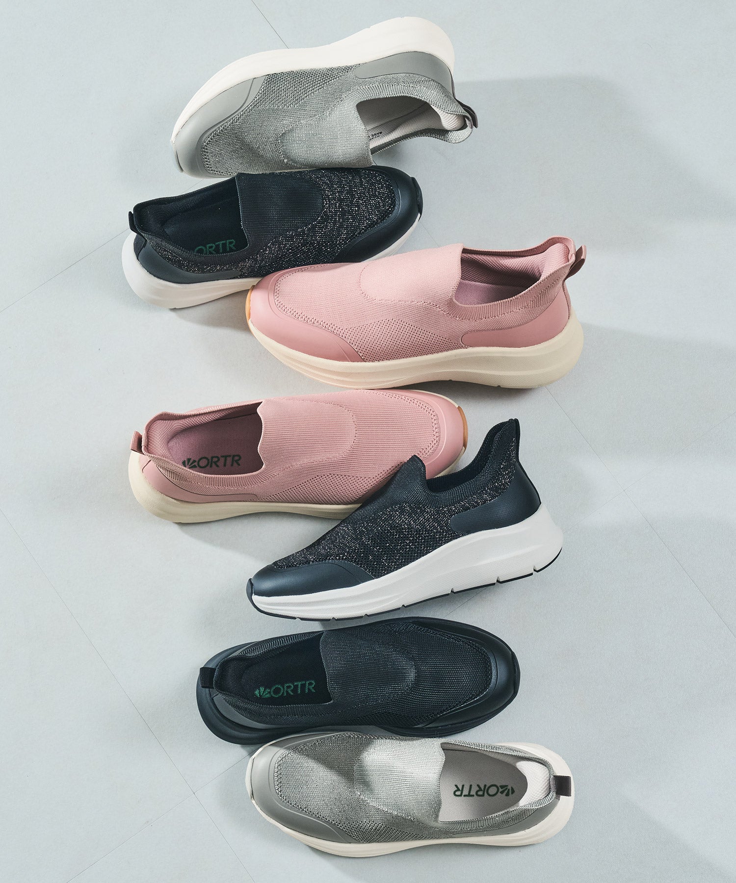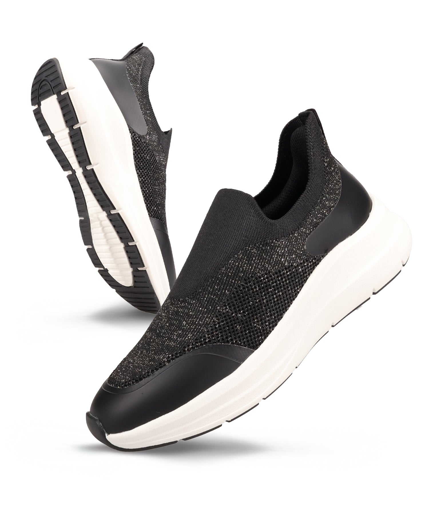 瞬間フィットシリーズから防水タイプのニットスニーカーが登場。防水シート入りで水の侵入を防ぎ、靴底にはグリップ性に優れたラバーを施し、雨の日でも安心な歩行をサポート。適度にハリのあるニット素材を使用しているのでニットならではの軽さが魅力的。さらにクッション入りの踵と伸縮する履き口が足にフィットするので、履いた瞬間から快適な履き心地を実現。さっと履けるハンズフリー仕様で、仕事で脱ぎ履きの多い方にもおすすめ。ブラックとグレーにはラメ織りのニット素材を使用しており、シンプルなデザインながらもさりげない輝きが足元に軽やかさを与えてくれます。